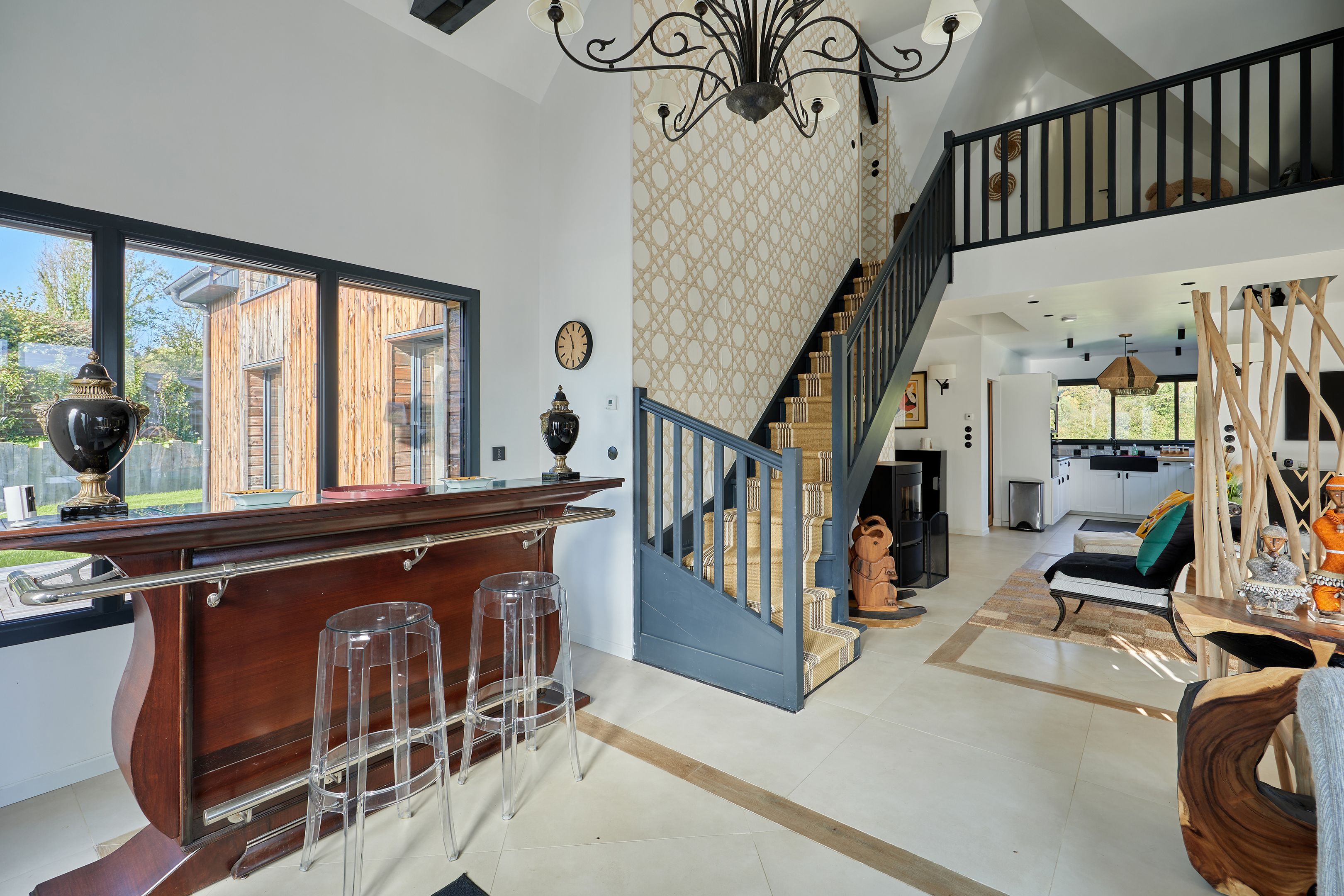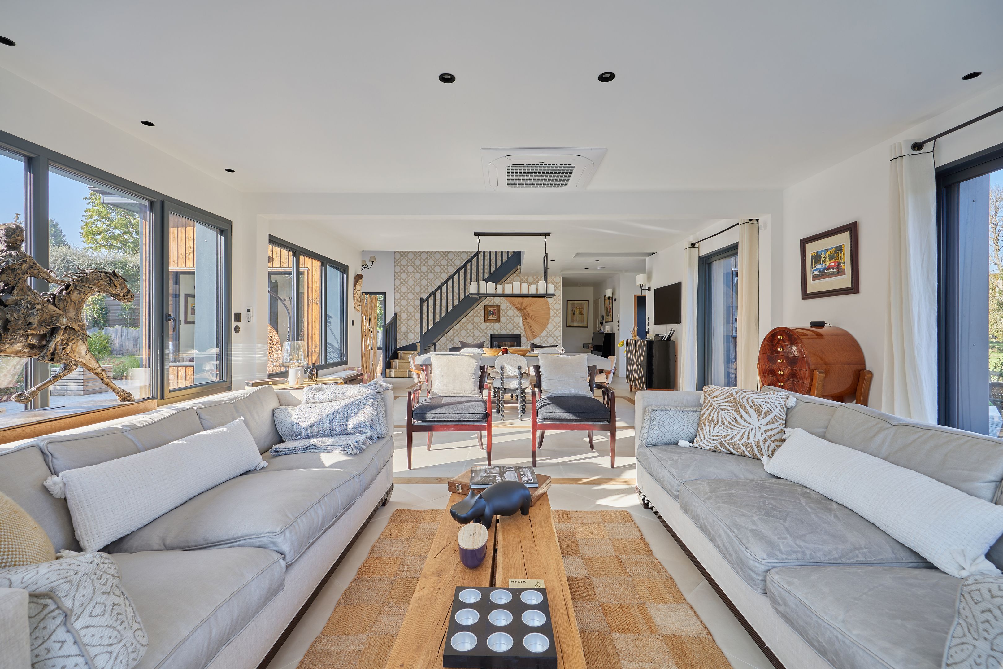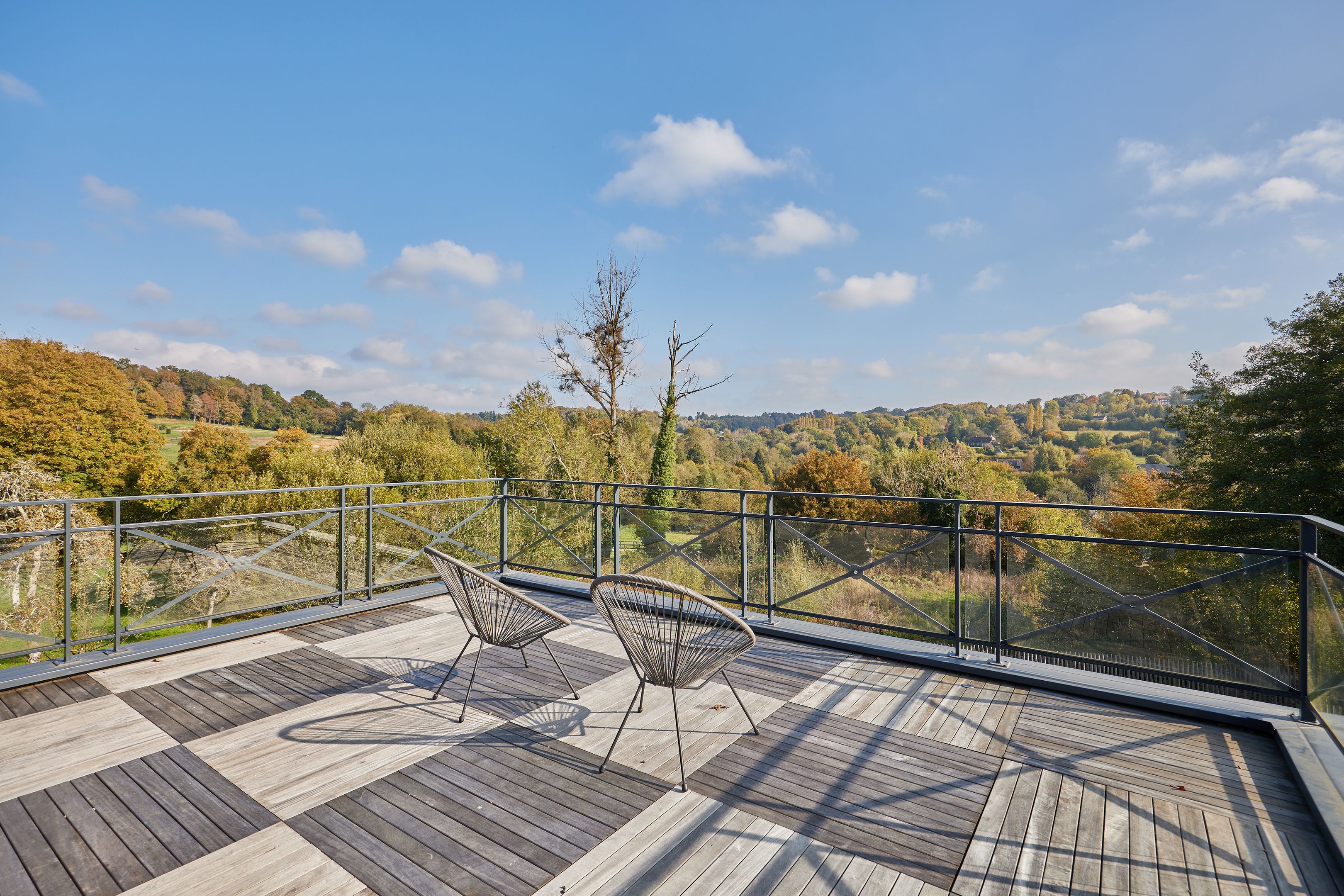 Just 15km from Deauville and Honfleur, and 5min from Pont-l'Évêque, elegant contemporary property set in enclosed grounds of 1500m2. First floor: entrance hall, large, bright living room with wood-burning stove and views over the countryside, fully-equipped open-plan kitchen, utility room, lovely master suite with shower room, second bedroom, shower room with toilet, guest toilet. First floor: mezzanine with terrace, shower room with toilet, master suite with terrace. Outbuilding: lovely 26m2 studio with kitchen, shower room and toilet. Heated swimming pool with rolling deck. Terrace around the house to enjoy the sun all day long. Two garden sheds.