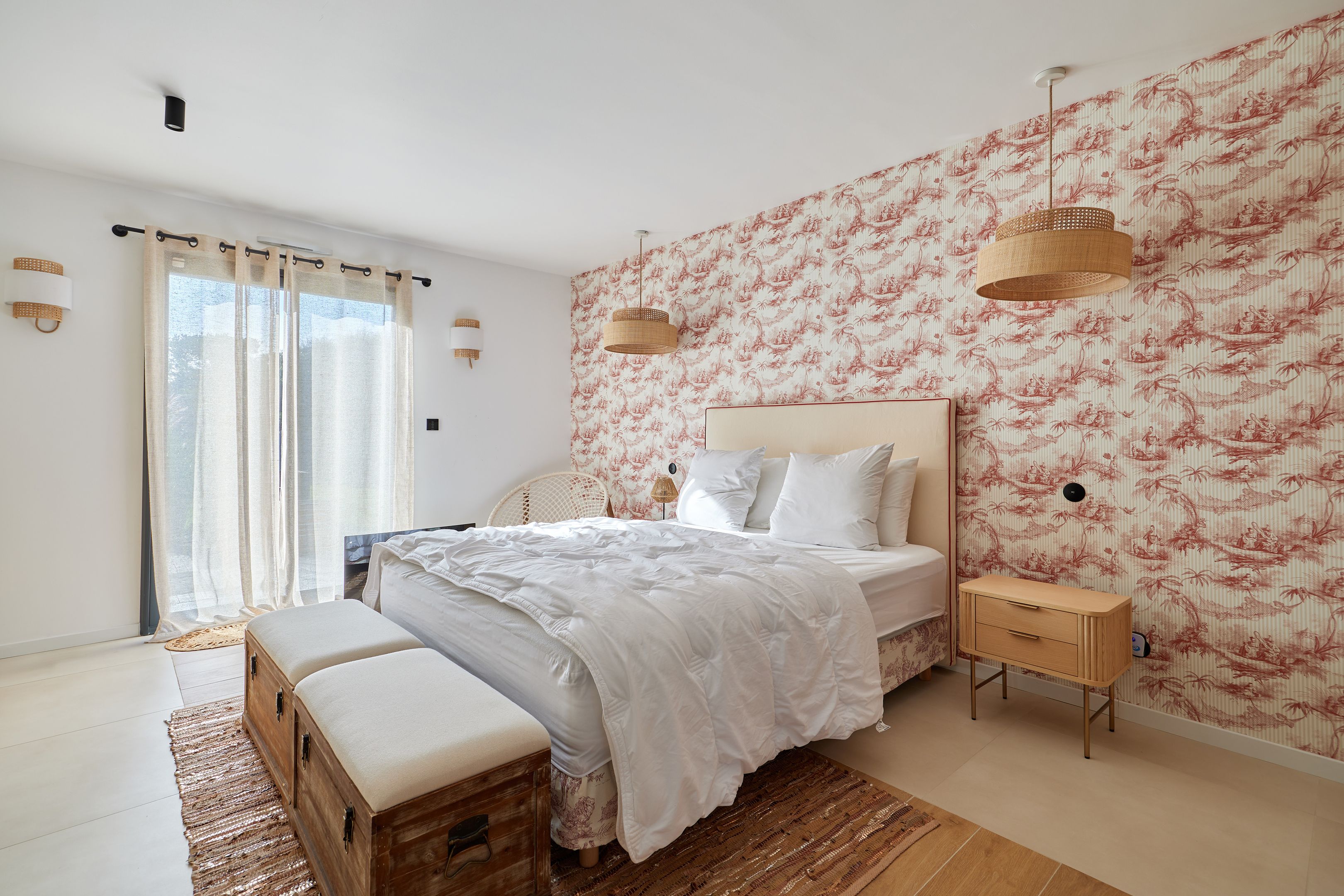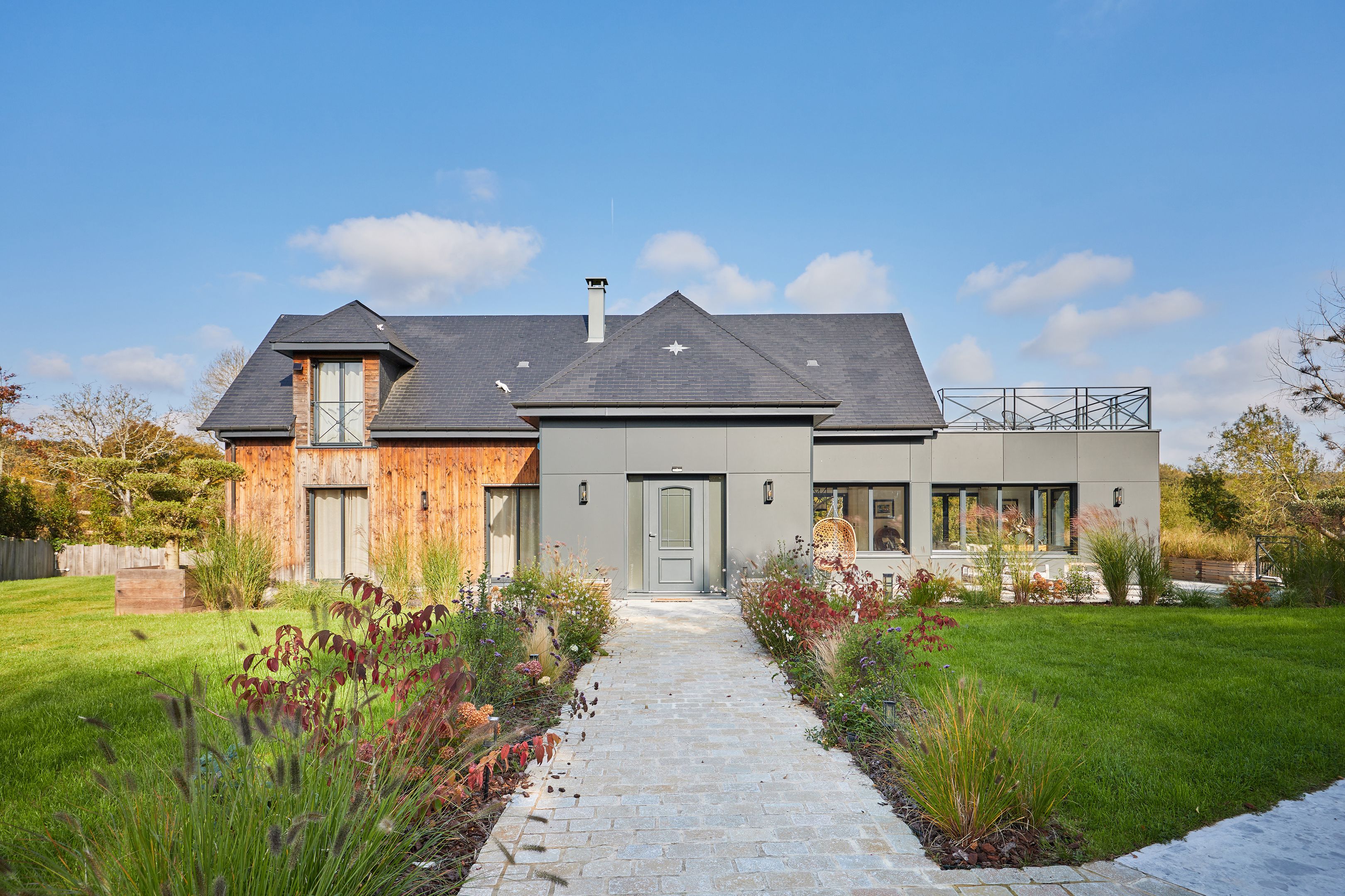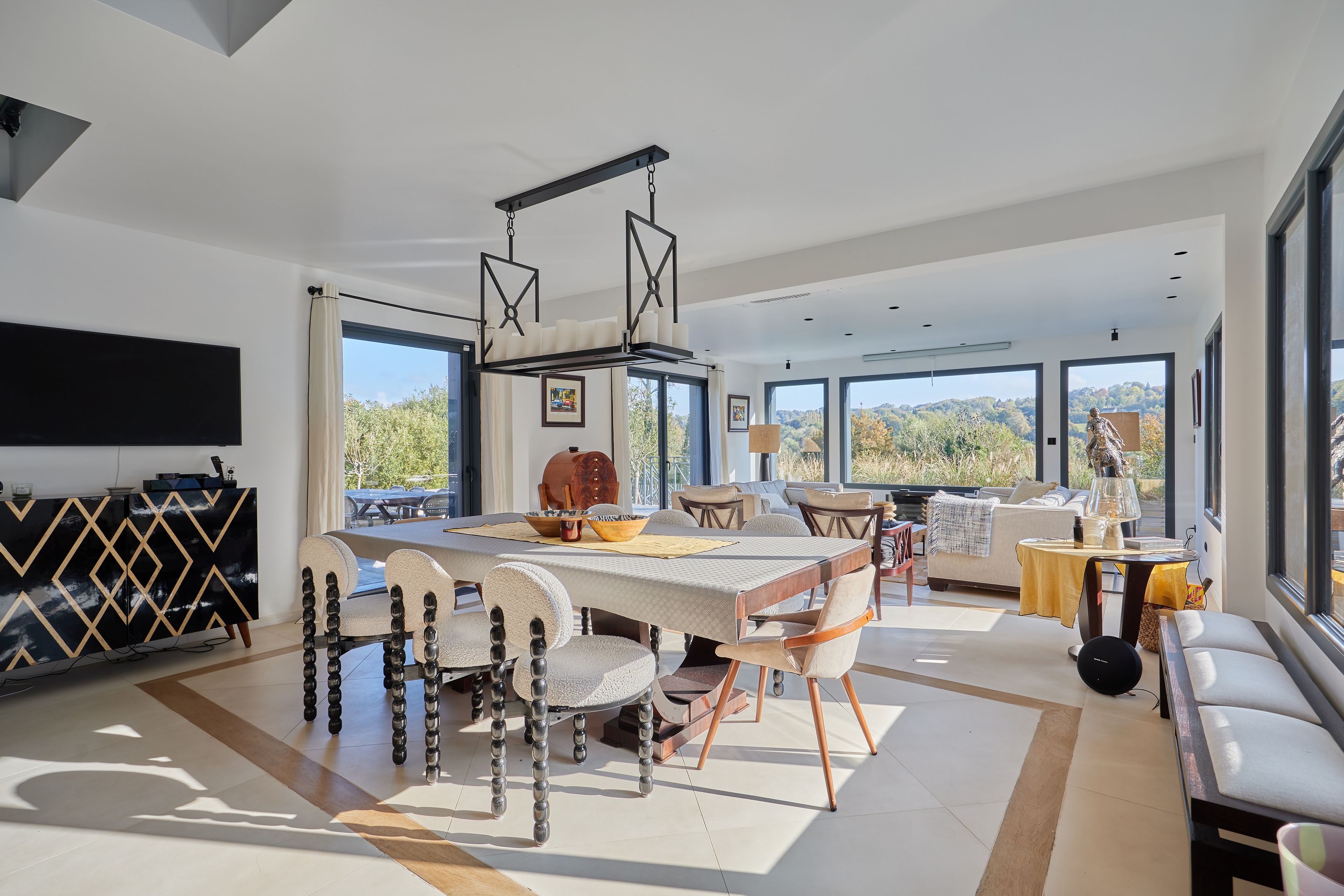 Just 15km from Deauville and Honfleur, and 5min from Pont-l'Évêque, elegant contemporary property set in enclosed grounds of 1500m2. First floor: entrance hall, large, bright living room with wood-burning stove and views over the countryside, fully-equipped open-plan kitchen, utility room, lovely master suite with shower room, second bedroom, shower room with toilet, guest toilet. First floor: mezzanine with terrace, shower room with toilet, master suite with terrace. Outbuilding: lovely 26m2 studio with kitchen, shower room and toilet. Heated swimming pool with rolling deck. Terrace around the house to enjoy the sun all day long. Two garden sheds.