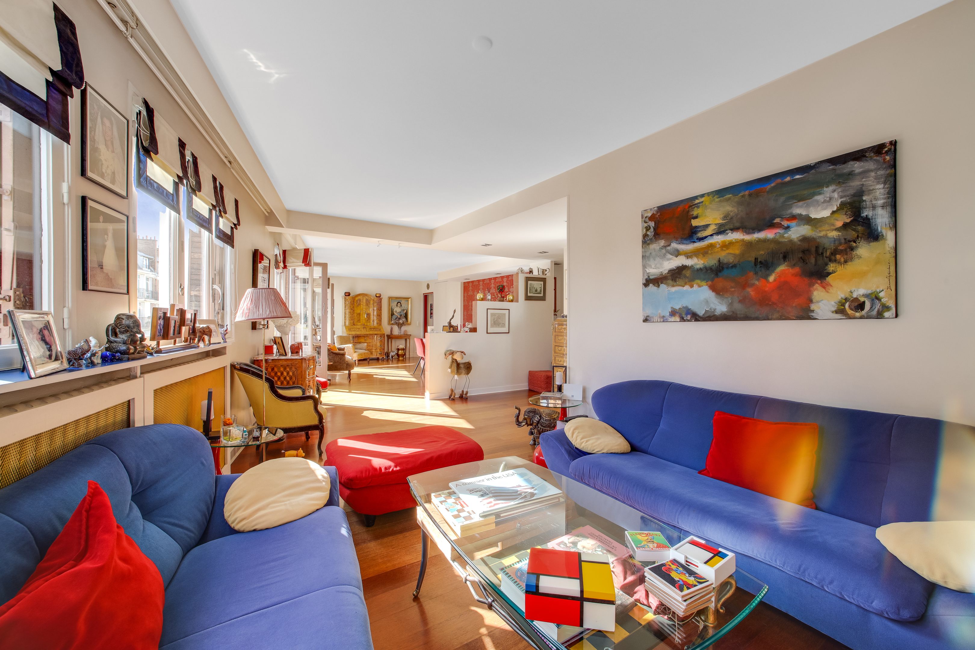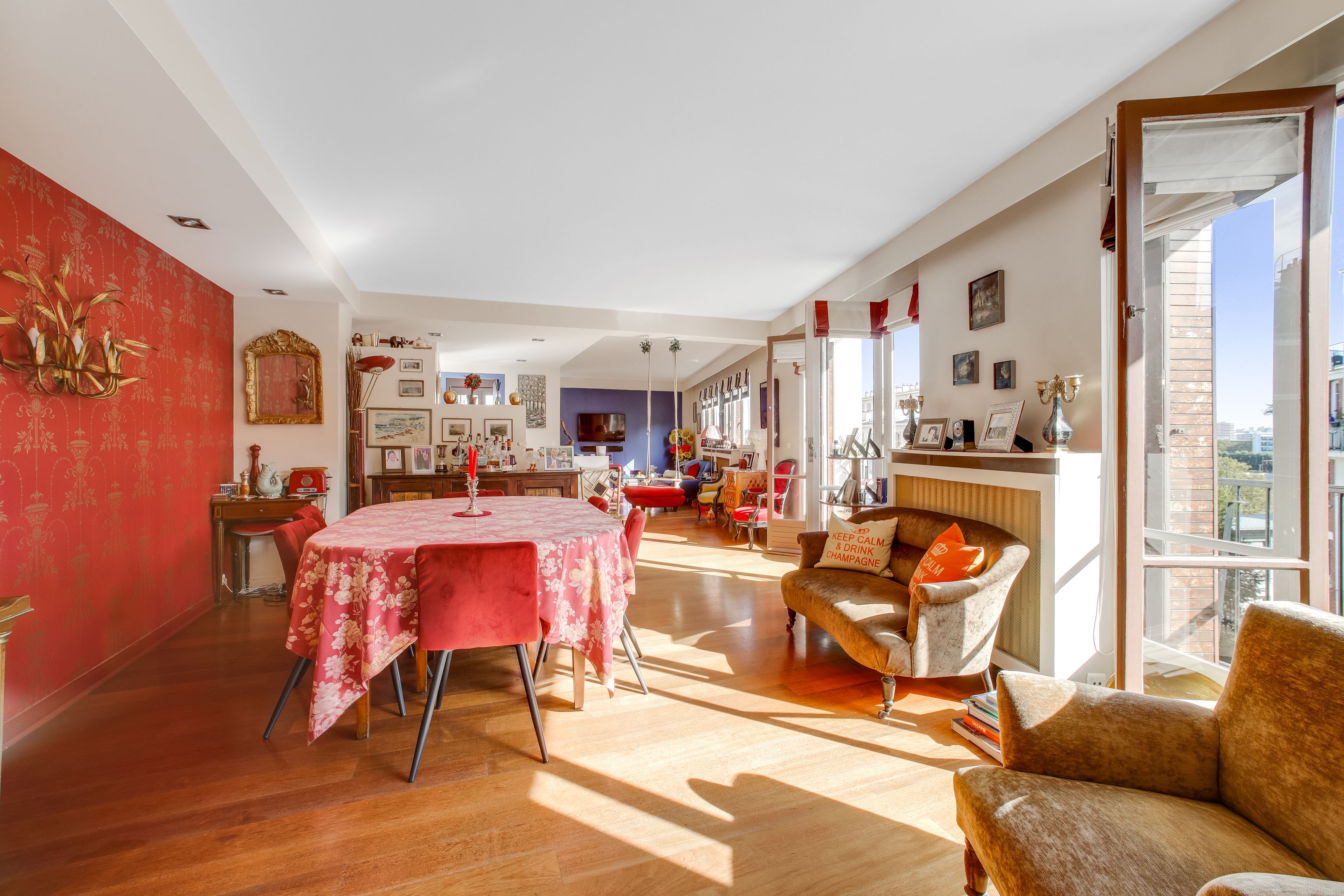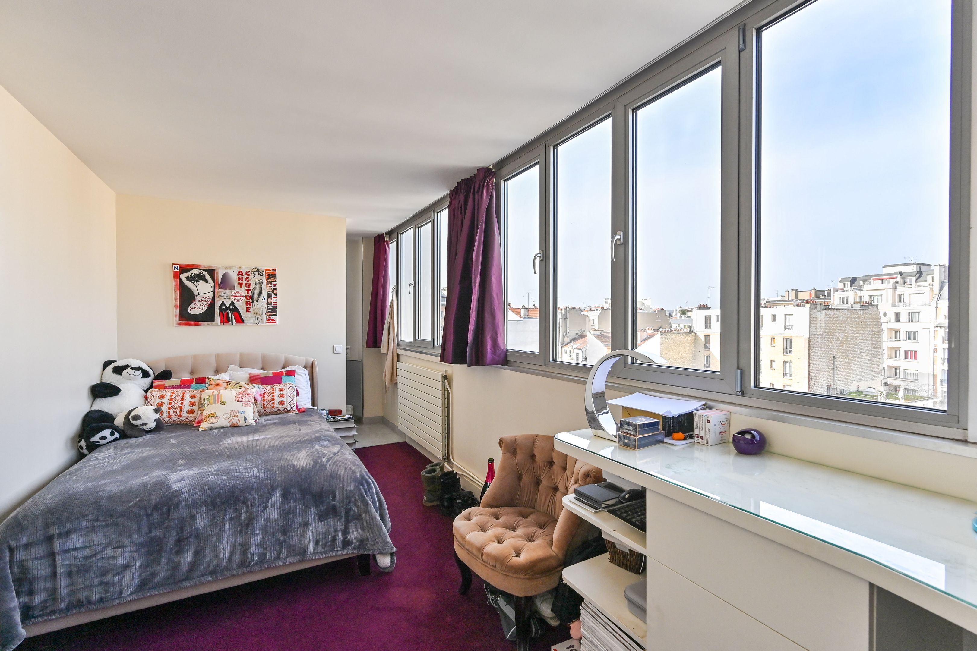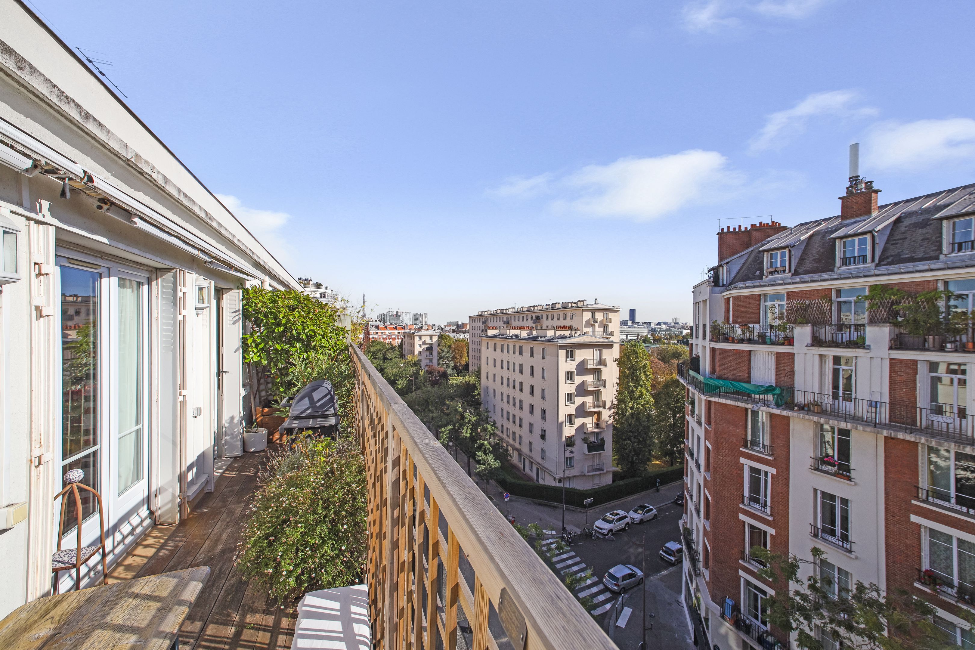 Recent building, sunny 207 m² duplex apartment on the 6th and 7th floors, with unobstructed views. Second floor: entrance hall, living room with balcony, dining room, 4 bedrooms, 3 shower rooms, separate kitchen. On the second level, fitted kitchen with 15m² terrace, large bedroom, bathroom, toilet. 2 cellars.
