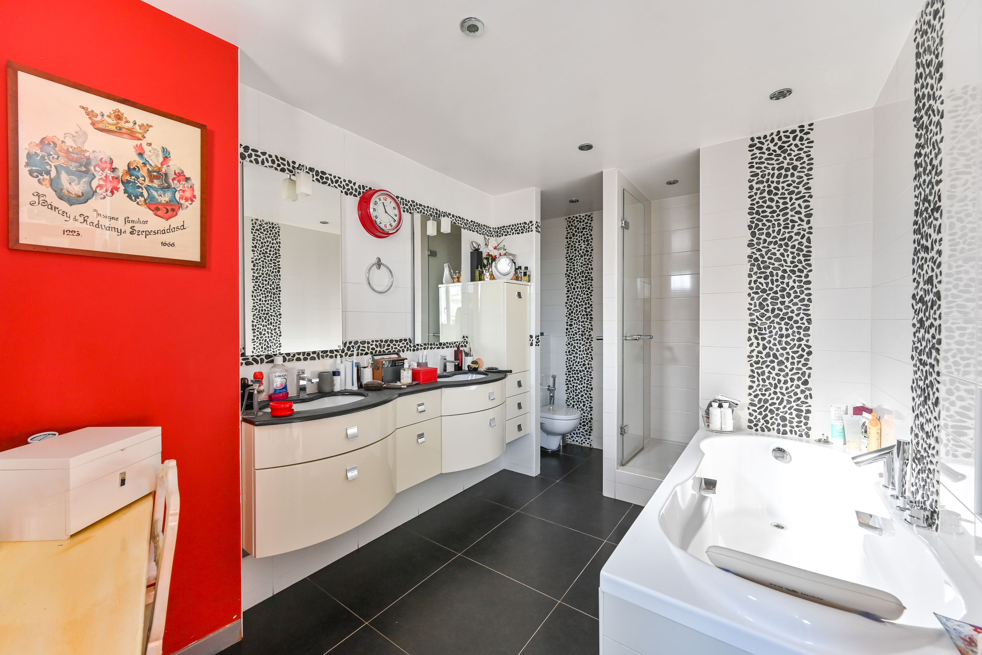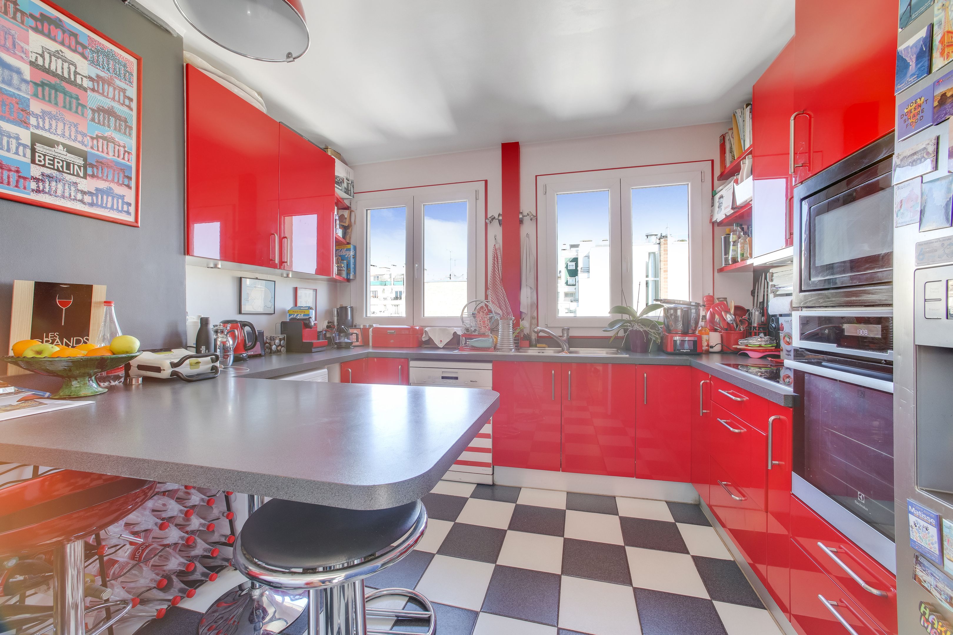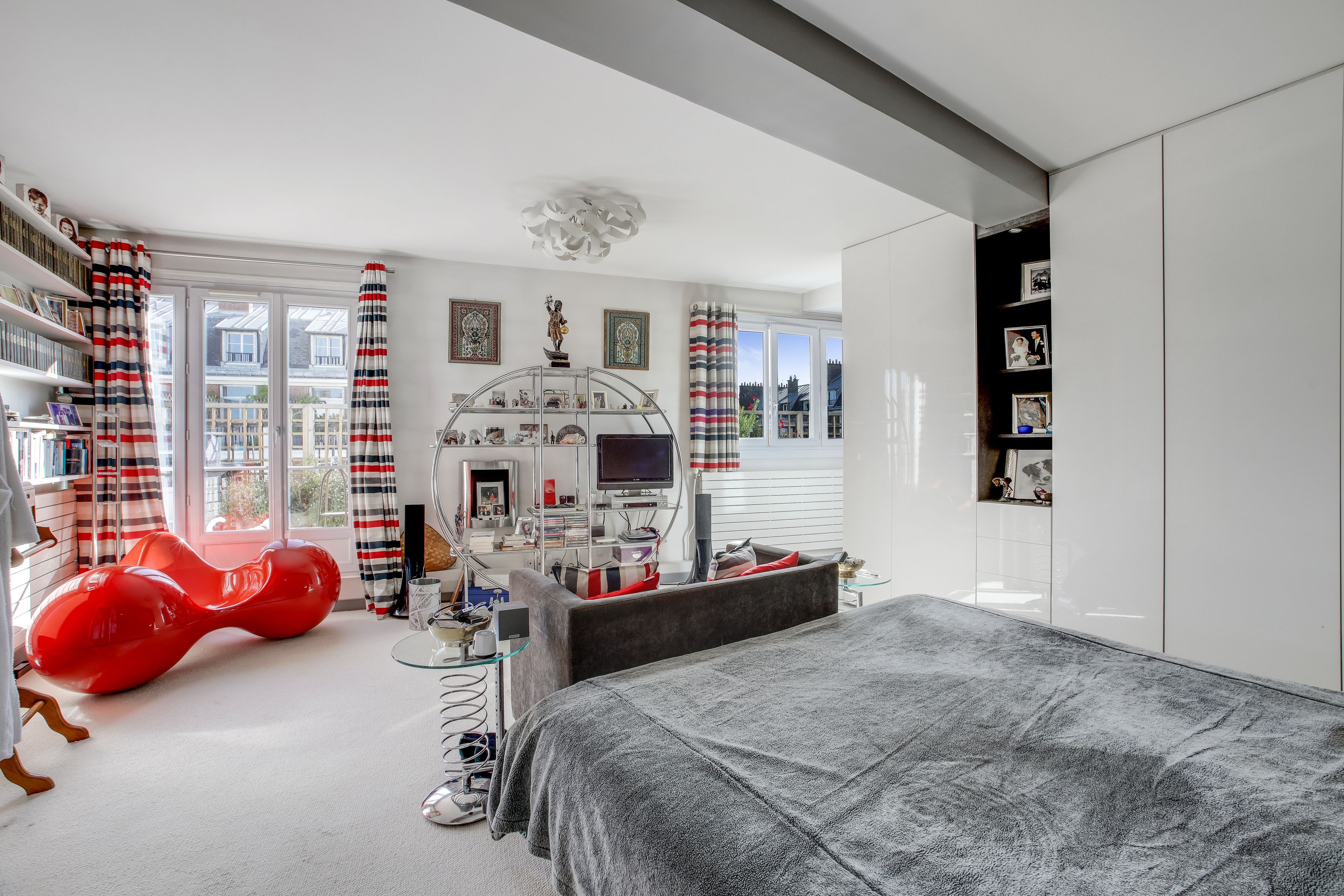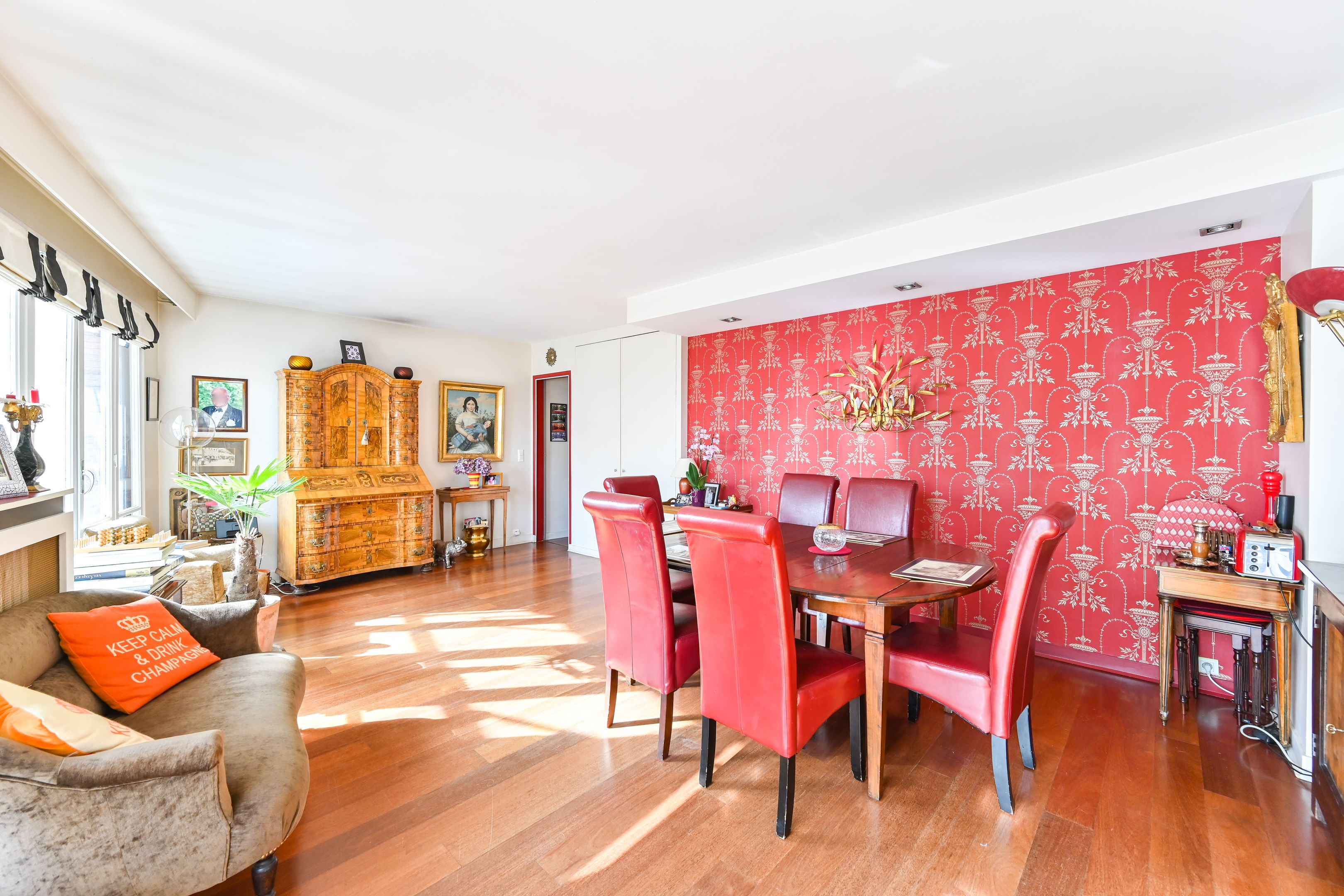Recent building, sunny 207 m² duplex apartment on the 6th and 7th floors, with unobstructed views. Second floor: entrance hall, living room with balcony, dining room, 4 bedrooms, 3 shower rooms, separate kitchen. On the second level, fitted kitchen with 15m² terrace, large bedroom, bathroom, toilet. 2 cellars.