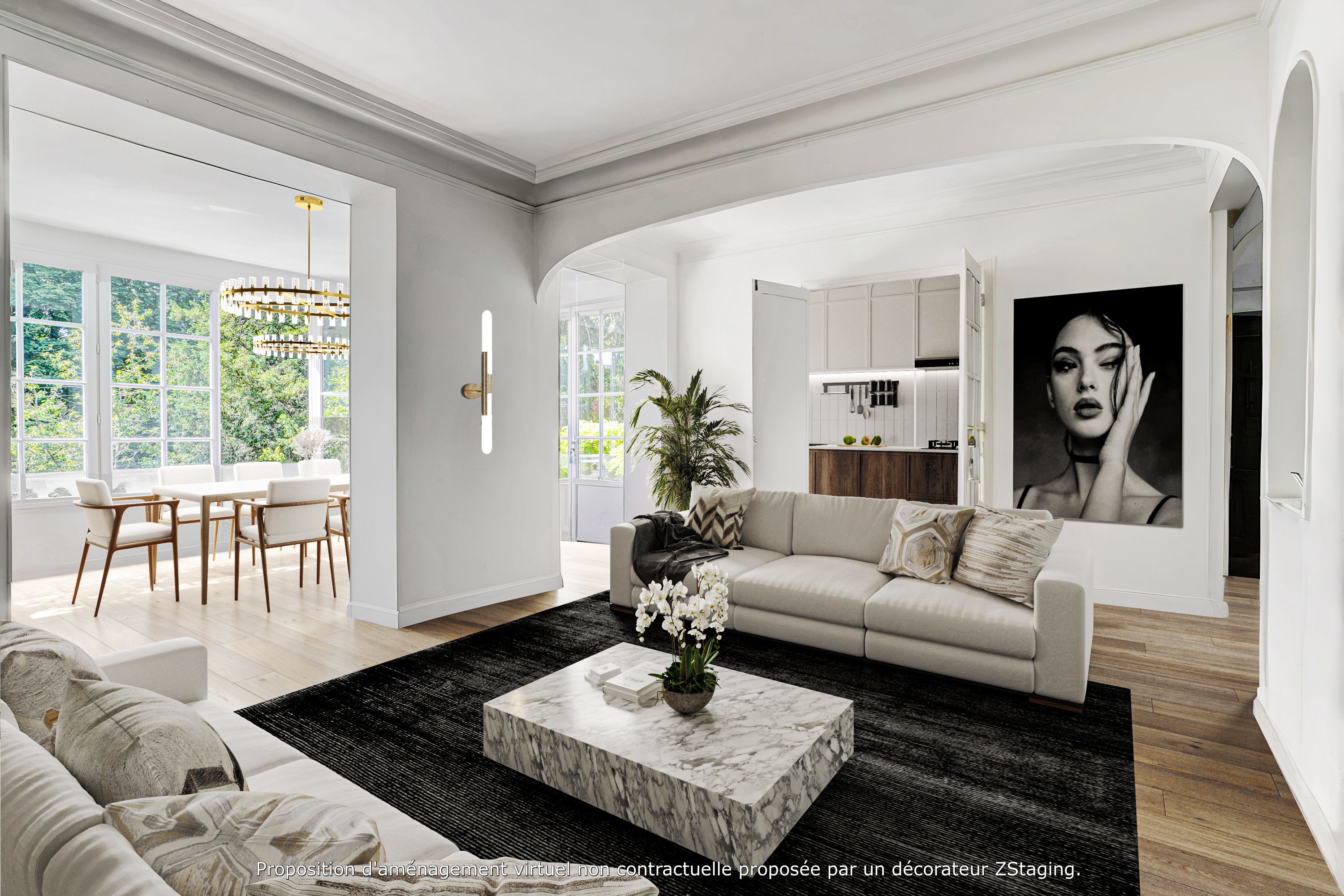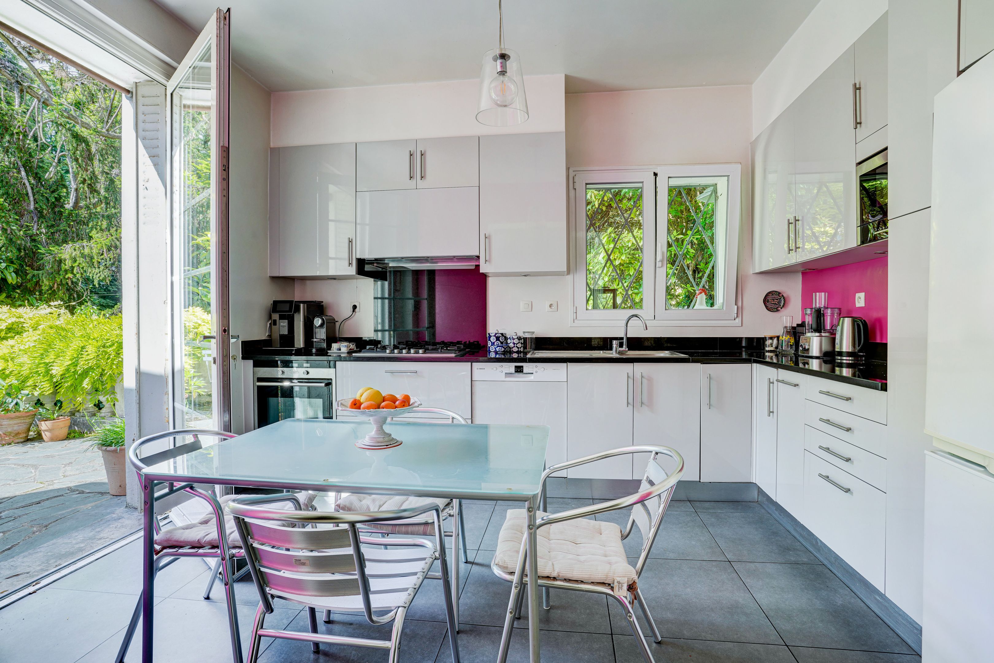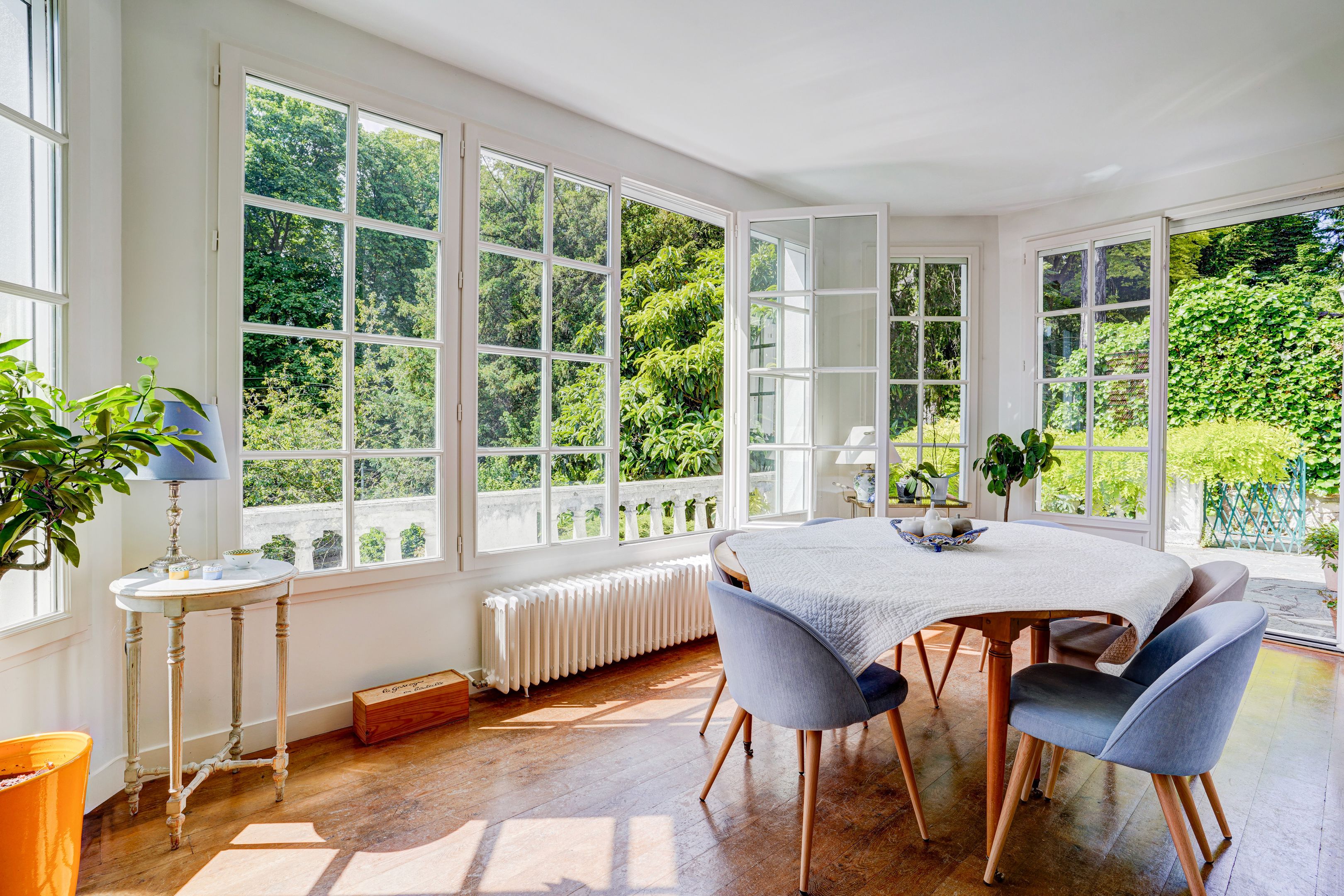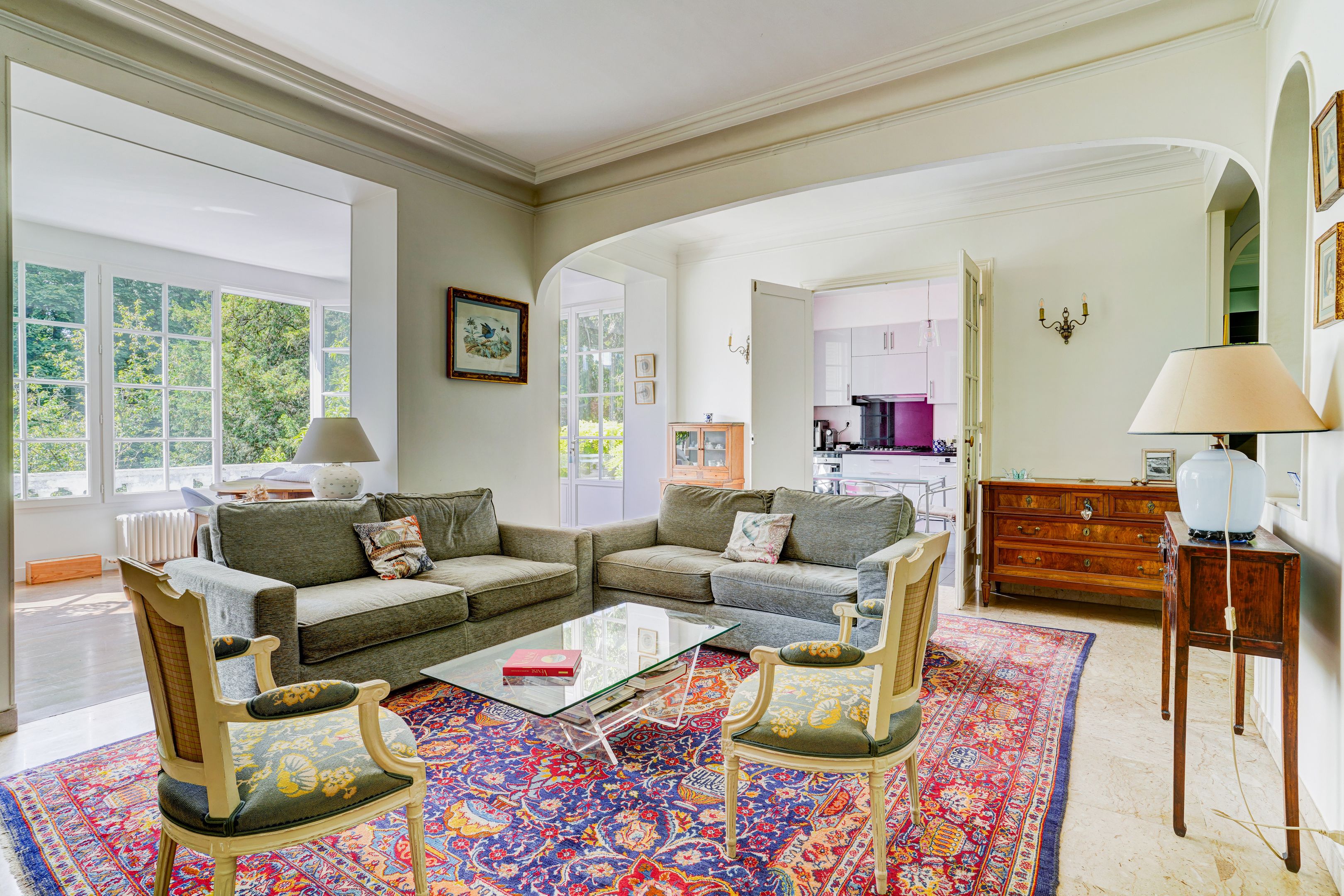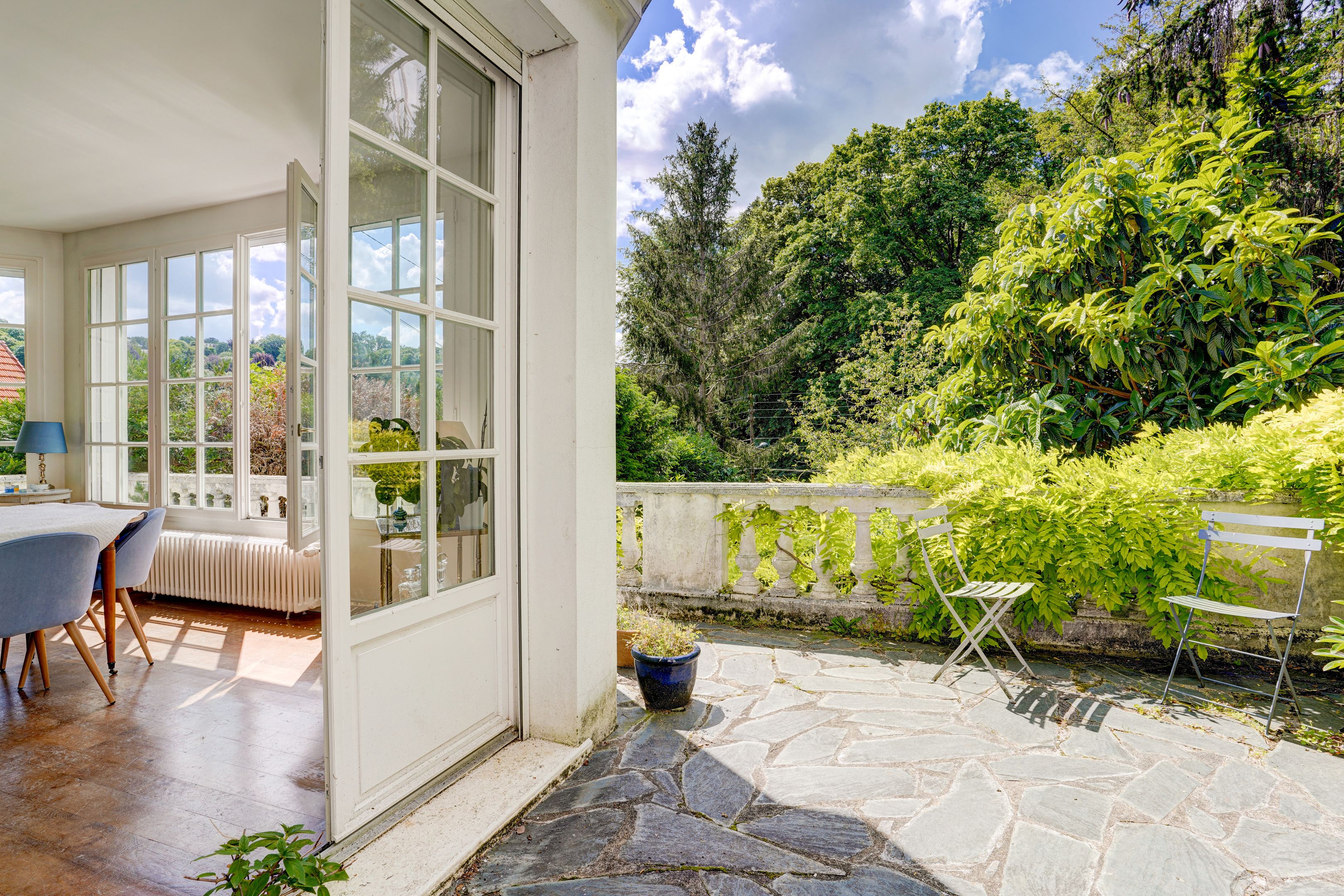 Breteuil Yvelines. 10-minute walk from Bougival station (Saint-Lazare line) and schools, elegant residence built in 1870, in the historic Impressionist district, offering a peaceful, wooded setting. Set in 583 m² of grounds, with 150 m² of living space and 170 m² of floor space, it features 6 bedrooms spread over 2 levels and 2 terraces. From the entrance, the reception area comprises a living room with fireplace, library corner and dining room with separate kitchen opening onto a south-facing terrace. Terrace at rear of house. 1st level: bedroom with bathroom/shower, two further bedrooms and a study. 2nd level: two bedrooms, a games room, a bathroom and an office. Additional 82 m² basement (storeroom, workshop, laundry room, boiler room, storage space) and garage. School and high school nearby. Contact : Nathalie Faes : 06 22 85 50 46.