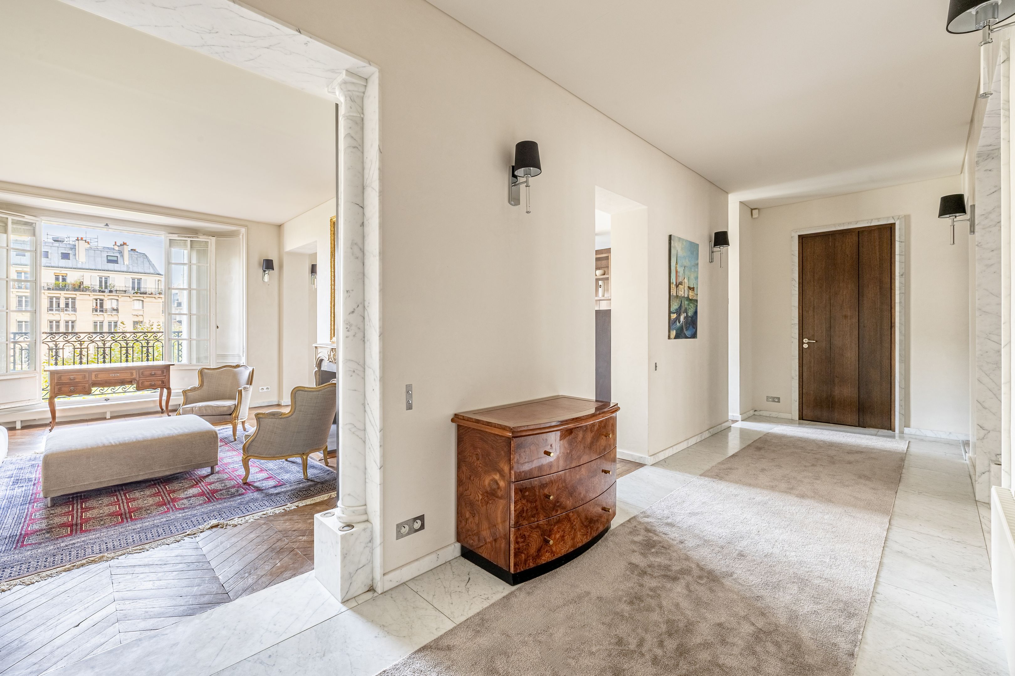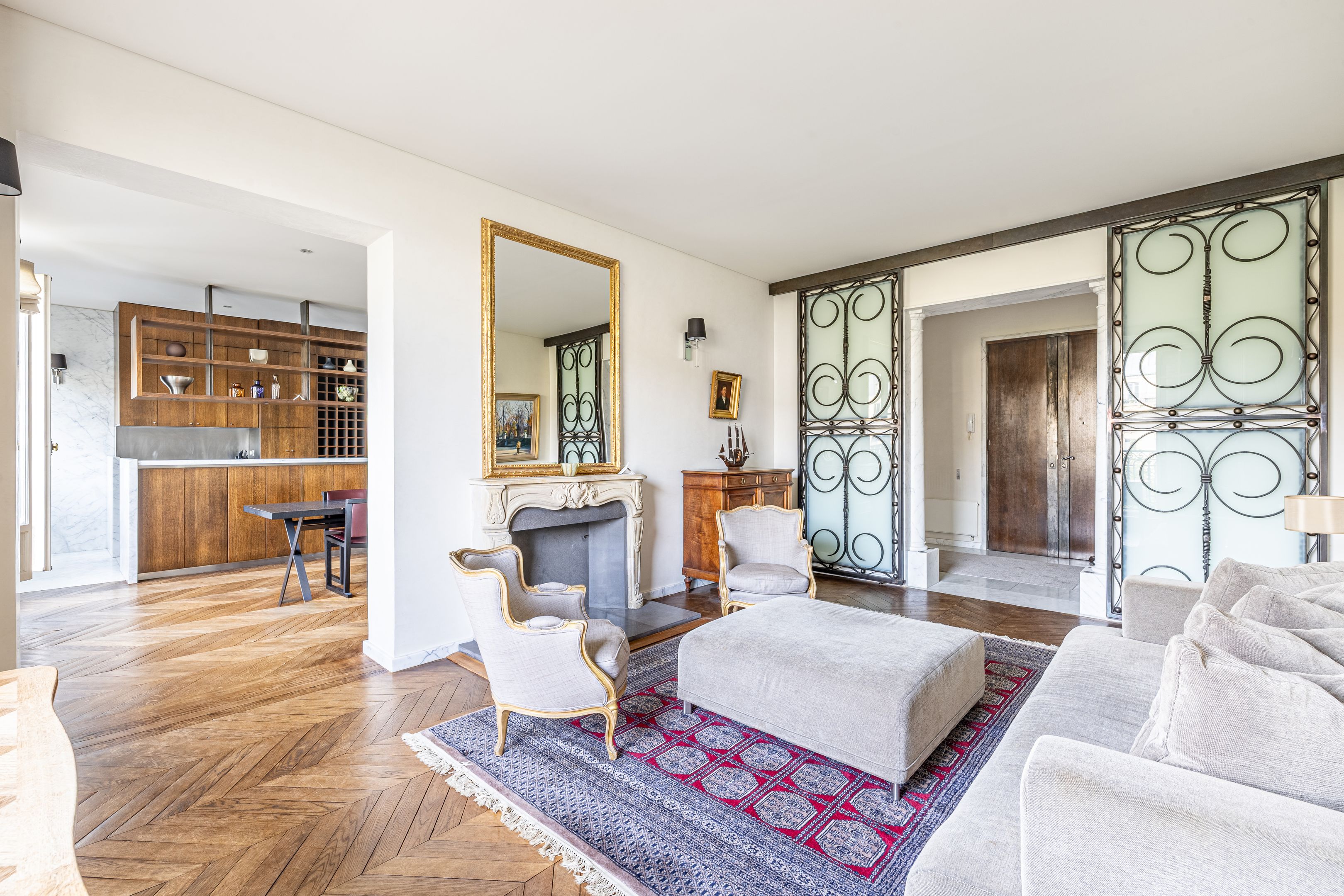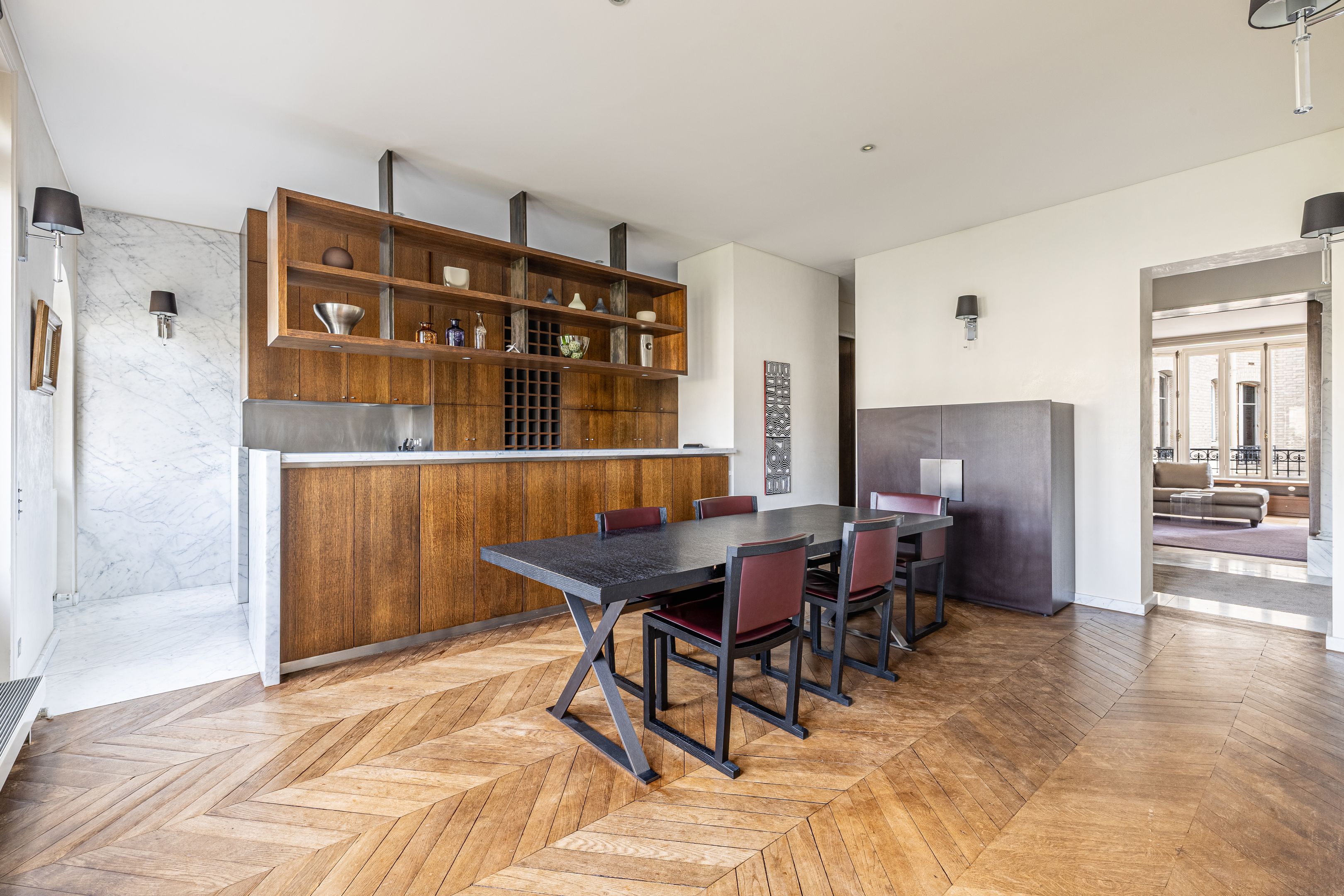 Antique building of very high standing with janitor services, ideally located on avenue de Breteuil, 174 m² apartment on the 4th floor, served by elevator, the only one on the floor, both reception and family room, benefiting from a pleasant view of the tree-lined avenue, a functional layout, old-world charm and excellent lighting. Entrance gallery, living room, dining room with open-plan kitchen, family room - TV lounge, three good-sized bedrooms, two shower rooms with toilet, bathroom with toilet, plenty of storage space. Three cellars. Studio 21 m² (19.41 m² Loi Carrez) on top floor in perfect condition, with additional view of the Eiffel Tower, for €370,000.