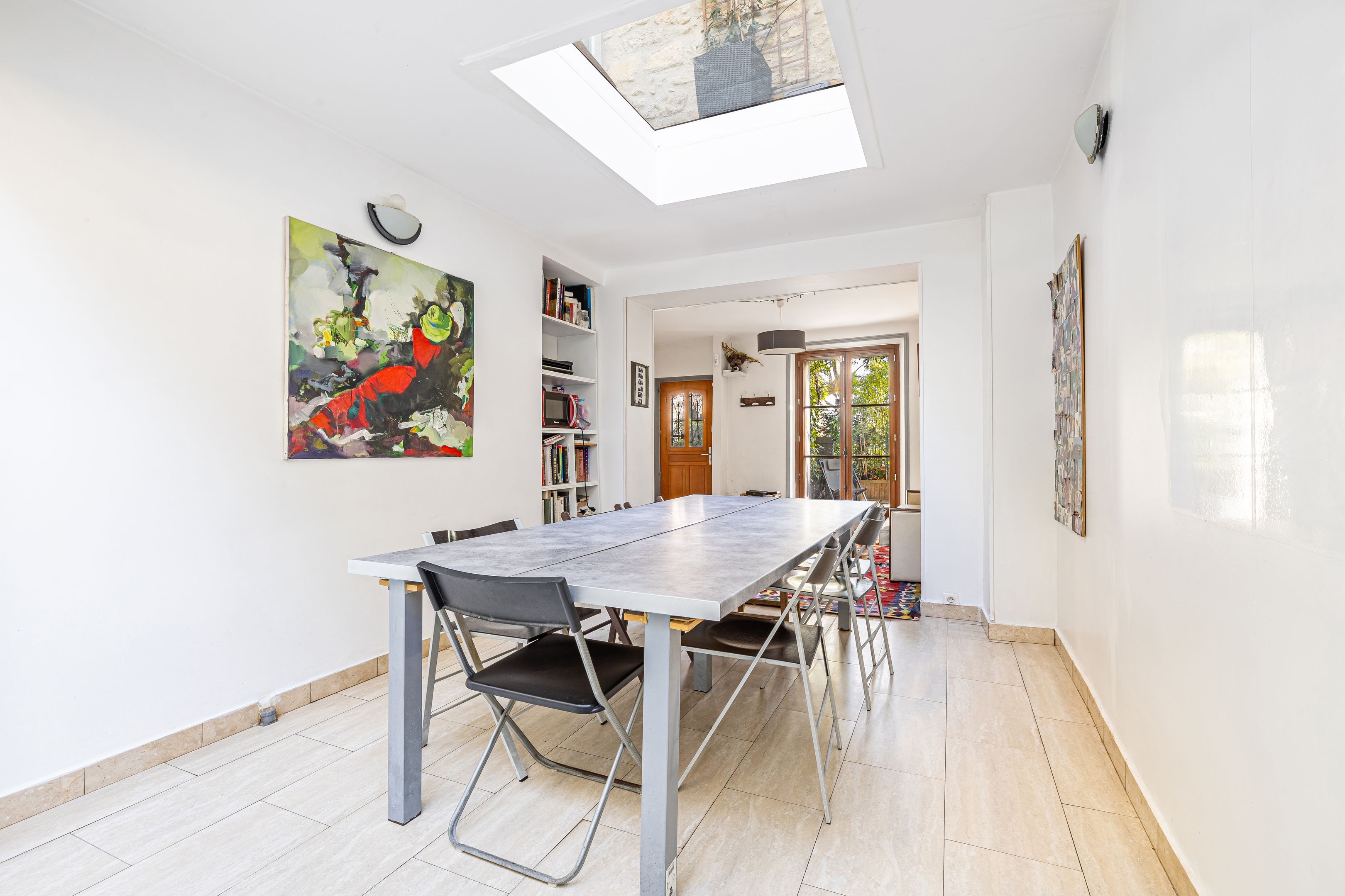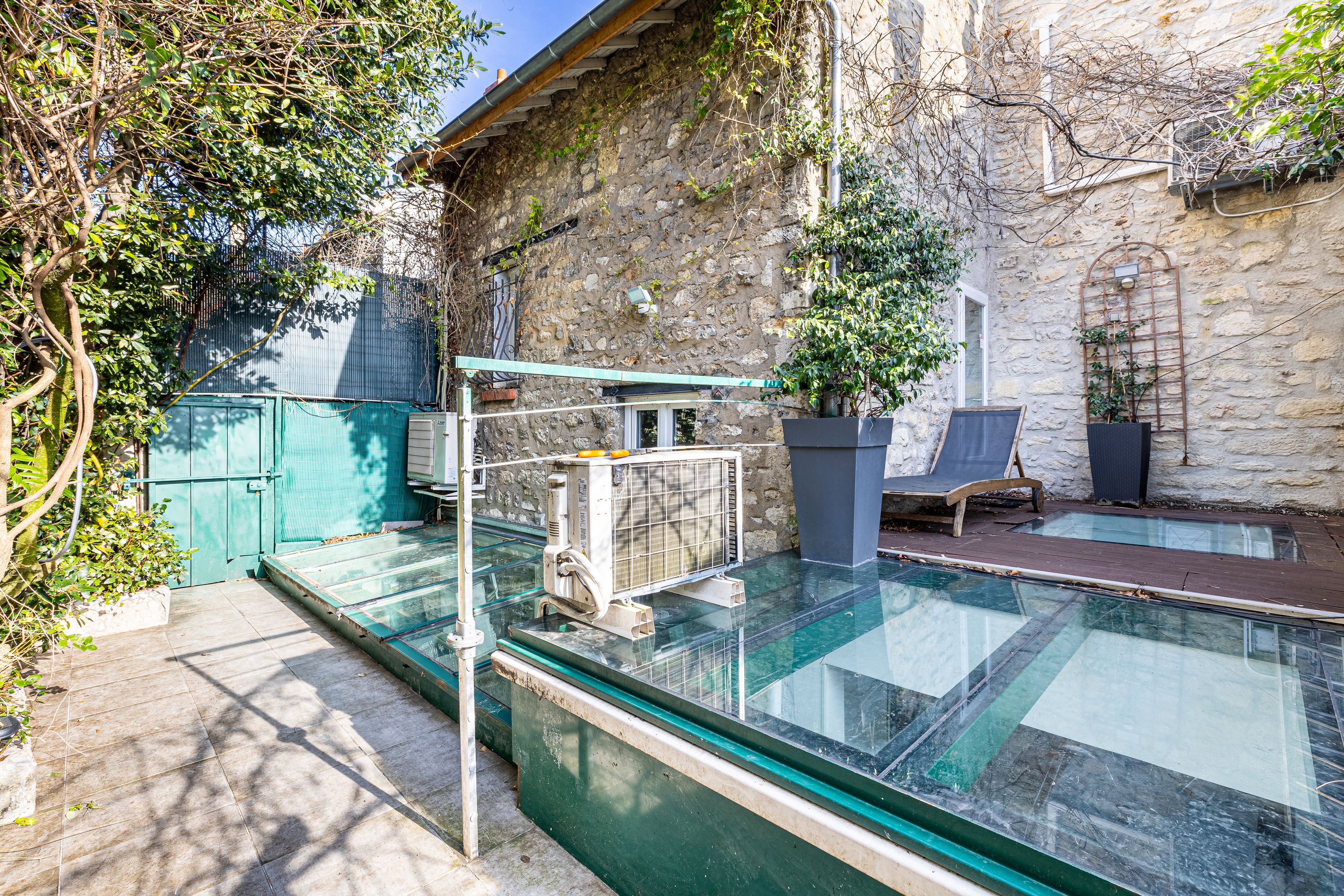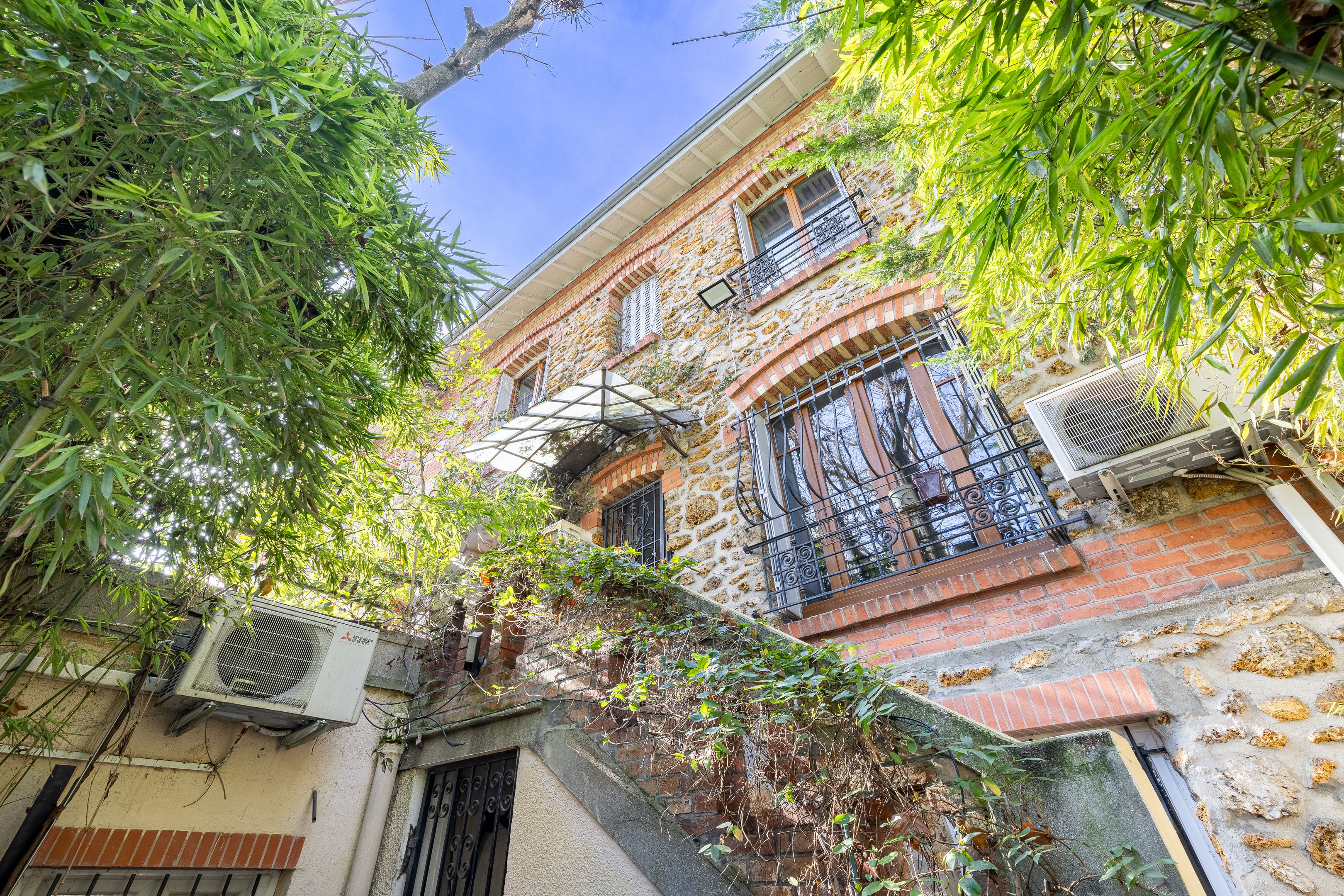 "Campagne à Paris", close to Place Gambetta, shops and transport, freehold family home of approx. 181m² with two terraces. Ground floor: garage, bedroom, bathroom with toilet, storage room, laundry room. 1st floor: entrance hall, living room, dining room, conservatory, separate kitchen. 2nd floor: two bedrooms, bathroom, large terrace. 3rd floor: bedroom with dressing room. Reversible air-conditioning throughout the house.