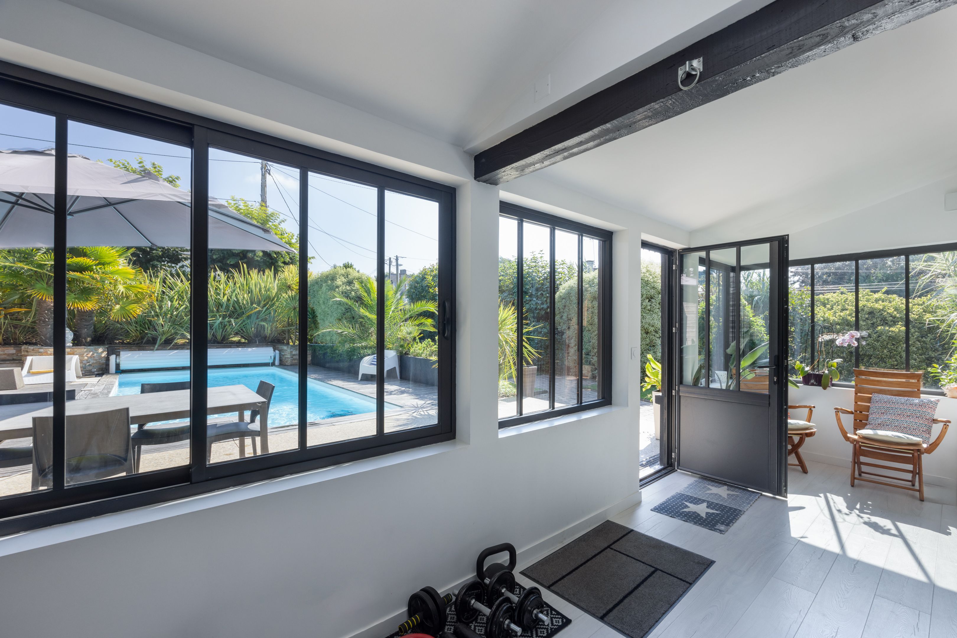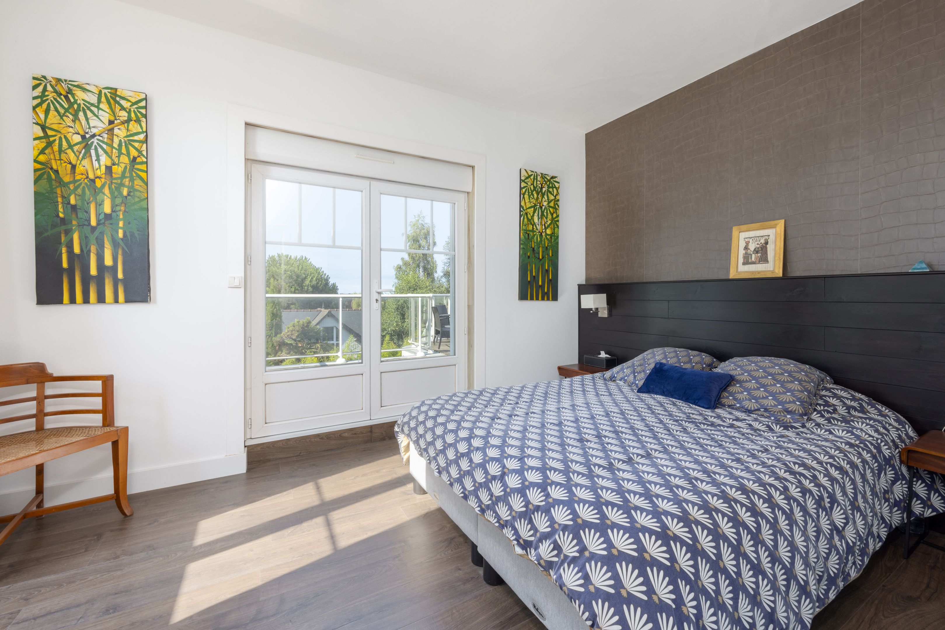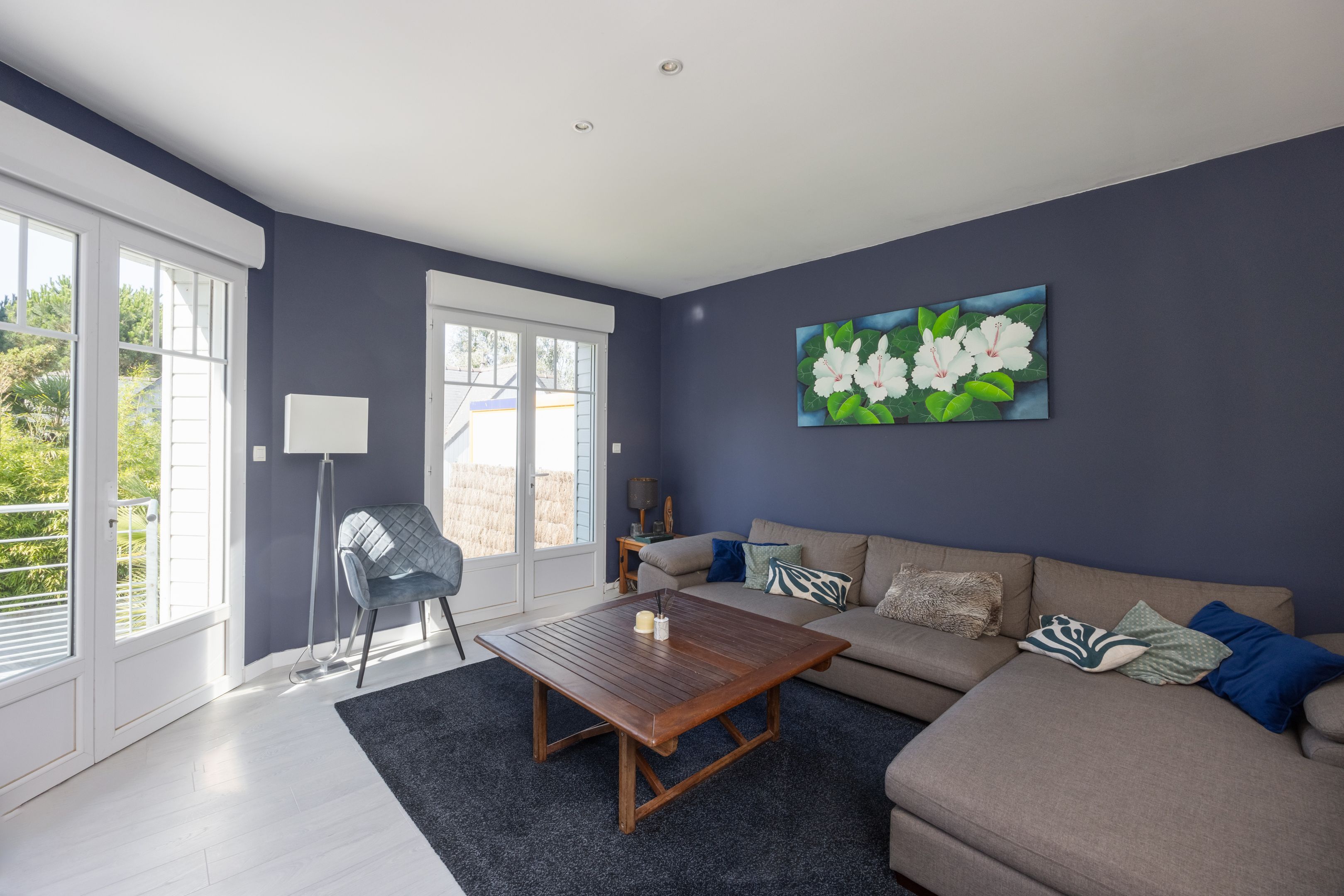 600m from Prieuré beach, opposite the equestrian center and Port Breton park. Beautiful 173m² stone house benefiting from plenty of natural light, a good layout and a quiet, wooded setting. Fully renovated first floor: living room with fireplace, vast, light-filled, west-facing space with fully-equipped kitchen and dining room, billiard room, south-facing veranda, shower room. First floor: 4 bedrooms, one of which is generous in size with a large terrace, shower room. Very pleasant, sunny exterior with swimming pool, lawn area and attractive plant diversity. Exterior parking and double garage.