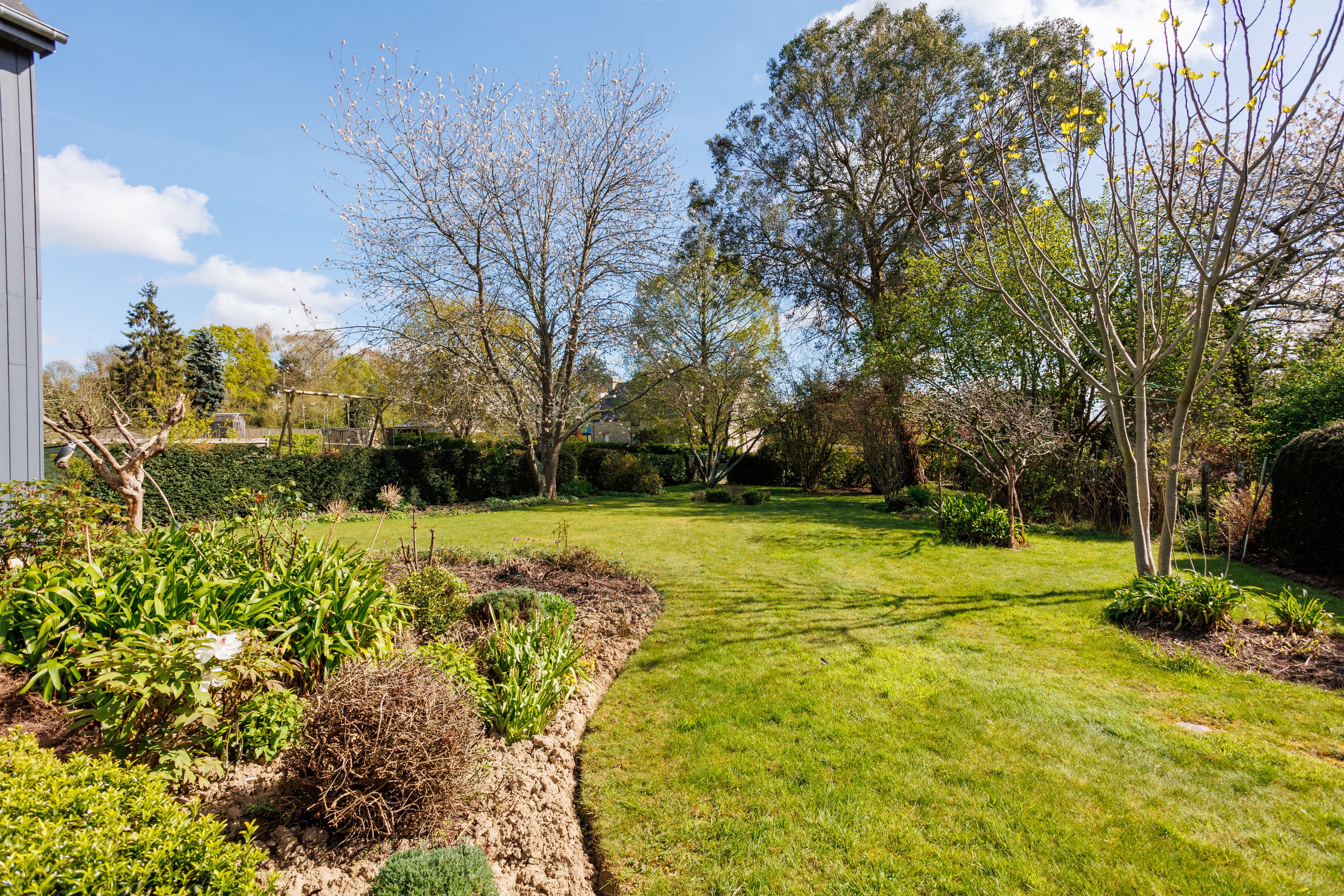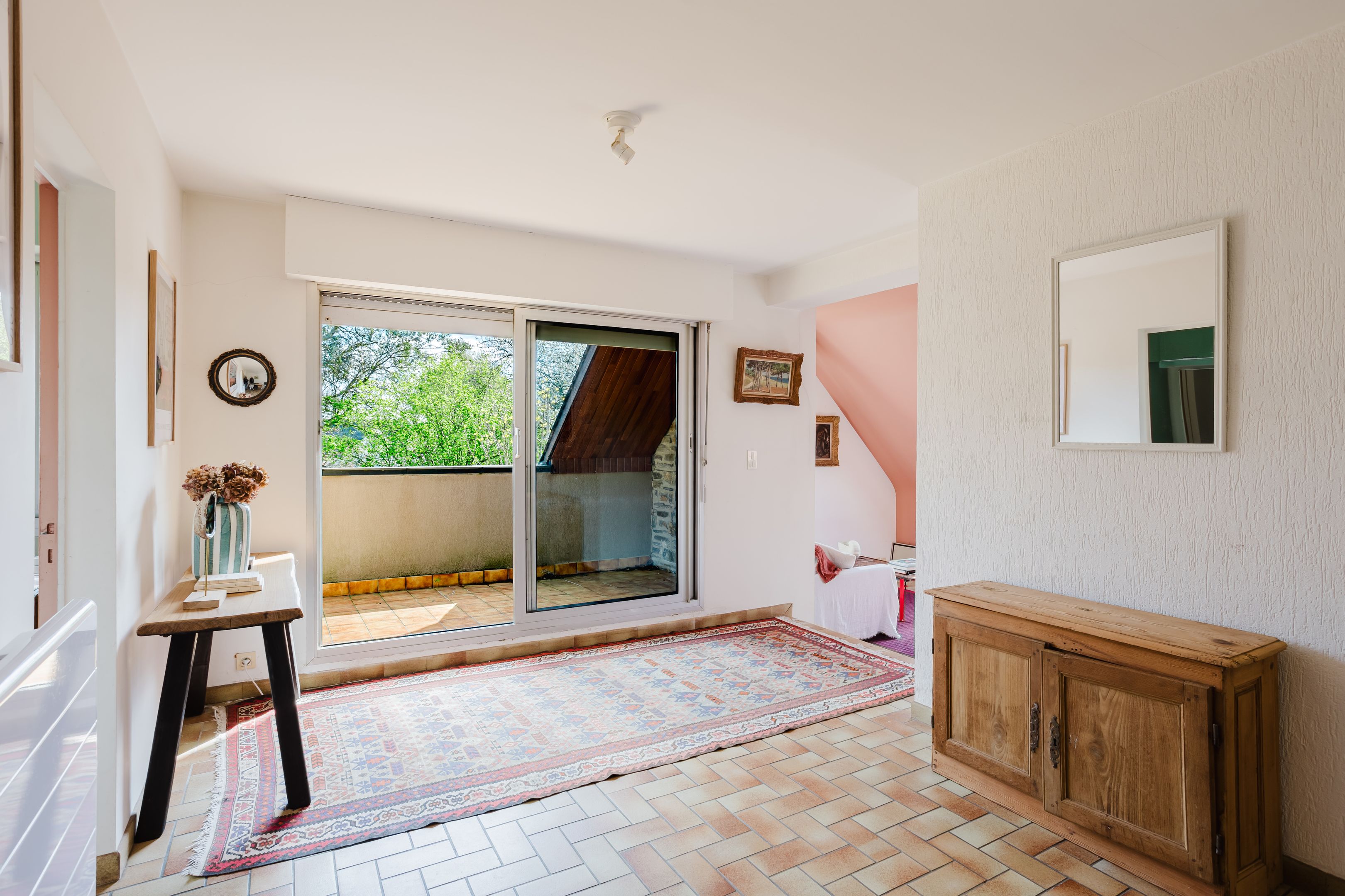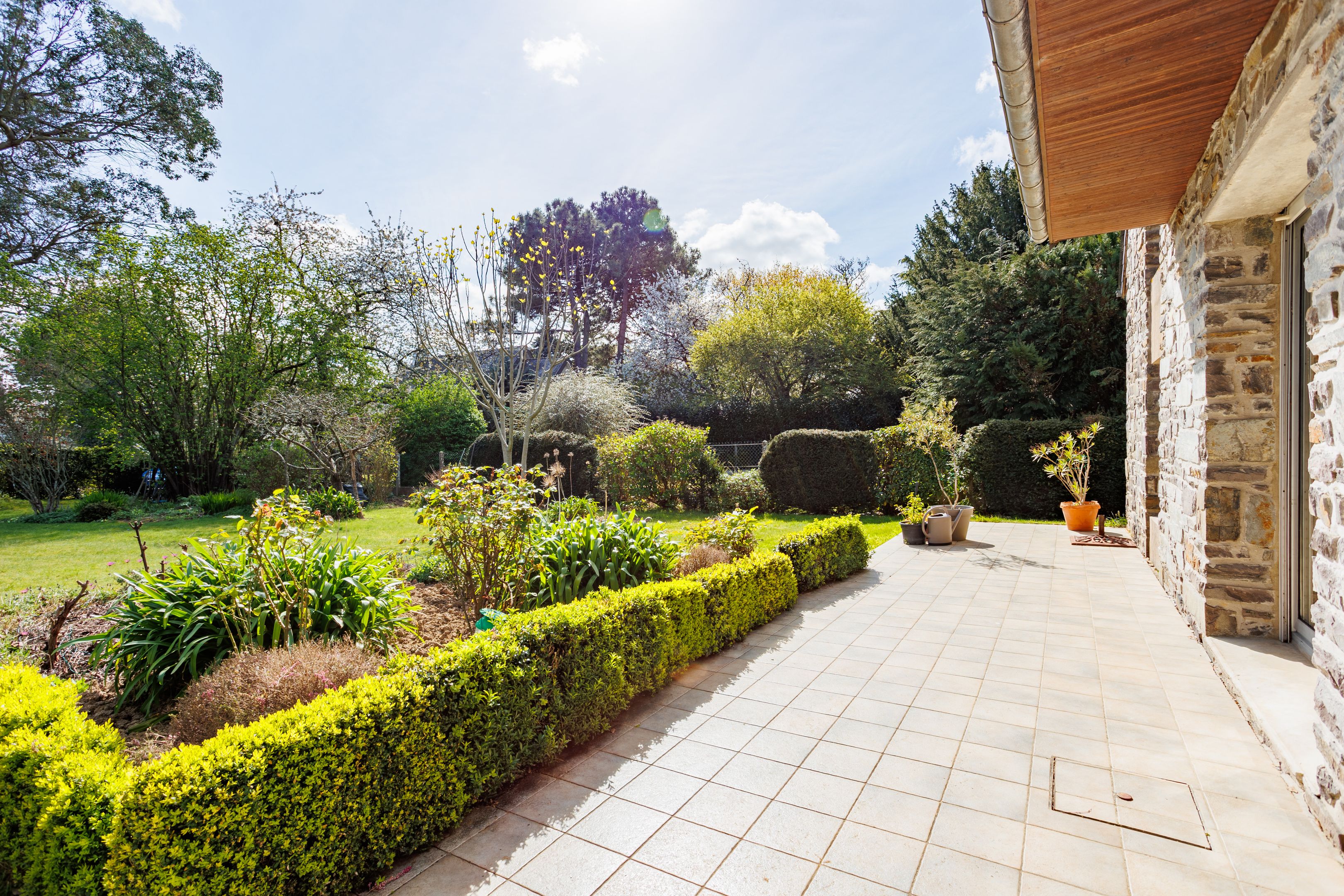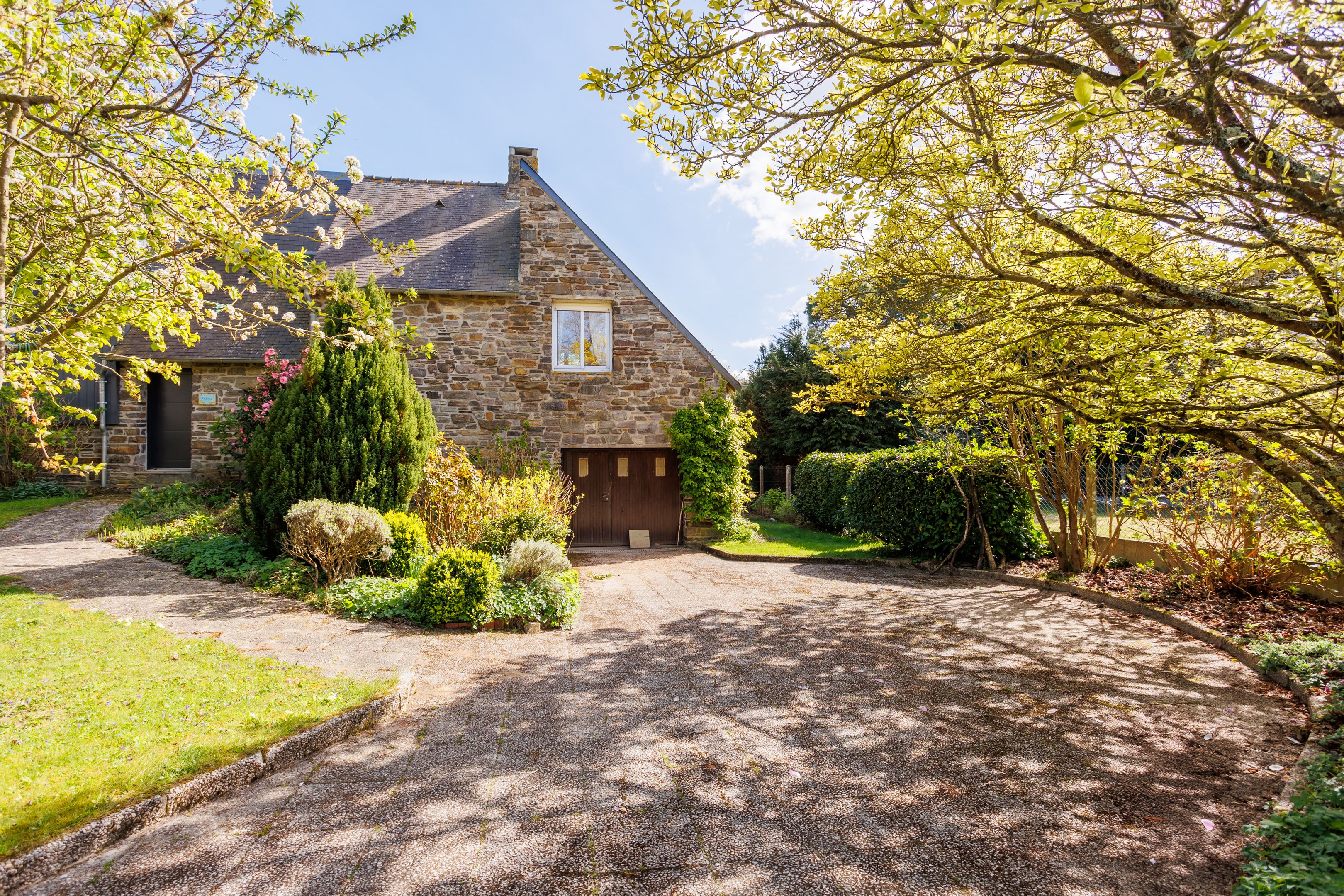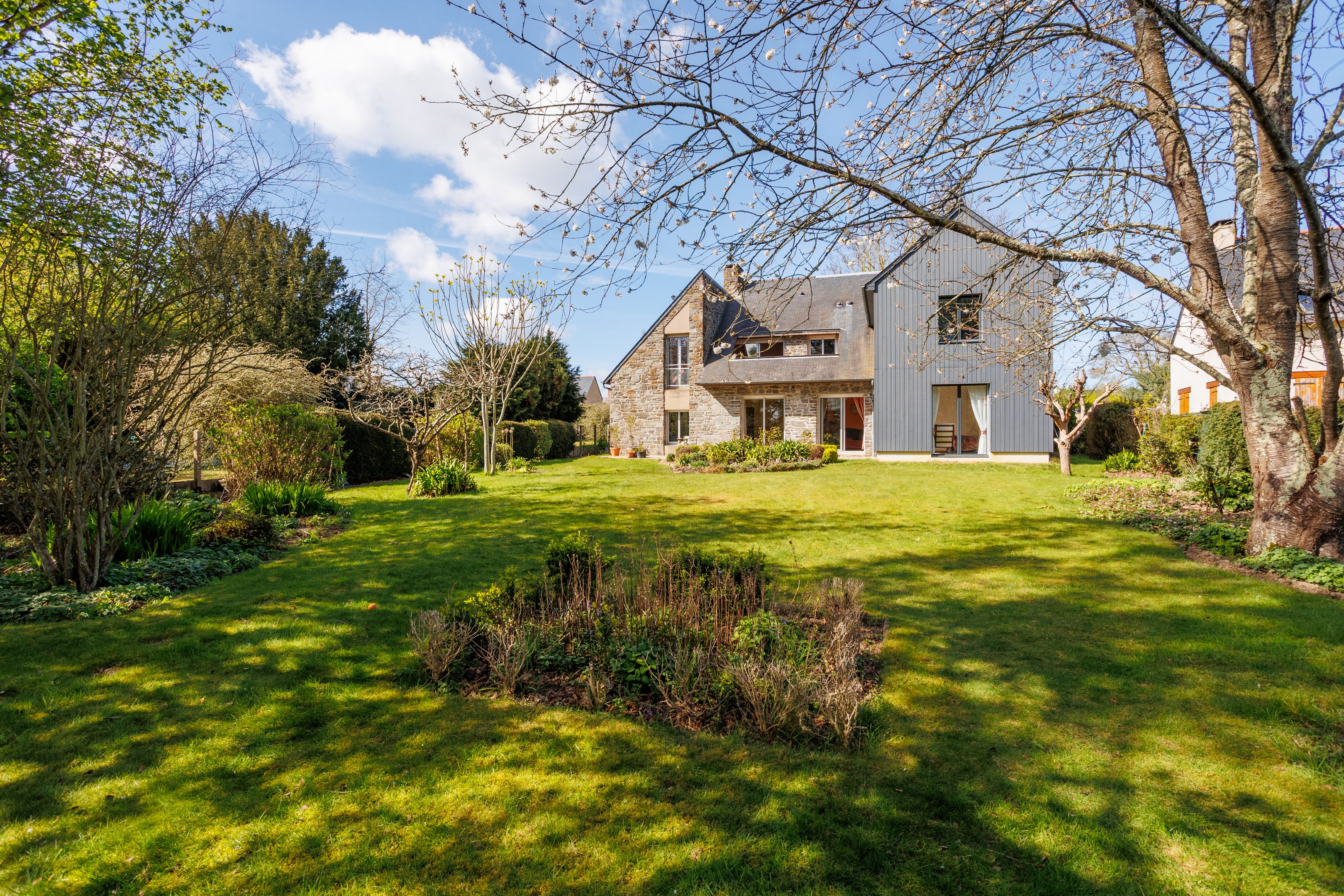 300m from the beach, in a quiet, residential street in Le Minihic-sur-Rance. 166m² house benefiting from a privileged location, south-west exposure and a large 1300m² exterior. Entrance hall, bright triple-exposed living room, dining room, pleasant balcony overlooking the garden, fitted kitchen, two bedrooms, study, shower room. Garden level: 3 bedrooms opening onto the terrace, shower room, bathroom, laundry room or workshop, cellars. Garage and outdoor parking. Beautiful, sunny landscaped garden, a haven of peace, vegetable garden. Rance and slipway nearby.