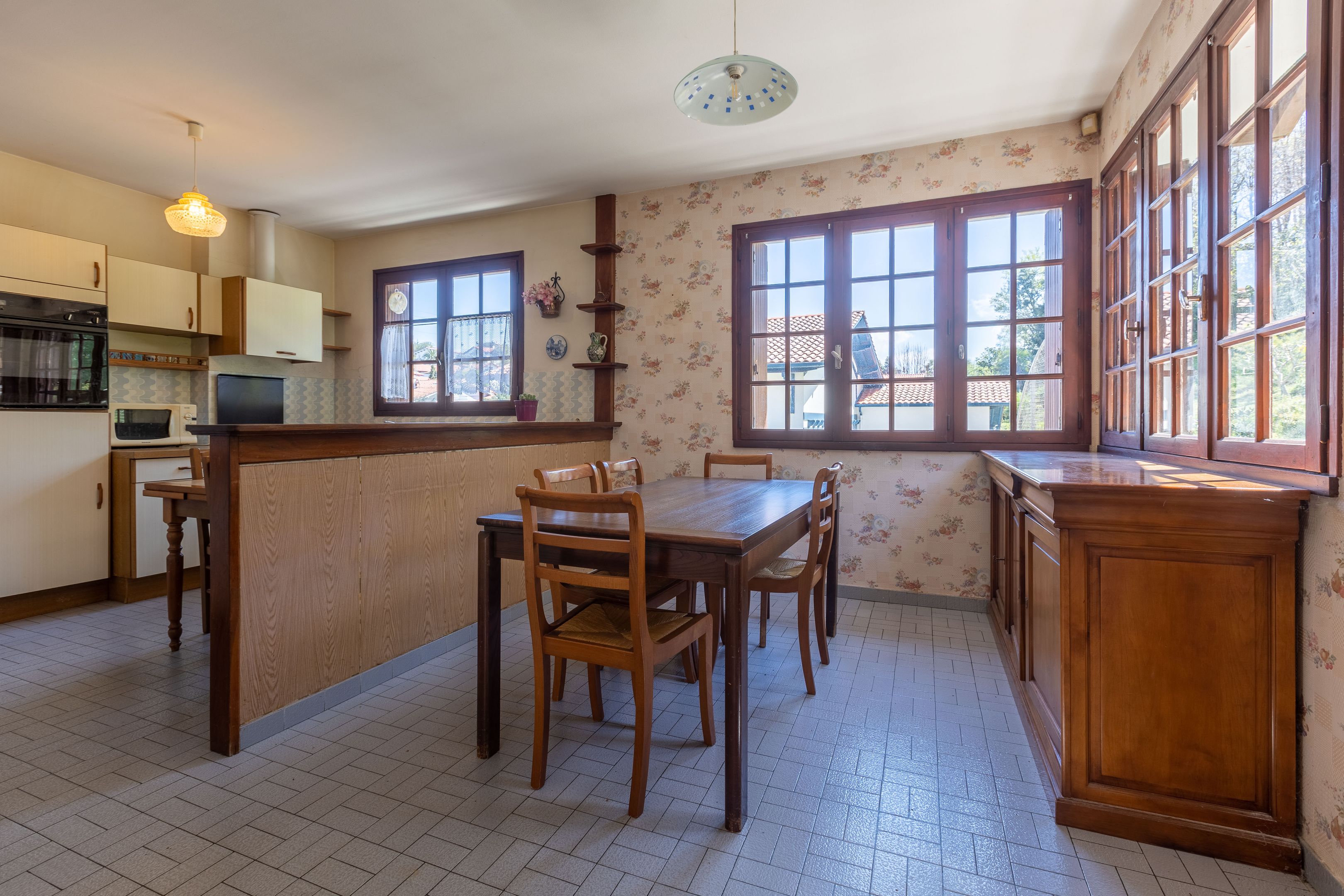 In the heart of a quiet residential neighbourhood, ideally located near all shopping facilities, beautiful 150m²/1,614ft² Basque-style house built on a 750m²/8,072ft² plot of land. Upstairs: entrance hall, living room opening onto a terrace and a garden, kitchen, 4 bedrooms (3 with wraparound balcony and one with direct access to the garden), shower room, toilet. On the ground floor: 50m²/538ft² apartment with entrance hall, lounge, bedroom, shower room and toilet. 46m²/495ft² garage with 2 entrances. 40m²/430ft² attic space which can be converted.