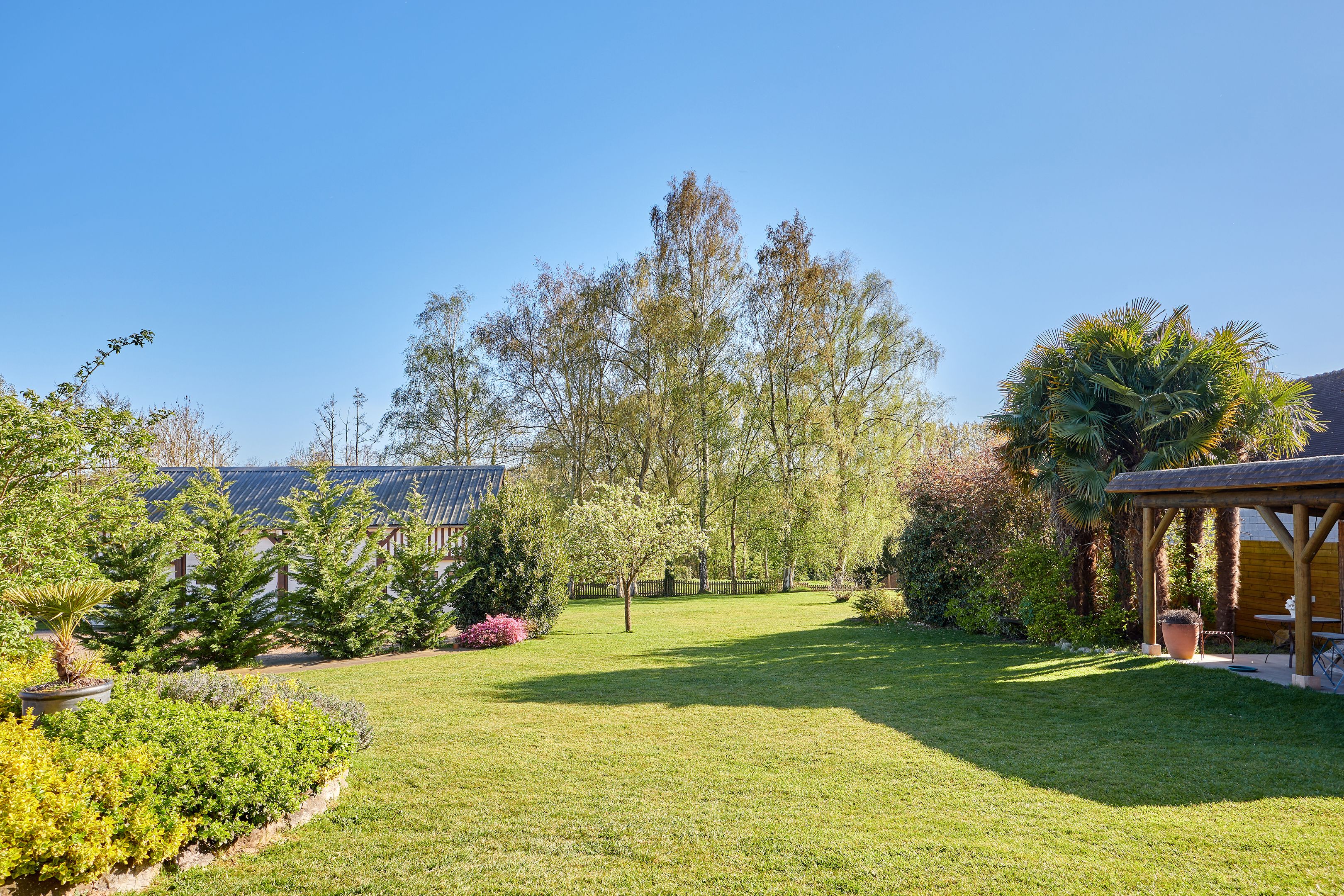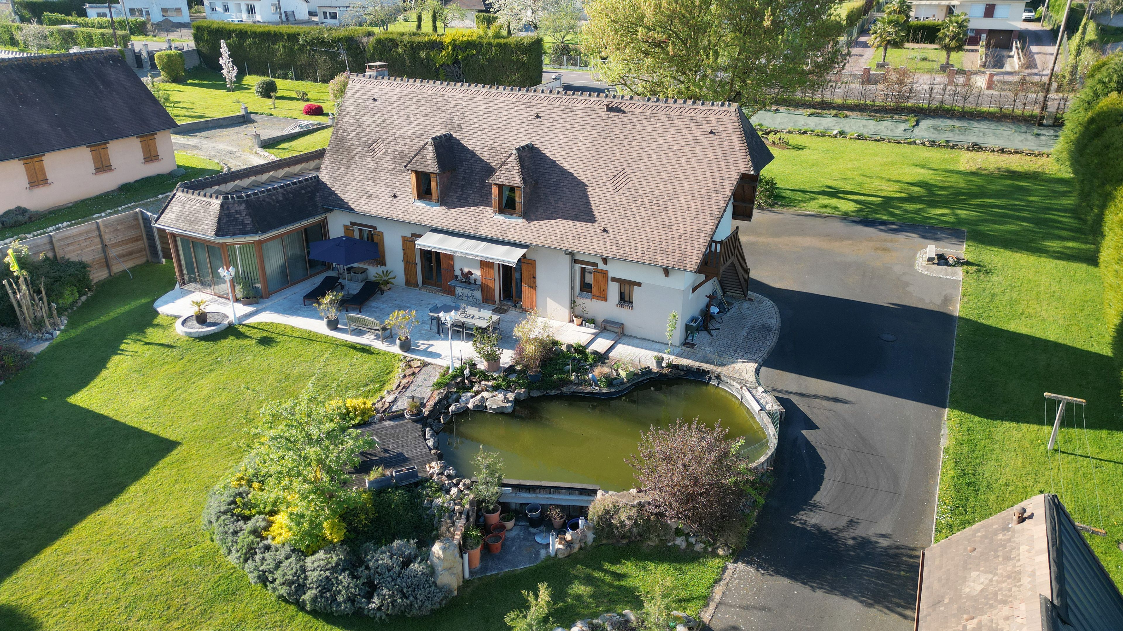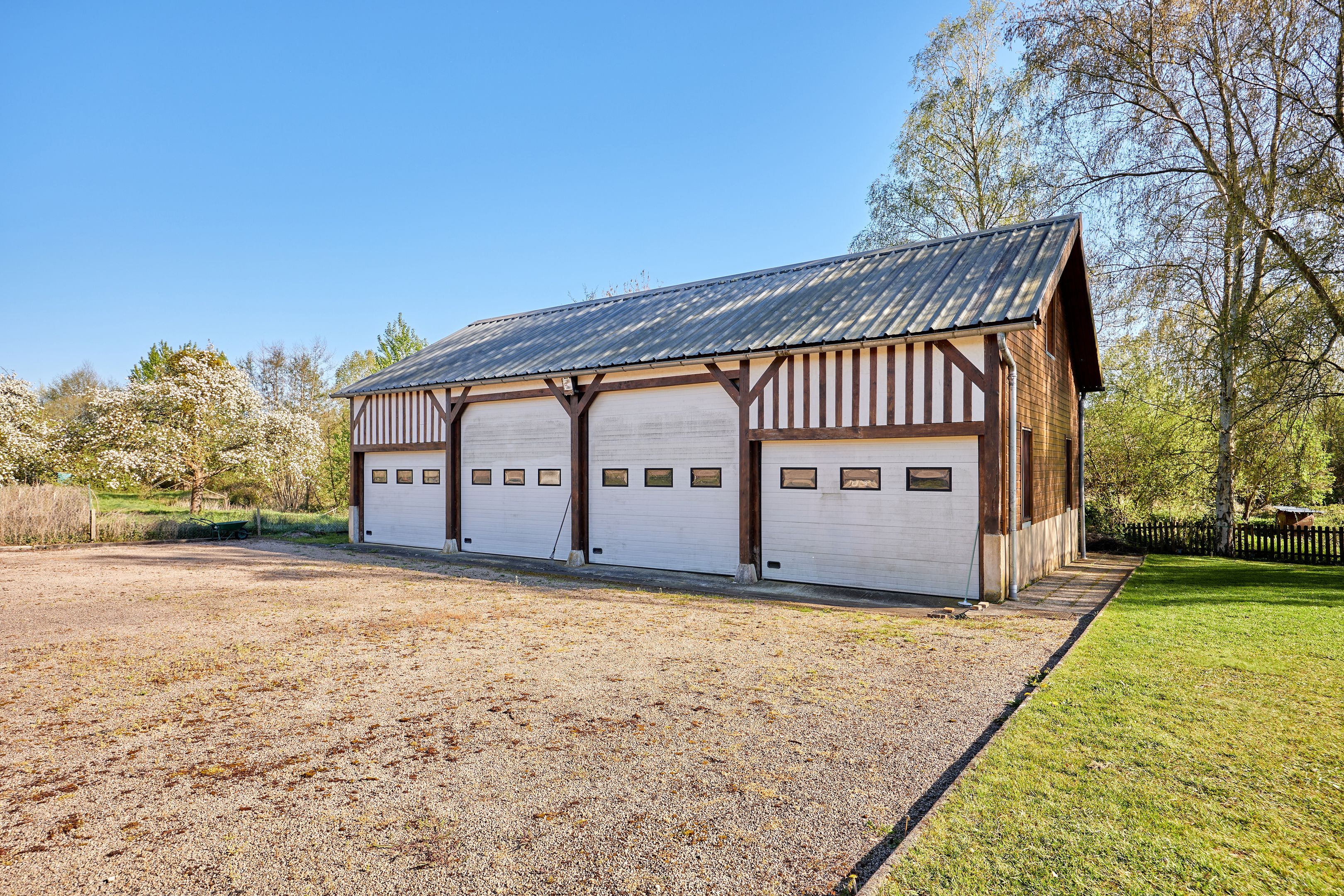 Near Pont-l'Évêque, 15 min from Deauville with quick access to A13, traditional 167 m² house and outbuildings set in 4000 m² of enclosed, landscaped grounds. First floor: entrance hall, guest toilet, fitted kitchen, pantry, spacious 78 m² living room with central fireplace opening onto a south-facing terrace. First floor: 4 bedrooms, one of which is en suite with independent access via an outside staircase, shower room with toilet. Outbuildings include a small house of approx. 20 m² for conversion and a connected building of approx. 150 m² for storage.