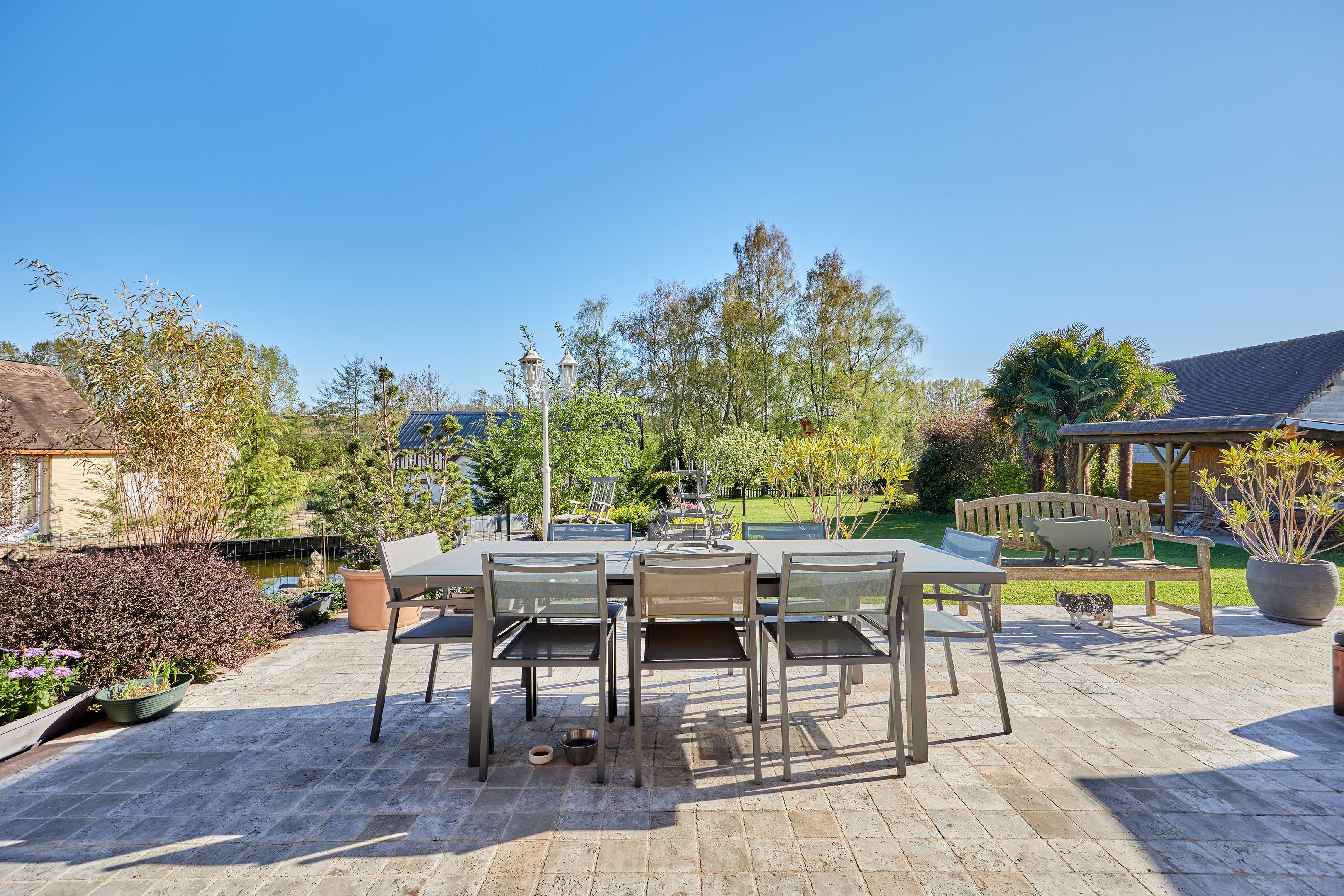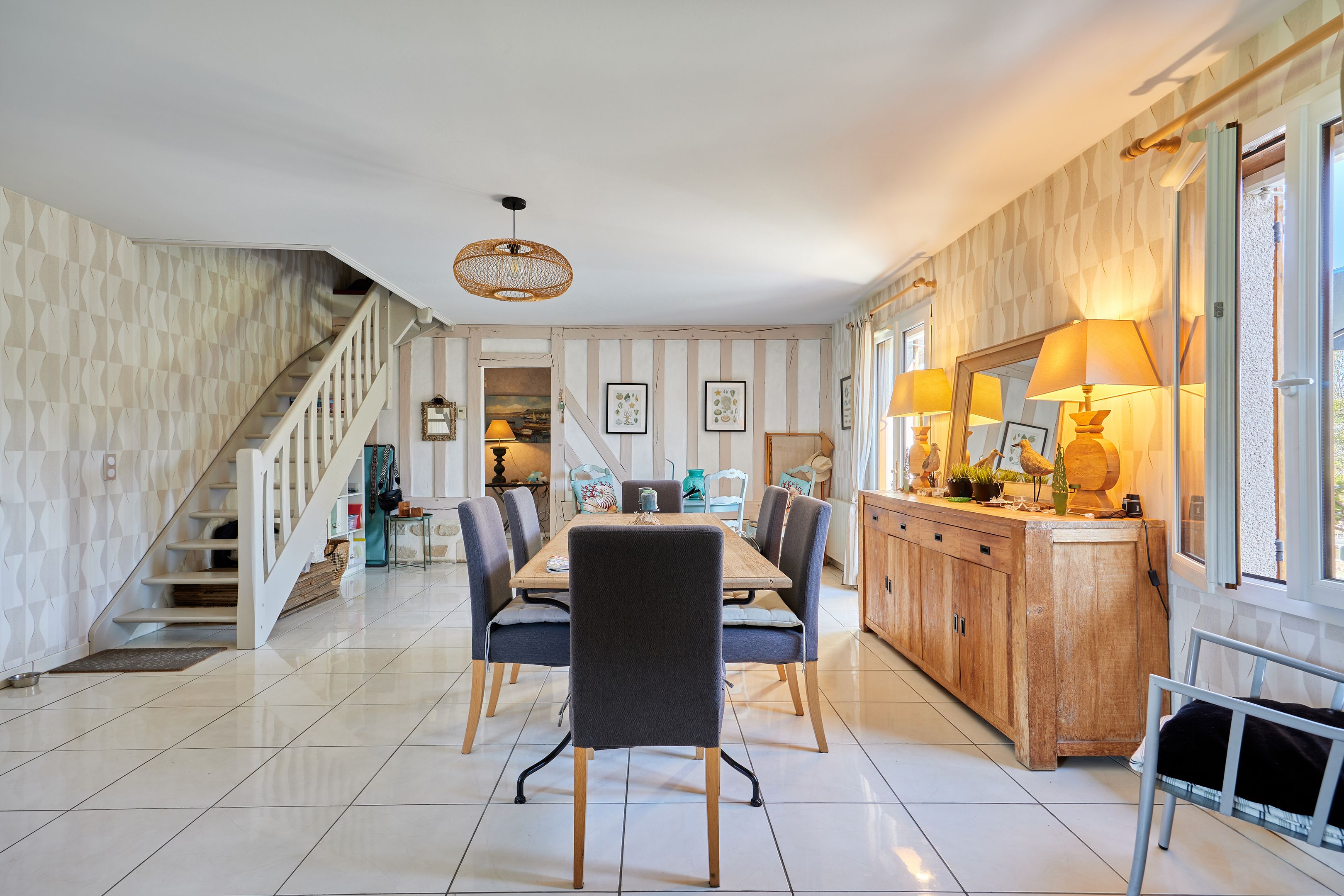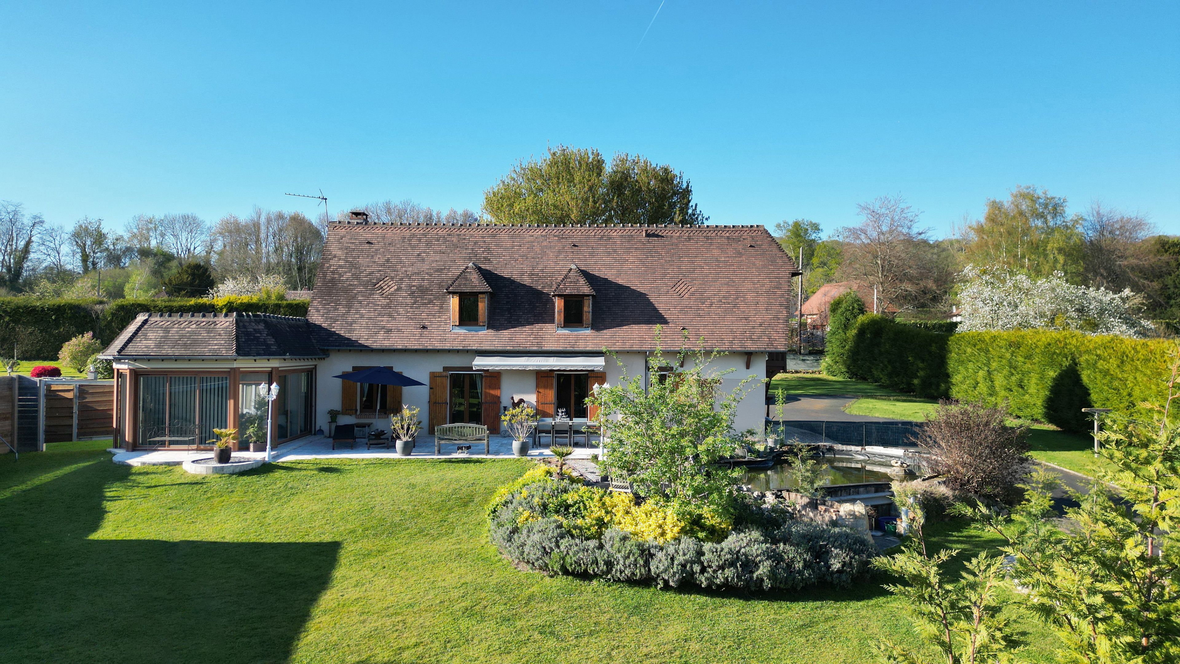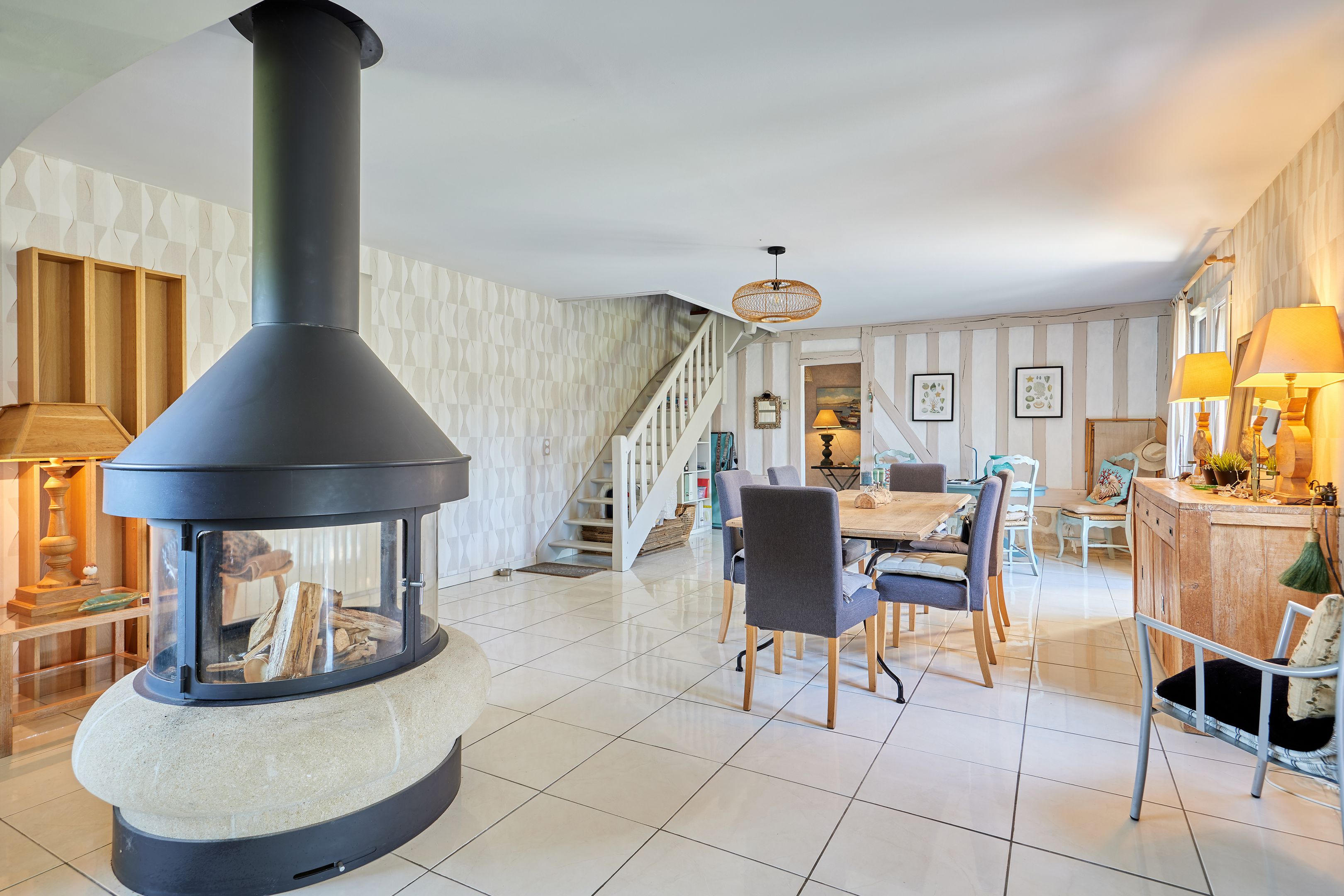 Near Pont-l'Évêque, 15 min from Deauville with quick access to A13, traditional 167 m² house and outbuildings set in 4000 m² of enclosed, landscaped grounds. First floor: entrance hall, guest toilet, fitted kitchen, pantry, spacious 78 m² living room with central fireplace opening onto a south-facing terrace. First floor: 4 bedrooms, one of which is en suite with independent access via an outside staircase, shower room with toilet. Outbuildings include a small house of approx. 20 m² for conversion and a connected building of approx. 150 m² for storage.