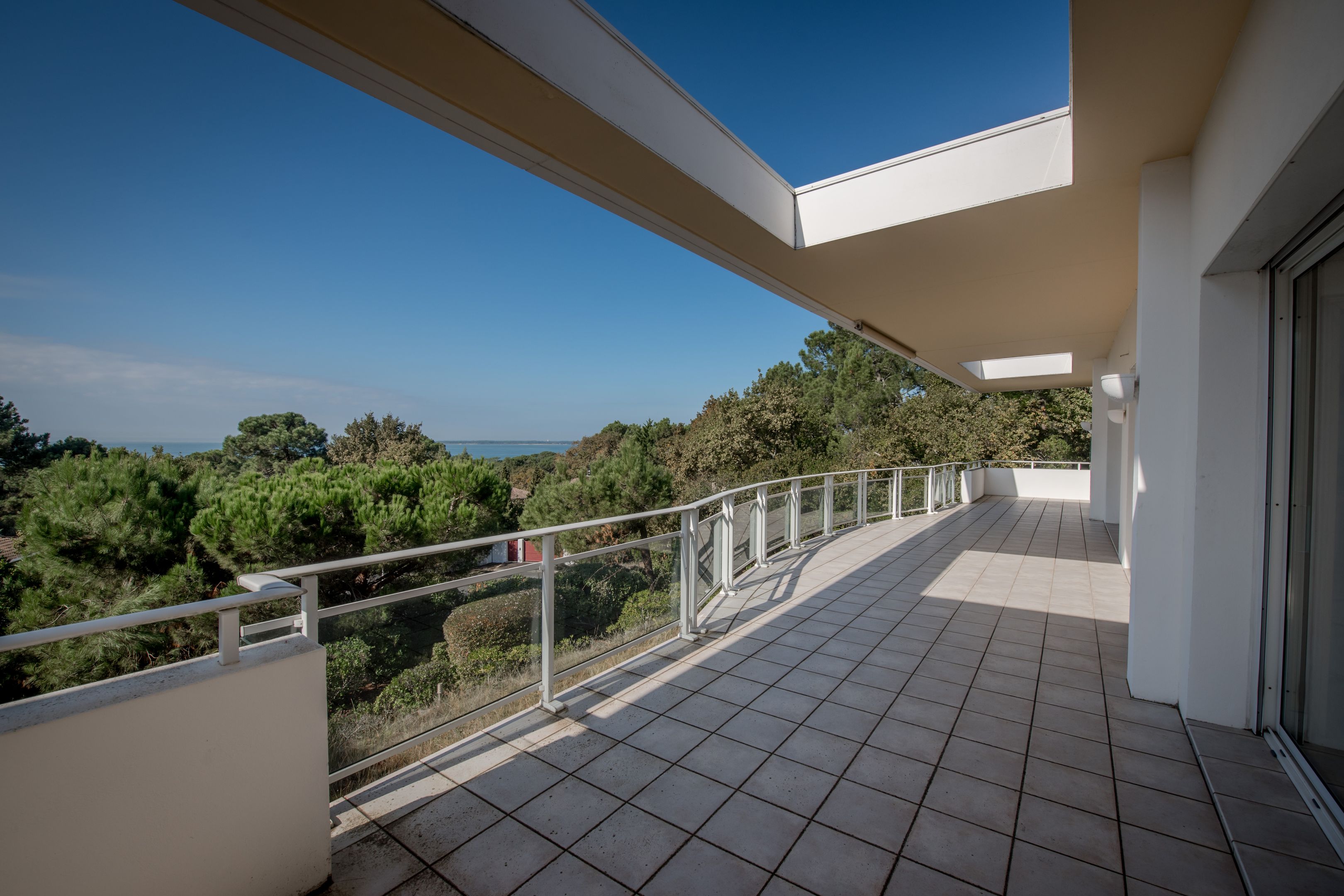 In Pyla sur Mer, just a few minutes' walk from the beaches, in a highly sought-after and secure private estate in the heart of the pine forest, an architect-designed house in a dominant position, offering a breathtaking view of the Bay of Arcachon and Cap Ferret. This villa is built on a plot of over 2300m².