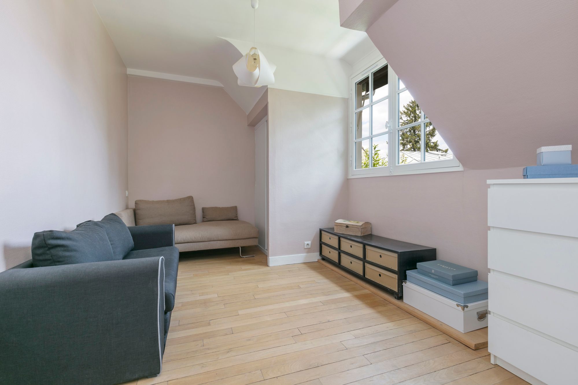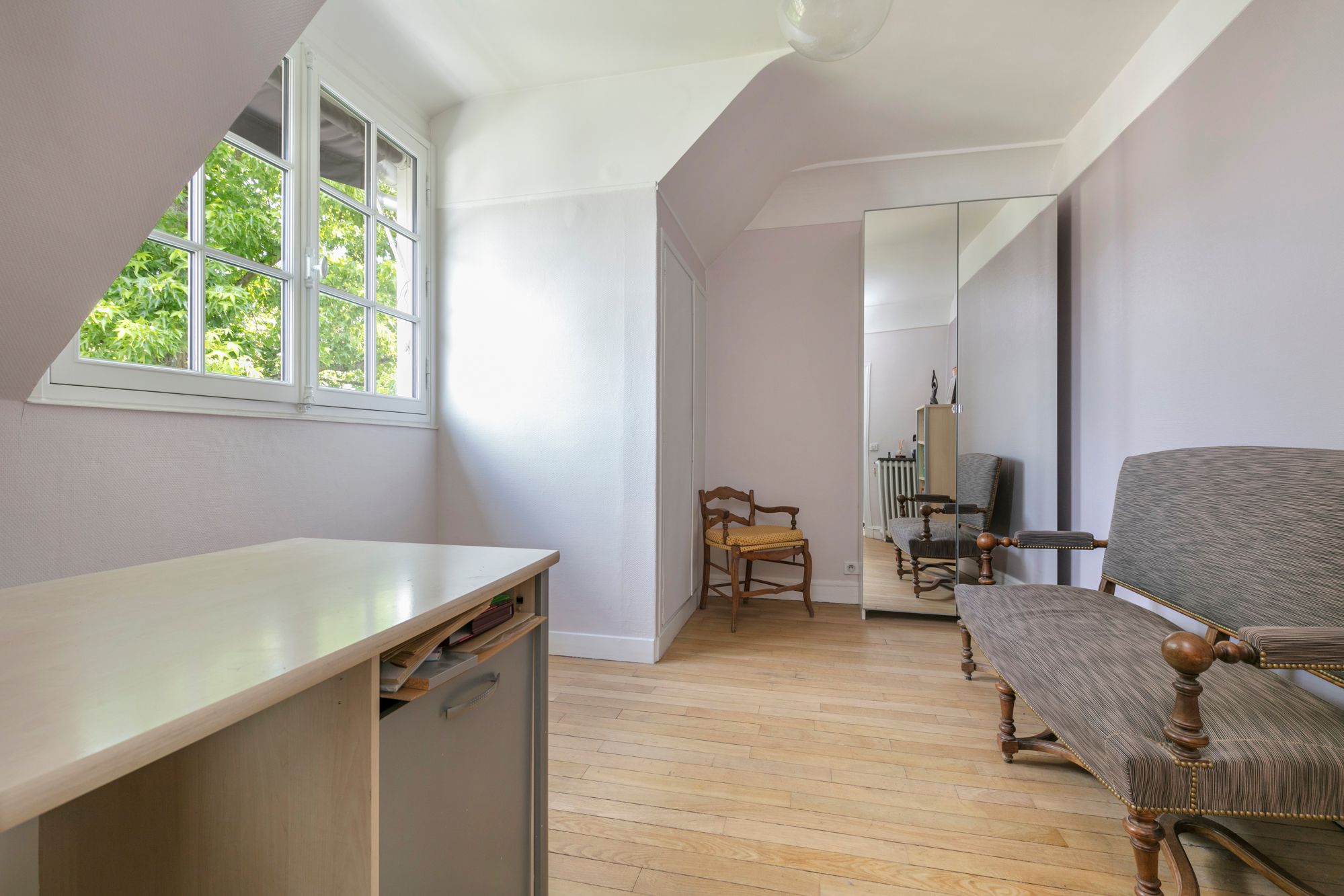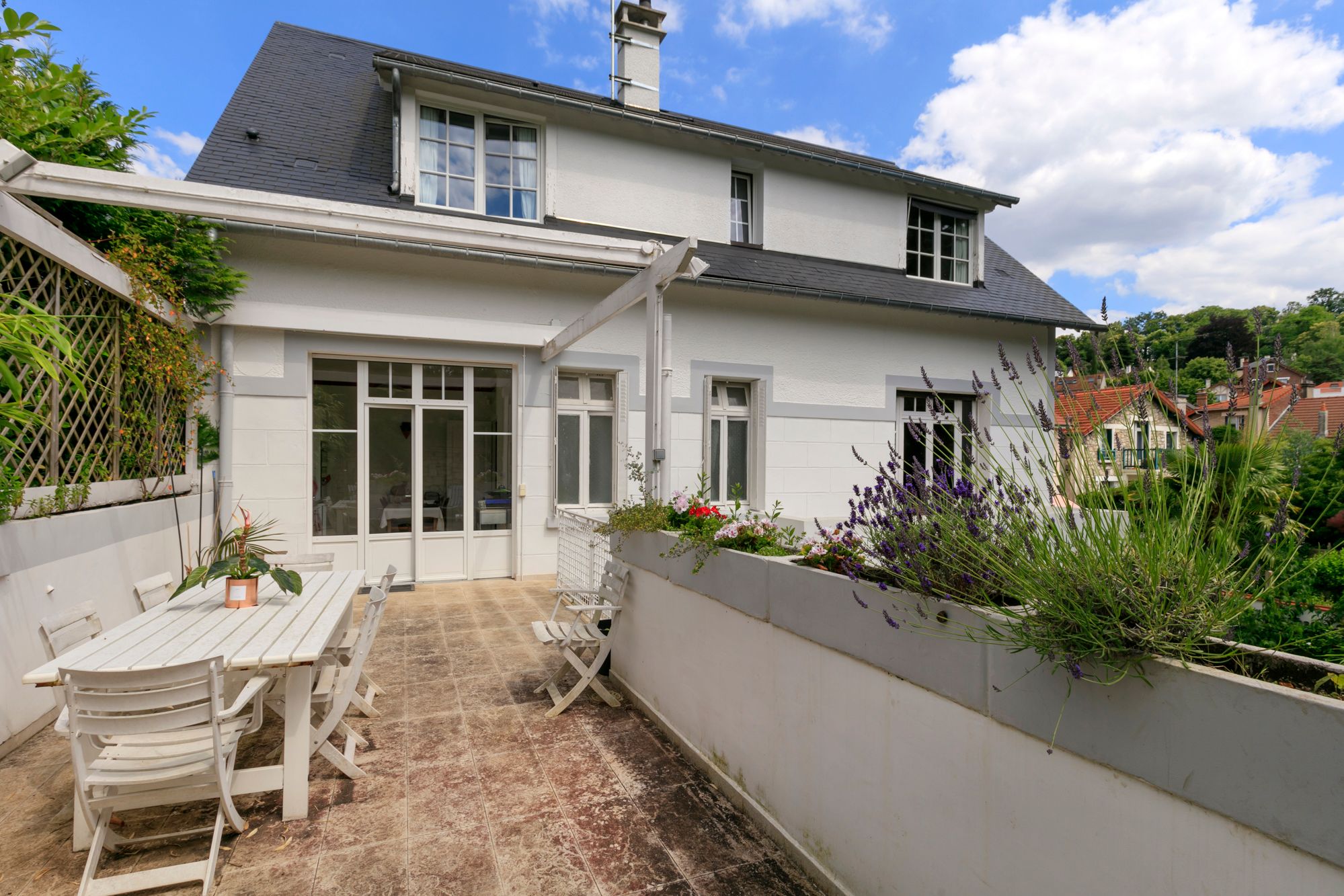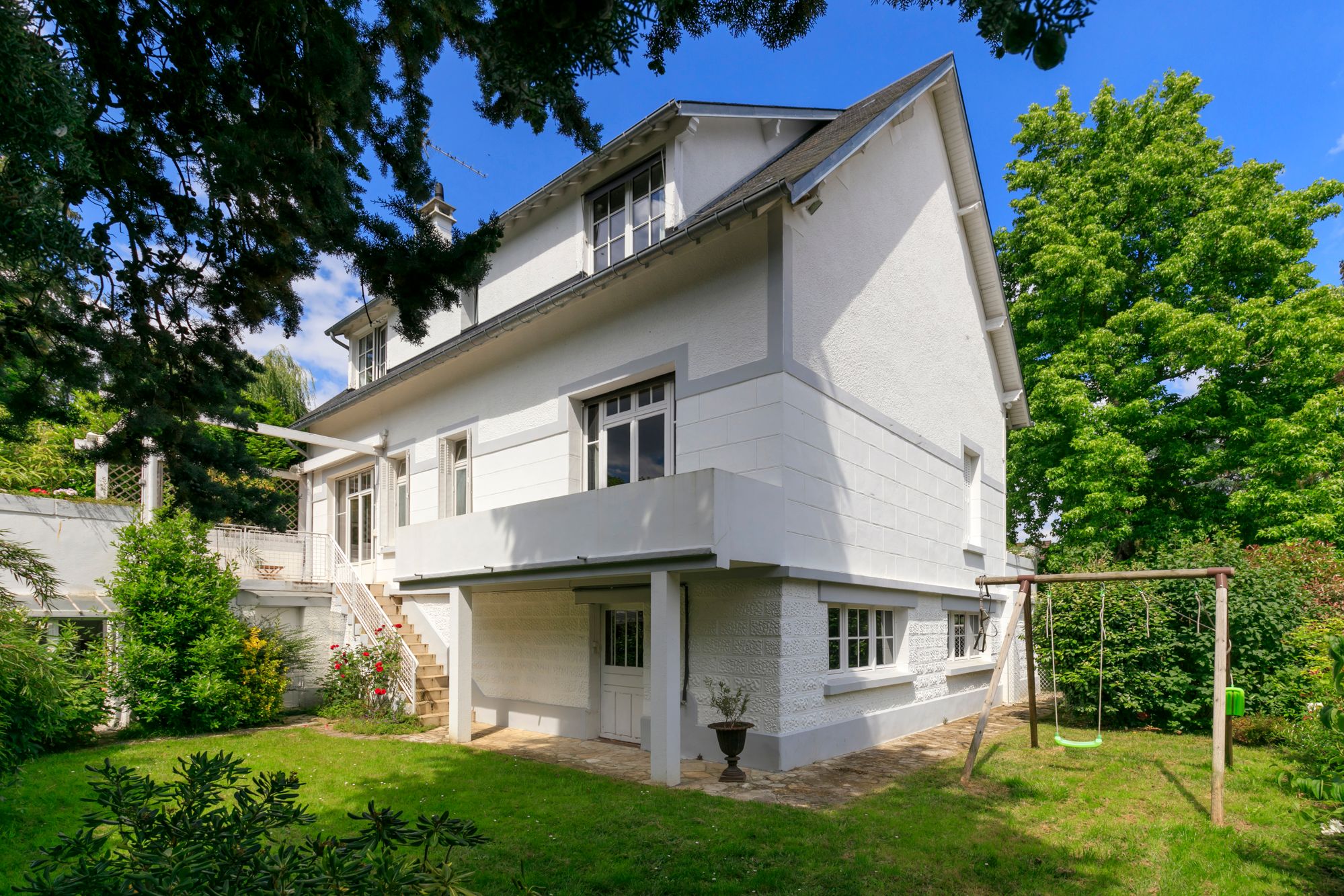 In the center of town, close to Ville-d'avray train station (Line L), schools with international sections and 500 meters from shops, this elegant 1910 cottage with 266 m² of floor space on 673 m² of wooded grounds boasts generous volumes, luminosity and high ceilings. An entrance hall leads to a 38m² double reception room, a 20m² dining room and a 15m² kitchen opening onto a terrace. Upstairs are two bedrooms with en suite bathrooms and showers, and two further bedrooms. On the garden level, a games room, an office with garden access, a storeroom and a boiler room. Large double garage with laundry room. Possibility of creating a studio. The 70 m² attic can be converted. (new roof in 2022/ new rendering/ new condensing boiler)contact Breteuil Nathalie Faes (+33)6 22 85 50 46 Visits 7/7. Plans