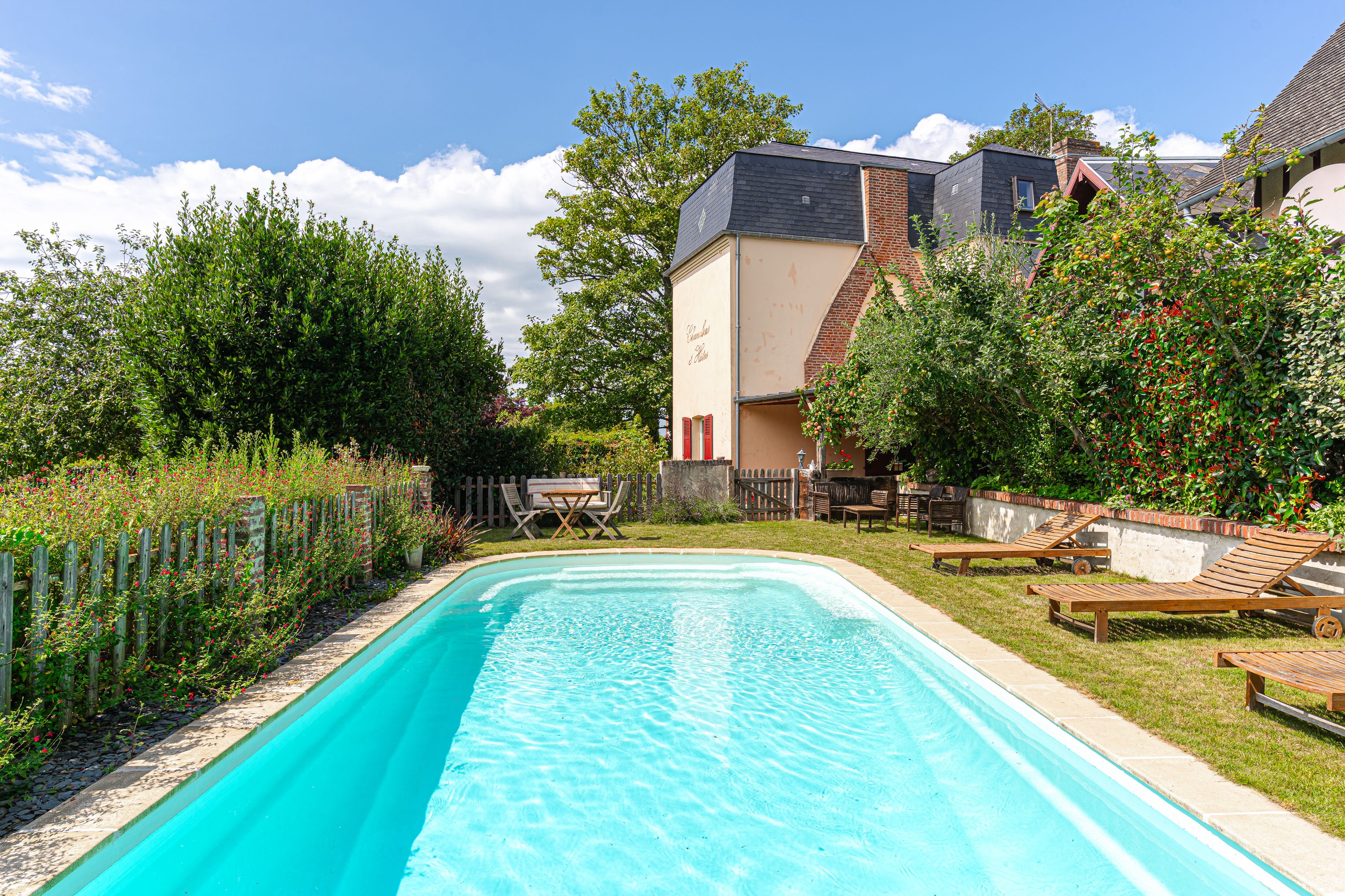 On the heights of Trouville, 200m from the beach, 180m2 house on 3 levels set in 815m2 enclosed grounds with heated pool. First floor: entrance hall, living room, semi-open fitted kitchen opening onto a loggia, dining room, separate toilet, outside access to a suite with bathroom and toilet. 1st floor: three en suite bedrooms with their own shower rooms and toilets. 2nd floor: two en suite bedrooms with their own shower rooms and toilets. Refreshments to be provided. Parking for 3 vehicles. Suitable for B&B activity.