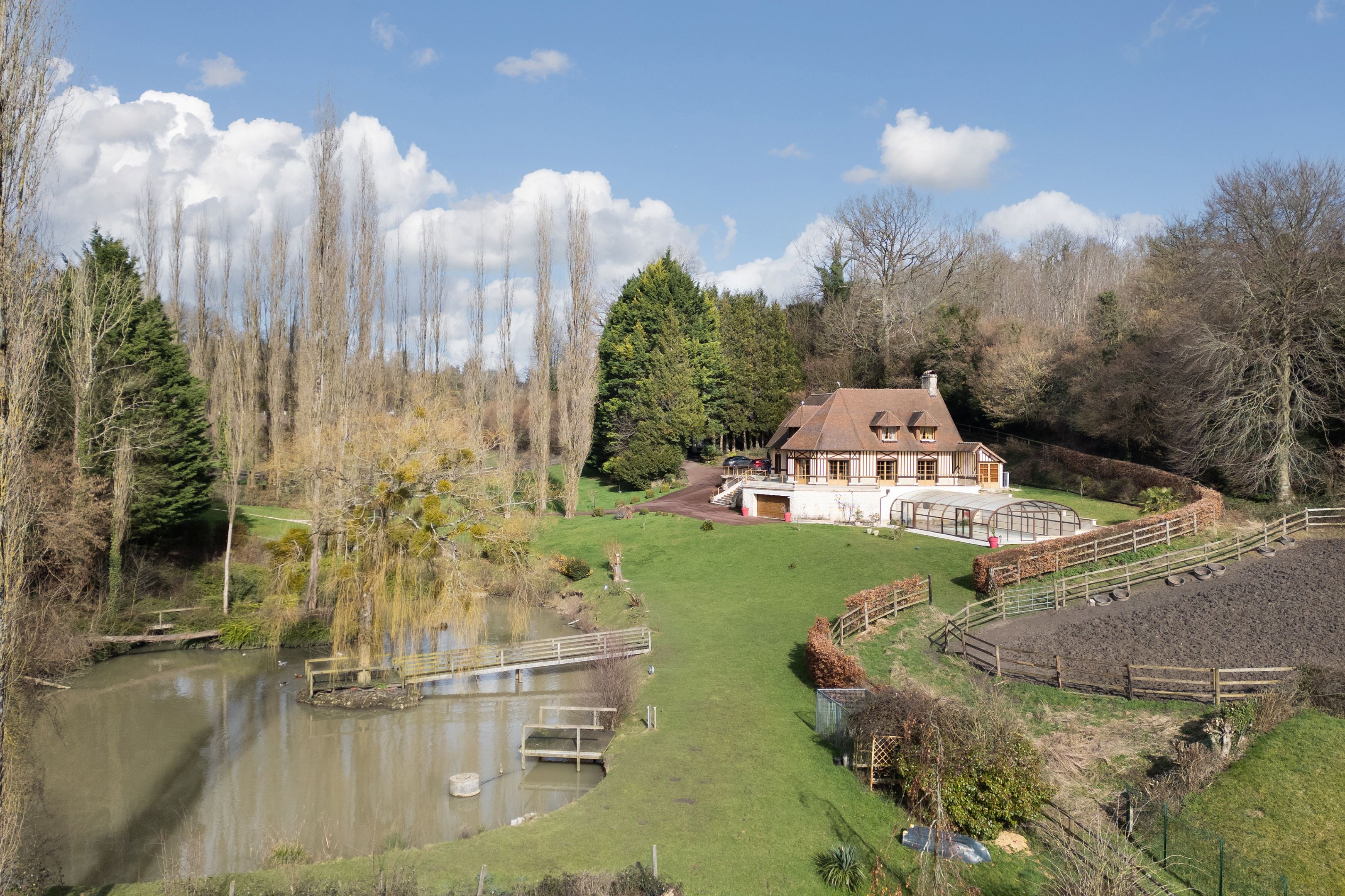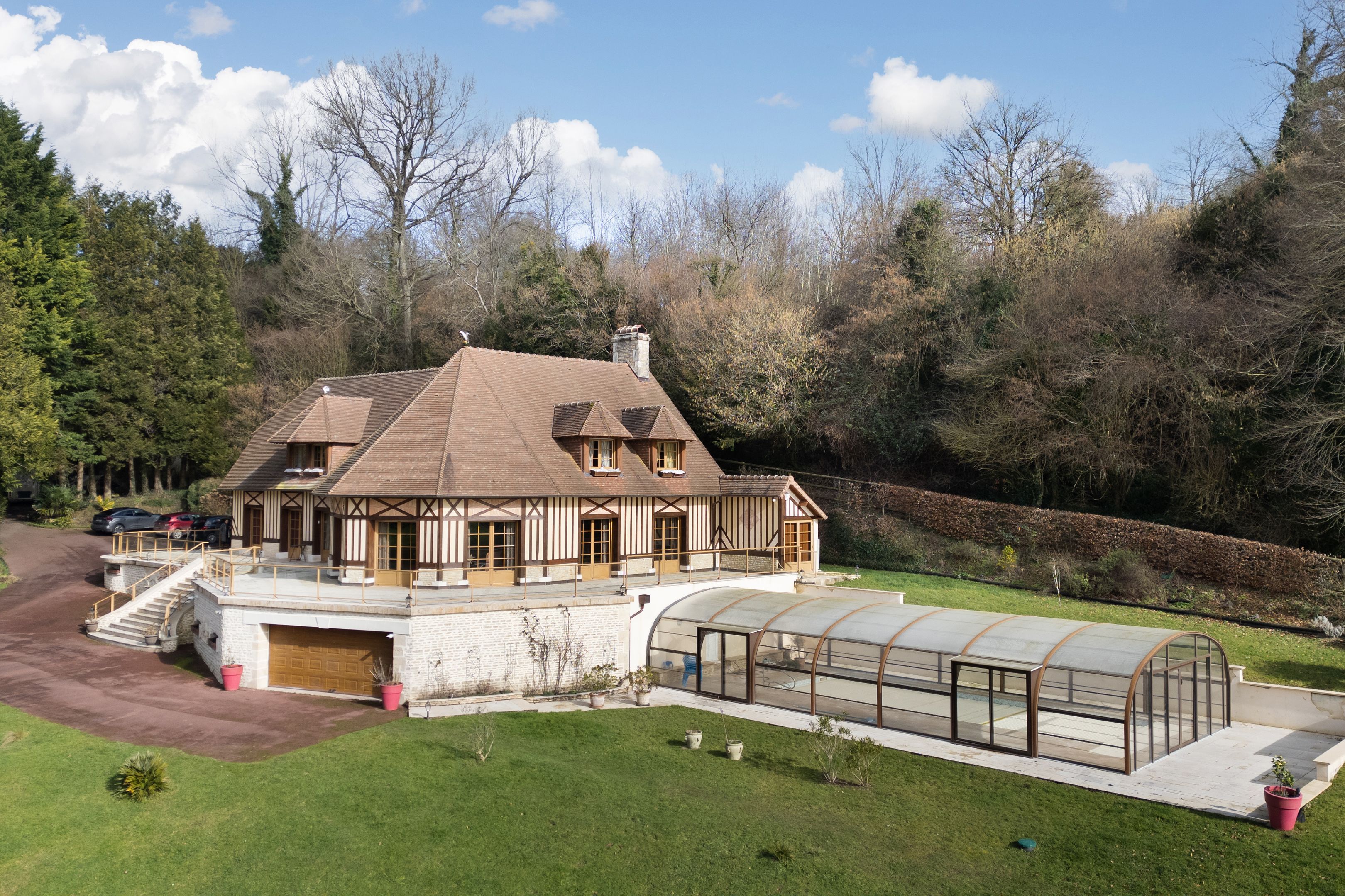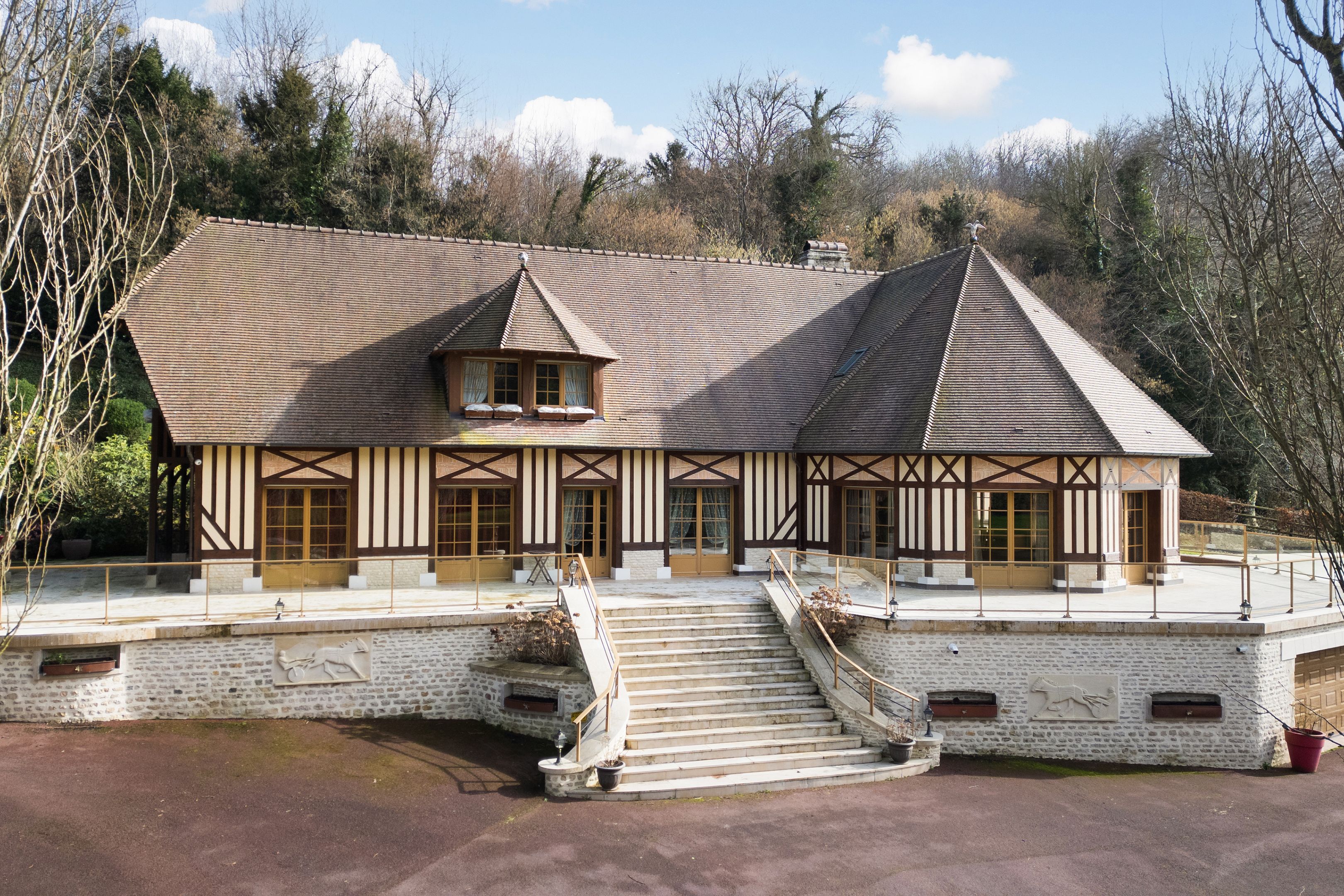 Just 15 minutes from Deauville, in the heart of the Pays d'Auge, Breteuil offers this elegant Norman property with 380 m² of living space, set in over 7 hectares of unspoilt countryside. The main house is captivatingly spacious and bright. The first floor opens onto an entrance hall distributing a fitted and equipped kitchen, which opens onto a vast living room with fireplace. A wrap-around terrace harmoniously extends the living room. A bedroom, shower room, laundry room and separate toilet complete this level, enabling single-storey living. Upstairs, a landing converted into an office leads to six bedrooms, a bathroom, a shower room and a separate toilet. A full basement houses a garage, workshop, storage spaces and the pool's equipment room. The grounds include paddocks, landscaped garden, pond and outbuildings. The covered, heated swimming pool, accessible from both inside and outside the house, blends in perfectly with the rest of the property. This equestrian property offers great potential for the creation of a show jumping stable or a stud farm dedicated to breeding racehorses.