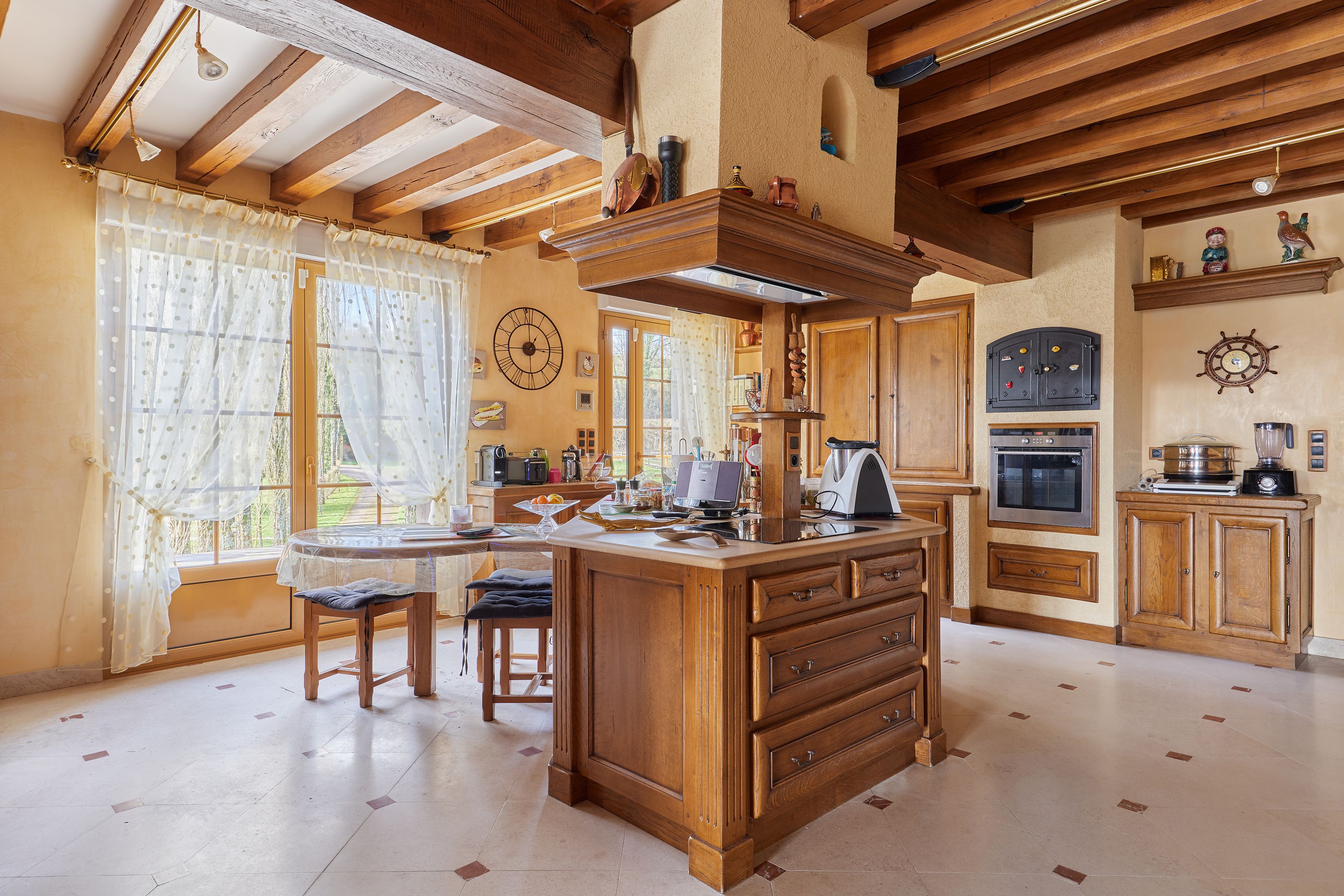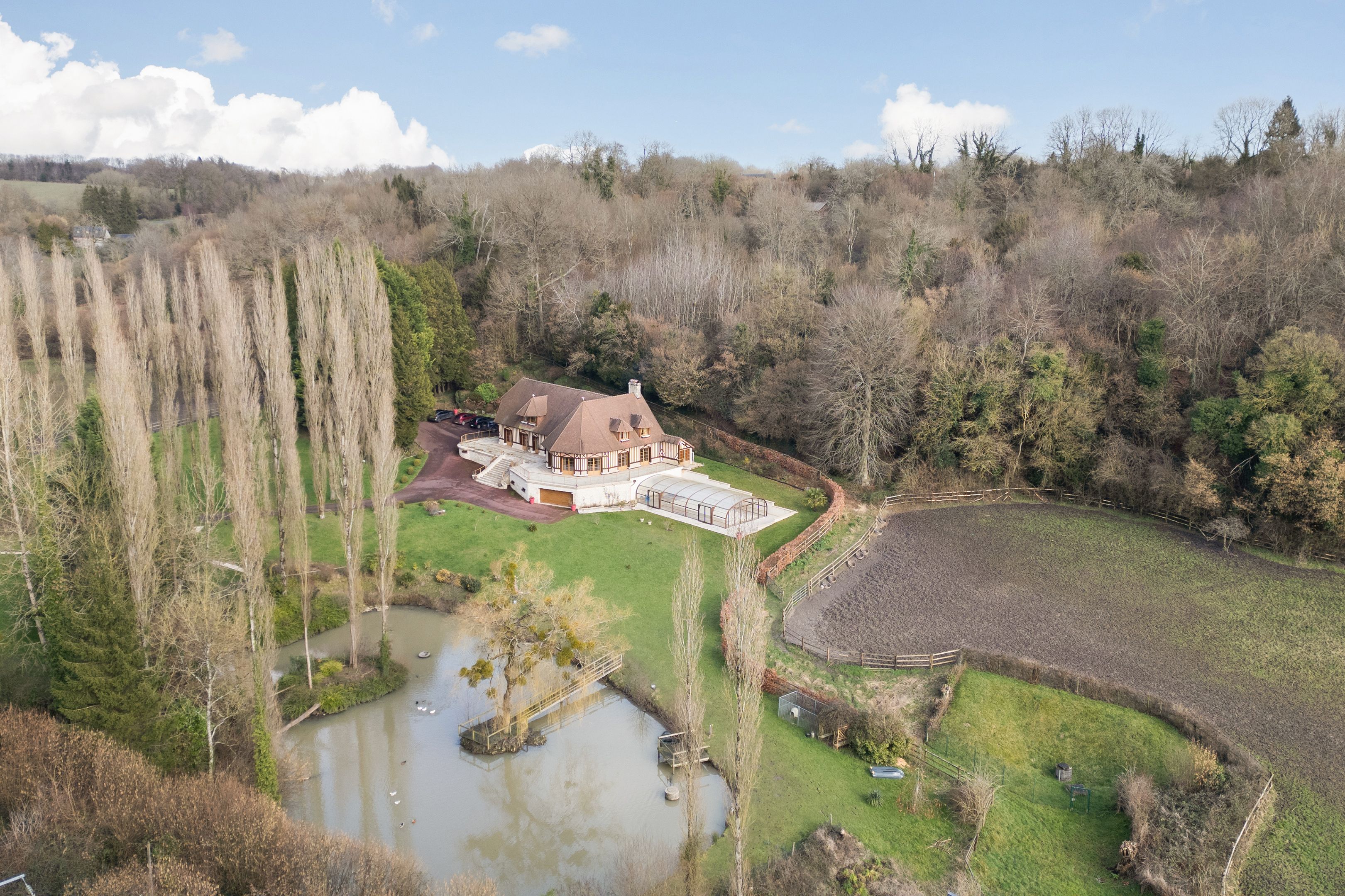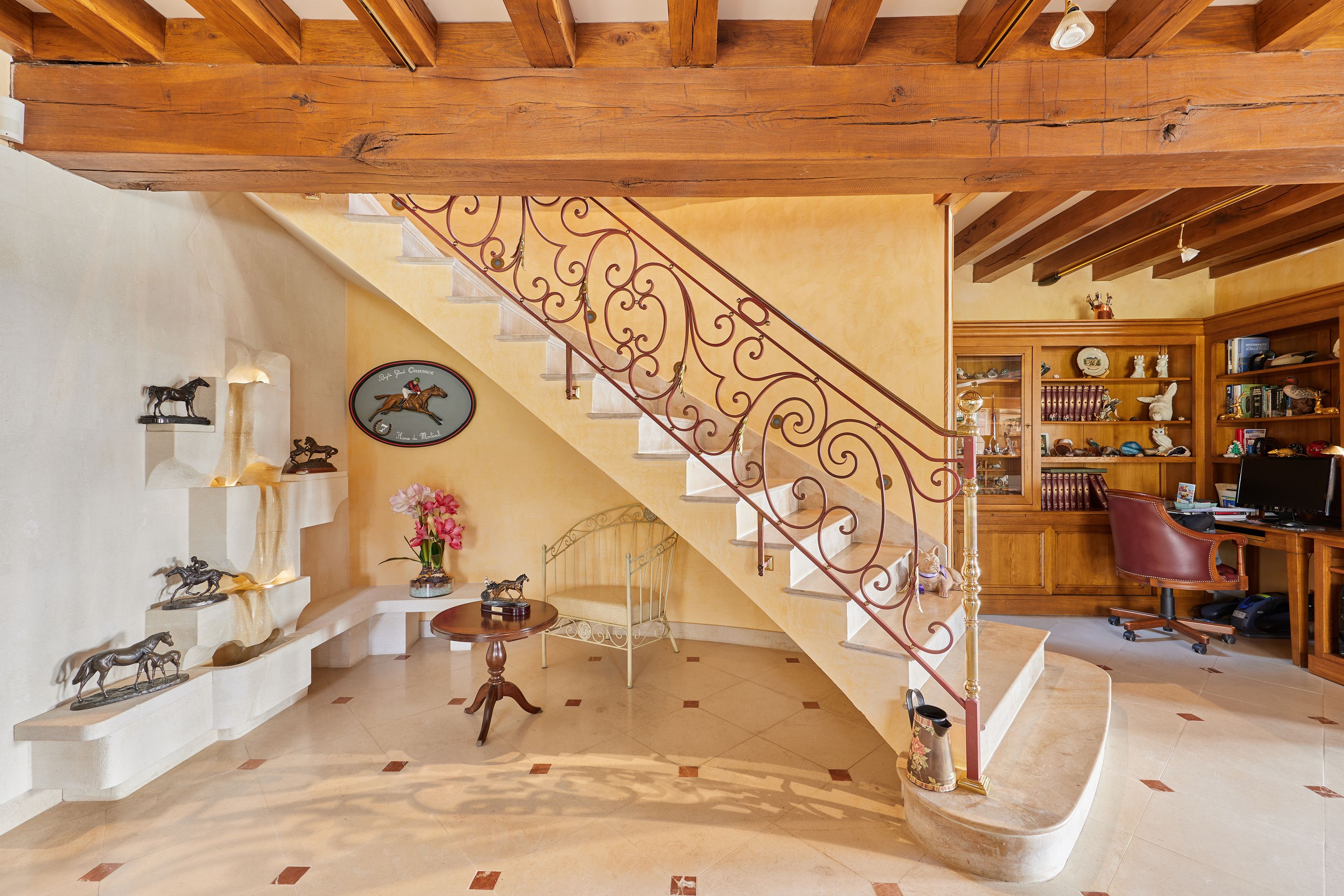 Just 15 minutes from Deauville, in the heart of the Pays d'Auge, Breteuil offers this elegant Norman property with 380 m² of living space, set in over 7 hectares of unspoilt countryside. The main house is captivatingly spacious and bright. The first floor opens onto an entrance hall distributing a fitted and equipped kitchen, which opens onto a vast living room with fireplace. A wrap-around terrace harmoniously extends the living room. A bedroom, shower room, laundry room and separate toilet complete this level, enabling single-storey living. Upstairs, a landing converted into an office leads to six bedrooms, a bathroom, a shower room and a separate toilet. A full basement houses a garage, workshop, storage spaces and the pool's equipment room. The grounds include paddocks, landscaped garden, pond and outbuildings. The covered, heated swimming pool, accessible from both inside and outside the house, blends in perfectly with the rest of the property. This equestrian property offers great potential for the creation of a show jumping stable or a stud farm dedicated to breeding racehorses.