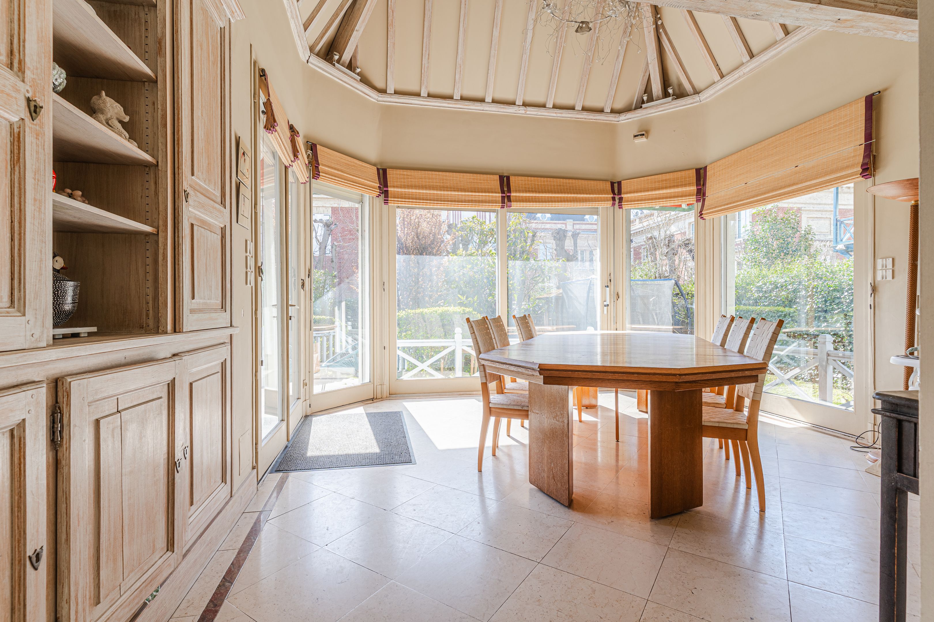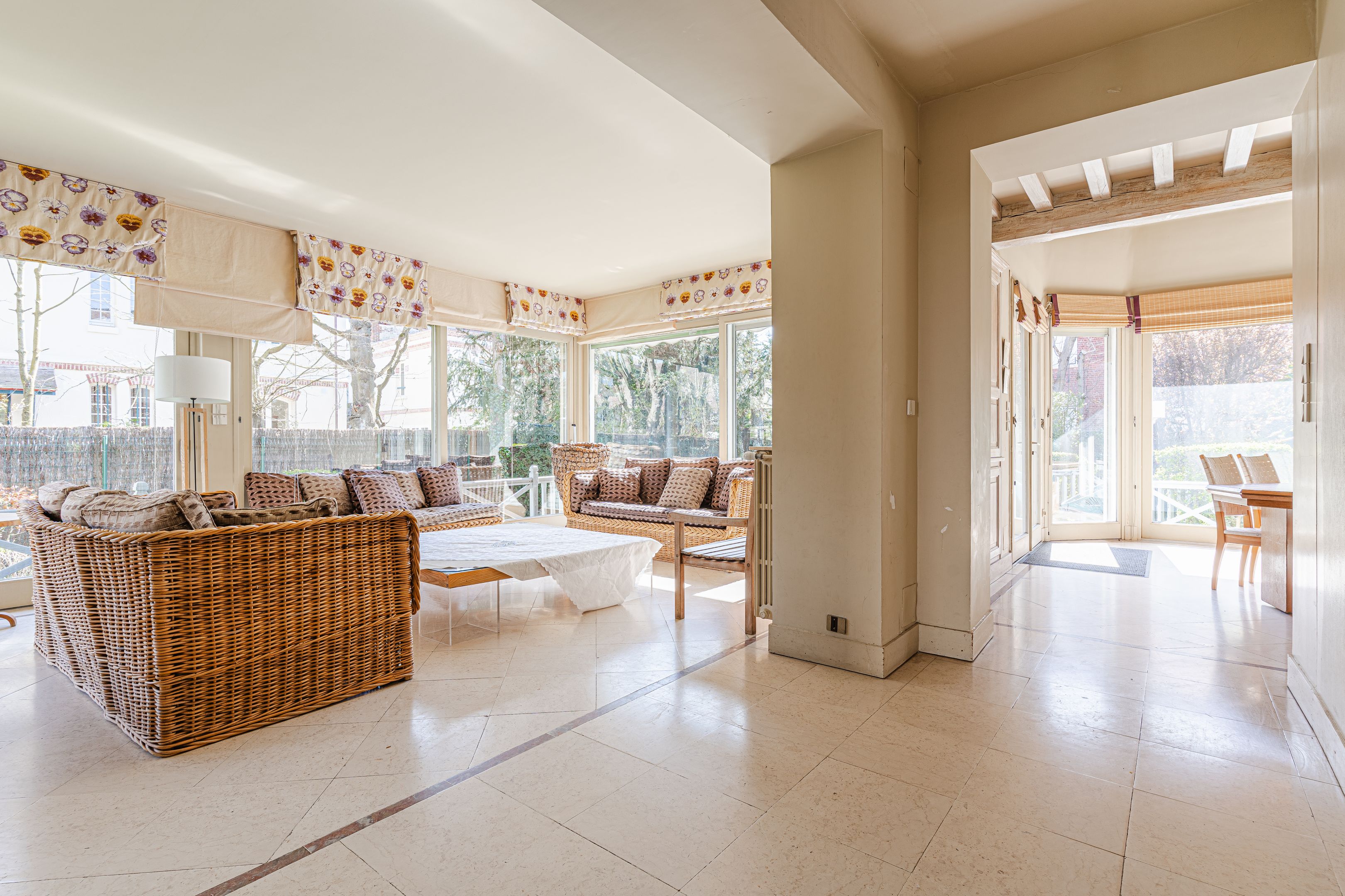 Belle villa à Deauville, au cœur du triangle d’or et dans un secteur particulièrement prisé, proche de la mer et des boutiques, exceptionnelle villa balnéaire de style anglo-normand de 390 m2. Rez-de-chaussée : vaste salon, cuisine spacieuse, salle à manger, petit salon et bureau. Au 1er étage : suite parentale avec salle de bains et terrasse privative, deux chambres avec salle de bains. Au 2è étage : 5 chambres et 2 salles de bains. Au sous sol : buanderie, 2 grandes salles de jeux et de nombreux rangements.