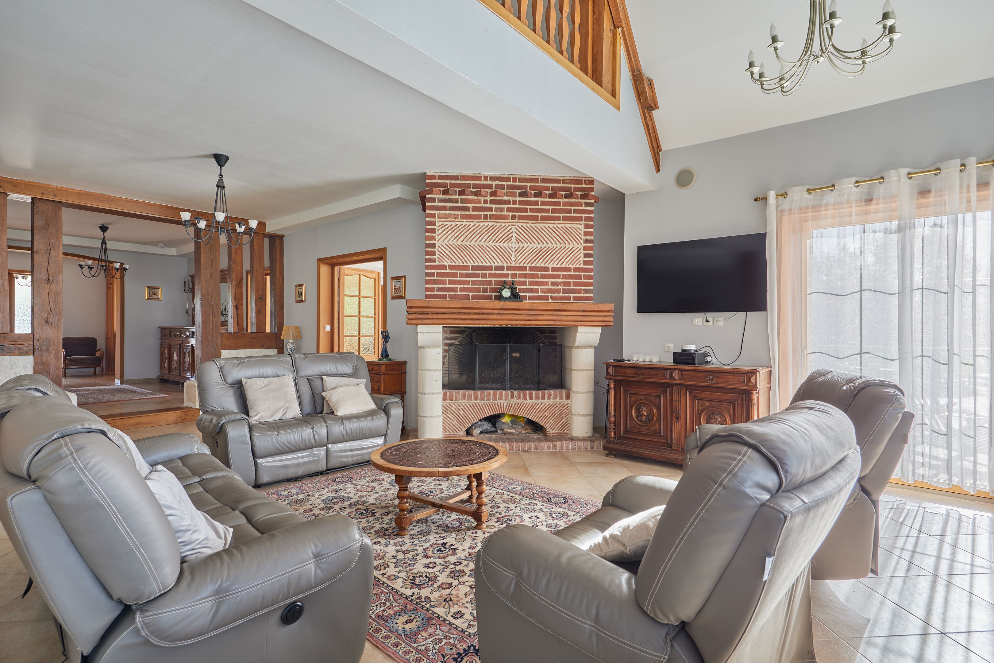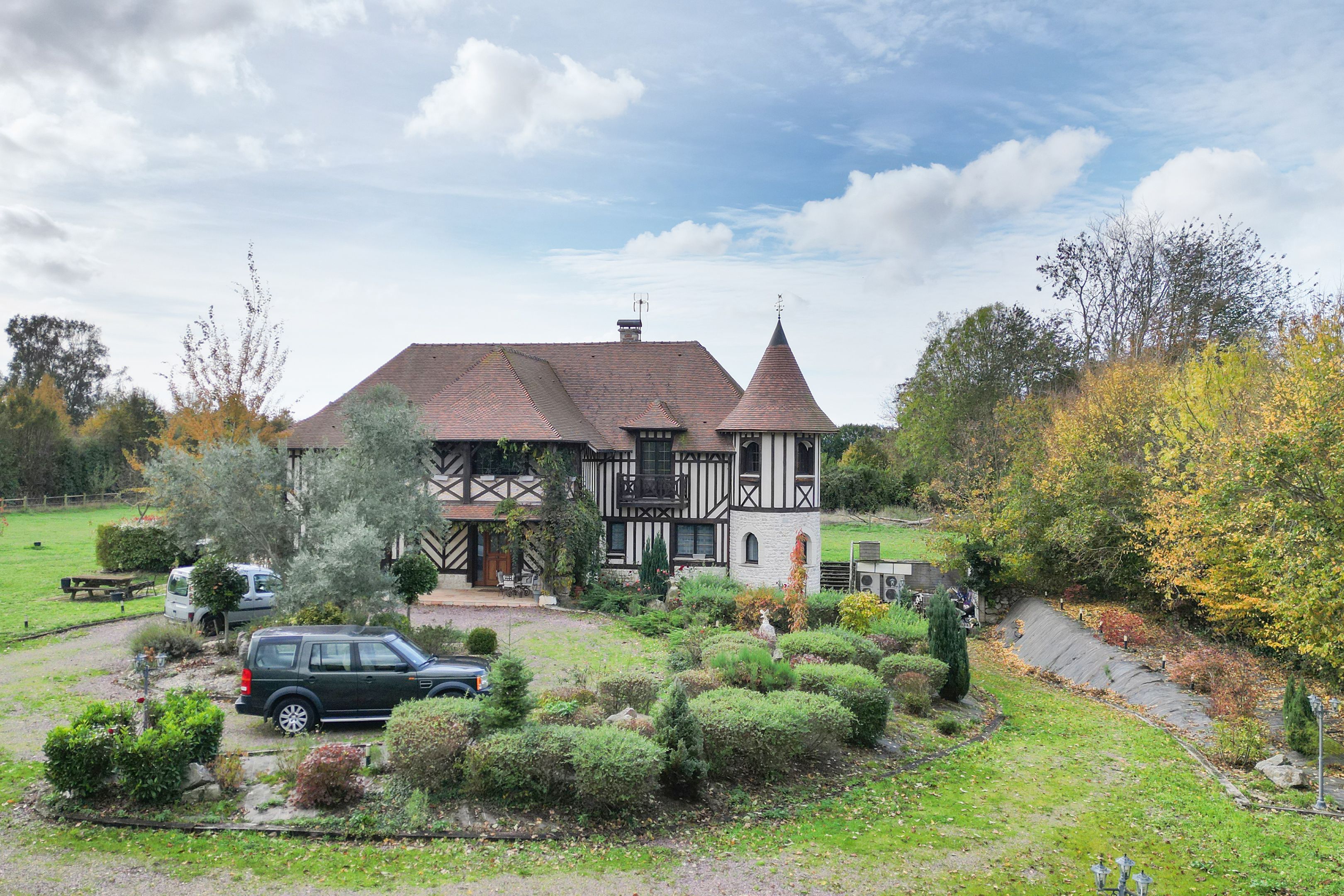 À 10min de Deauville-Trouville, belle propriété normande aux volumes généreux édifiée sur un terrain plat d'environ 6000m2. Au rez-de-chaussée : entrée, salon avec cheminée, salle-à-manger avec poêle, cuisine ouverte, bureau, chambre avec salle d'eau et toilettes, toilettes invités. Au 1er étage : mezzanine desservant 6 chambres chacune avec leur salle d'eau et balcon, deux toilettes indépendants. Au dernier étage : salle de jeux, deux chambres. Sous-sol complet d'environ 200m2 avec espace buanderie et double garage.