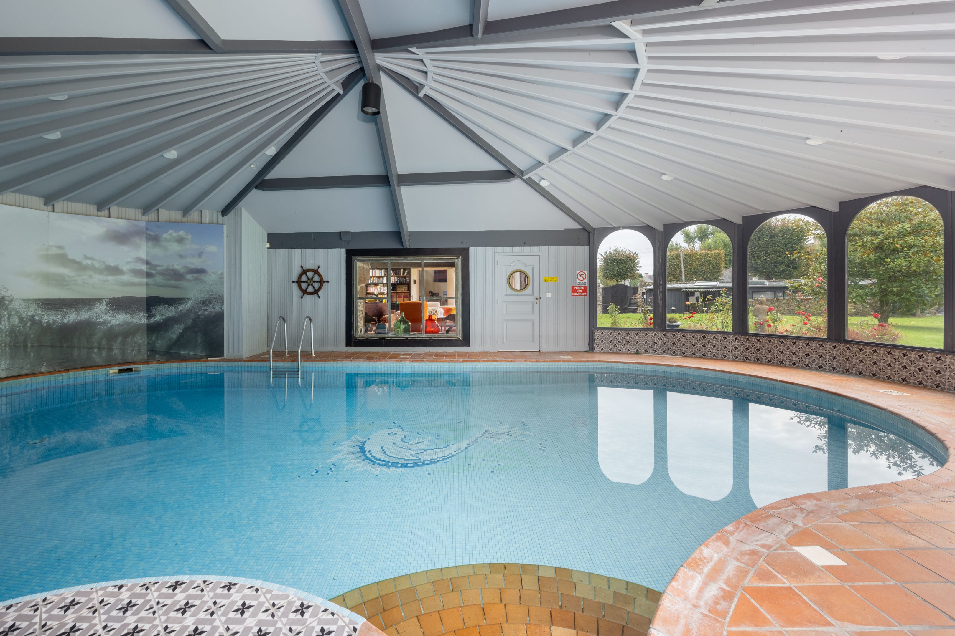 Galerie d'entrée, vaste salle de réception baignée de lumière, magnifique salon avec cheminée, cuisine entièrement aménagée et équipée, espace aquatique composé d'une piscine, sauna et spa. Aux étages : 6 vastes suites avec salons et salle de bains. Enfin charmante dépendance avec salon, chambre et salle d'eau. Possibilité d'exploitation en chambre d'hôtes. Dossier photos complet sur demande.
