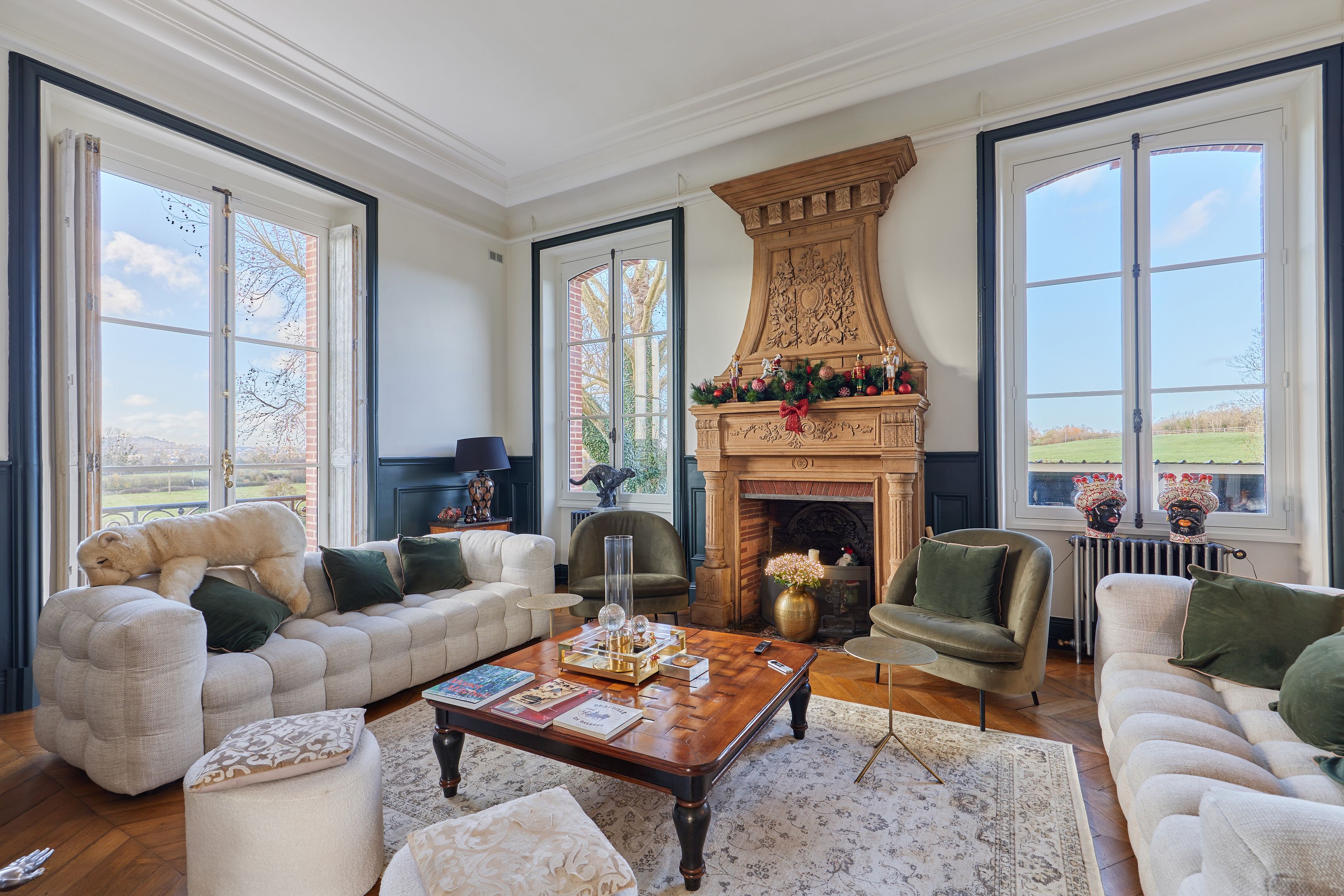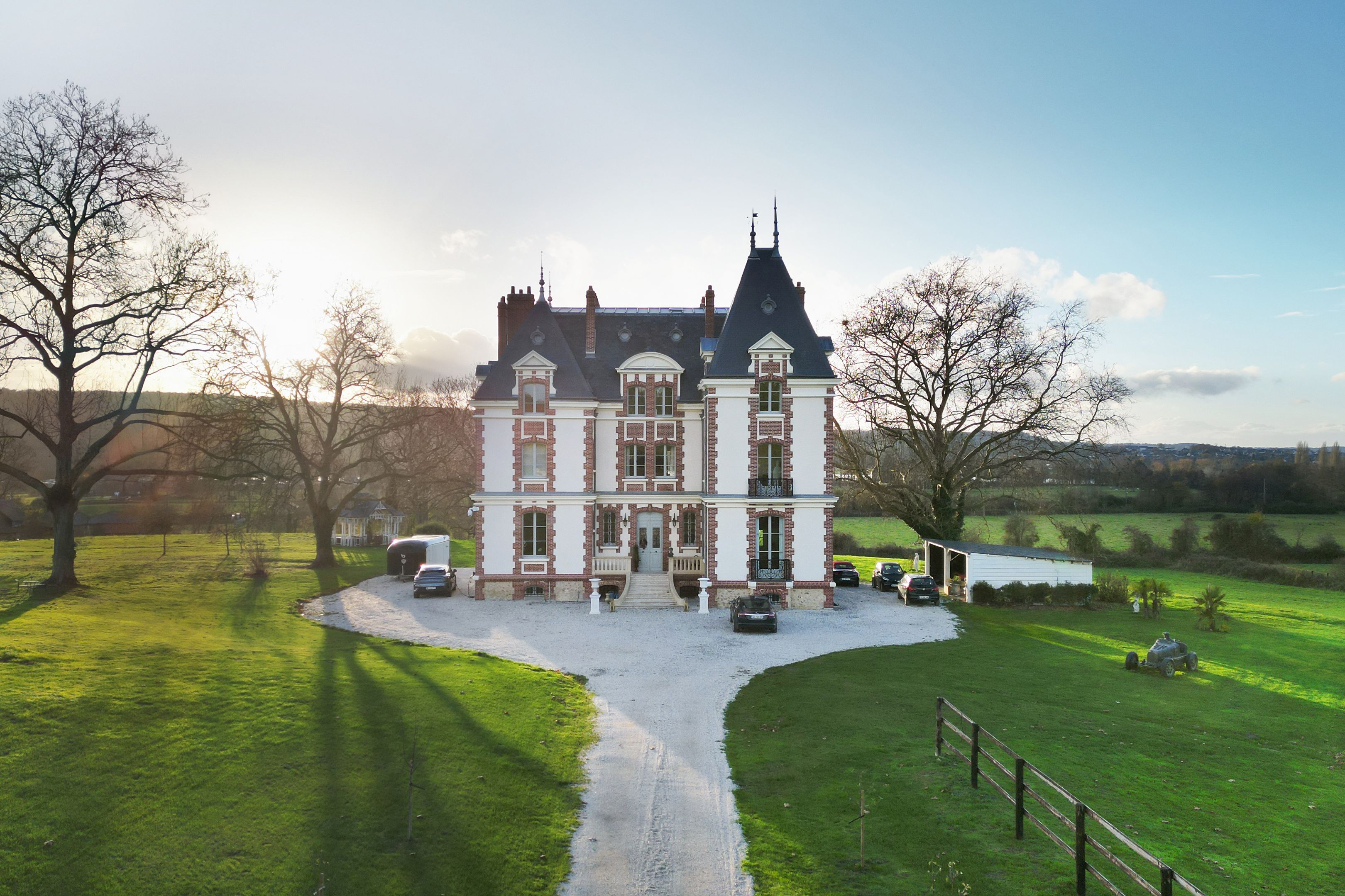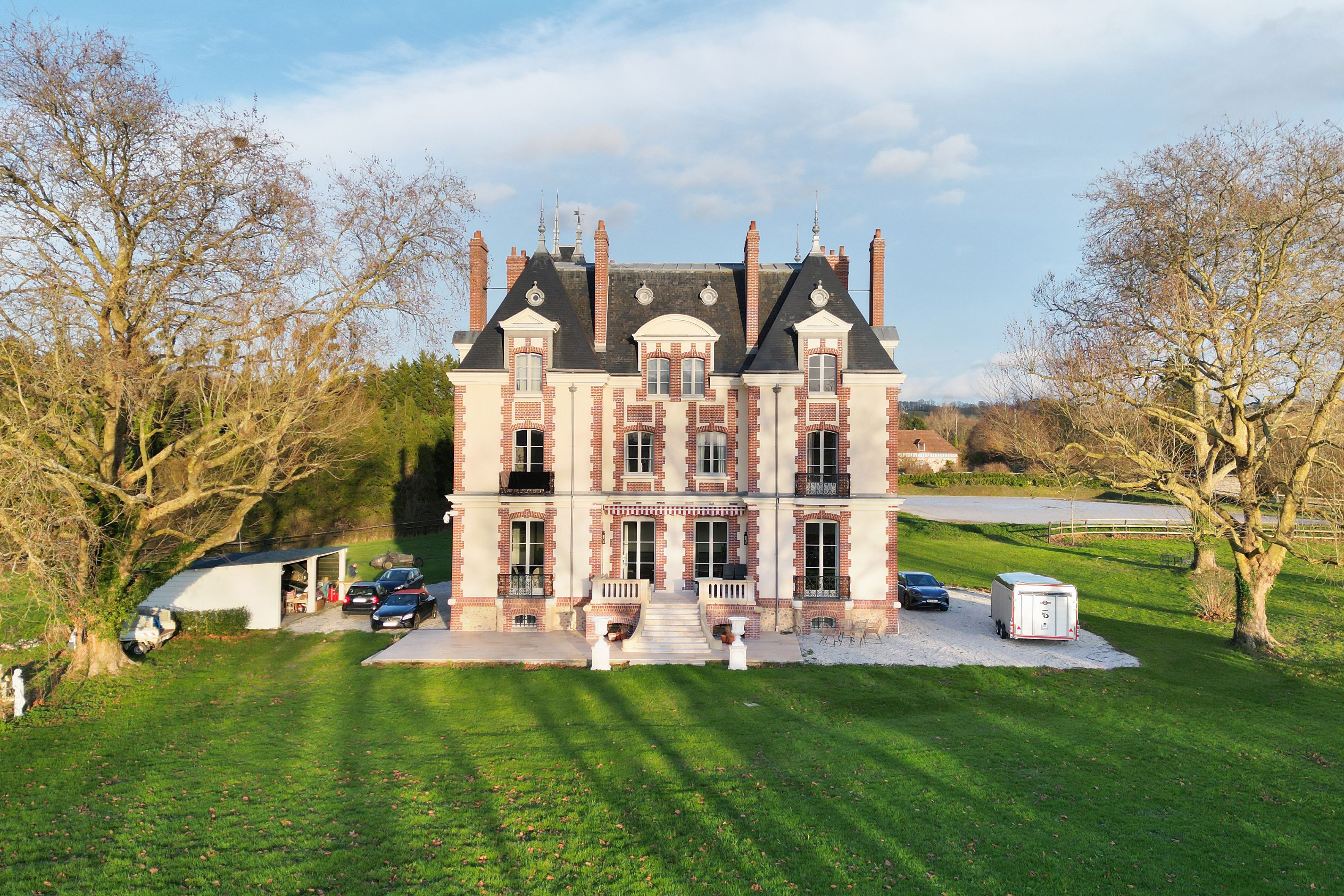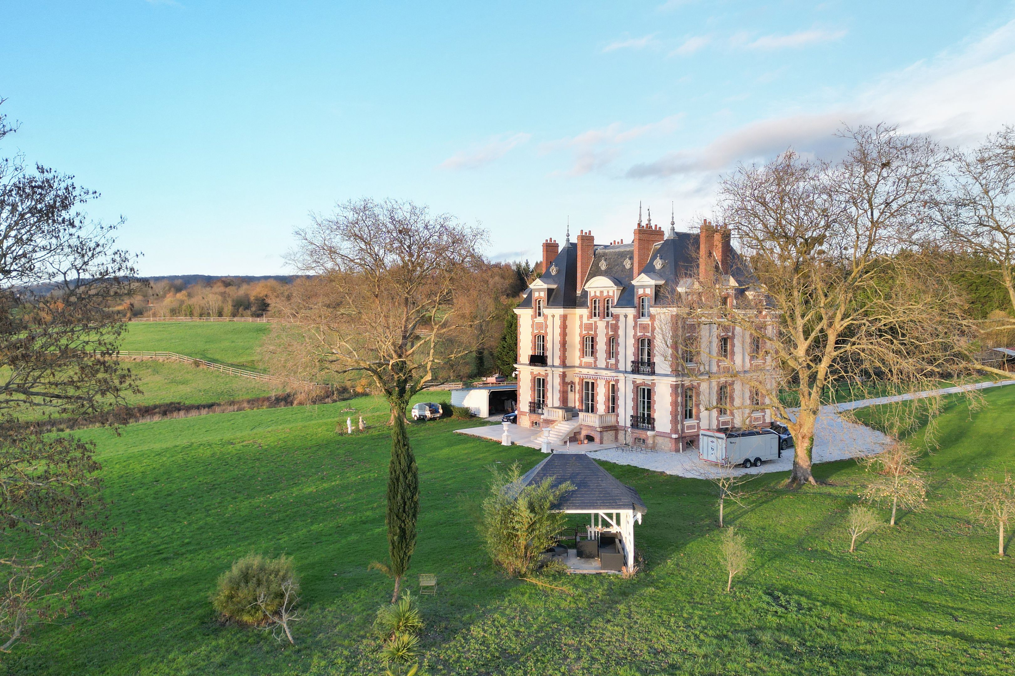 Splendide propriété aux portes de Deauville composée d'un château entièrement rénové aux prestations de haut standing avec maison de gardien sur 8 ha de terrain. Le château, dès son entrée, offre de beaux volumes et de grandes hauteurs sous plafond. Composé au rez-de-chaussée de 2 salons avec cheminées et accès terrasse, salle à manger avec bar donnant sur une spacieuse cuisine dînatoire, grand bureau pouvant devenir une grande chambre. Au 1er étage : 2 suites parentales, salle de billard, dressing indépendant, chambre individuelle.Au 2ème étage : 2 suites parentales, 2 chambres individuelles, salle de cinéma. Possibilité de recréer un très bel espace détente ou de nuit dans les combles supérieures. Le tout est édifié sur un sous-sol total offrant un espace détente spa hammam, caves, rangement et chaufferie. Partie équestre : 9 boxes et carrière de sable pour chevaux.