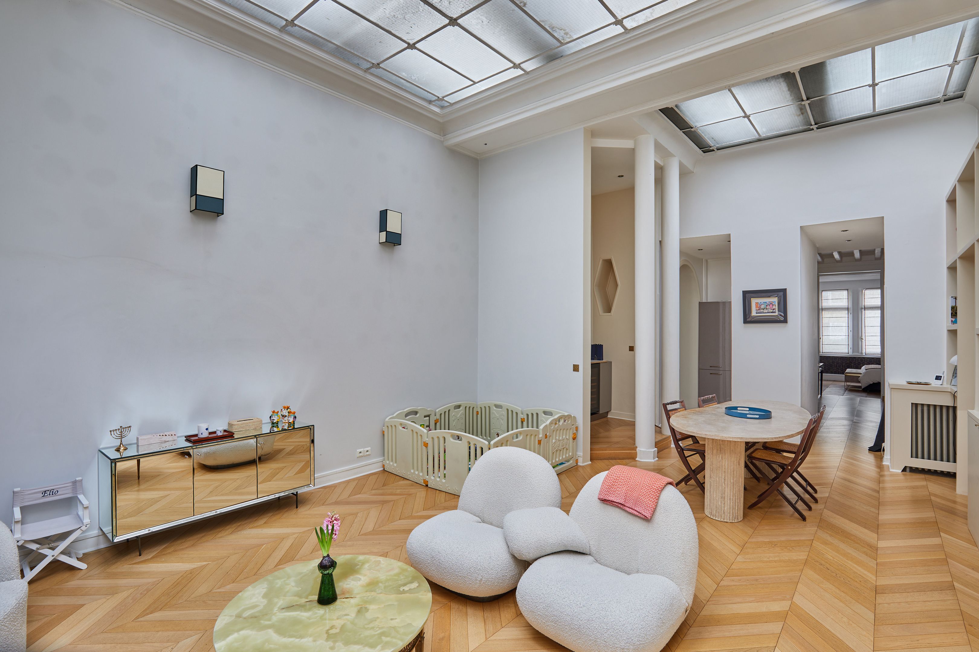 Hôtel particulier édifié en 1880 par l'architecte Albert Lalanne, situé dans une rue calme autour du parc Monceau. D'une surface de 500,32m² il bénéficie d'une commercialité partielle de 200 m². Au rez-de-chaussée : appartement rénové de 140m² comprenant un vaste séjour sous verrière d'époque, cuisine équipée, trois chambres, salle de bains. Au 1er étage : 80m² de bureaux. Au 2ème et 3ème étage : appartement en duplex de 130 m² comprenant un salon de réception avec 5 m de hauteur sous plafond et éléments d’ornementation, cuisine dinatoire séparée, suite parentale. Au 4ème étage : appartement rénové de 85m² comprenant salon/salle à manger bénéficiant d'une très belle hauteur sous plafond et charme, cuisine ouverte, chambre, salle de bains. Sous-sol de 80 m² aménagé en buanderie. 45 % de commercialité au total (rez-de-chaussée et 1er étage).