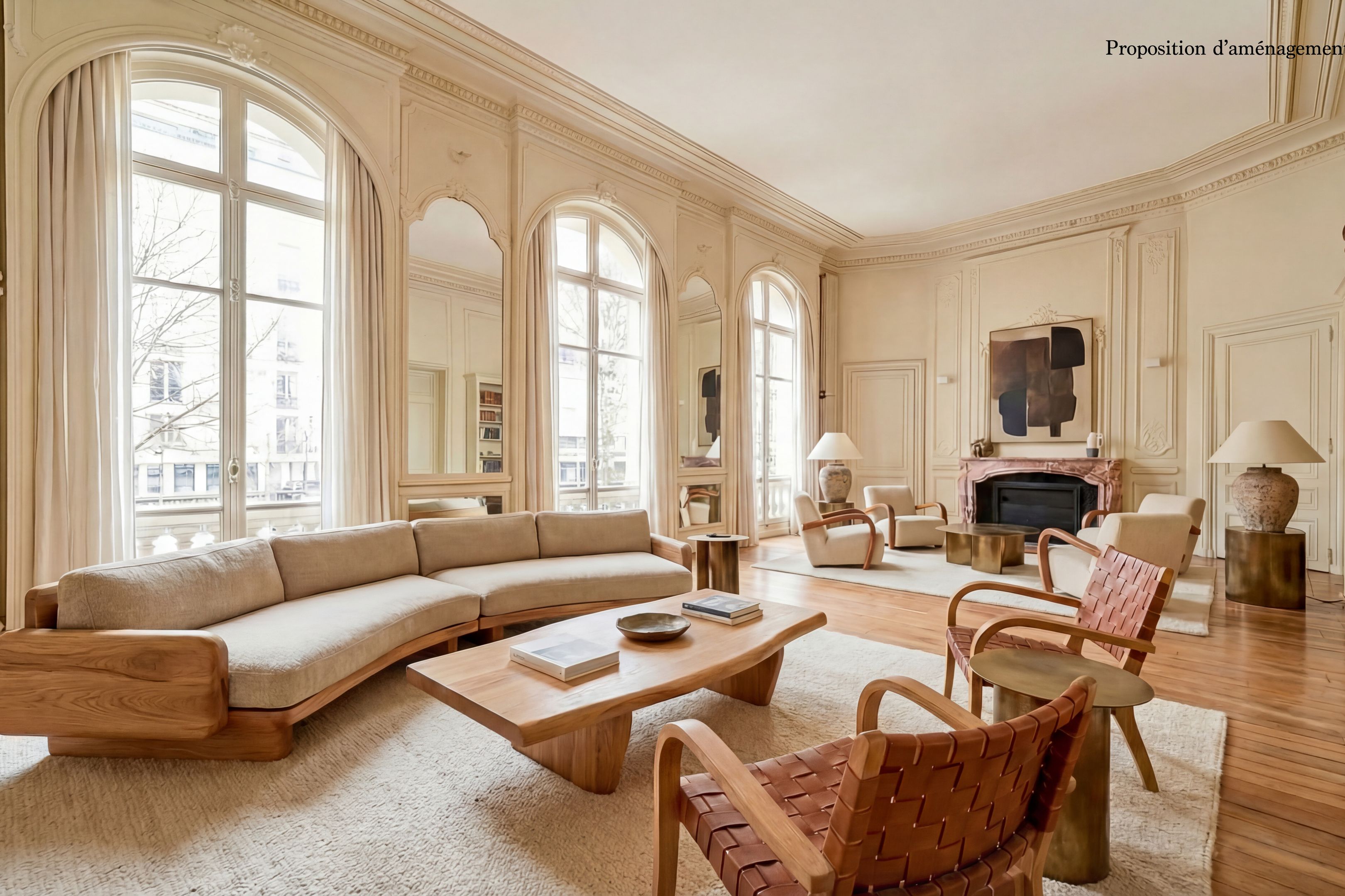 Deuxième étage : Trois salons de réception, deux cuisines indépendantes, deux chambres dont une suite avec salle de bains.