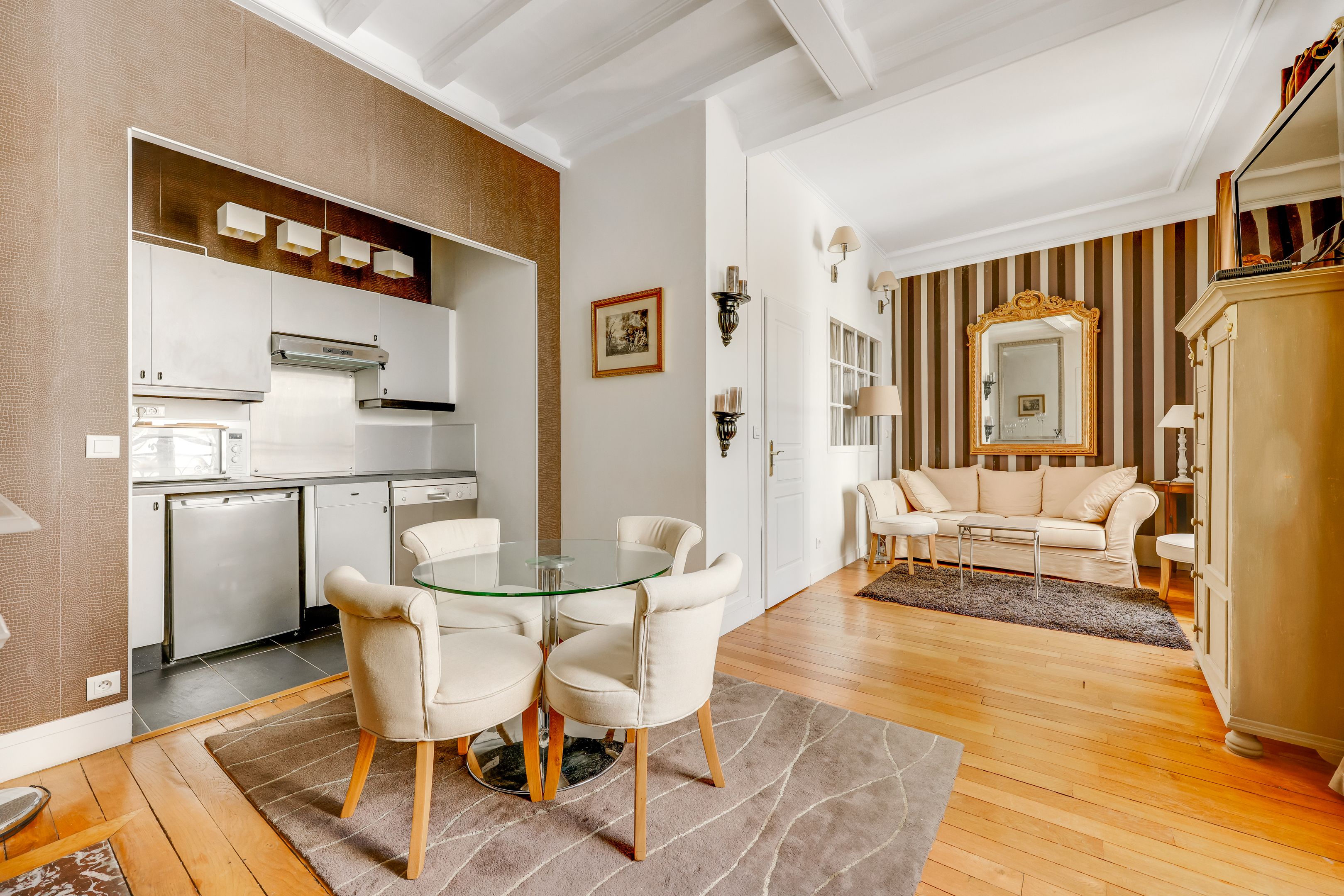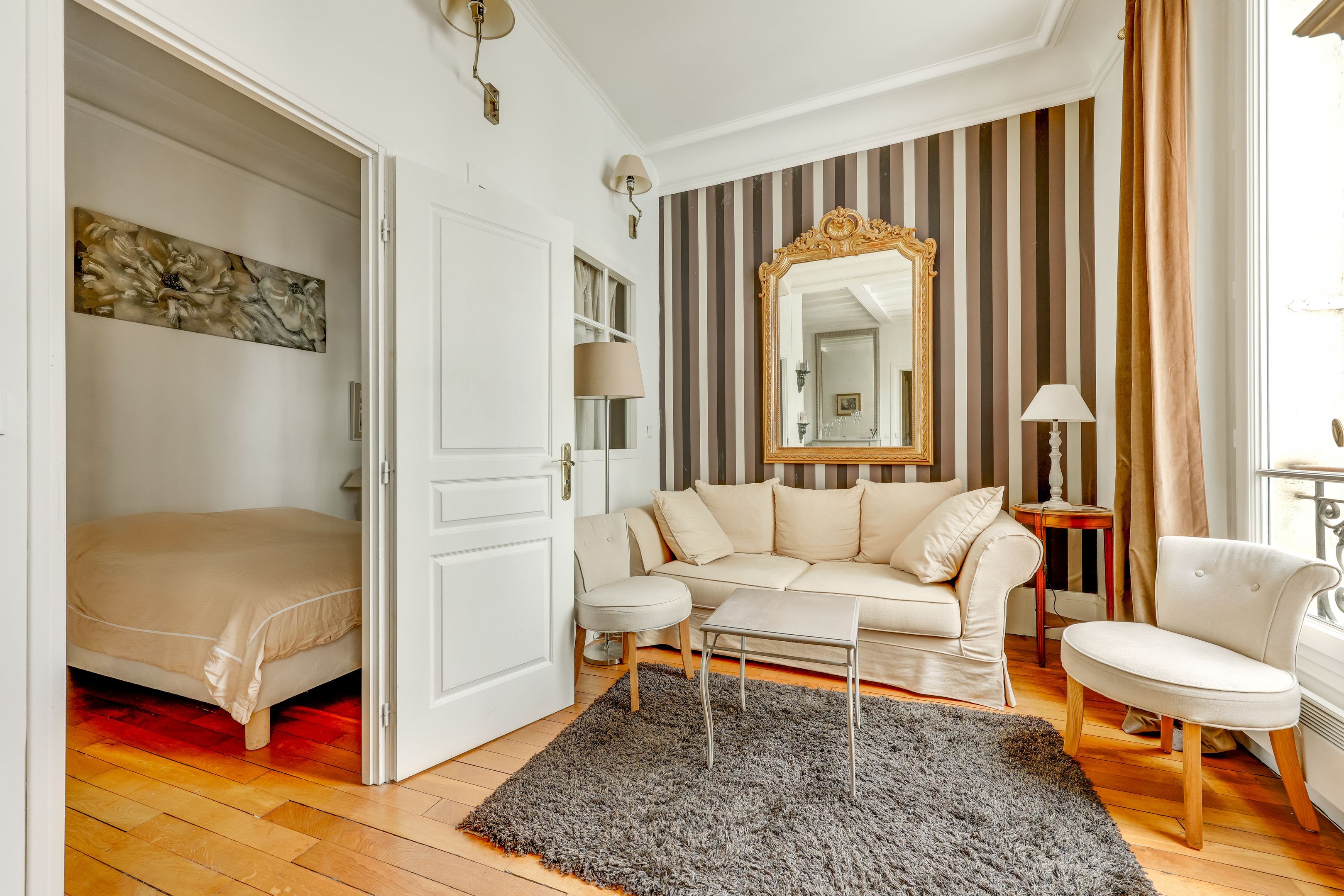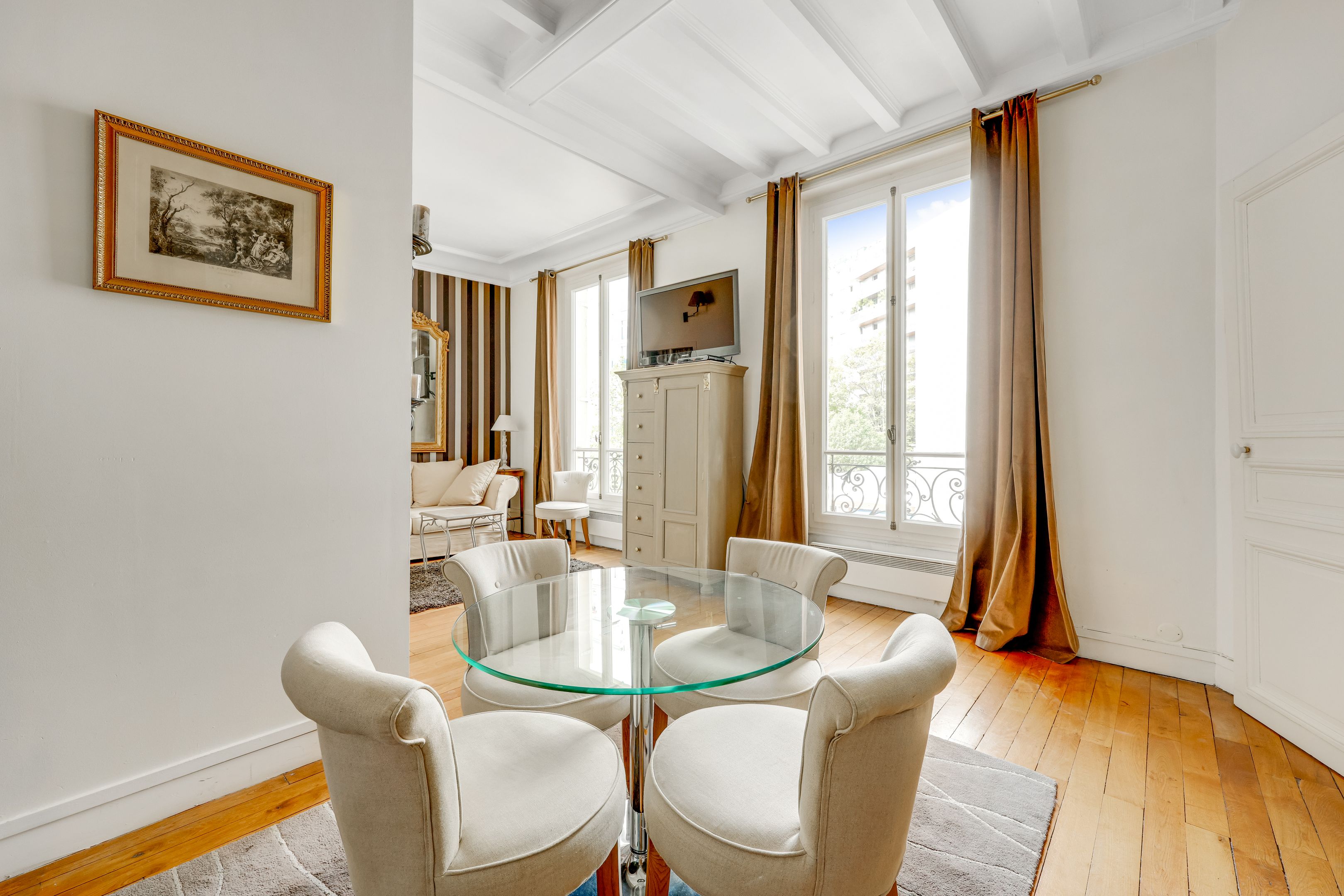 À proximité immédiate des jardins du Ranelagh et des commerces de l'avenue Mozart, au 2ème étage sur cour d'un immeuble bâti en 1905 de très belle facture aux parties communes de standing, appartement lumineux au charme de l'ancien (parquet, moulures, cheminée) de 42 m² bénéficiant de très beaux volumes. Entrée, vaste réception avec cuisine ouverte aménagée et équipée, chambre en alcôve, salle de bains, toilettes séparées, rangements. Cave.