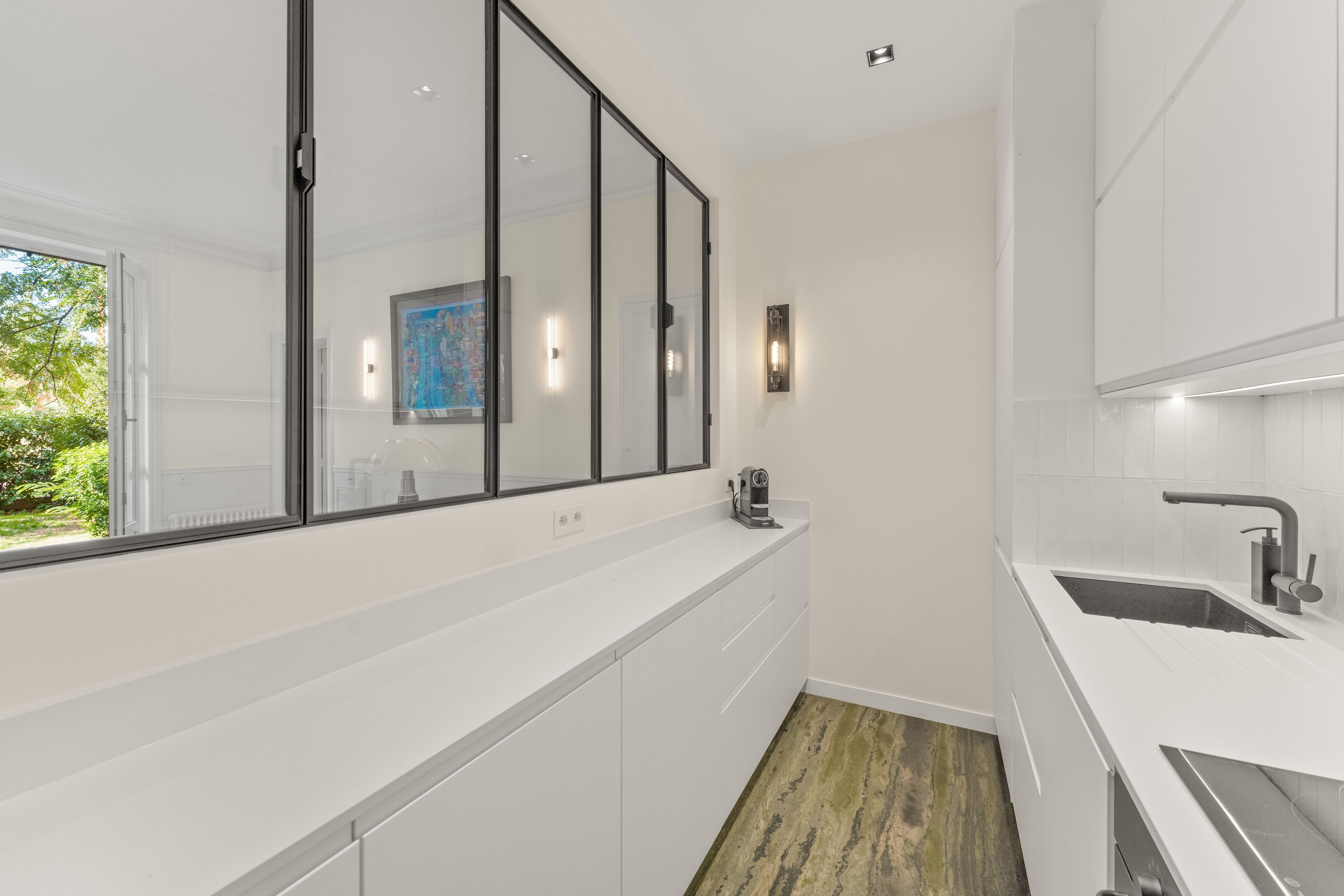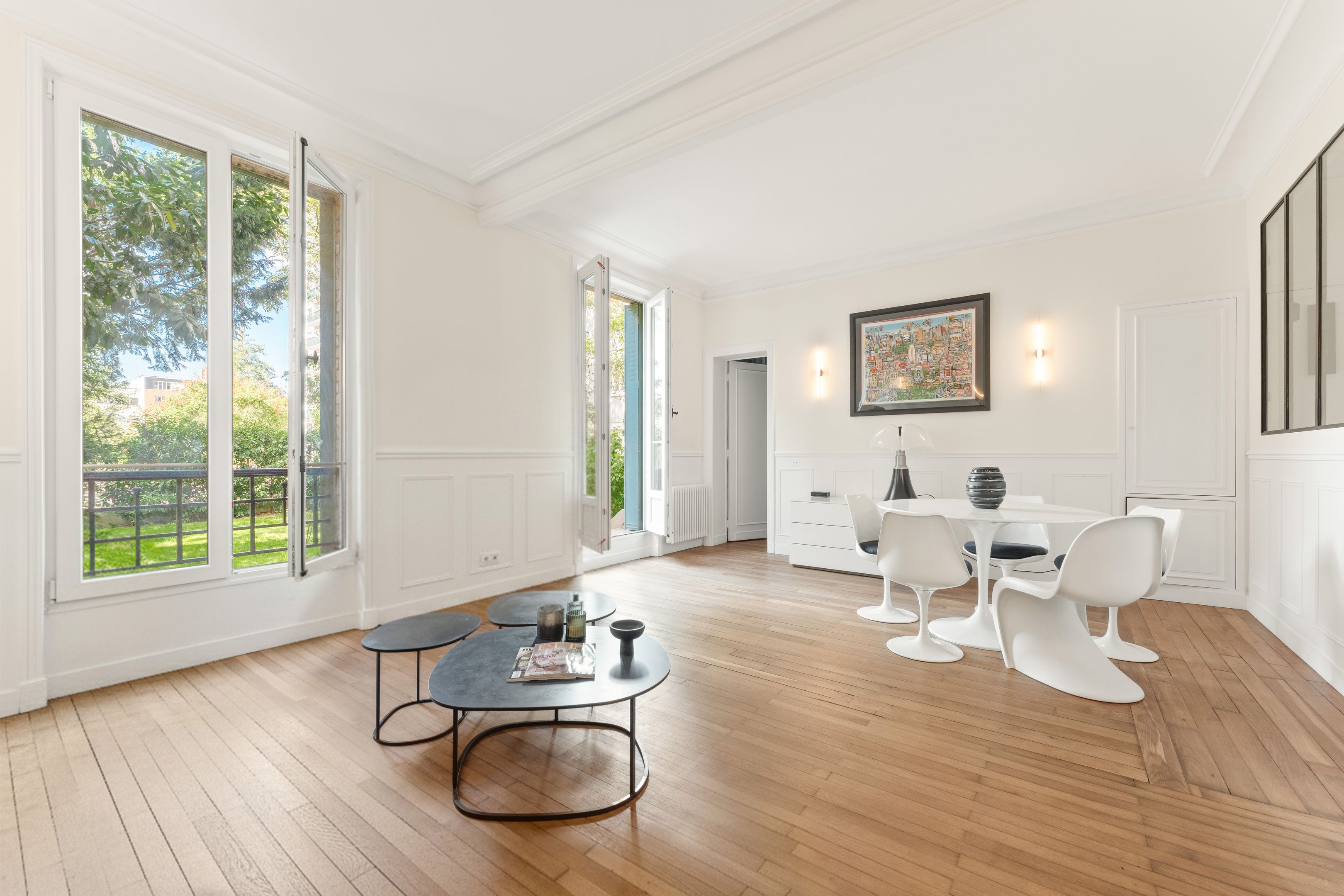Appartement avec jardin – Immeuble ancien aux élégantes parties communes parfaitement entretenues. Appartement de 55m2 loi Carrez aux beaux volumes donnant sur un jardin de 178m2 ensoleillé et au calme exposé ouest en jouissance exclusive. Parfaitement rénové avec des matériaux de grande qualité, il offre entrée, double séjour donnant accès au jardin, chambre sur jardin, cuisine équipée, salle d’eau, nombreux rangements intégrés, cave.