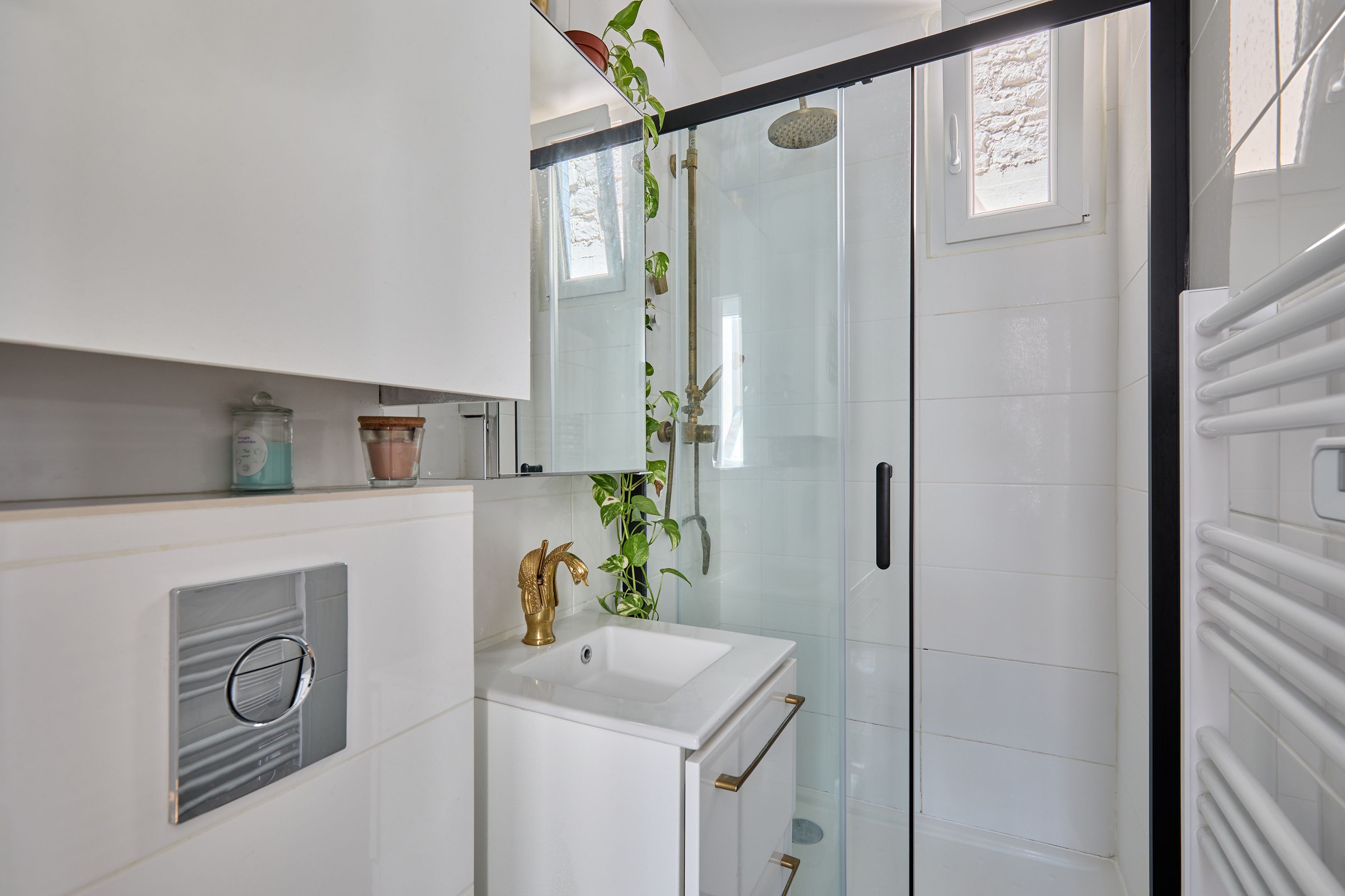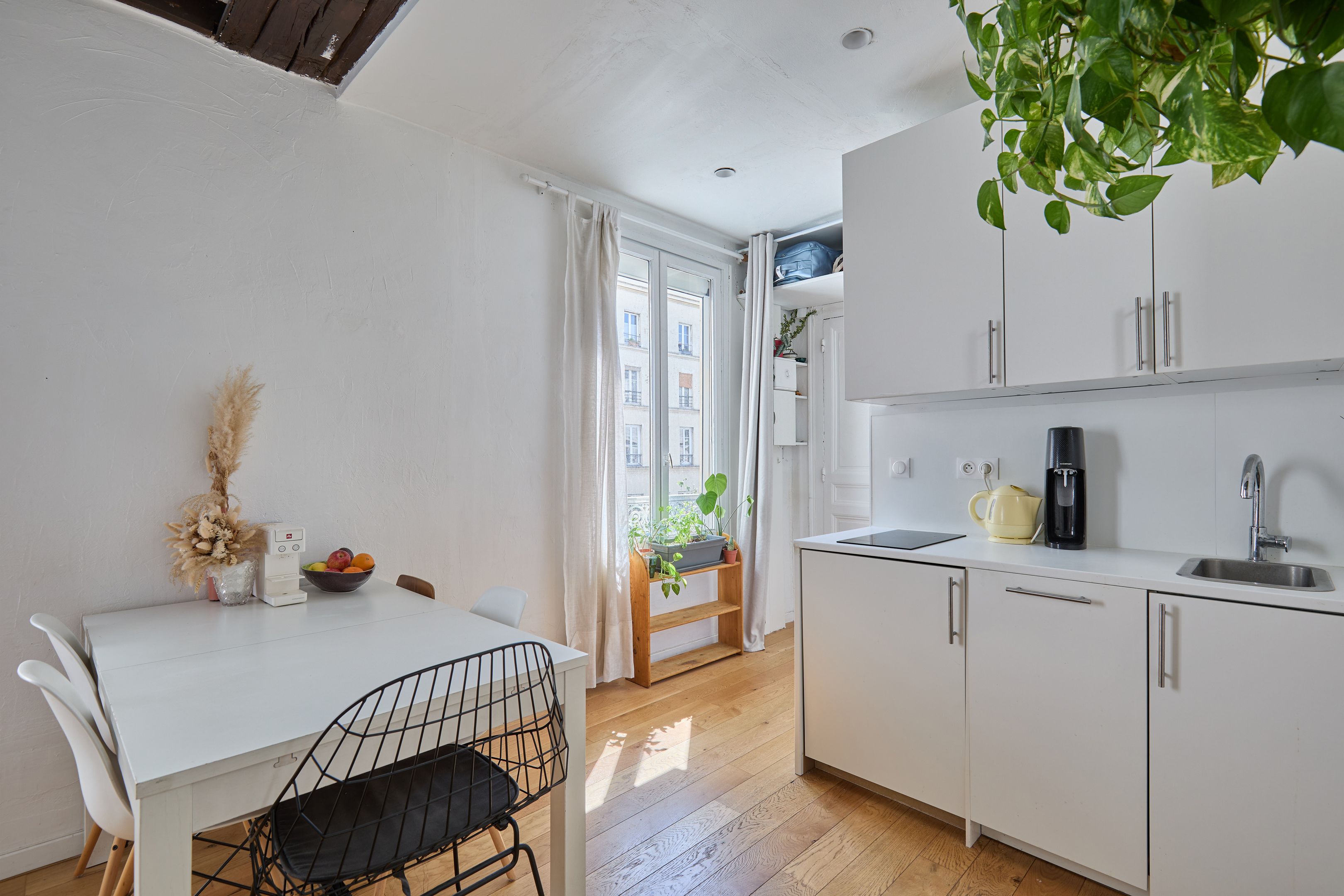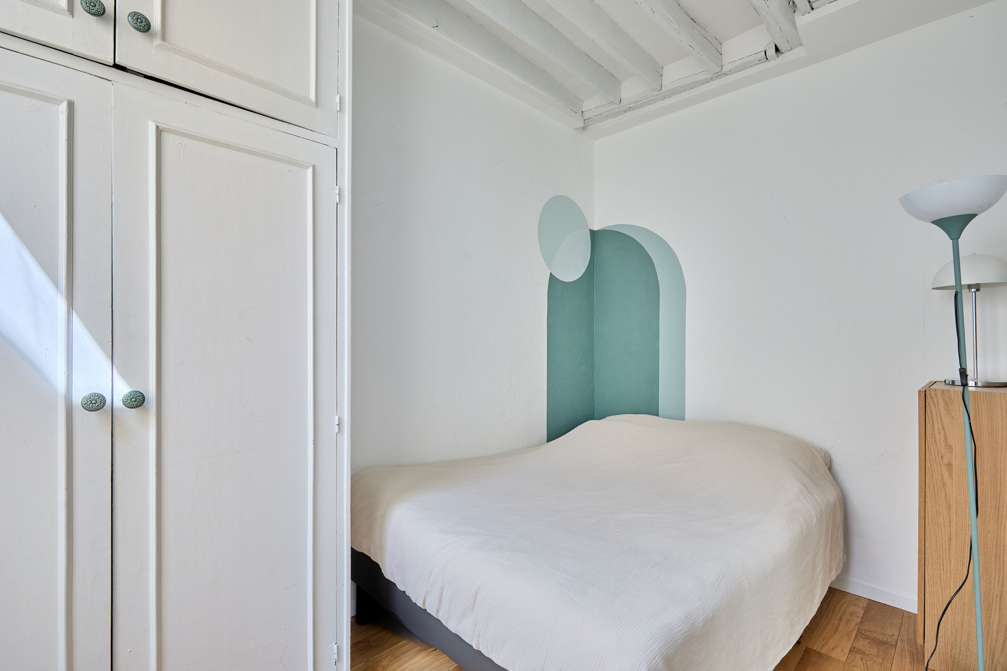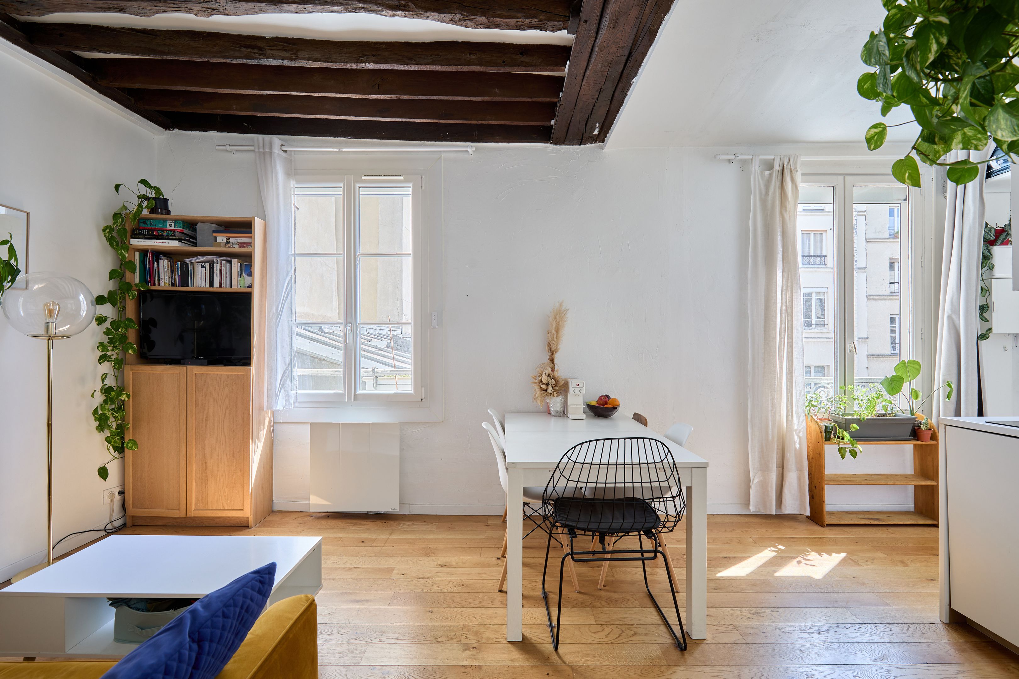 Immeuble de 1700 proche de la rue de Bretagne, au calme absolu. Appartement de deux pièces en excellent état, au 2ème étage desservi par escalier. Entrée, séjour orienté sud-est sur cour calme et dégagée, cuisine ouverte aménagée et équipée, espace nuit avec dressing, salle d'eau avec toilettes. Deux débarras. Gardien.