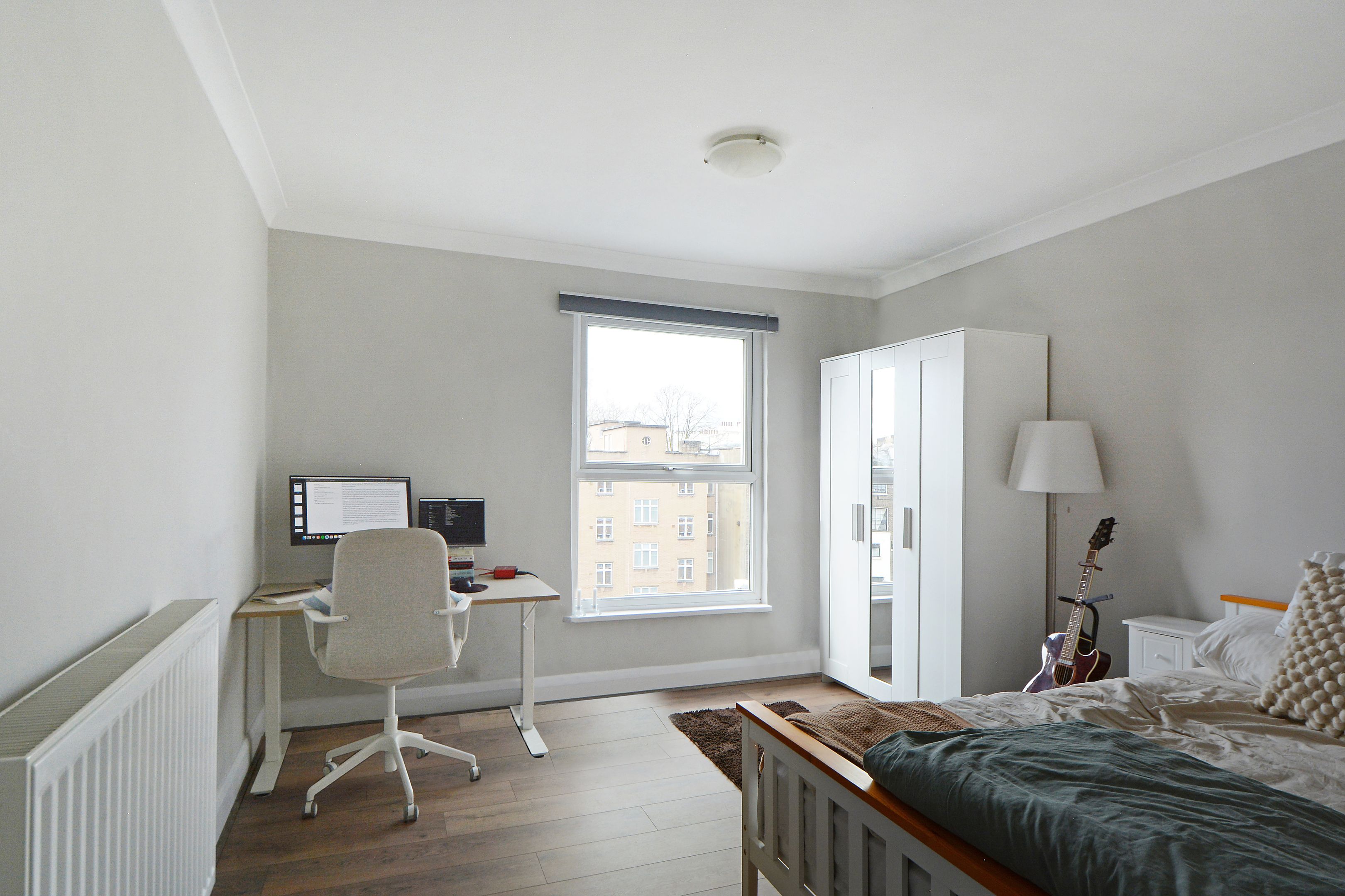 Il s'agit d'un charmant appartement situé au 4ème étage (avec ascenseur) d'une maison d'époque à façade en stuc blanc. Avec une salle de réception spacieuse qui donne sur le balcon, il est parfait pour recevoir ou se détendre en toute tranquillité. Les deux chambres doubles sont de taille similaire, ce qui est idéal pour les amis qui partagent un logement ou pour ceux qui recherchent une chambre d'amis ou un bureau à domicile. Il y a une nouvelle salle de bain moderne, une cuisine séparée et du parquet dans tout l'appartement ainsi que beaucoup de lumière naturelle.