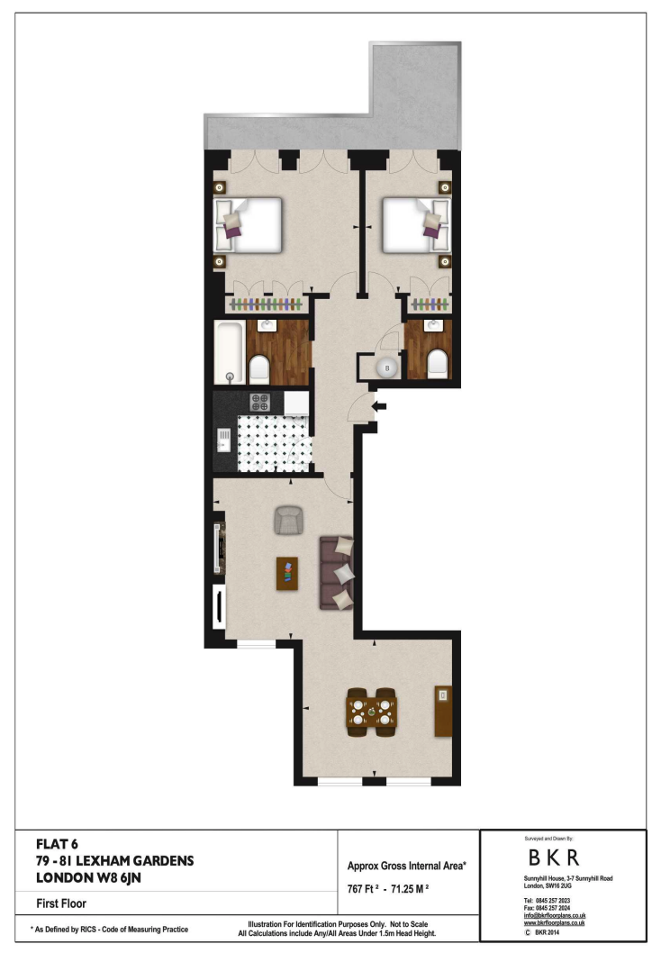 71 m²2 chambresCharges forfaitaires: 0 £plan