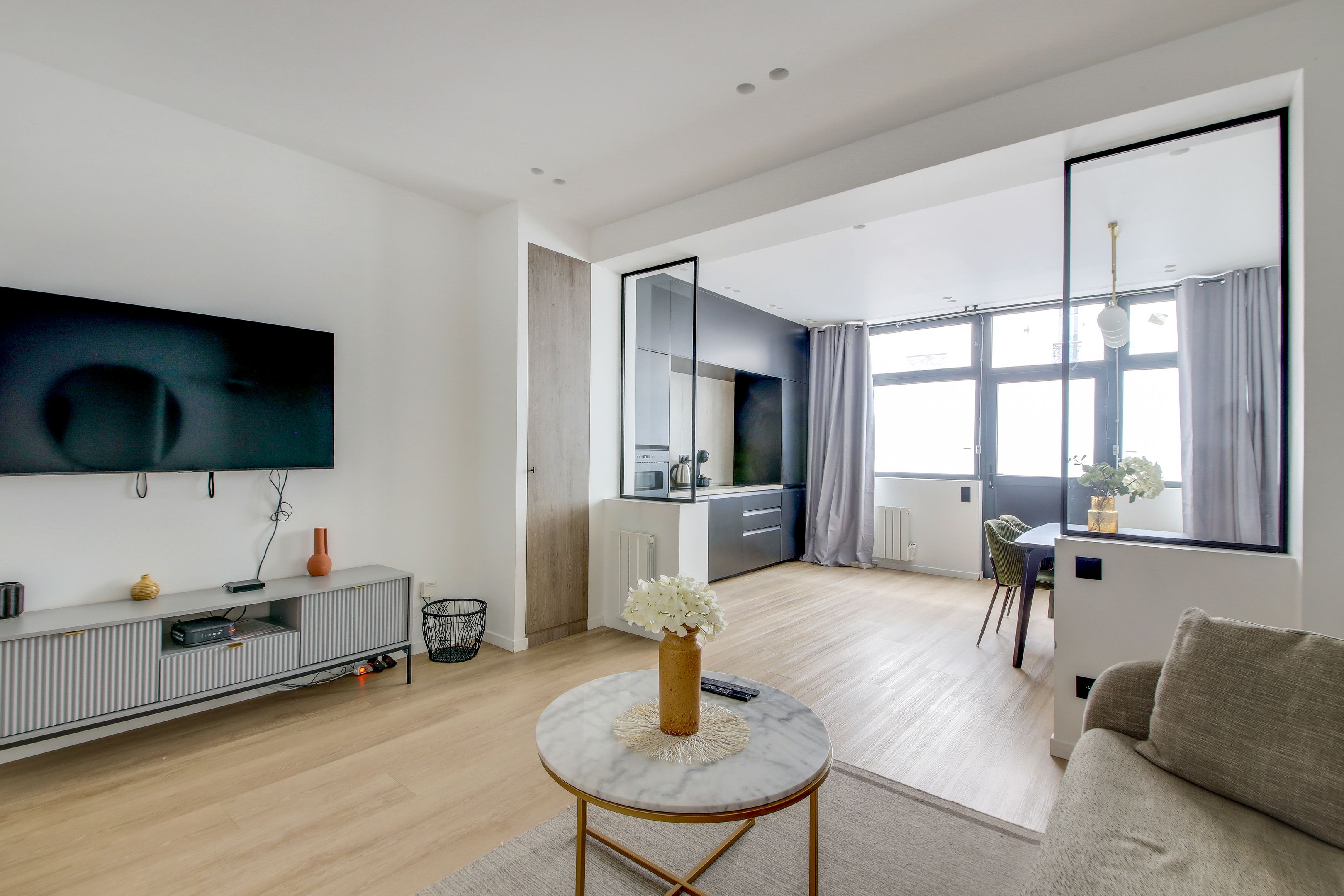 Petite copropriété idéalement localisée en plein coeur du village des Batignolles. Appartement en parfait état d'une superficie de 65,88m² situé en rez-de-chaussée. Entrée, séjour, cuisine ouverte, salon, 2 chambres, 2 salles d'eau avec toilettes. Vendu meublé et équipé, statut hébergement hôtelier.