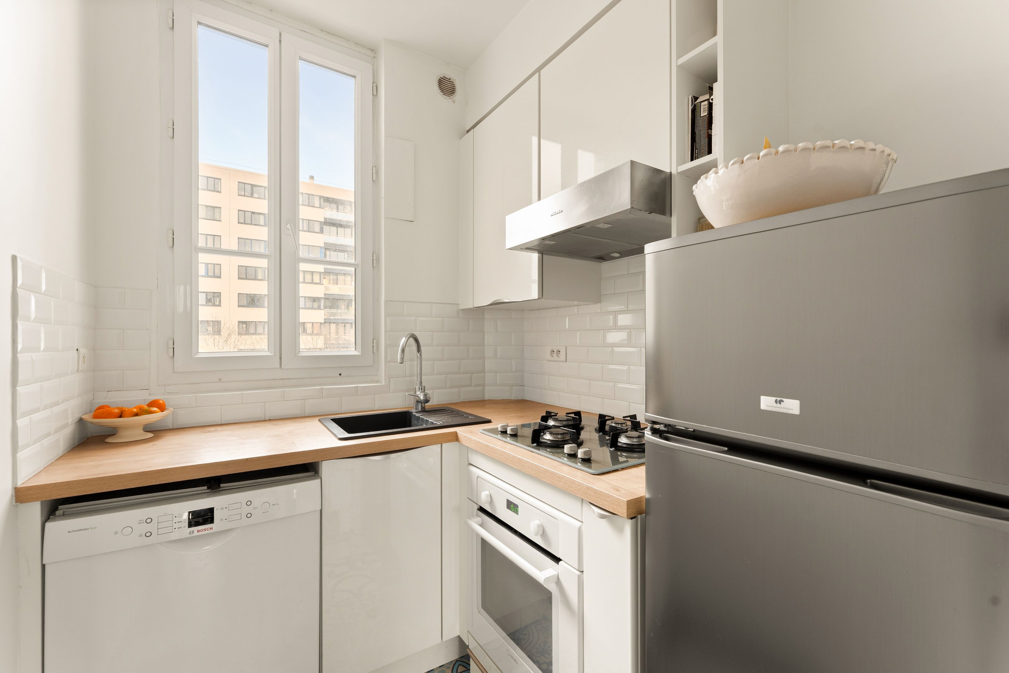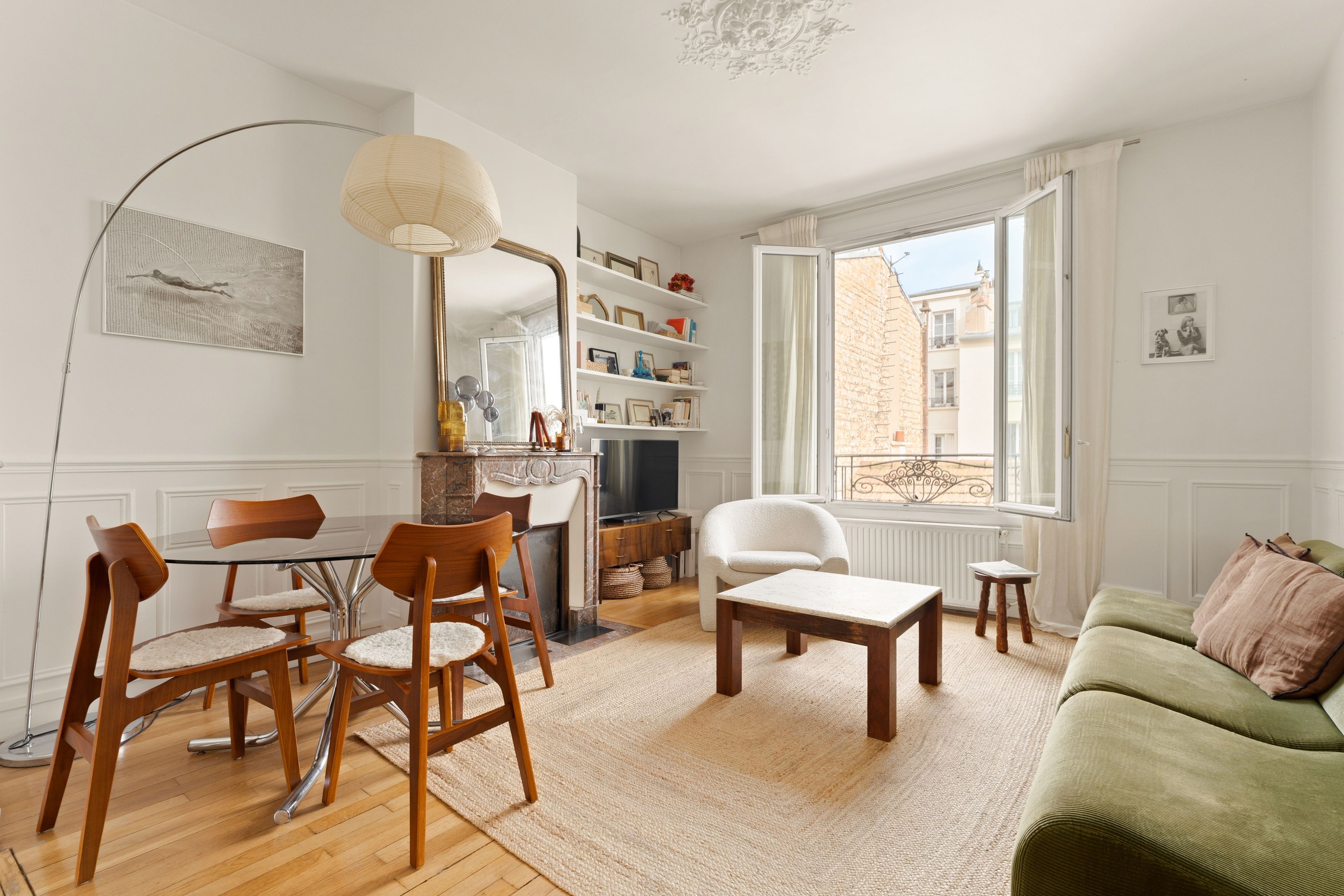 Levallois-Louise Michel. Seul à l'étage dans un immeuble ancien de 1900, appartement traversant en excellent état. Séjour, deux chambres, cuisine indépendante aménagée et équipée, salle de bains et toilettes invités. Nombreux rangements. Cave.