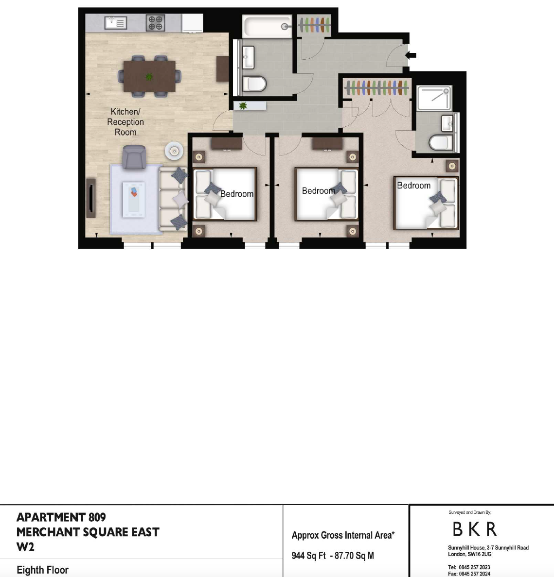 88 m²3 chambresCharges forfaitaires: 0 £plan