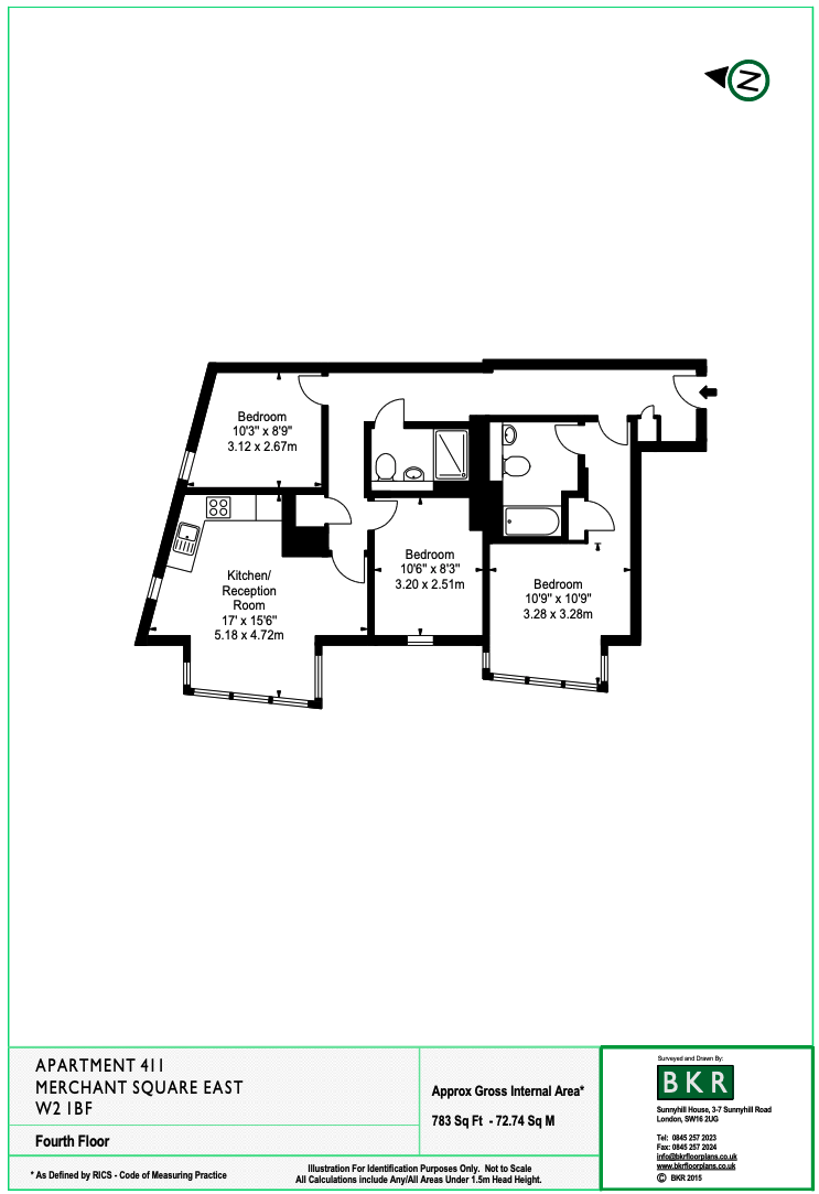 73 m²3 chambresCharges forfaitaires: 0 £plan