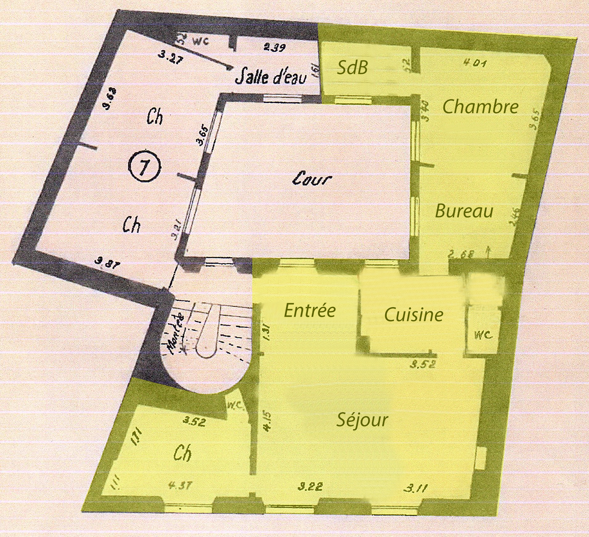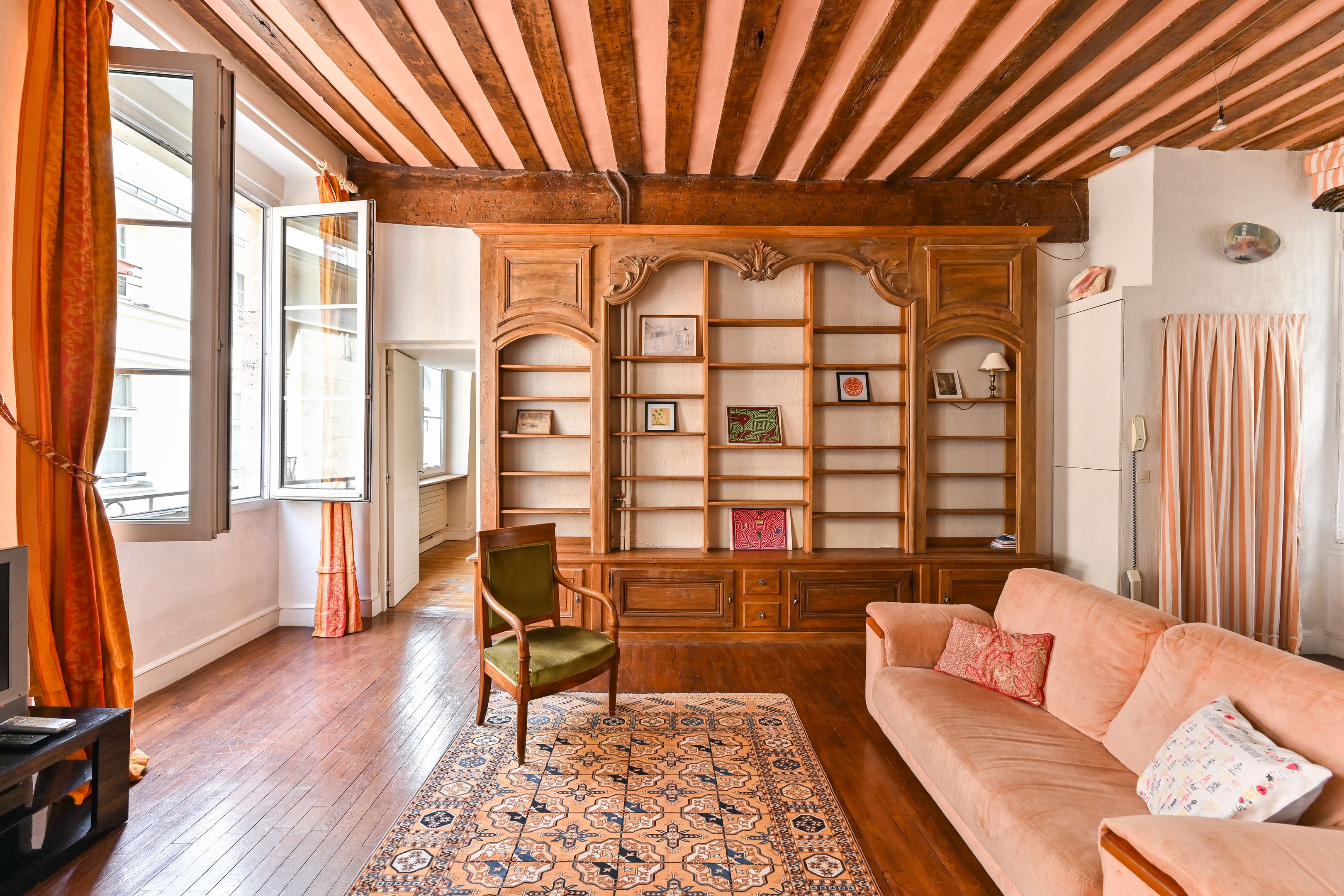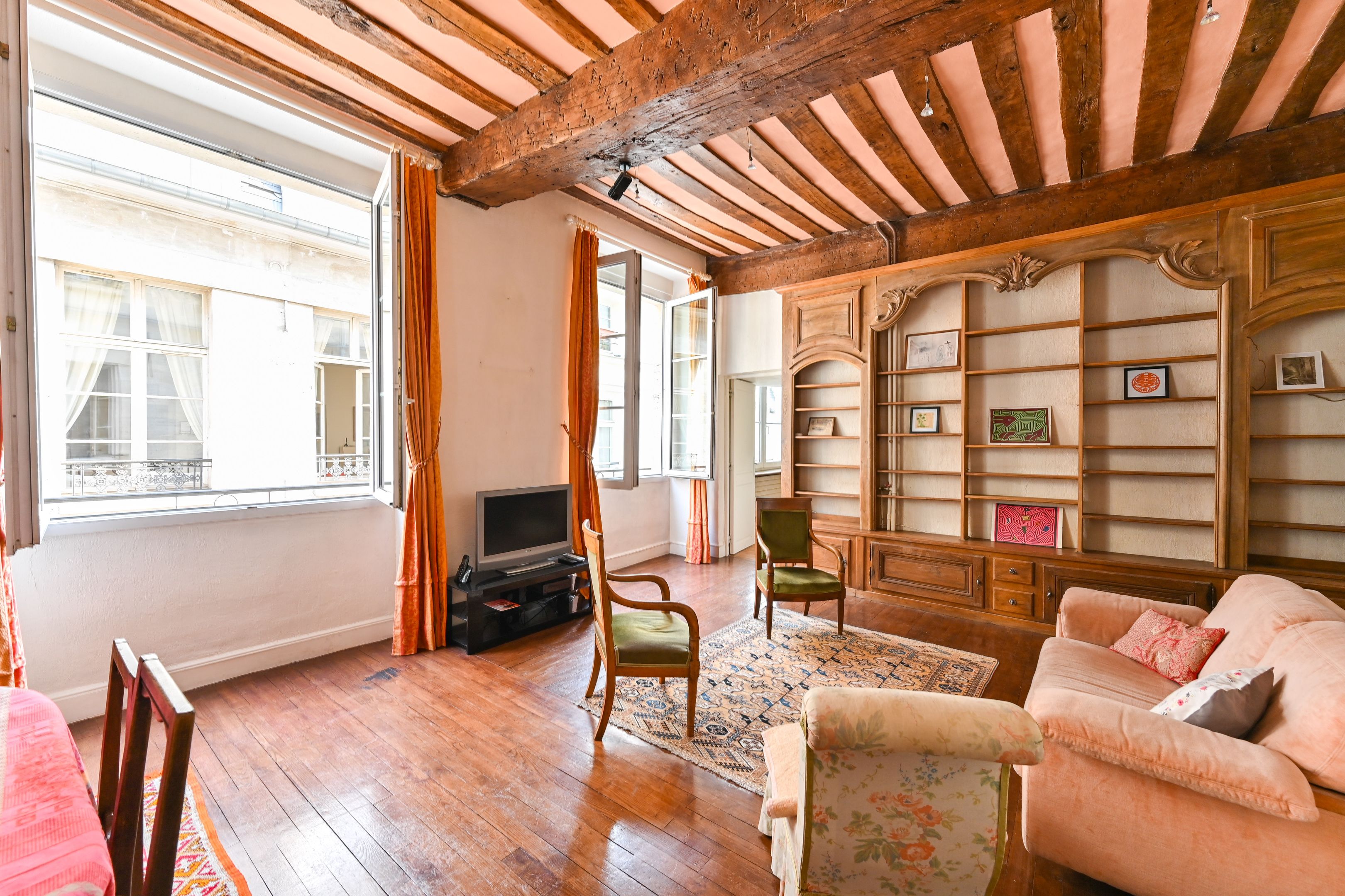 Bel immeuble ancien de 1820, de bon standing et idéalement situé dans le quartier Latin entre Odéon et la Seine, au 2ème étage desservi par ascenseur, un appartement traversant de 79m² (71,78m² loi Carrez + 7,3m² en jouissance exclusive), clair et calme, sans aucune perte de place, bénéficiant de beaux volumes (hauteur sous plafond de 3,20m) et de poutres apparentes. Grand séjour, cuisine séparée, bureau, 2 chambres, salle de bains, salle d'eau, débarras. Rénovation à prévoir, excellent potentiel.