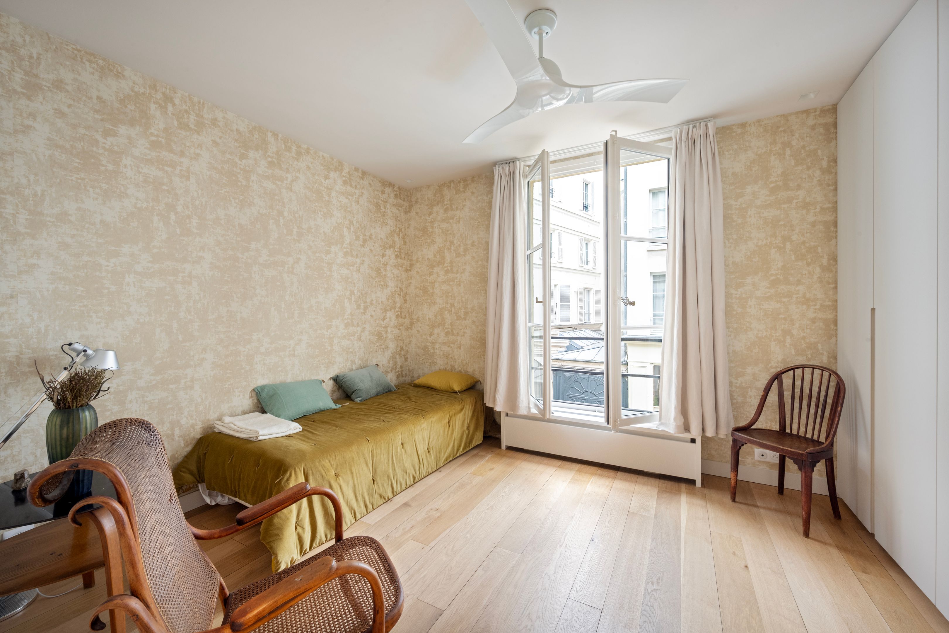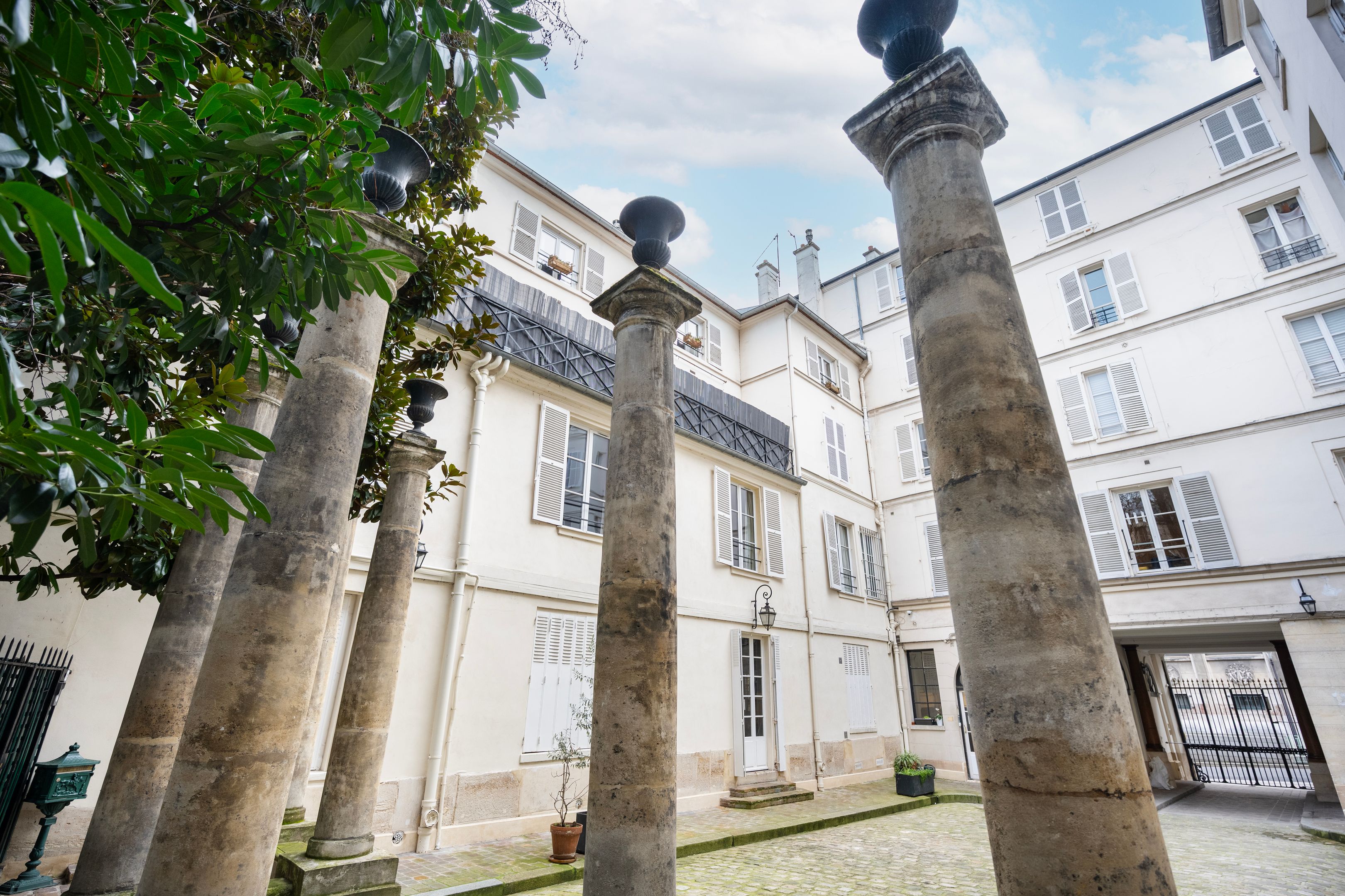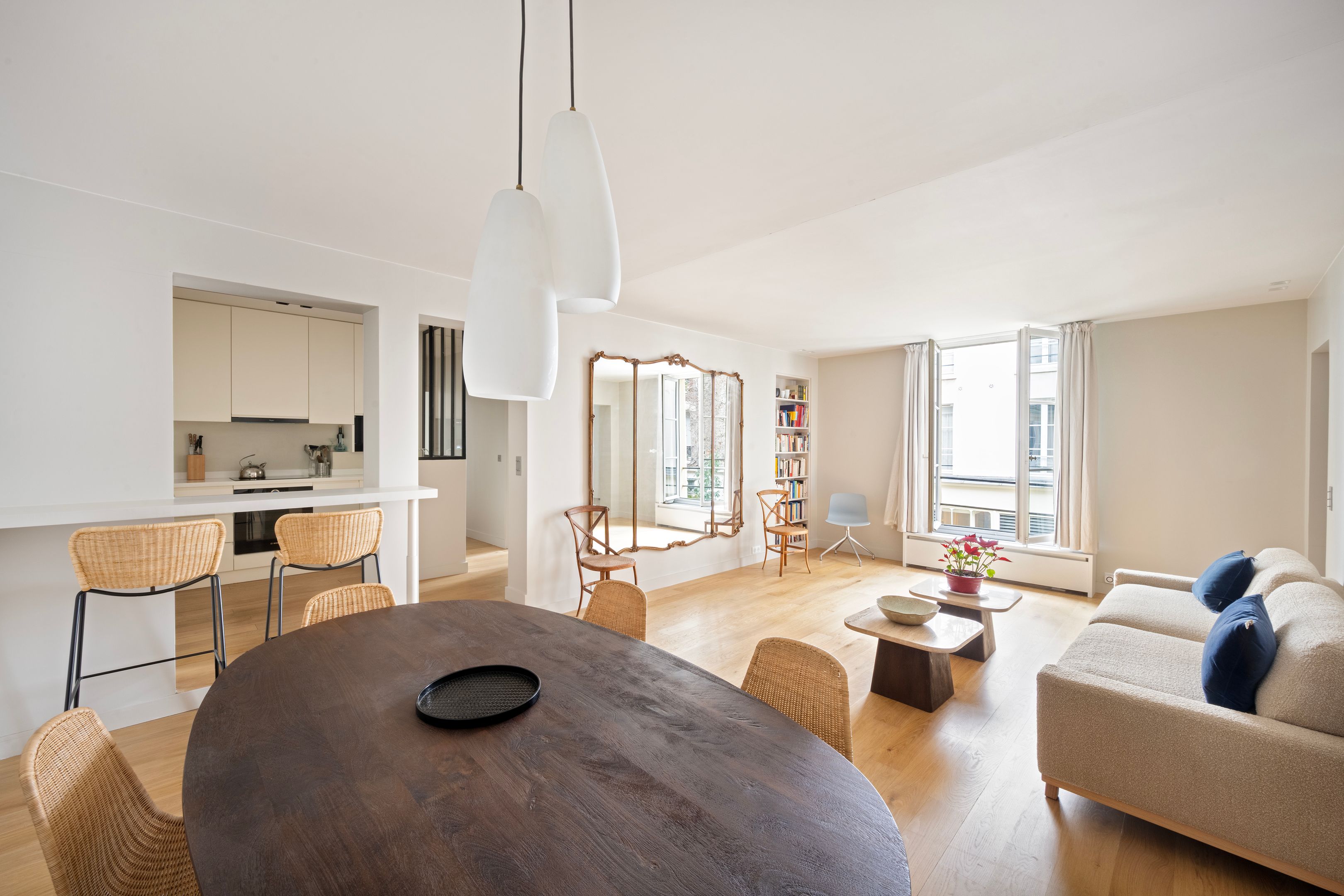A deux pas du Café de Flore, au calme d'une belle et vaste cour pavé fin XVIIIème et situé au 1er étage desservi par escalier, appartement de 95m² entièrement rénové avec de belles prestations, exposé sud-ouest, disposant d'une entrée avec bureau, salon/salle-à-manger et cuisine ouverte aménagée, deux chambres, une salle de bains et une salle d'eau toutes deux avec toilettes, dressing, buanderie, nombreux rangements et toilettes invitées. Une cave.