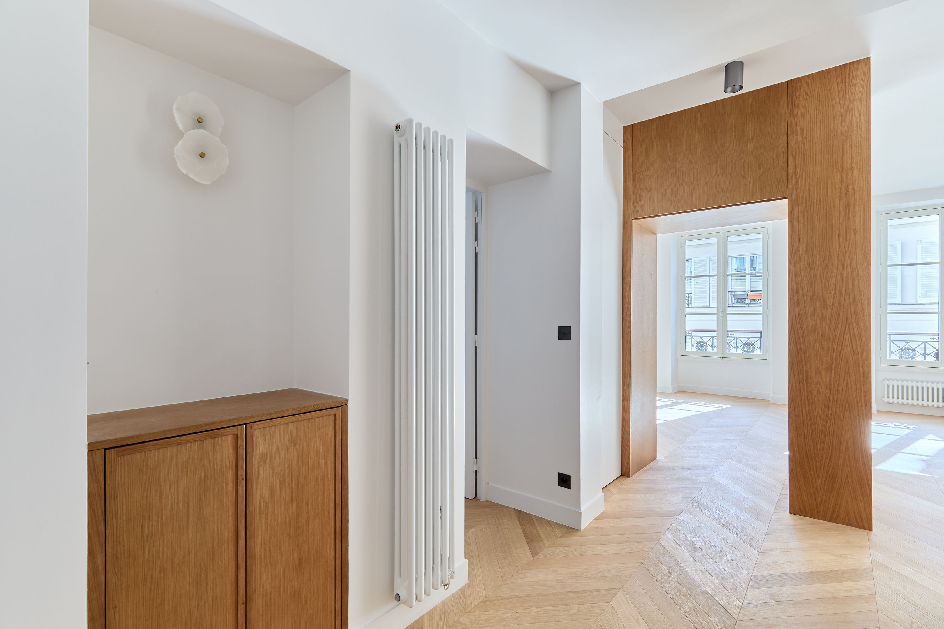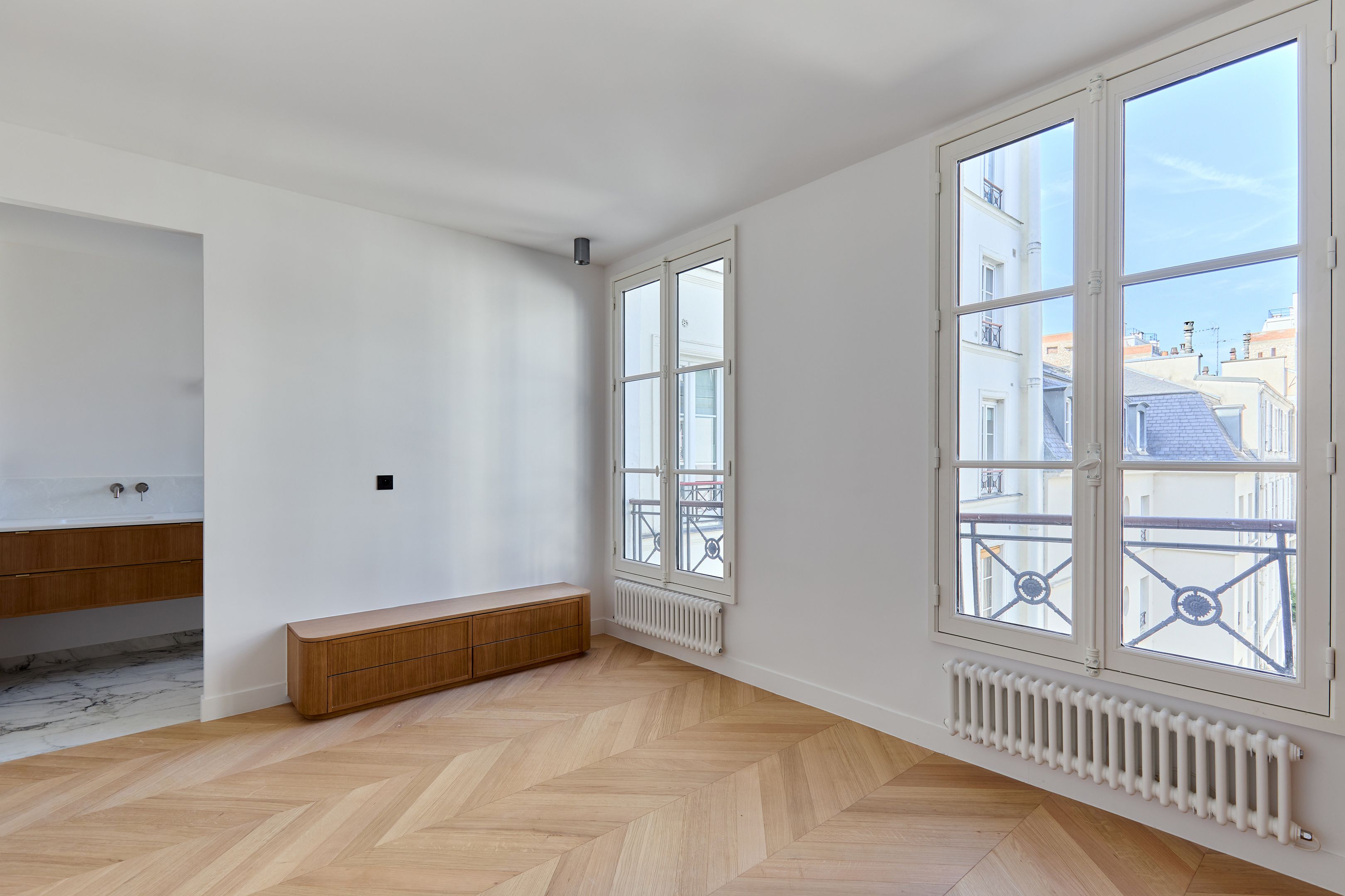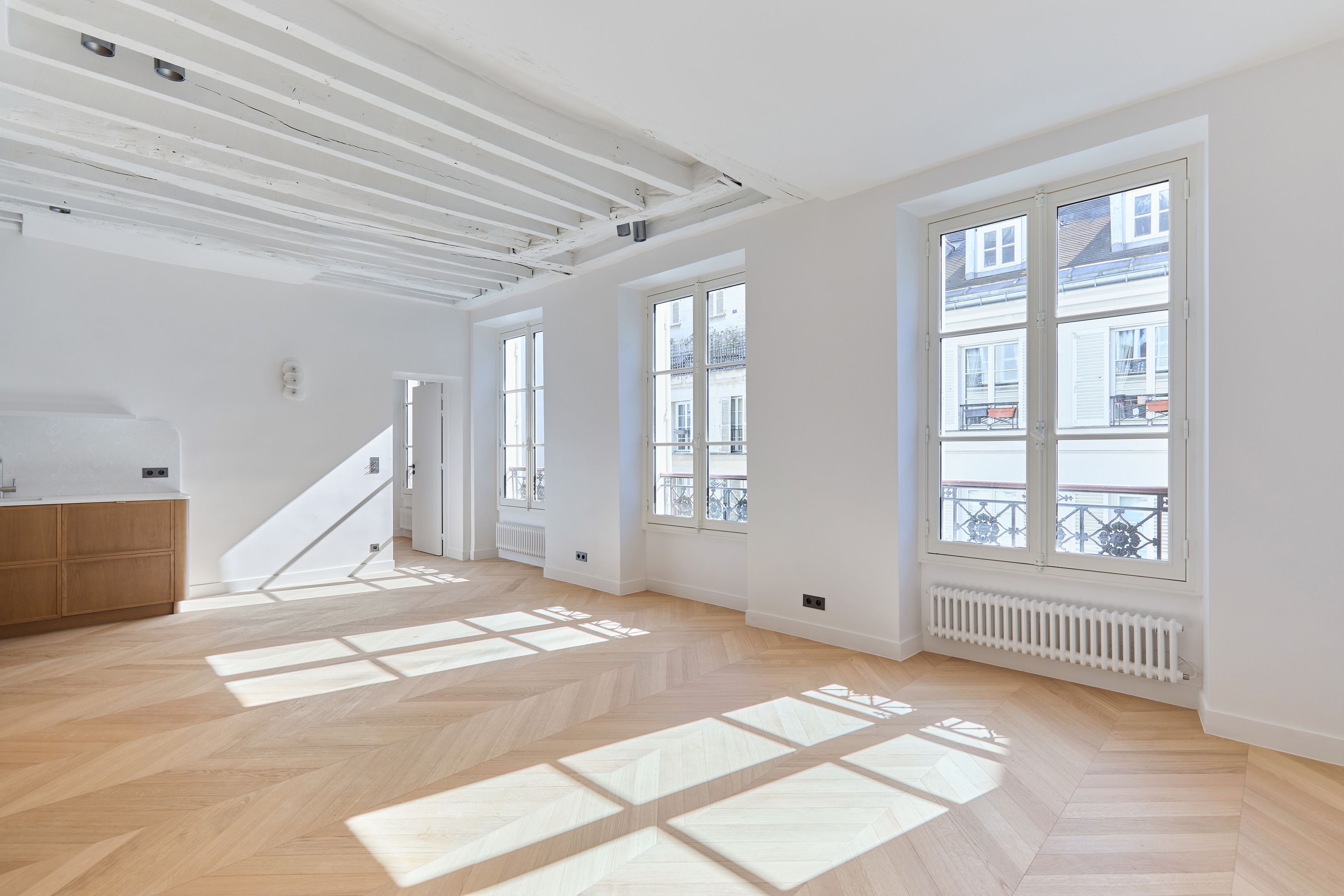 À proximité du Bon Marché, dans une rue calme et recherchée du 7ème arrondissement, au 3ème étage d'un immeuble bâti en 1890 desservi par ascenseur, un appartement baigné de lumière de 89,92 m² en parfait état avec un plan traversant. Belle entrée avec vestiaire et toilettes d'invités, vaste séjour exposé sud avec cuisine ouverte équipée et aménagée, deux chambres en suite dont une avec toilettes, nombreux rangements et dressing. Cave. Chantier terminé dans deux semaines.