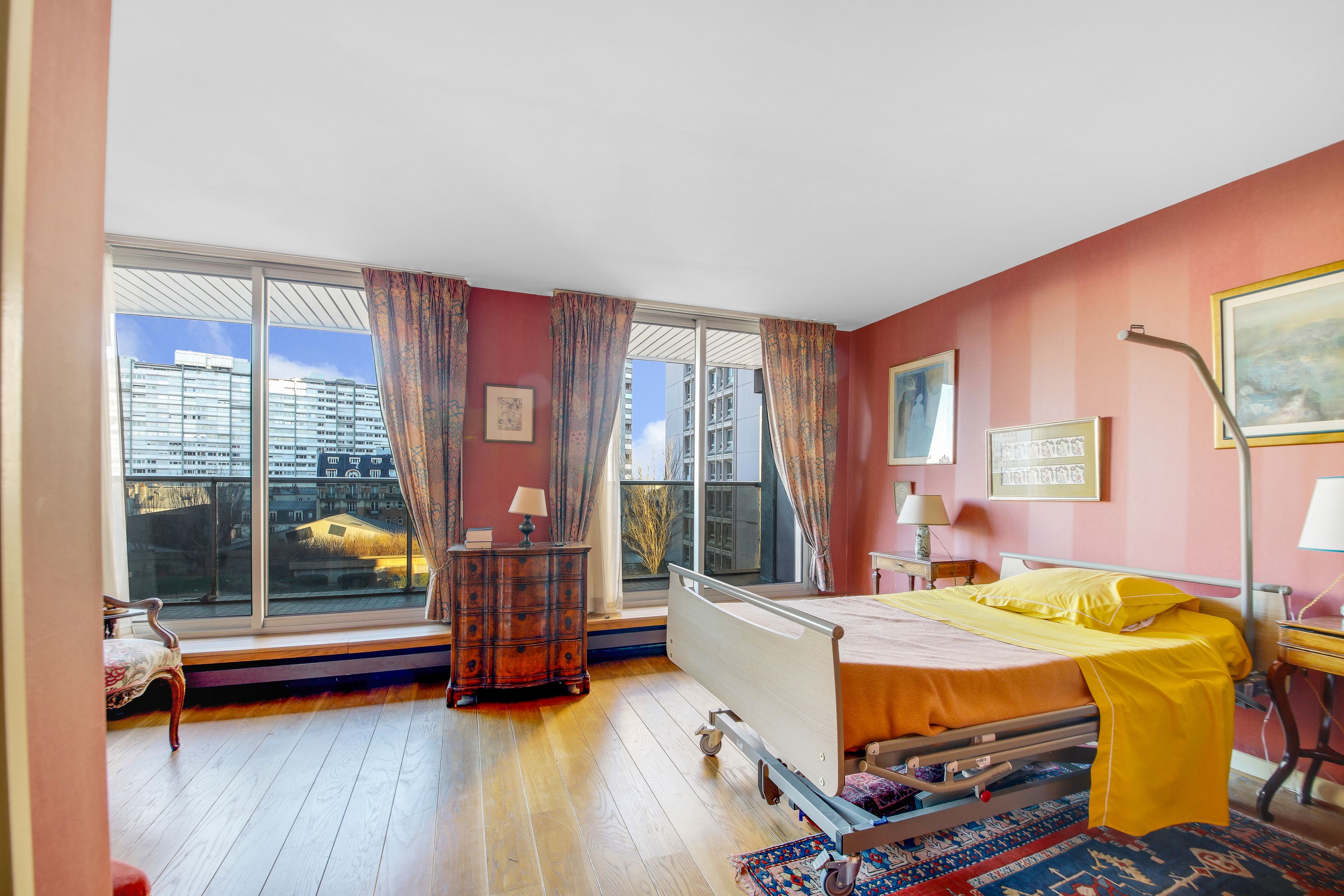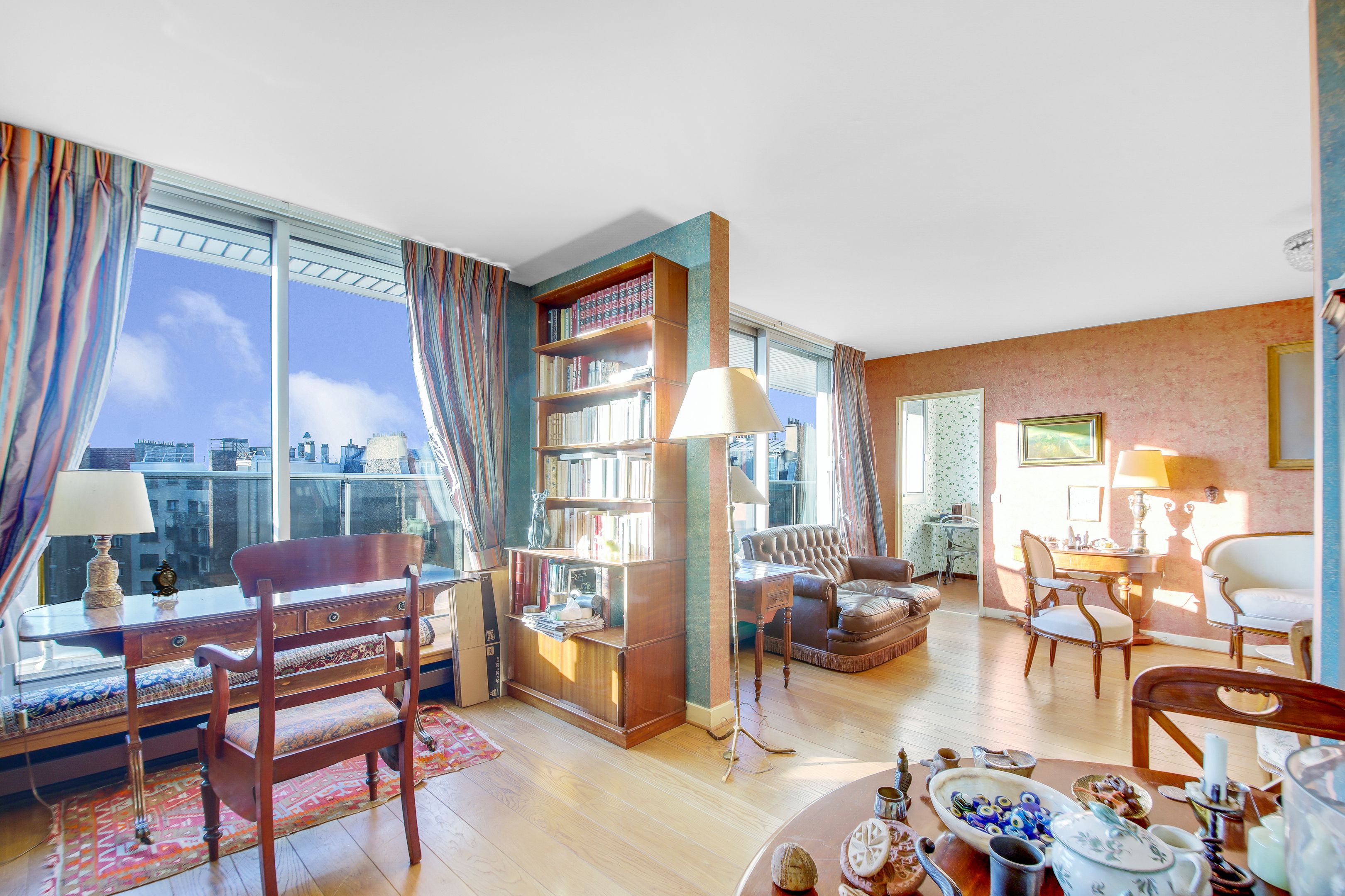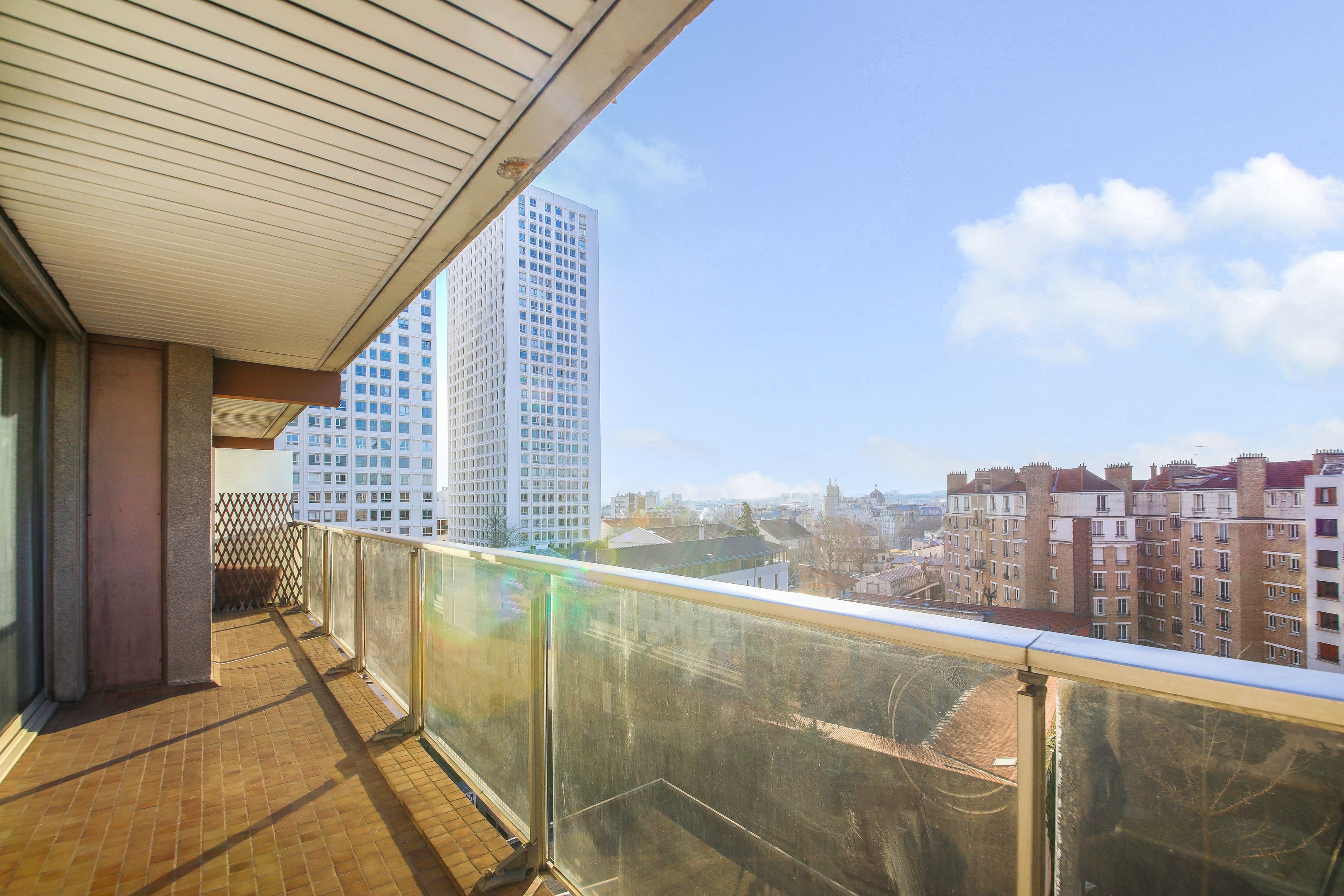 A proximité de la place d'Italie et du quartier de la Butte-aux-Cailles, des commerces, transports et écoles. Immeuble de standing des années 1970, appartement lumineux, traversant, à rénover, au 8ème étage desservi par ascenseur, doté d'un plan compact, de deux larges balcons (de plain-pied séjour et chambres). Entrée, vaste double réception bénéficiant d'une vue dégagée et d'une belle exposition sud-ouest, cuisine indépendante équipée, 2 chambres, salle d'eau et toilettes invités. Parking dans l'immeuble. Cave.