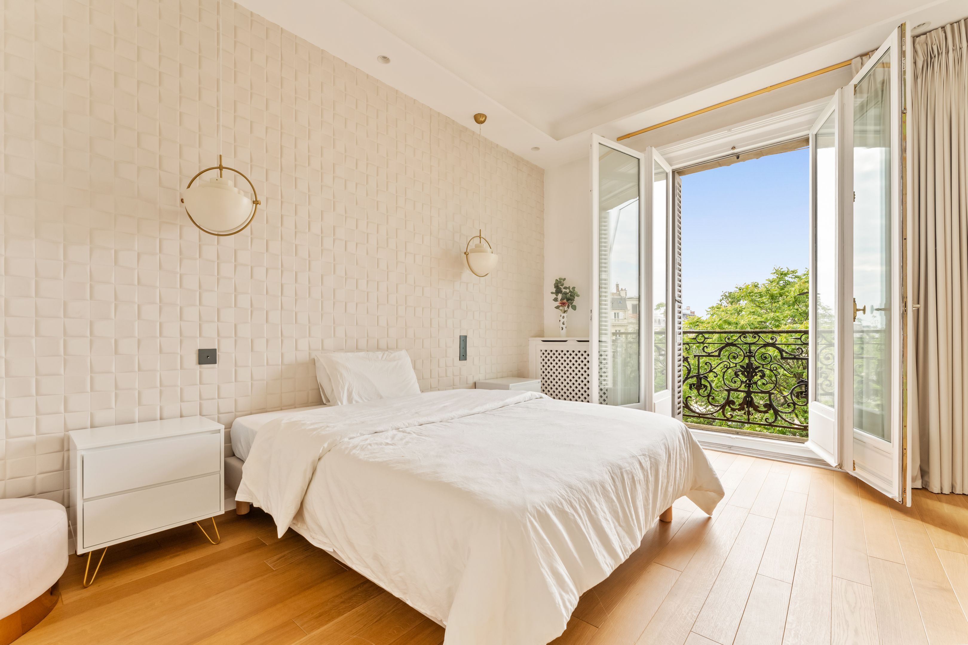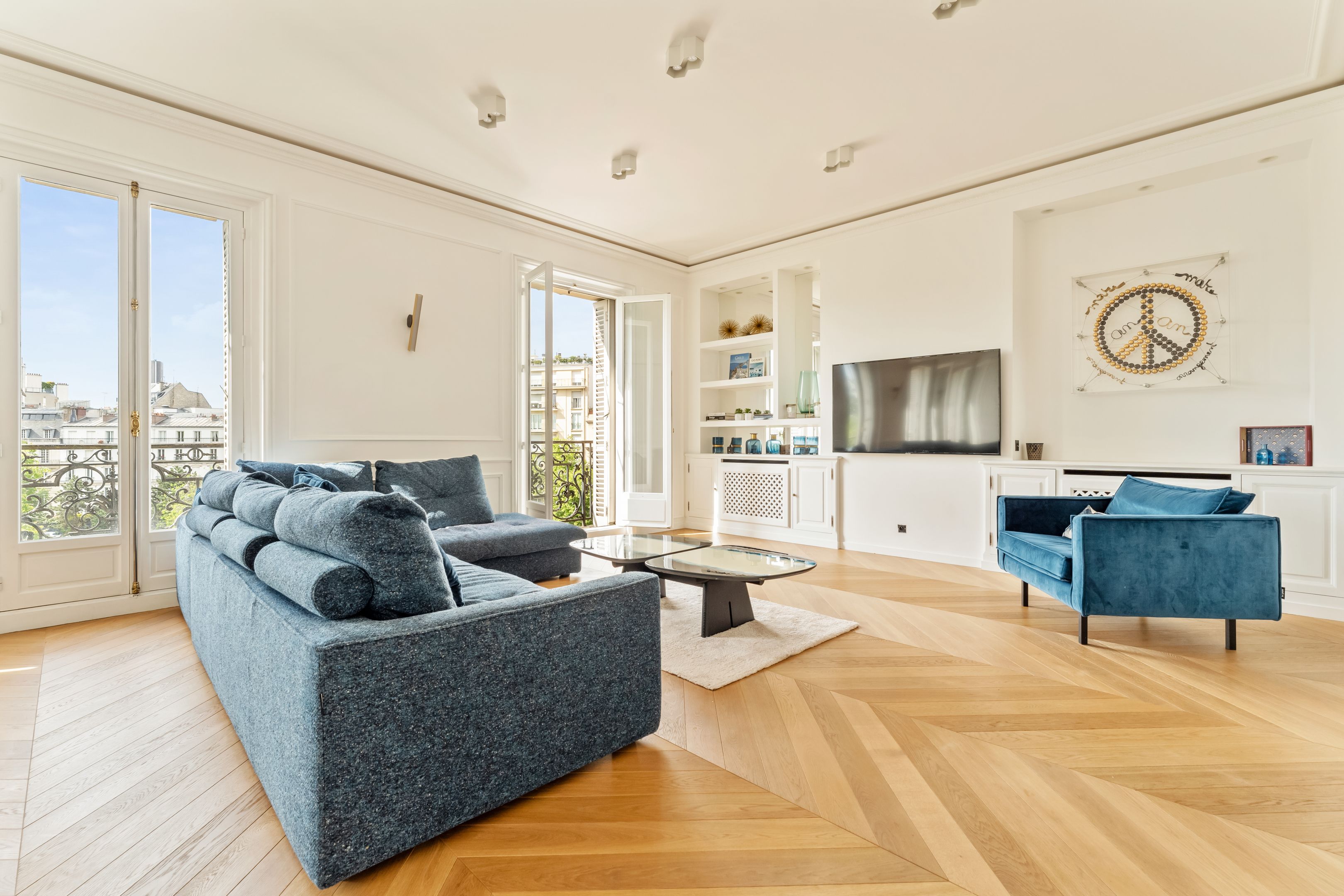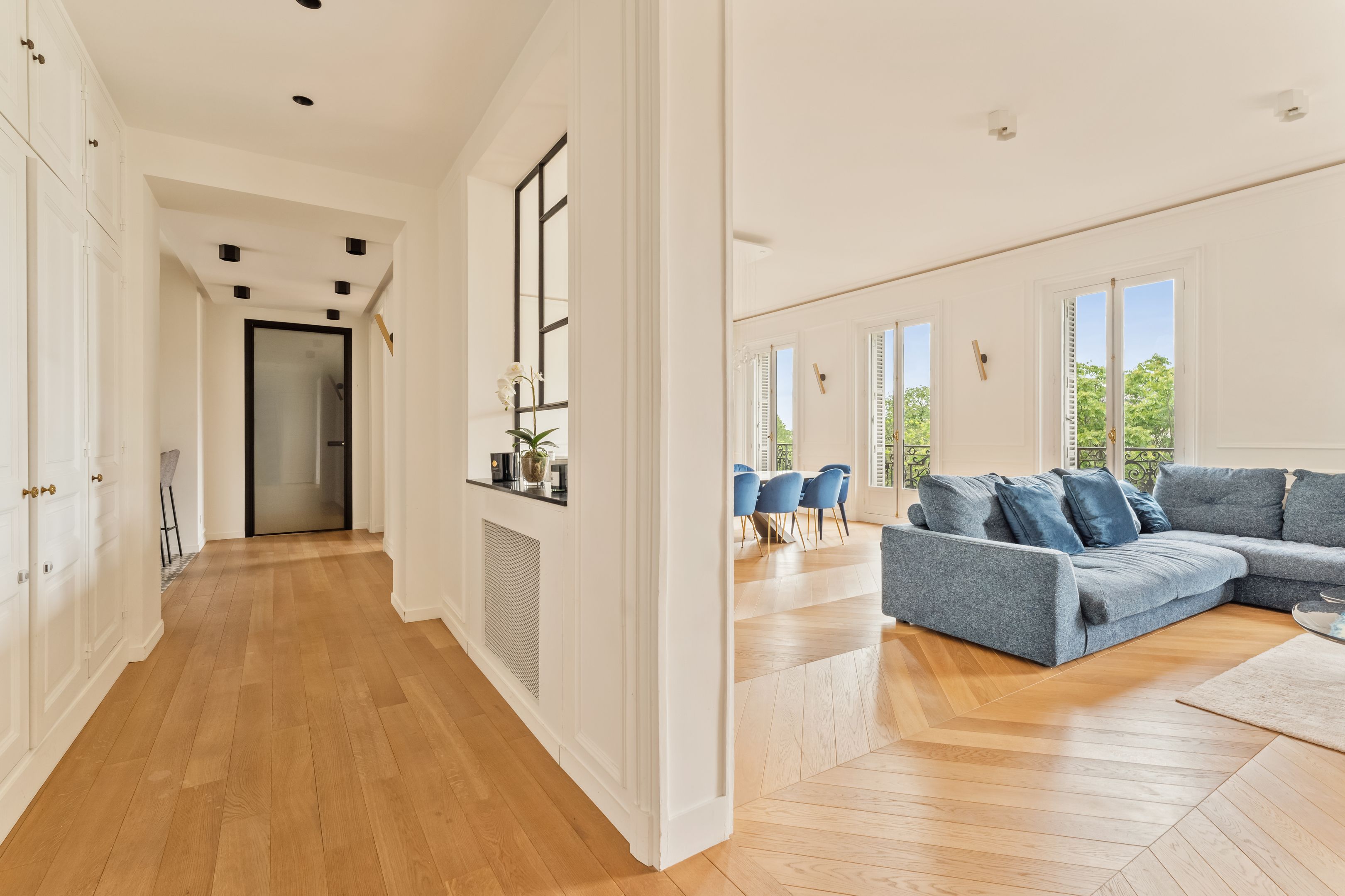 Immeuble pierre de Taille, sécurisé (digicodes, gardien). Très bel appartement meublé de 135 m², récemment rénové, au troisième étage desservi par ascenseur. Vaste entrée, double-réception avec balcon sur l'avenue Foch, cuisine séparée, aménagée et équipée, deux chambres, dressing, salle de bains complète et toilettes invités. Très nombreux rangements.