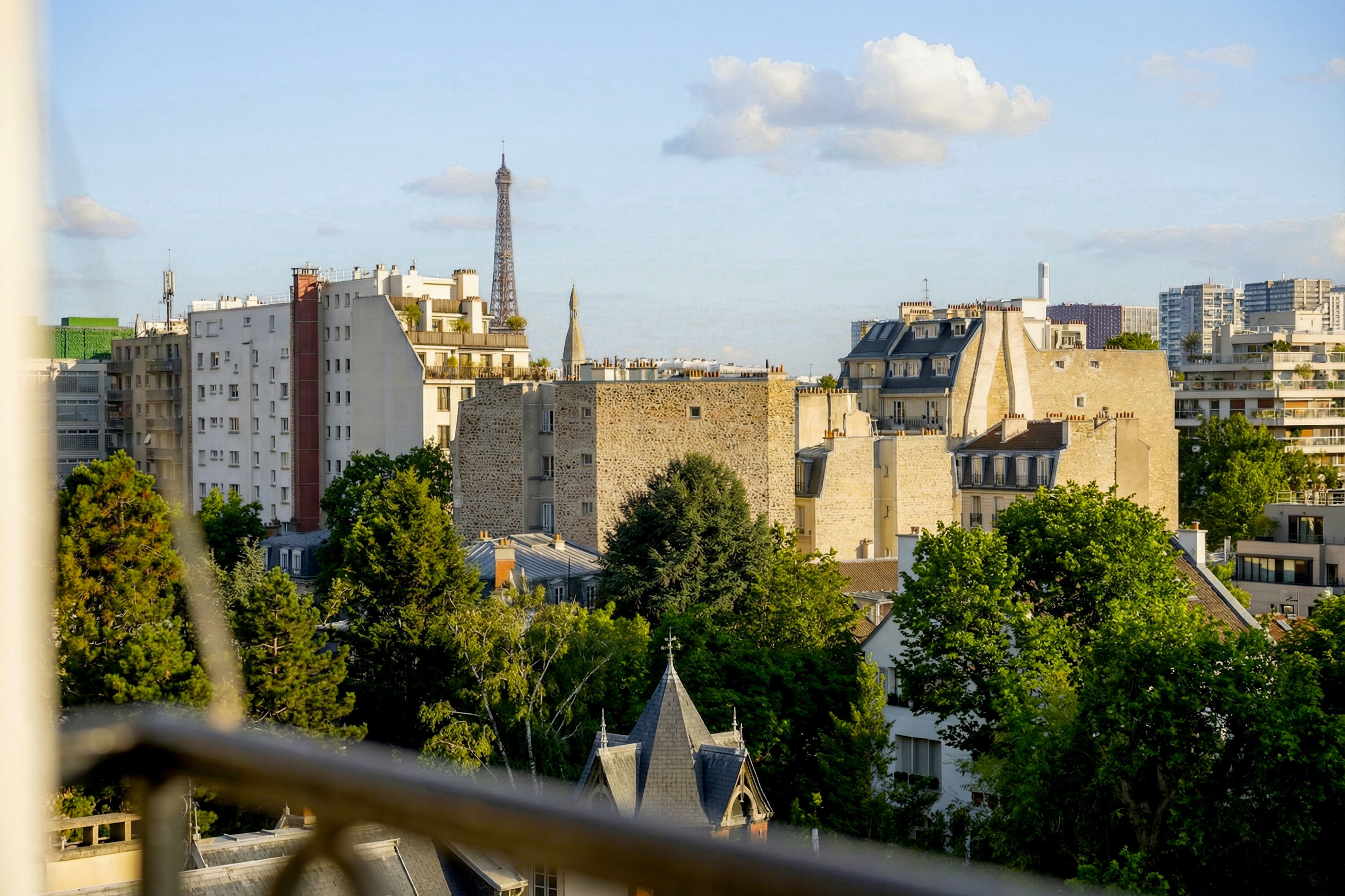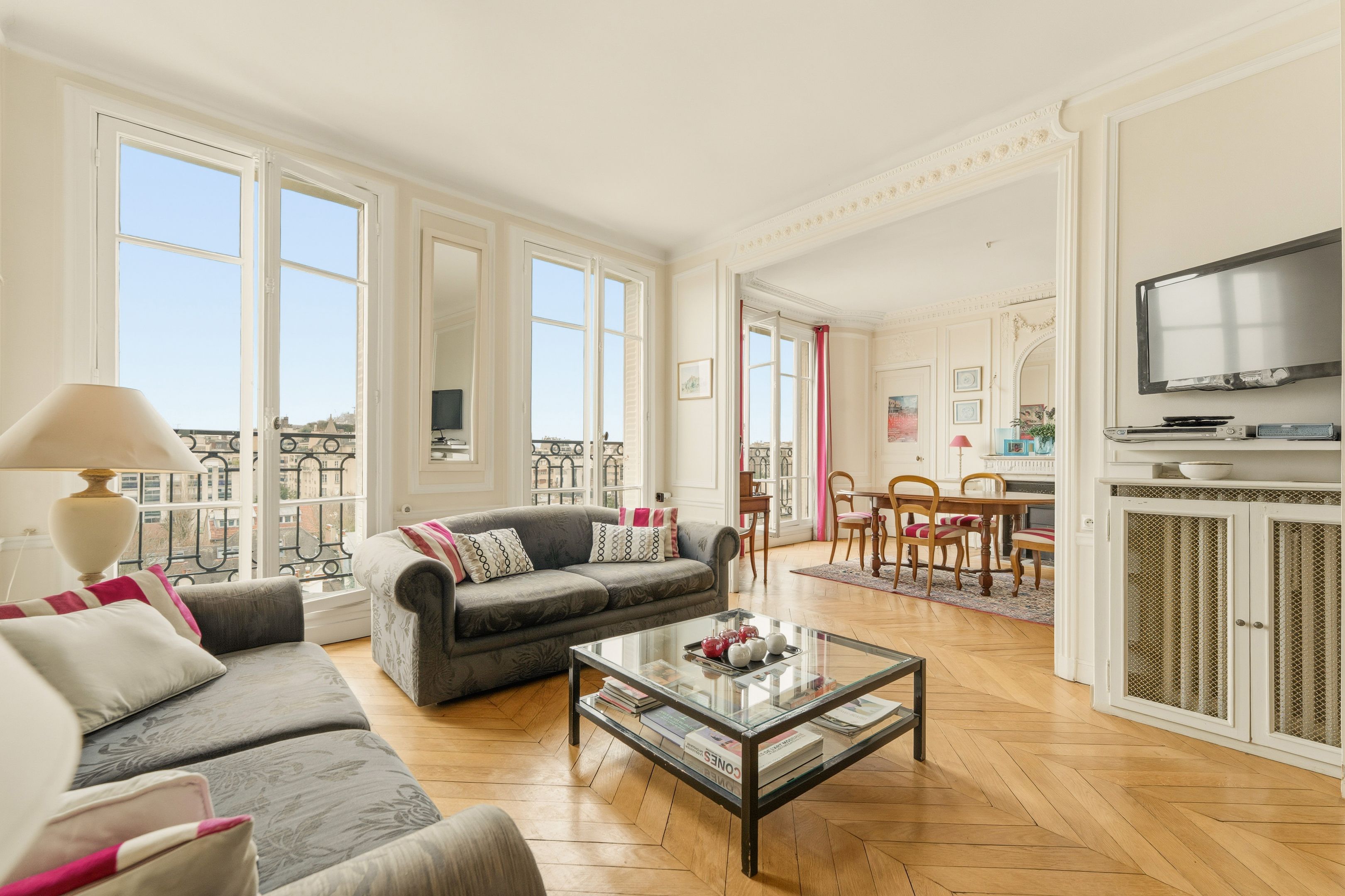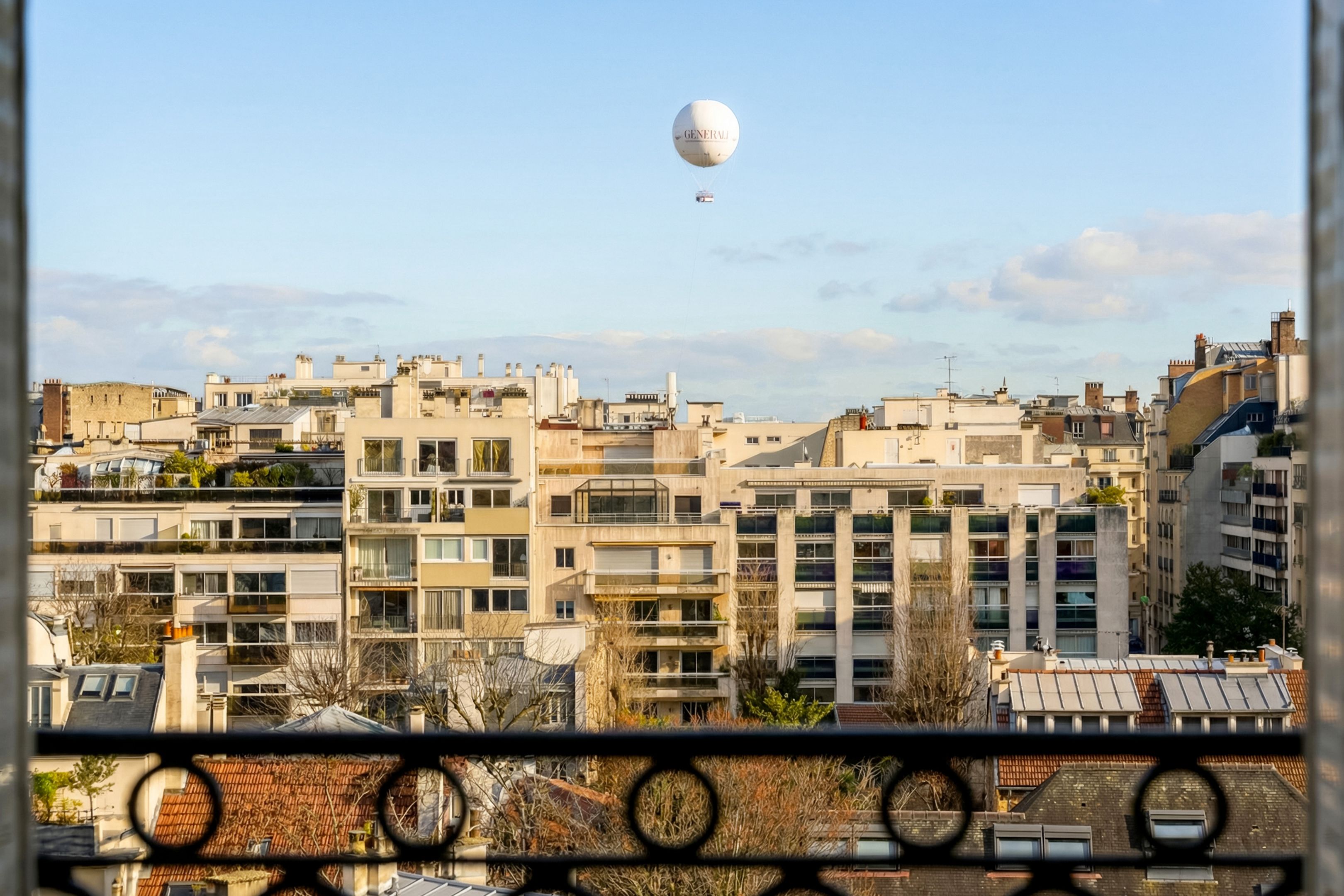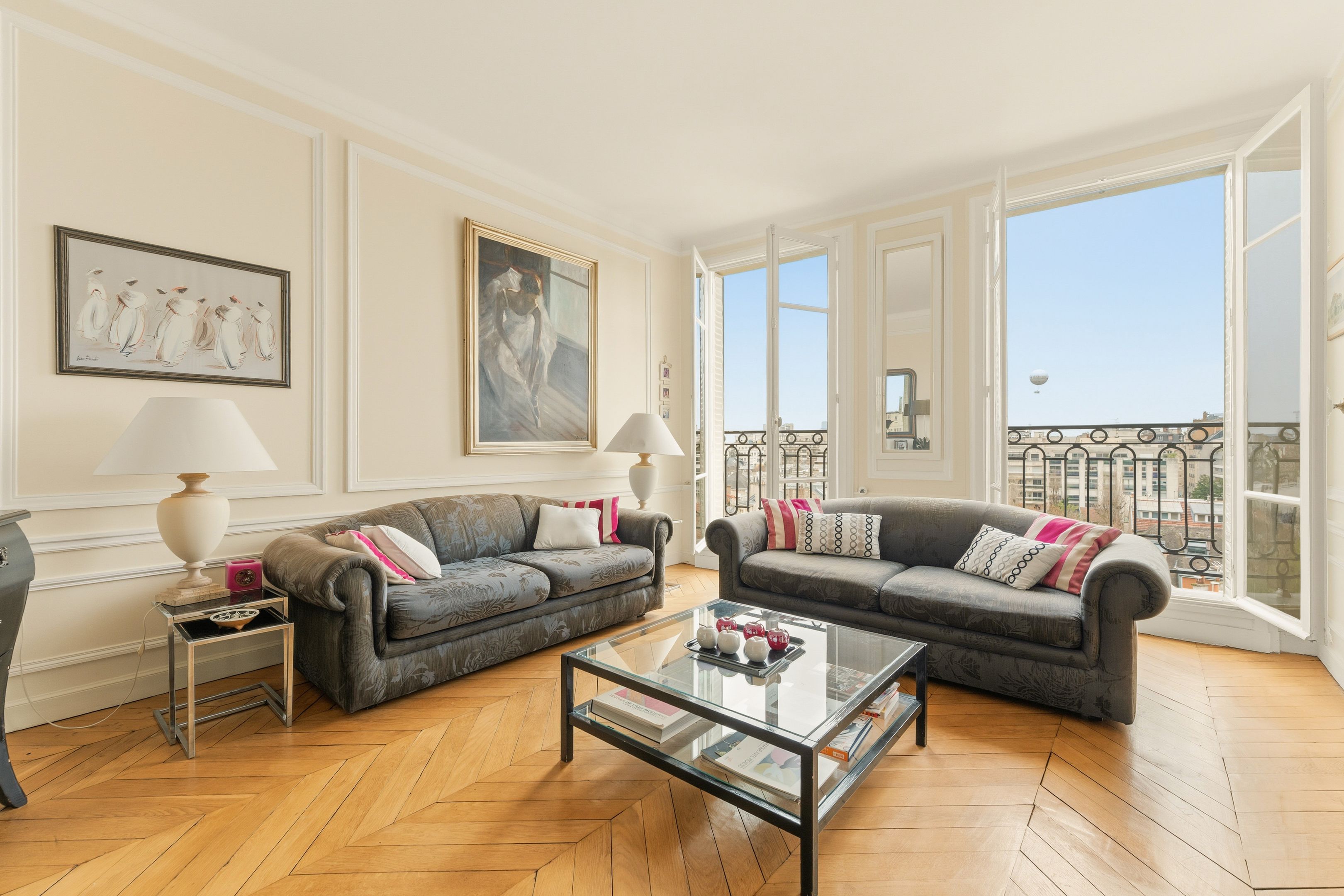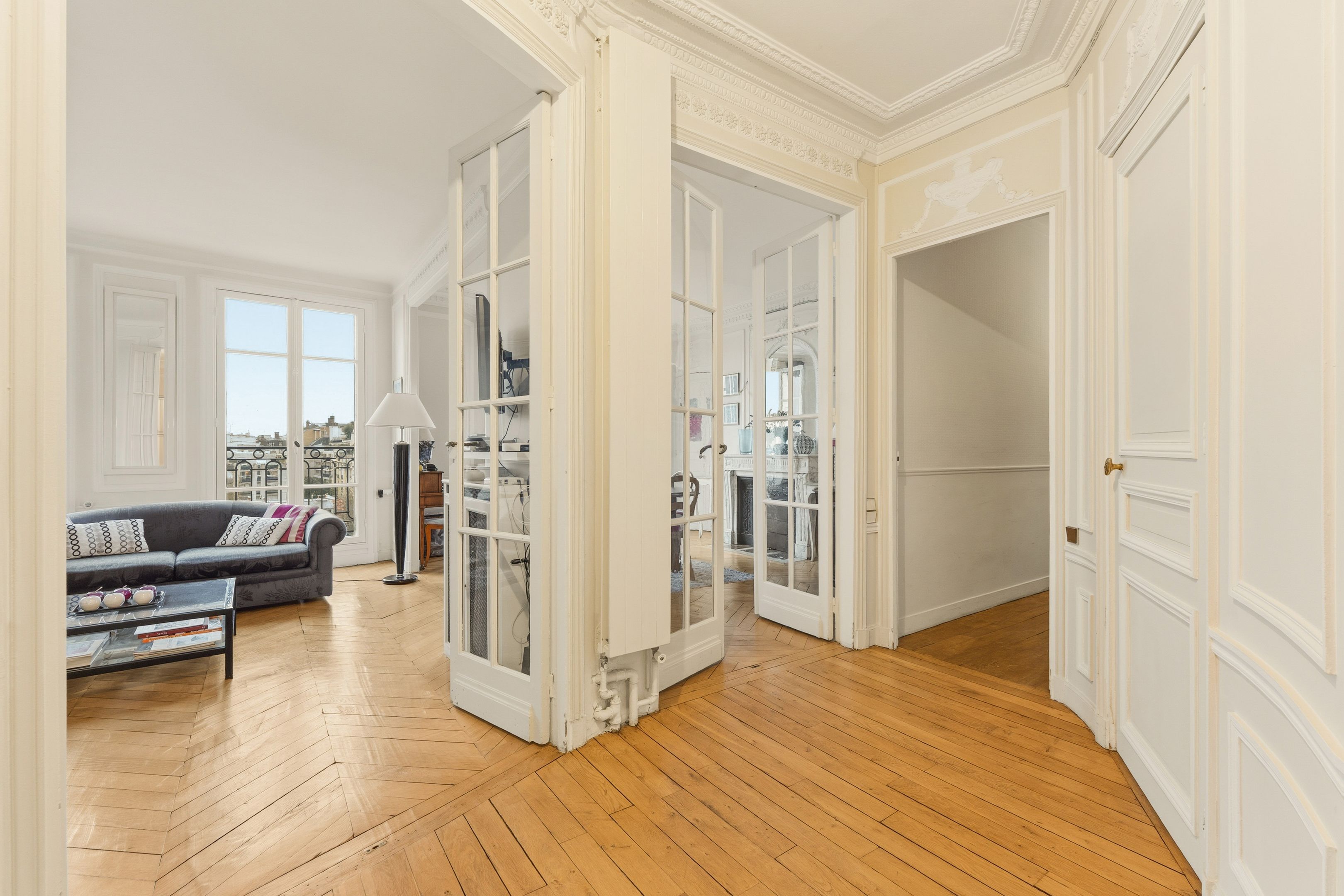 Michel-Ange - Molitor. Immeuble en pierre de taille de standing à quelques pas du Village d'Auteuil et à proximité de toutes les commodités et des écoles de renom. Au sixième étage, appartement de 105,35 m² bénéficiant du charme de l'ancien (parquet, moulures et cheminées), d'une belle luminosité et d'une jolie vue dégagée sur le Hameau Boileau. Galerie d'entrée, salon-salle à manger, cuisine indépendante aménagée et équipée, deux chambres, salle de bains, dressing, toilettes séparées, nombreux rangements. Au septième étage par escalier, chambre de service de 8,50 m² Loi Carrez indissociable du lot au prix de 80 000 €. Grande cave.