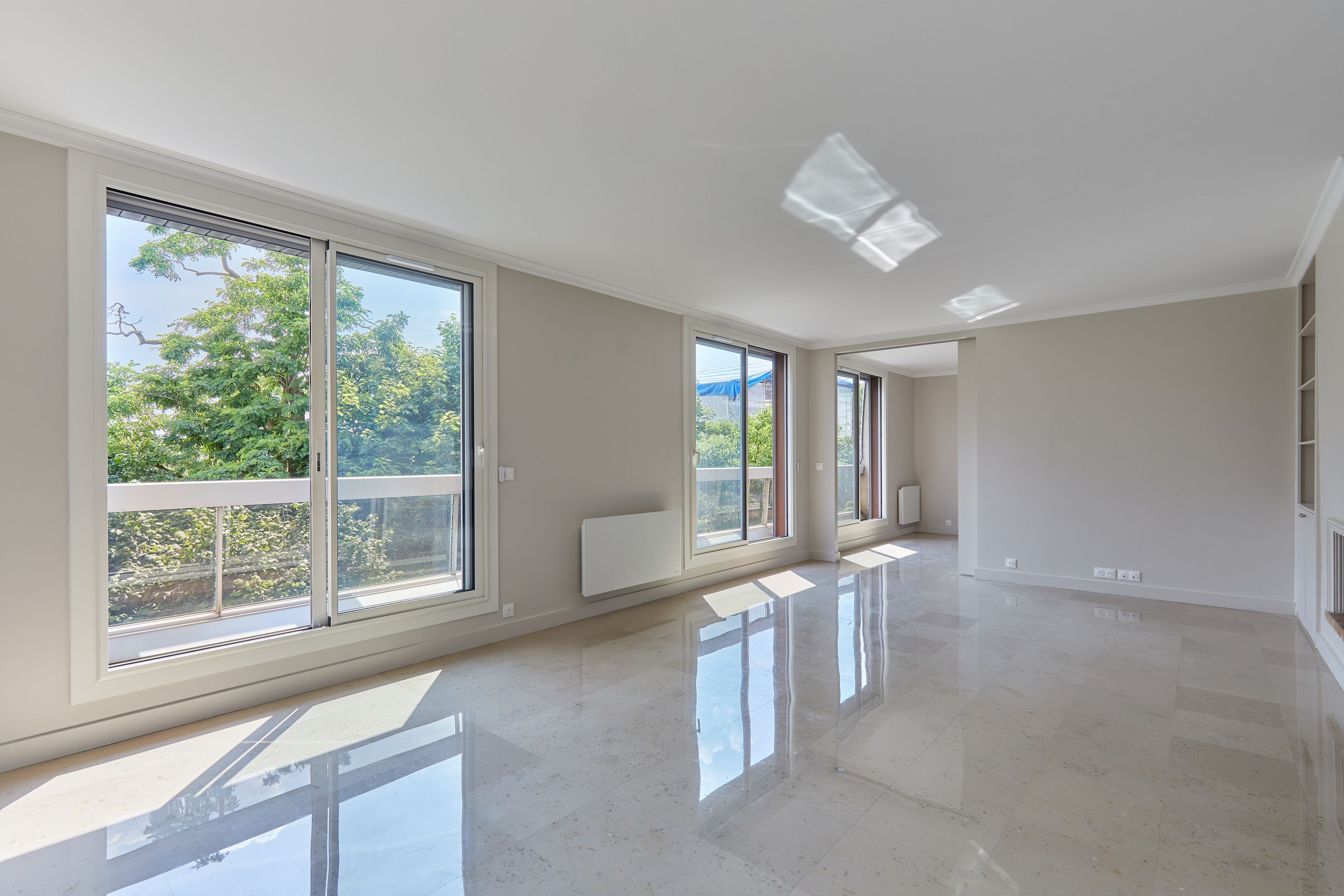 Dans une résidence semi-récente sécurisée, appartement de 110 m² au troisième et dernier étage, desservi par un ascenseur et complètement rénové. Entouré de jardins, il propose : une entrée, un séjour et une salle à manger avec balcon orienté au sud, une cuisine aménagée et semi-équipée, deux chambres, une salle de bains, une salle d'eau avec toilettes et des toilettes séparées. Toutes les pièces à vivre bénéficient d'un balcon et une vaste terrasse surplombe l'appartement.