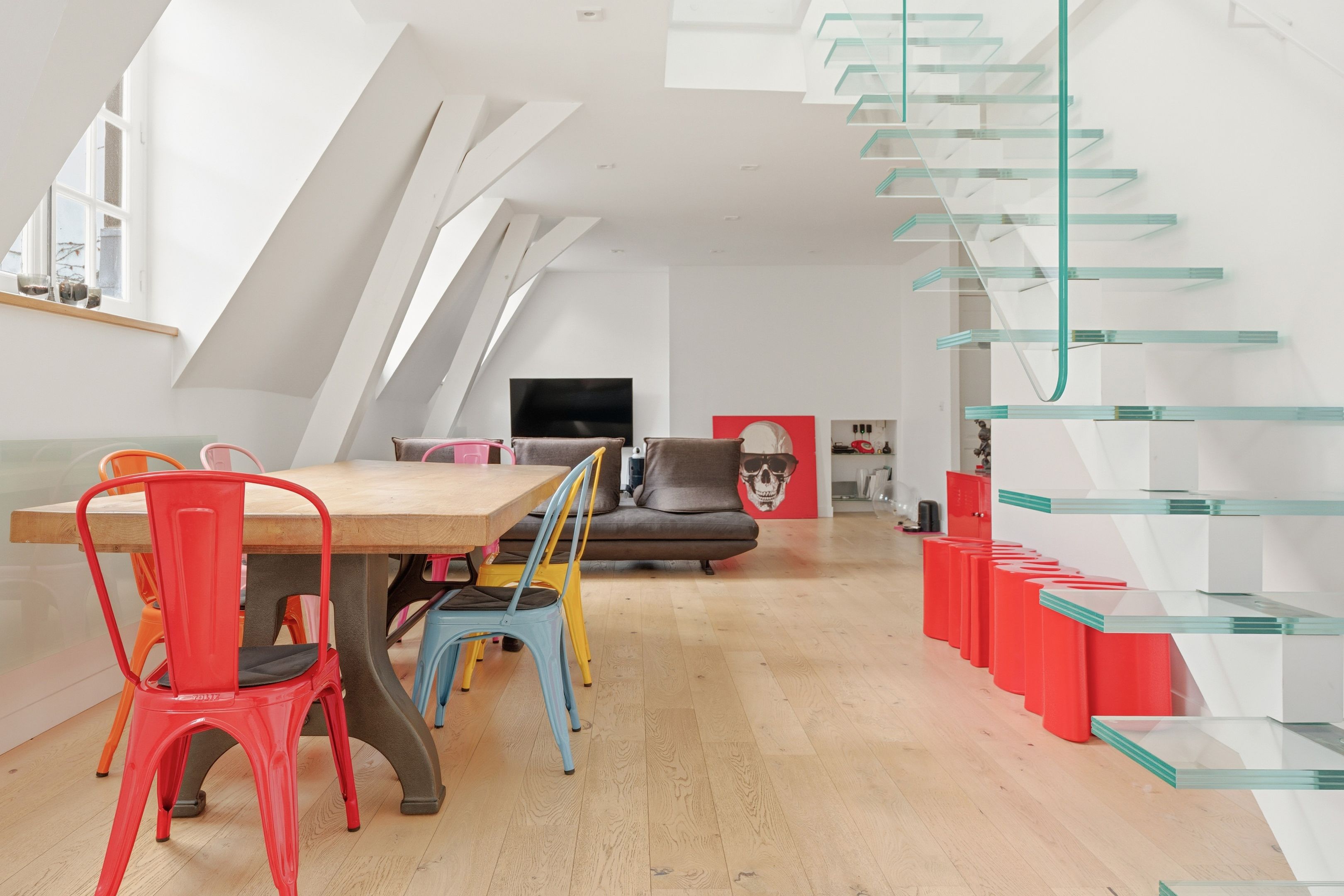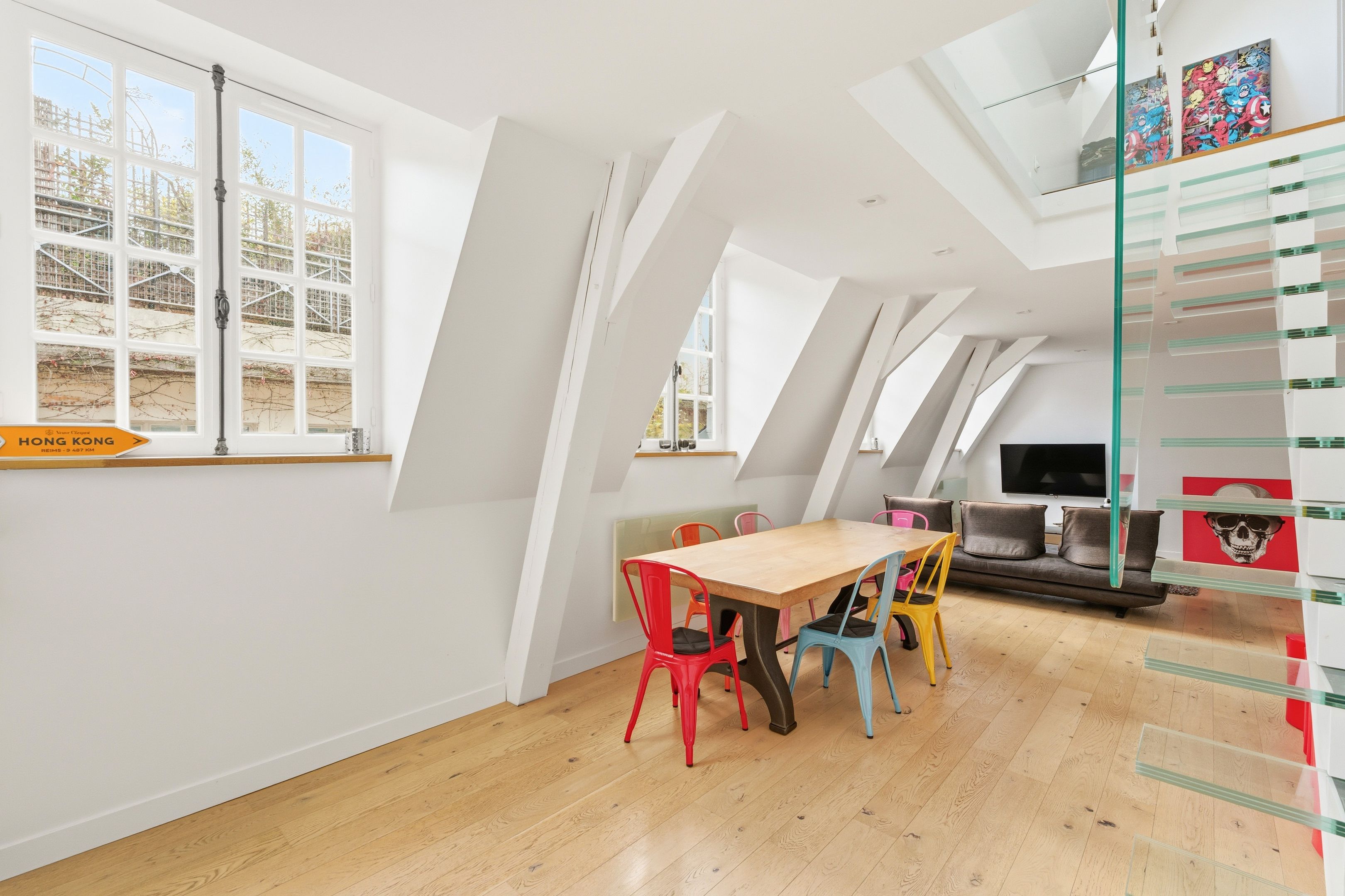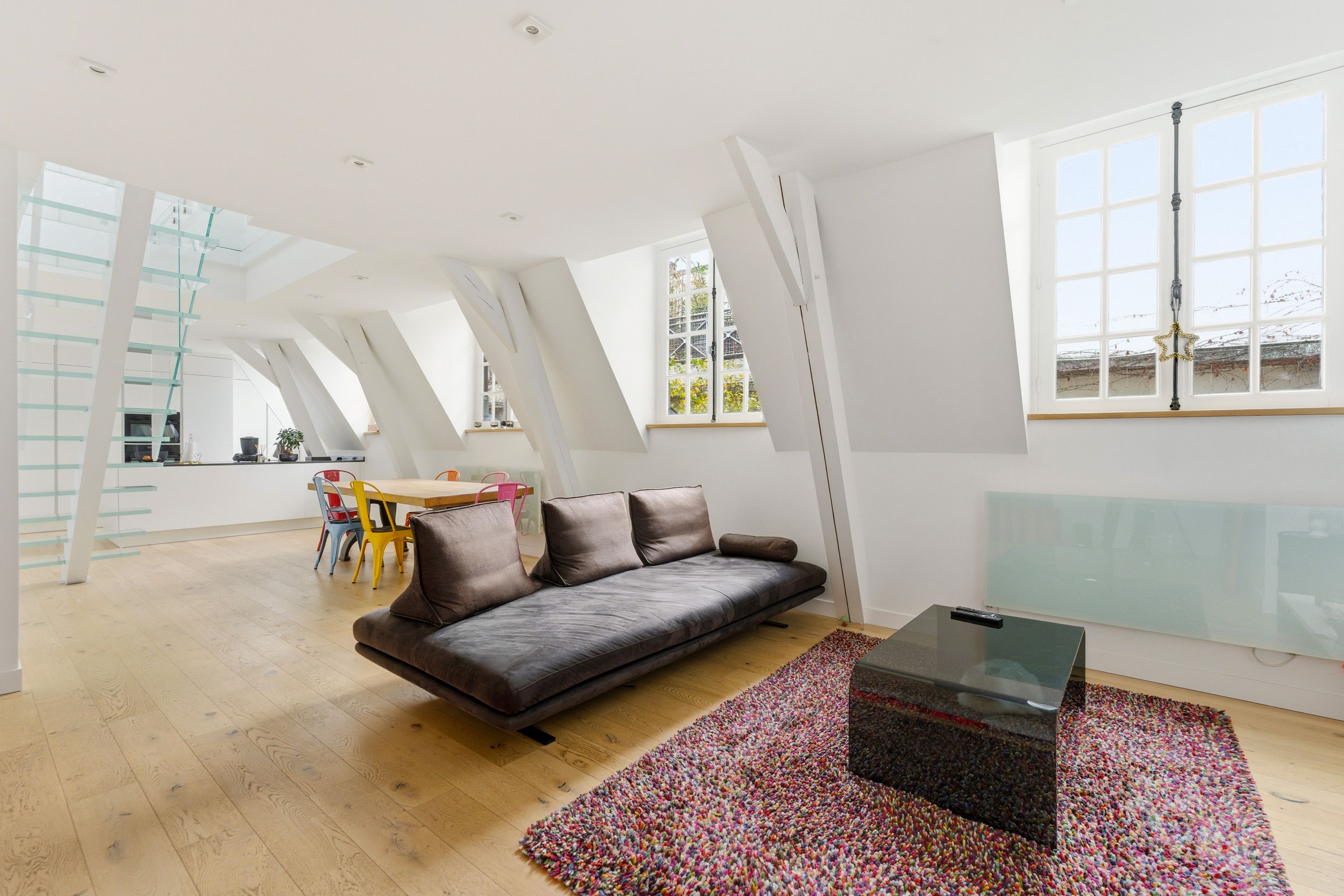 Triplex de cinq pièces, refait à neuf avec goût, au 3ème et dernier étage d'un hôtel particulier.