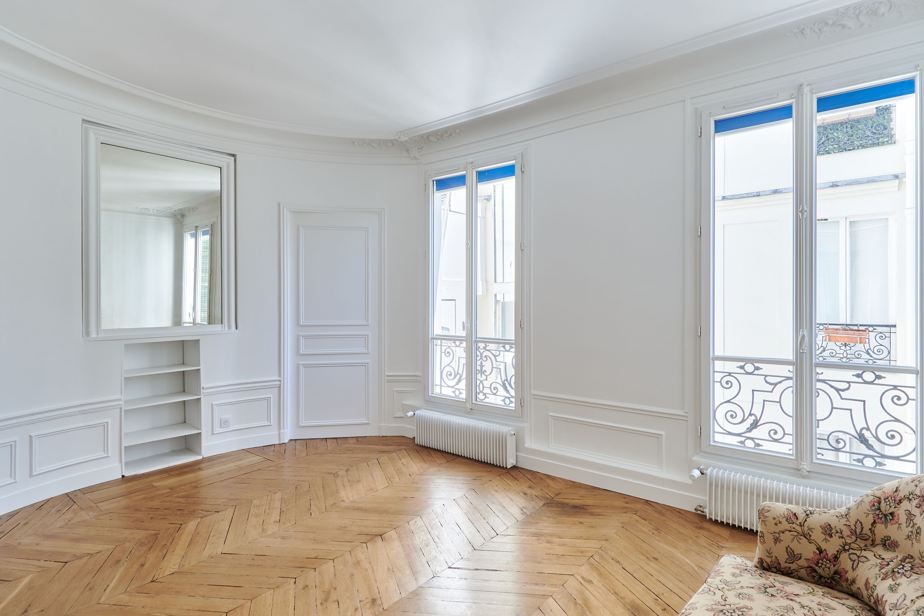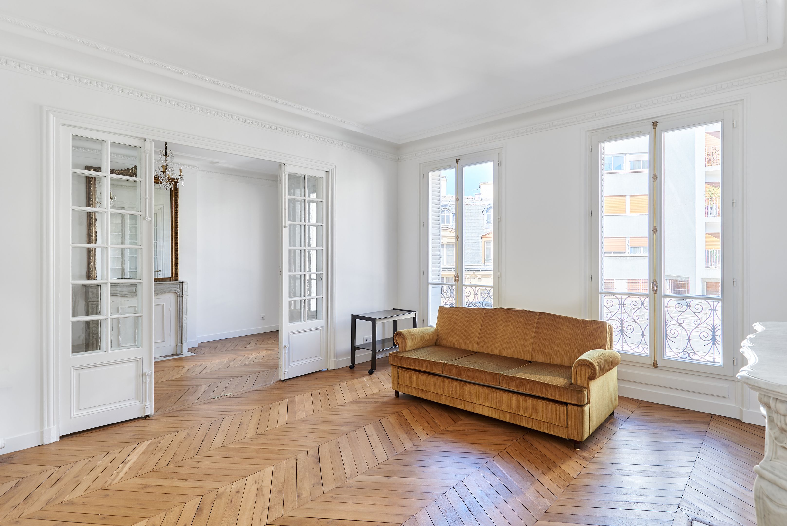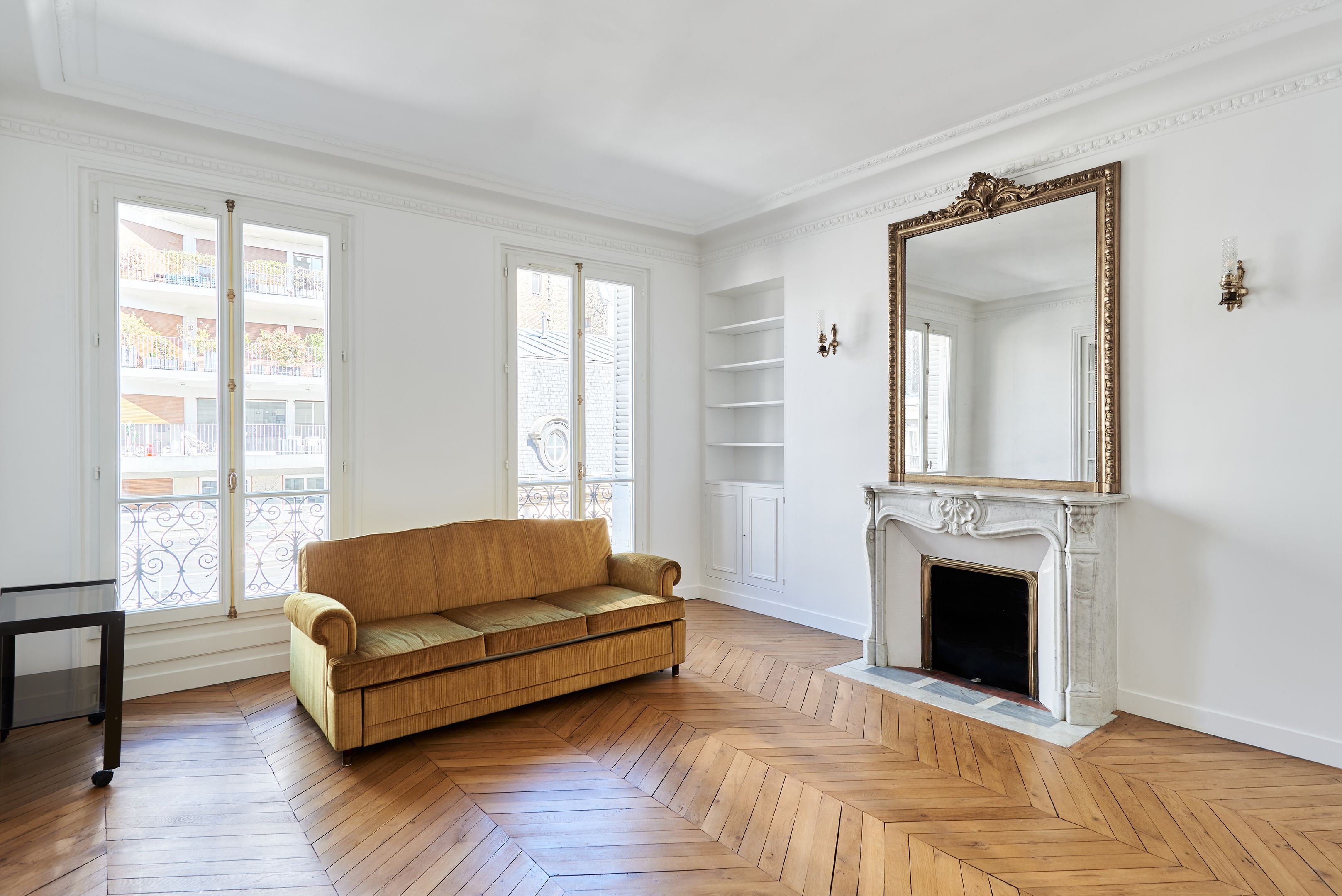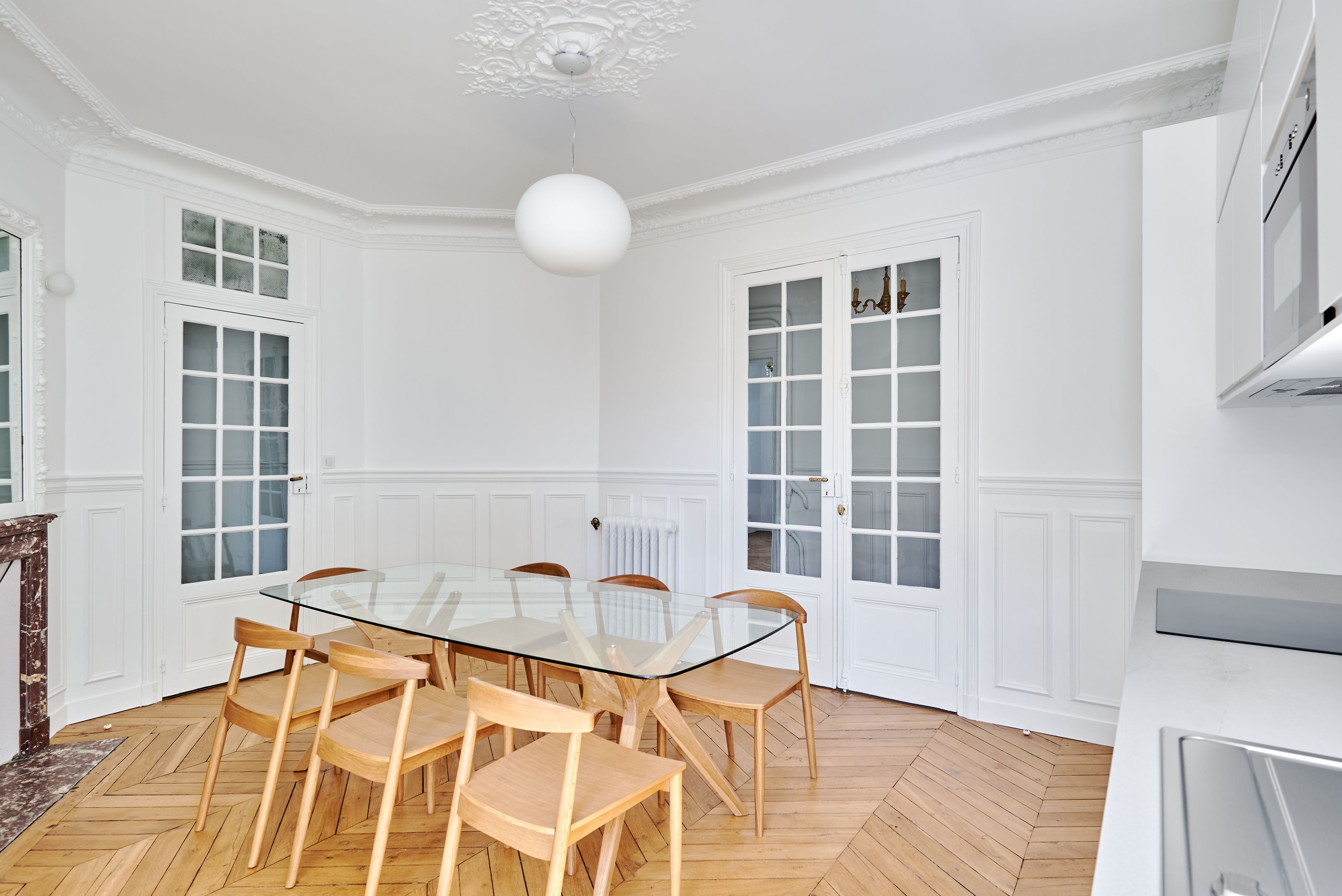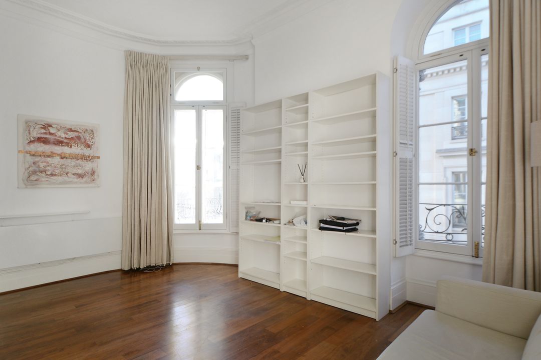 Immeuble ancien, troisième étage desservi par ascenseur, appartement meublé de 127,25 m². Entrée, salon, bureau, salle à manger avec cuisine ouverte, aménagée et équipée, trois chambres (dont une avec salle d’eau et toilettes), salle de bains avec toilettes.