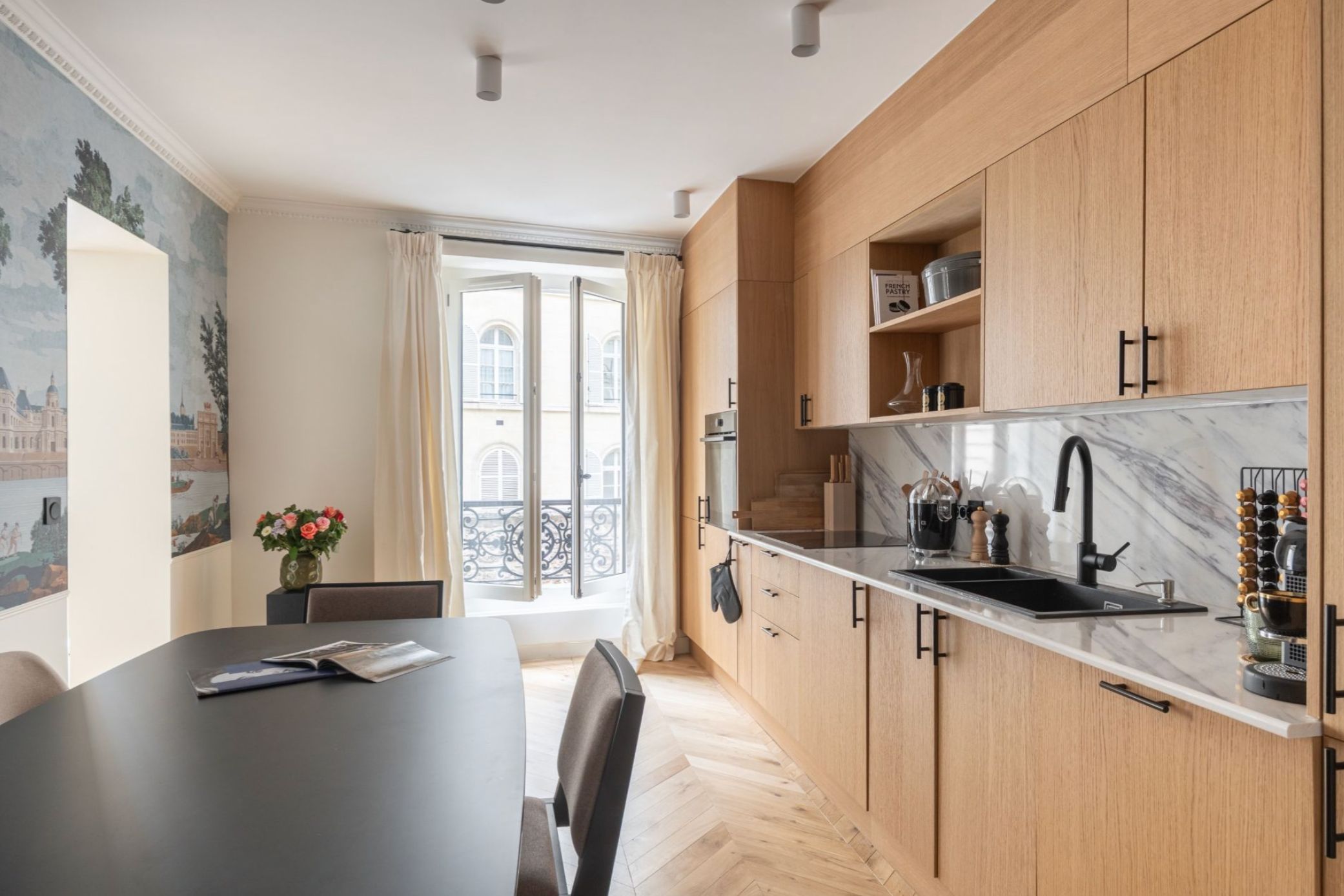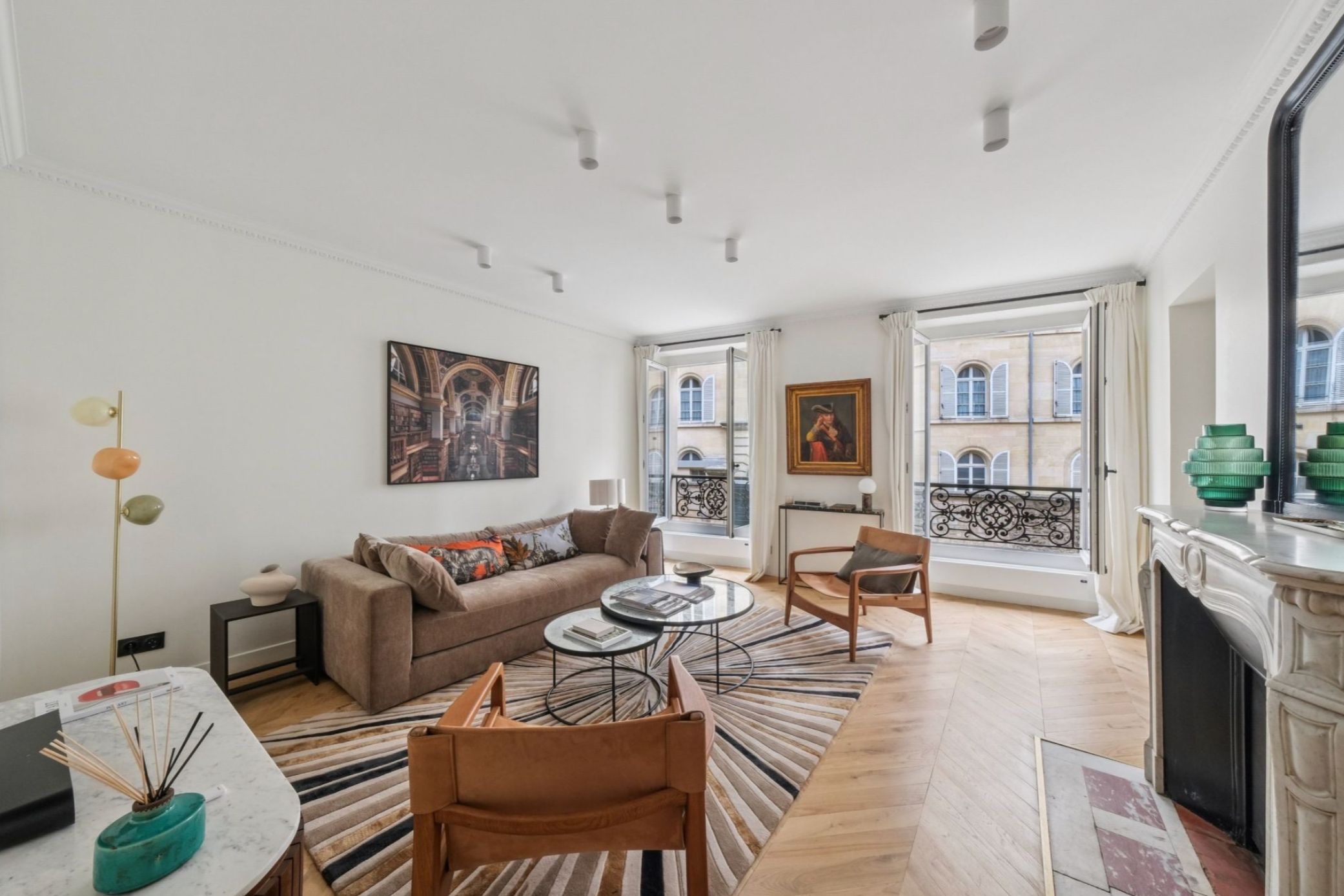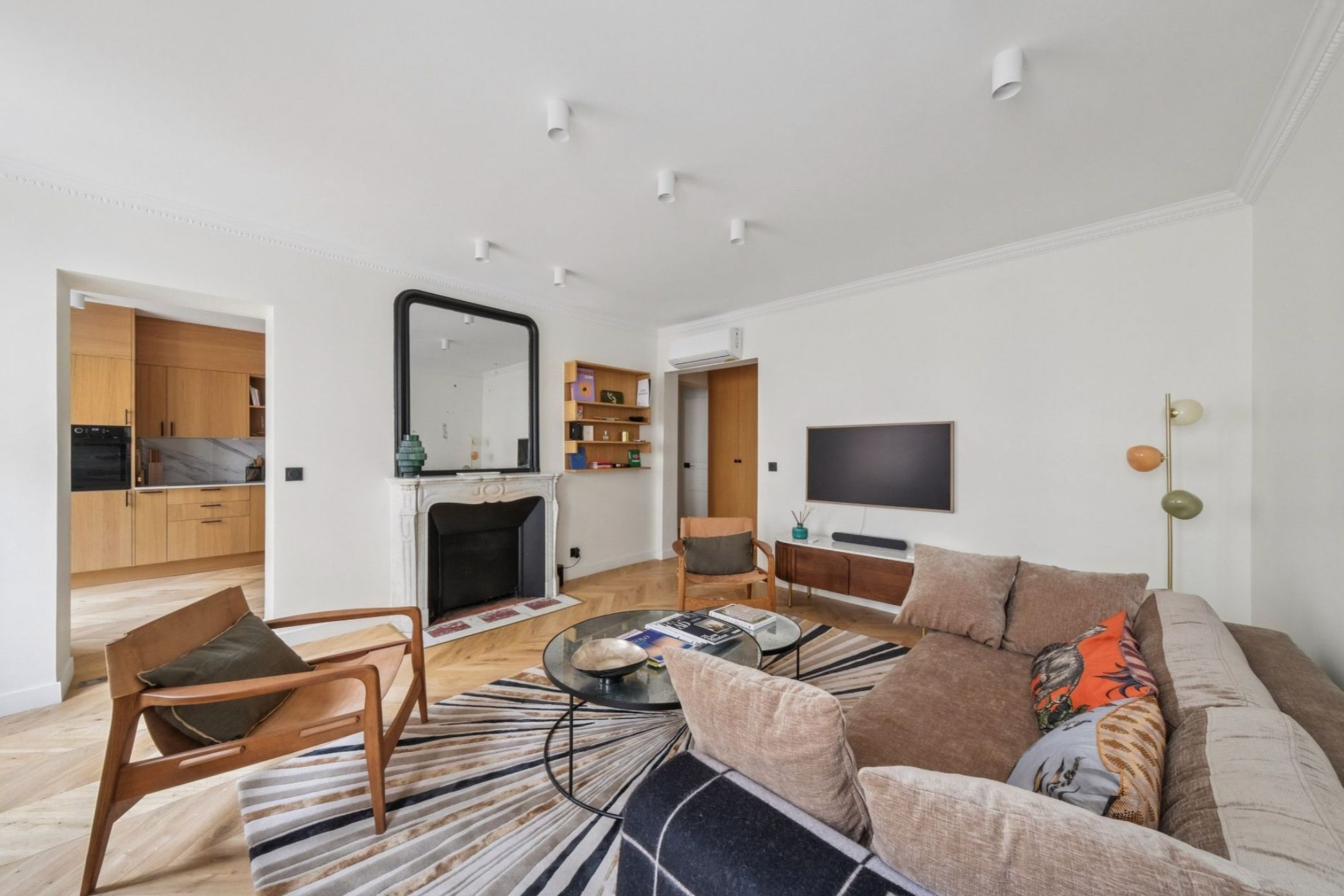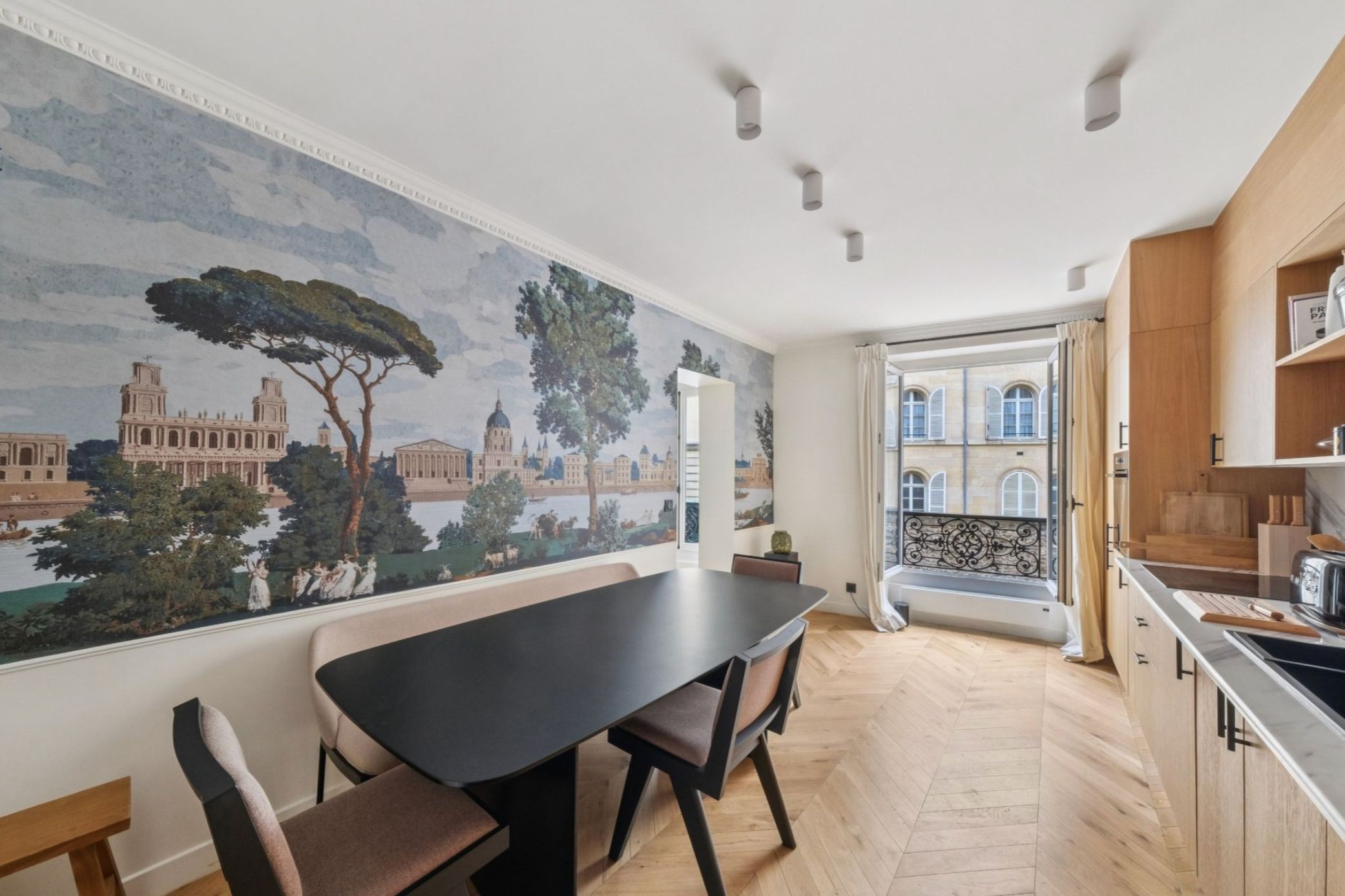 Idéalement situé à proximité immédiate du Bon Marché, bel immeuble XIXᵉ en pierre de taille avec vue directe sur un ancien couvent. Appartement traversant de 92,50 m² Loi Carrez, entièrement rénové, au 1er étage par ascenseur. Entrée, salon sur rue exposé sud, cuisine ouverte dînatoire, un bureau, une suite parentale, une chambre, une salle de douches. Toilettes invités, cave et chambre de service avec accès par ascenseur. Gardienne. Appartement vendu meublé et équipé.