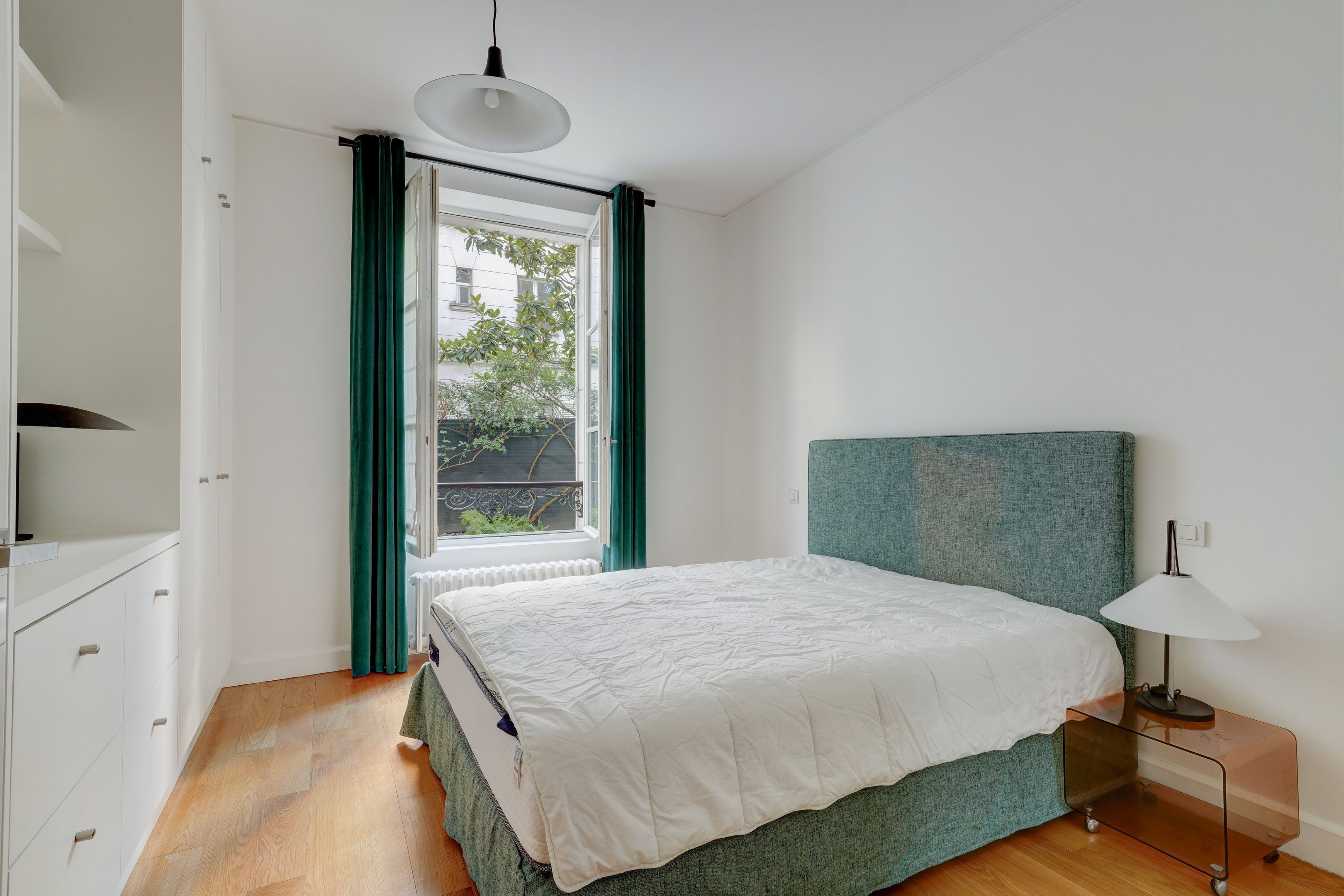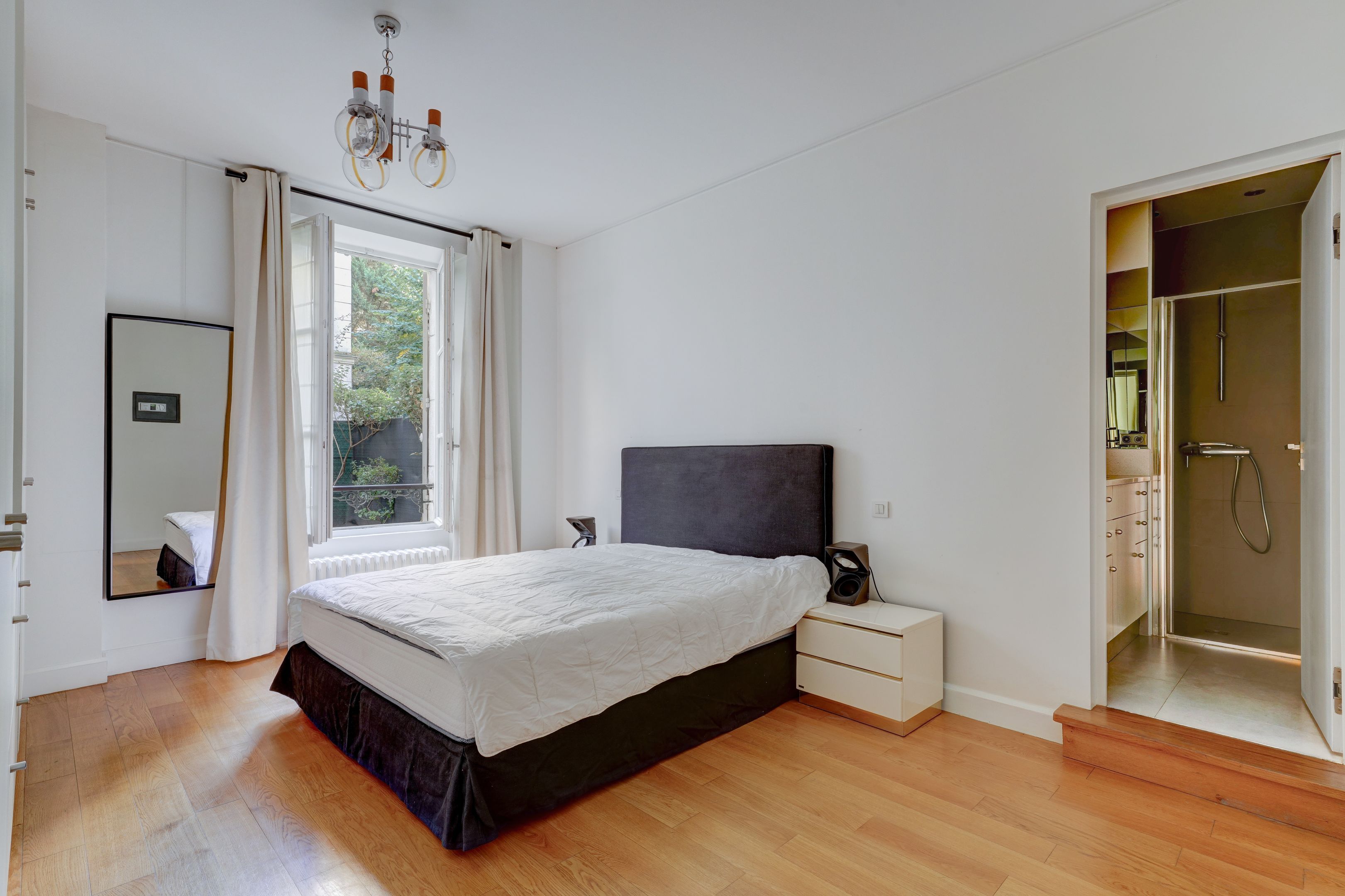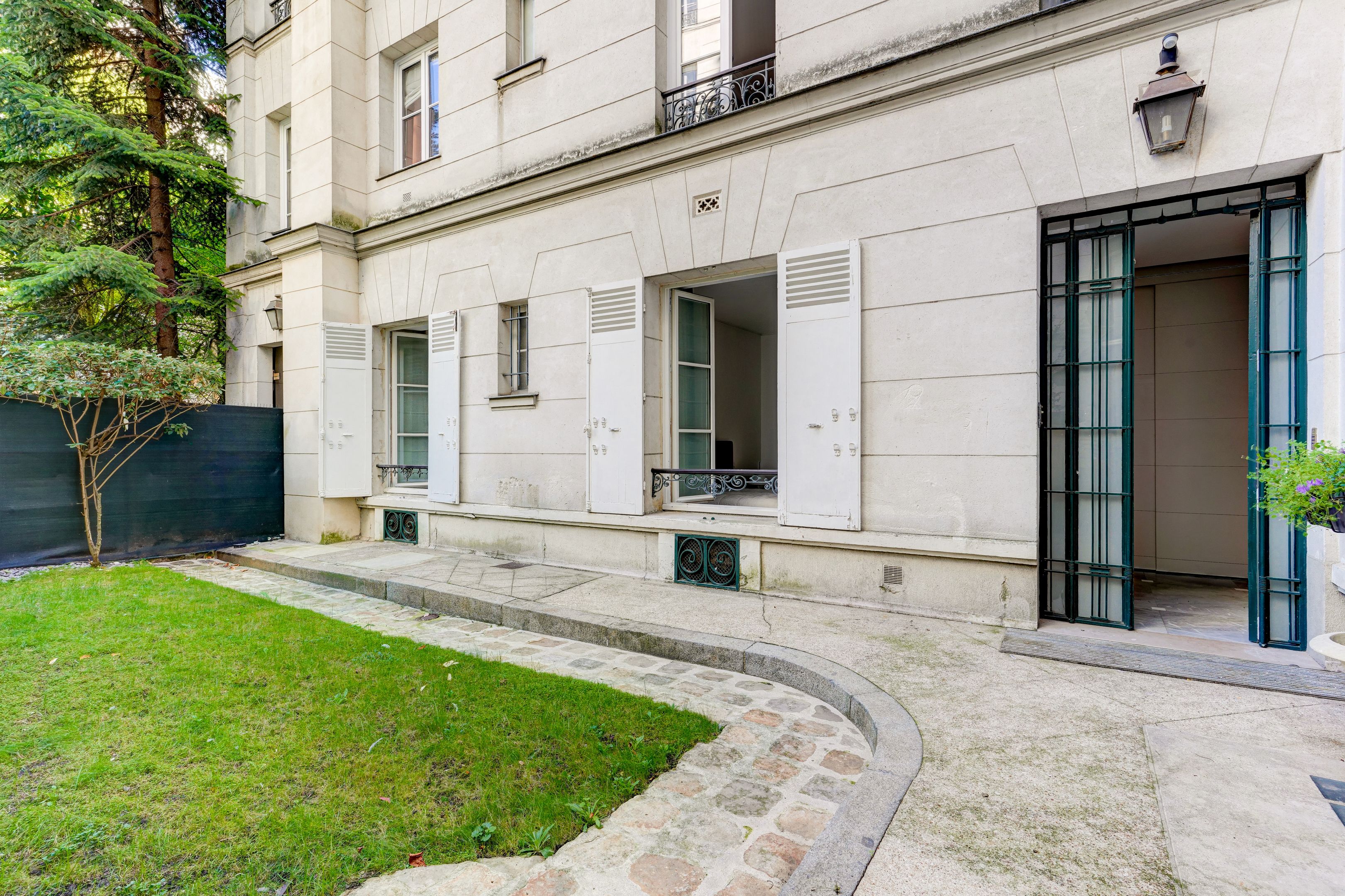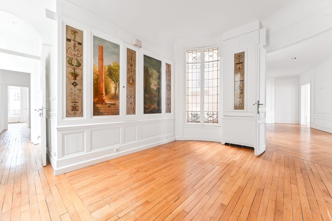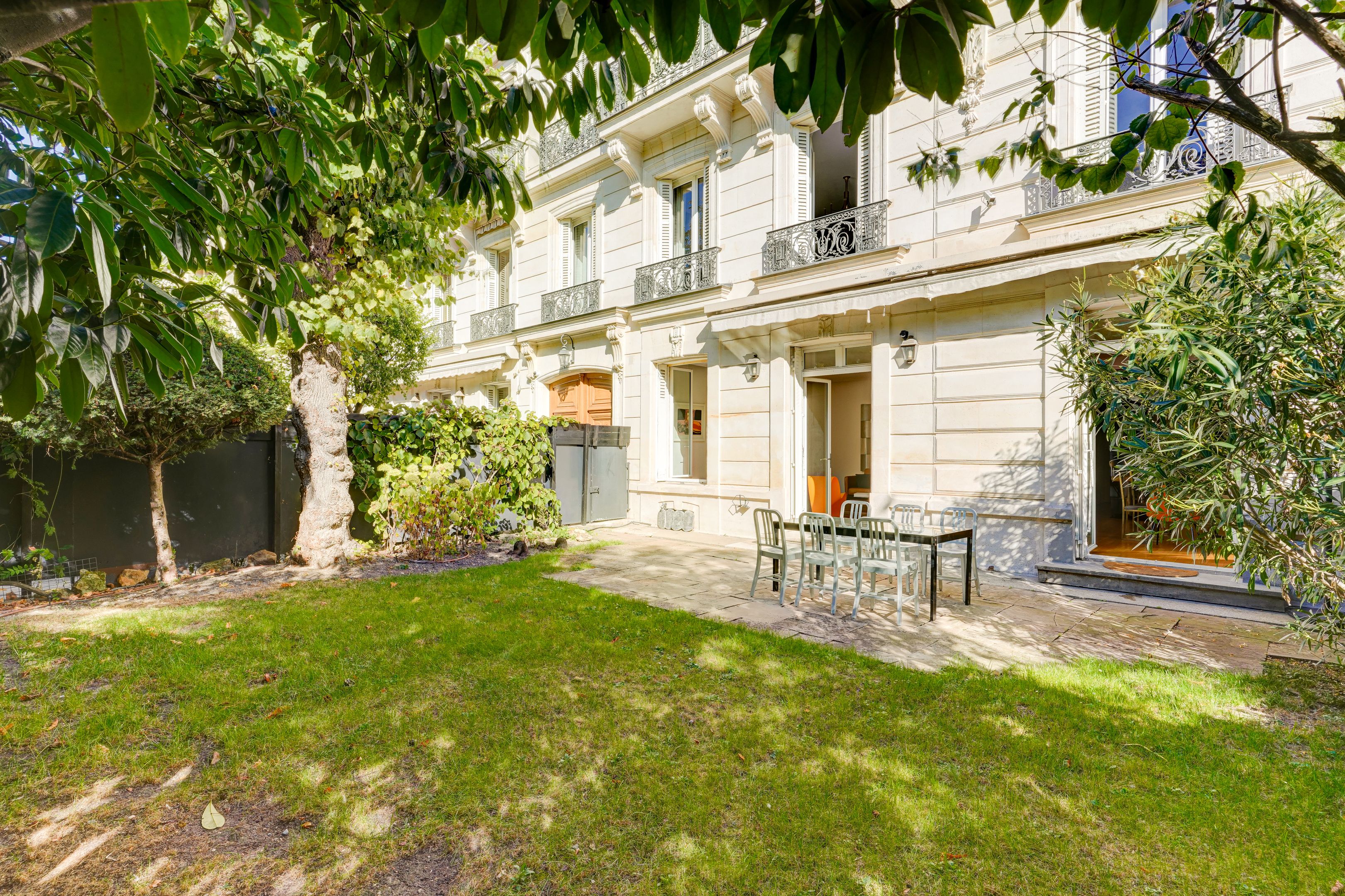 Immeuble en pierre de taille, avec digicode et gardien, faisant face au Bois de Boulogne, appartement de 130 m² habitables + sous-sol, en rez-de-jardin, bénéficiant d'un grand jardin exposé Sud et d'un un autre au Nord. Entrée avec vestiaire, salon et salle à manger accédant à l'espace extérieur, cuisine aménagée et équipée, dégagement menant à deux chambres (dont une avec salle d'eau) équipées de placards, à une salle de bains, et à des toilettes séparées.