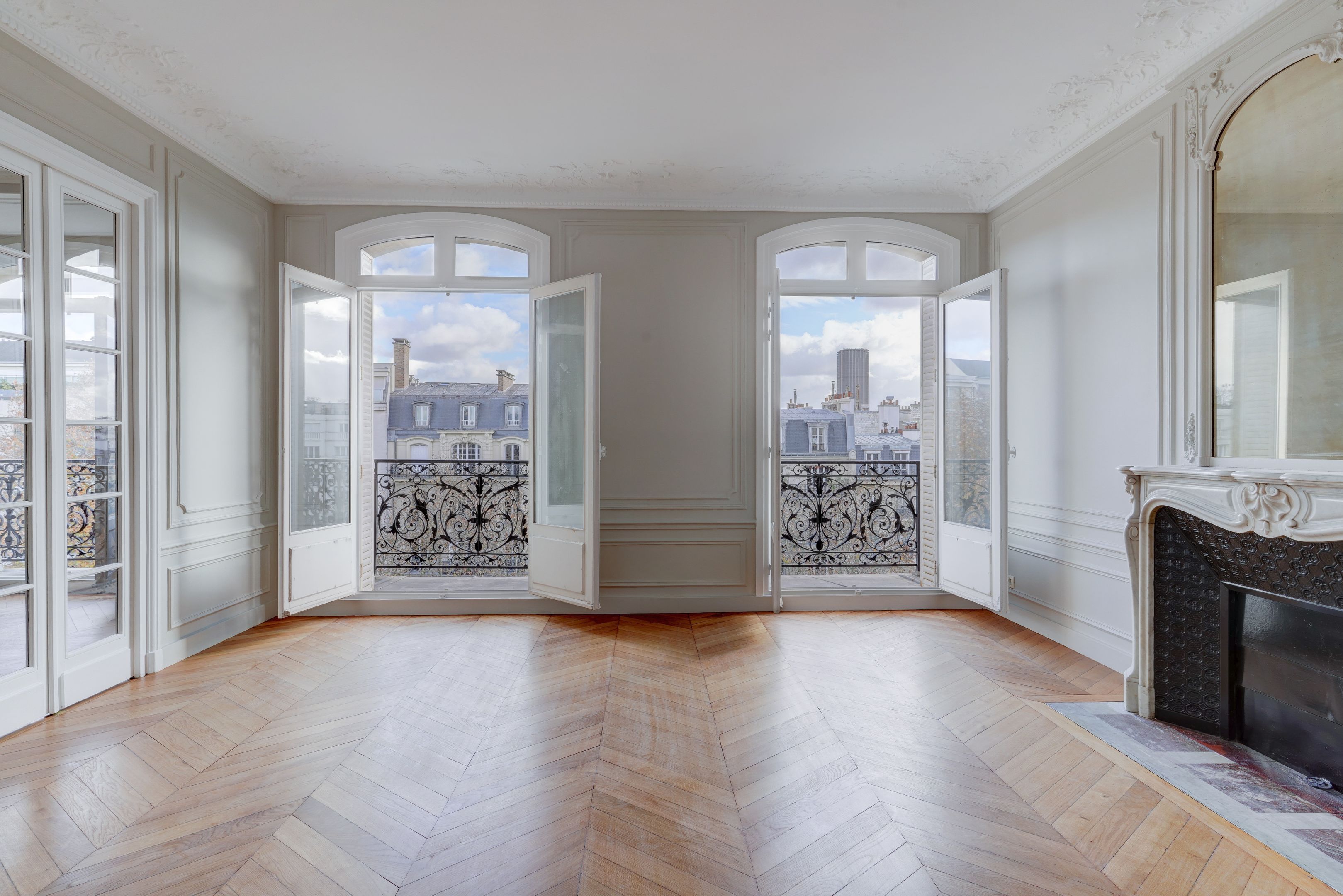 Immeuble ancien de bon standing, au 6ème étage, appartement non meublé de 146 m² environ comprenant entrée, salon et salle à manger, cuisine séparée aménagée, trois chambres, deux salles de bains, deux toilettes, deux balcons. Cave.