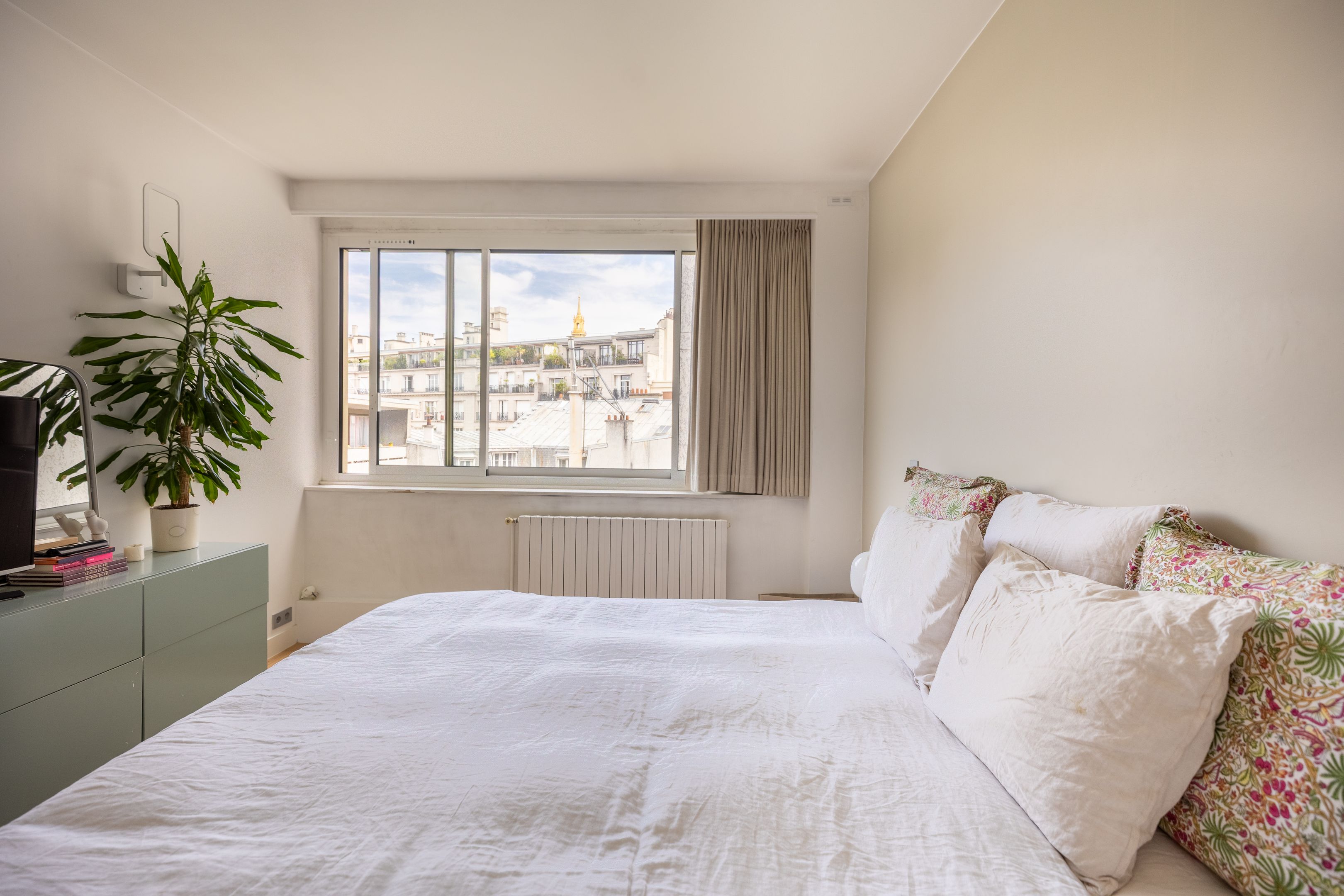 Immeuble récent très bien entretenu jouissant des services d'une gardienne, appartement de 114 m² (112,70 m² Loi Carrez) au 5ème étage desservi par ascenseur, entièrement refait par architecte avec des matériaux de grande qualité, bénéficiant d'agréables volumes et d'une très belle exposition sud-ouest. Entrée, vaste double séjour, cuisine séparée, 3 chambres profitant d'une magnifique vue sur le dôme des Invalides, 2 salles de bains dotées chacune de toilettes, dressing, nombreux rangements. Cave et grand débarras.
