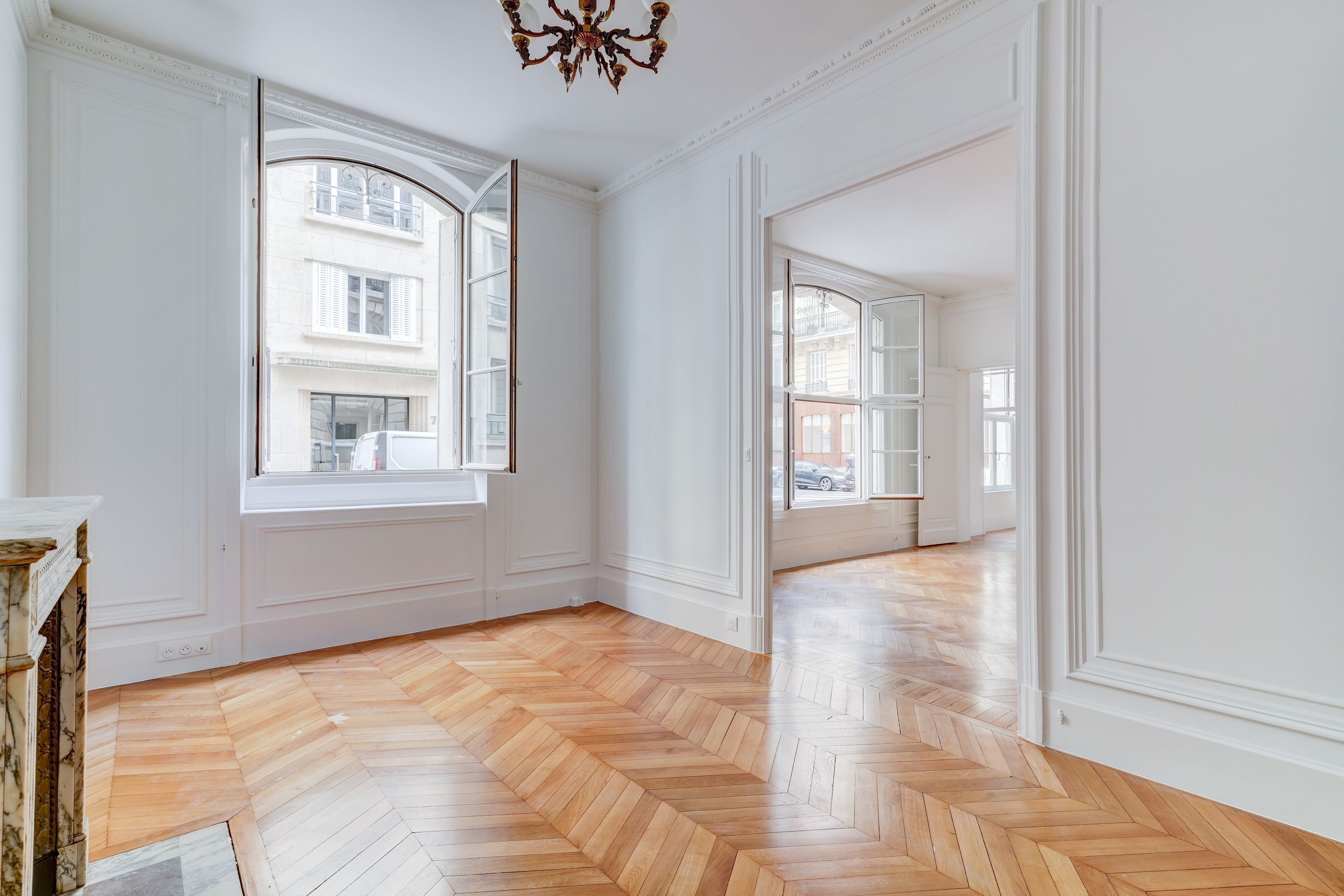 Idéal pour une profession libérale ou une famille, à deux pas de l'avenue Henri-Martin, des commerces de la rue de la Pompe, des écoles de renom et des transports, immeuble en pierre de taille de grand standing, parties communes soignées, rez-de-chaussée, appartement de 165,42 m² Loi Carrez entièrement rénové de type parquet-moulures-cheminées, doté de beaux volumes grâce à une hauteur sous plafond de 3,35 m et d'un bon plan. Galerie d'entrée, vaste double réception orientée au sud-est, cuisine indépendante aménagée, deux chambres, grand bureau ou troisième chambre, salle de bains (possibilité d'en créer une deuxième), dressing, toilettes séparées. Chambre de service indissociable de 7,85 m² au 7ème étage (ascenseur de service jusqu'au 6ème étage). Cave. Profession libérale autorisée par le règlement de copropriété. Exclusivité Breteuil.