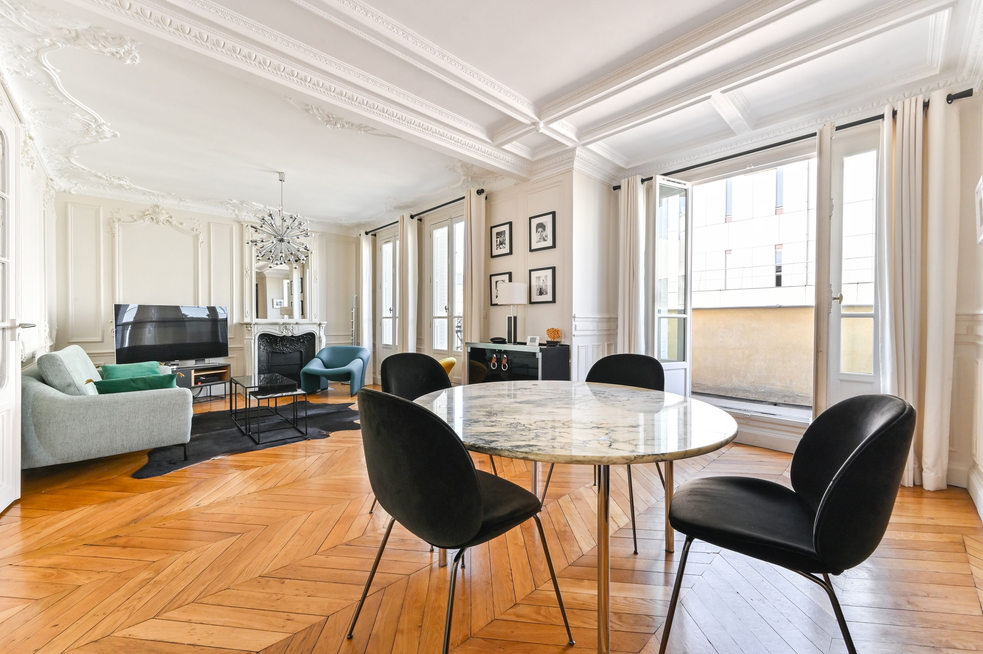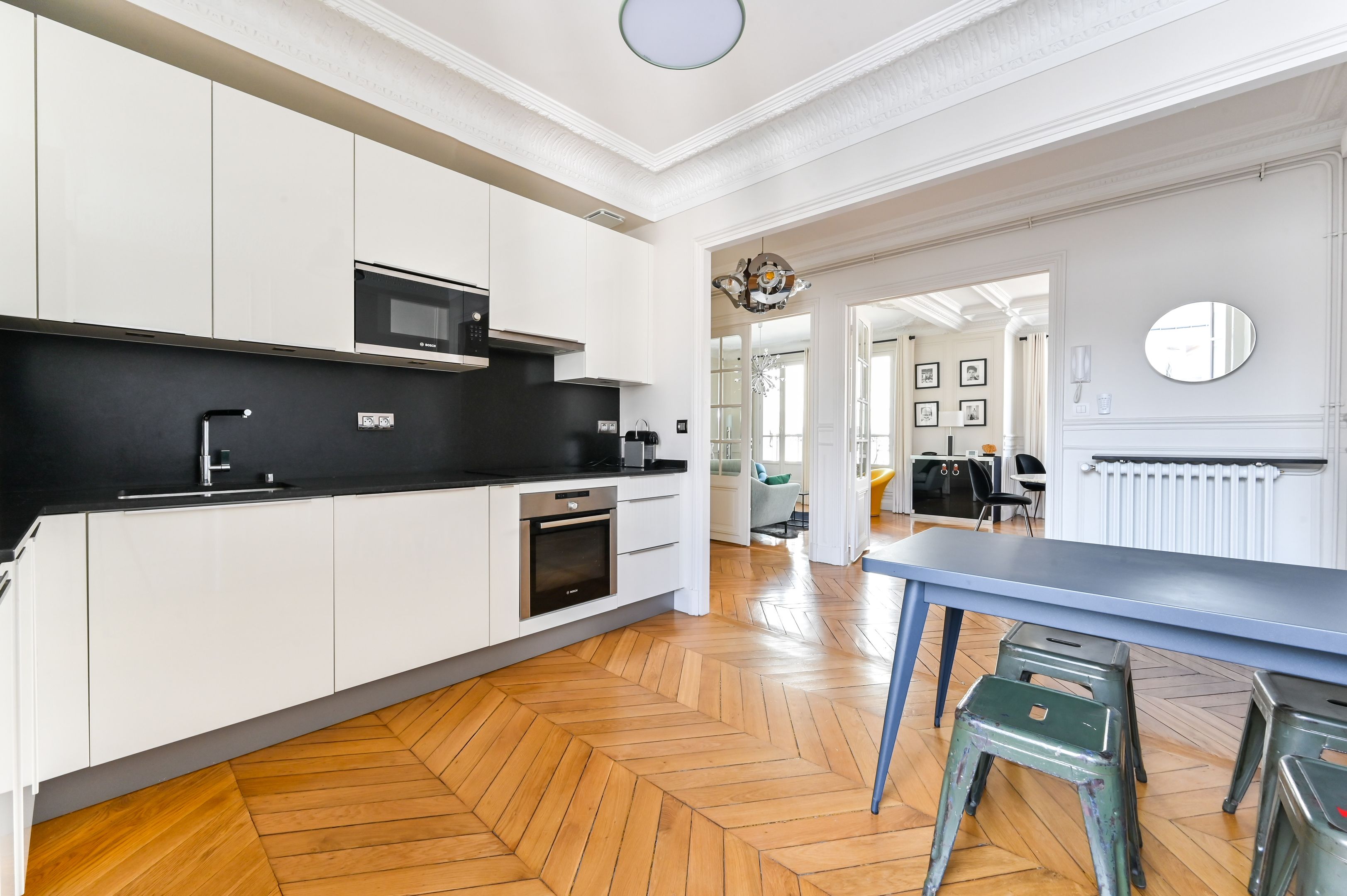 Immeuble ancien en pierre de taille avec digicode, gardien, interphone, appartement de 115 m², au dernier étage desservi par ascenseur. Entrée avec dressing invités, salon et salle à manger donnant accès à un balcon exposé sud-ouest, cuisine ouverte, dînatoire, aménagée et équipée, suite parentale (chambre, dressing, salle de bain complète : baignoire, douche et toilettes), deux chambres avec placards, salle de douche avec espace buanderie.
