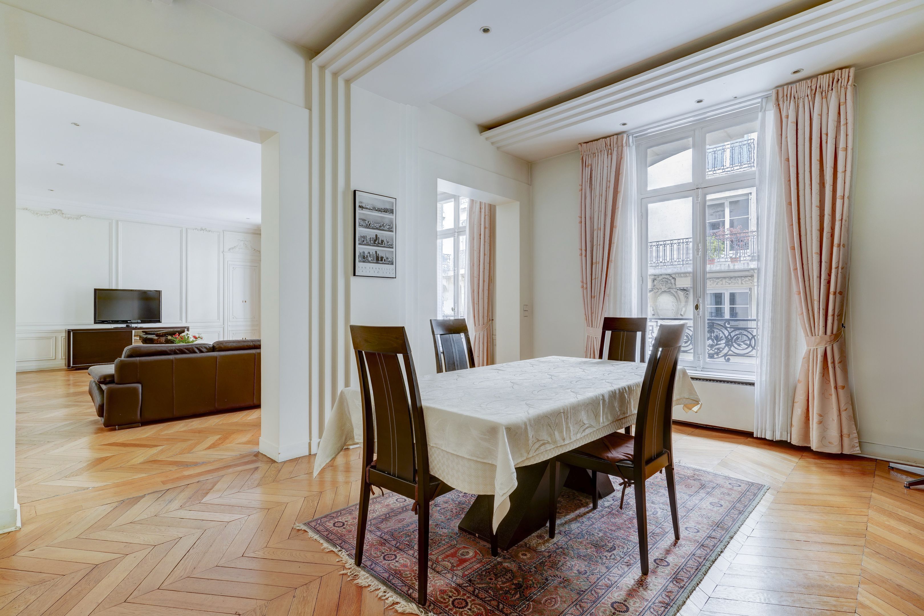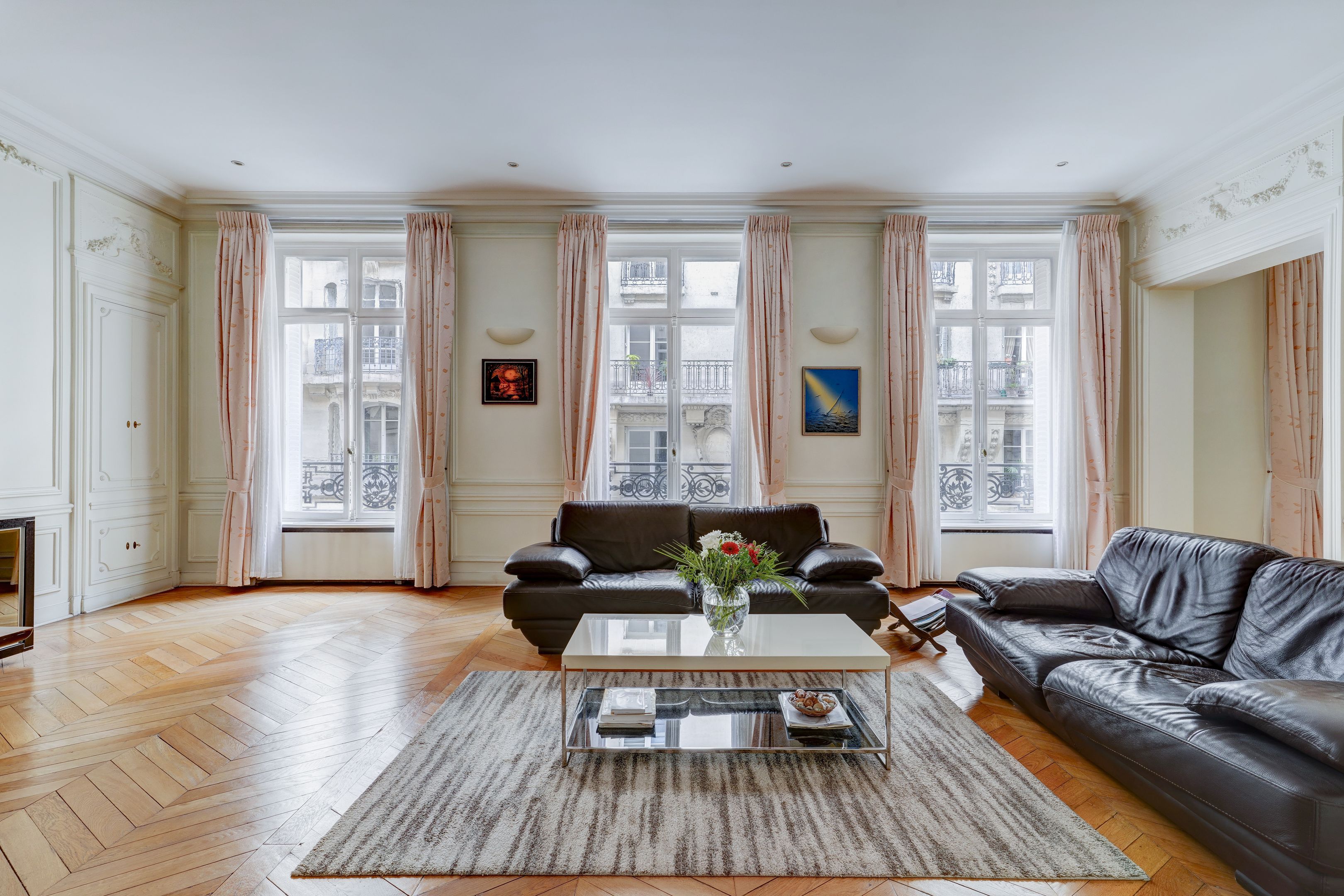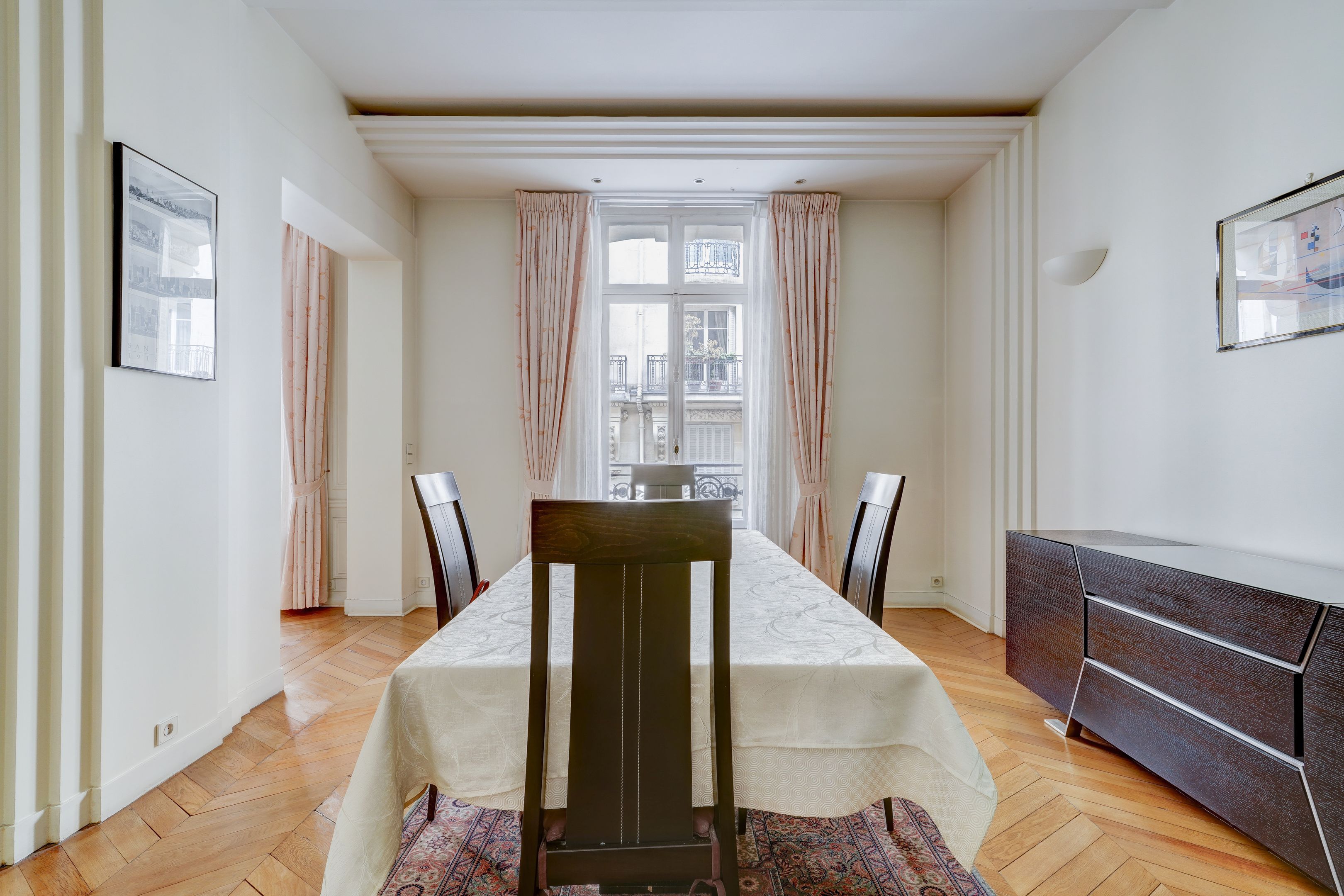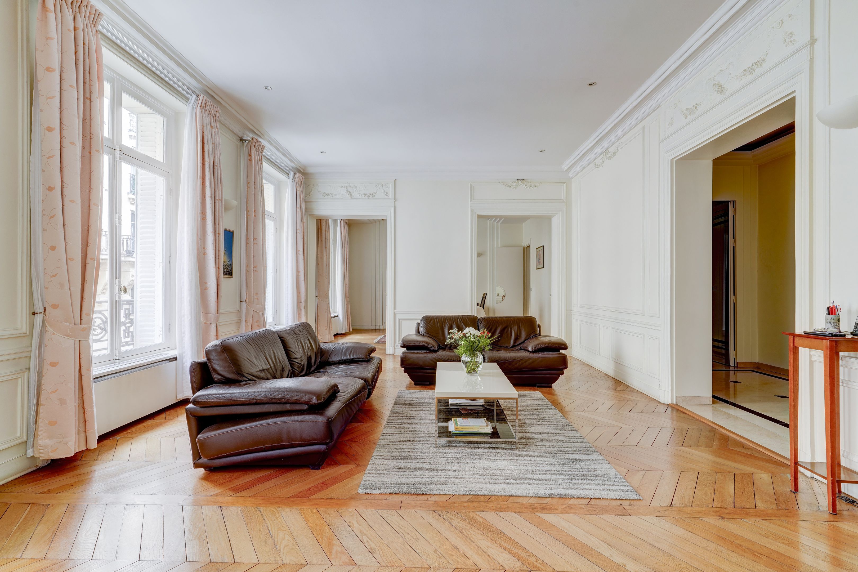 En plein cœur du très prisé quartier des Ternes, dans un immeuble haussmannien de belle facture, aux parties communes de grand standing, 1er étage, appartement familial et de réception de type « parquet, moulures, cheminées », doté d'une belle hauteur sous plafond. Galerie d'entrée, vaste double réception, salle à manger, cuisine dinatoire entièrement aménagée et équipée, trois chambres de belle taille (4ème chambre possible), salle de bains et salle de douches avec toilettes, toilettes indépendantes. Deux caves. Professions libérales autorisées par le RCP. Exclusivité.