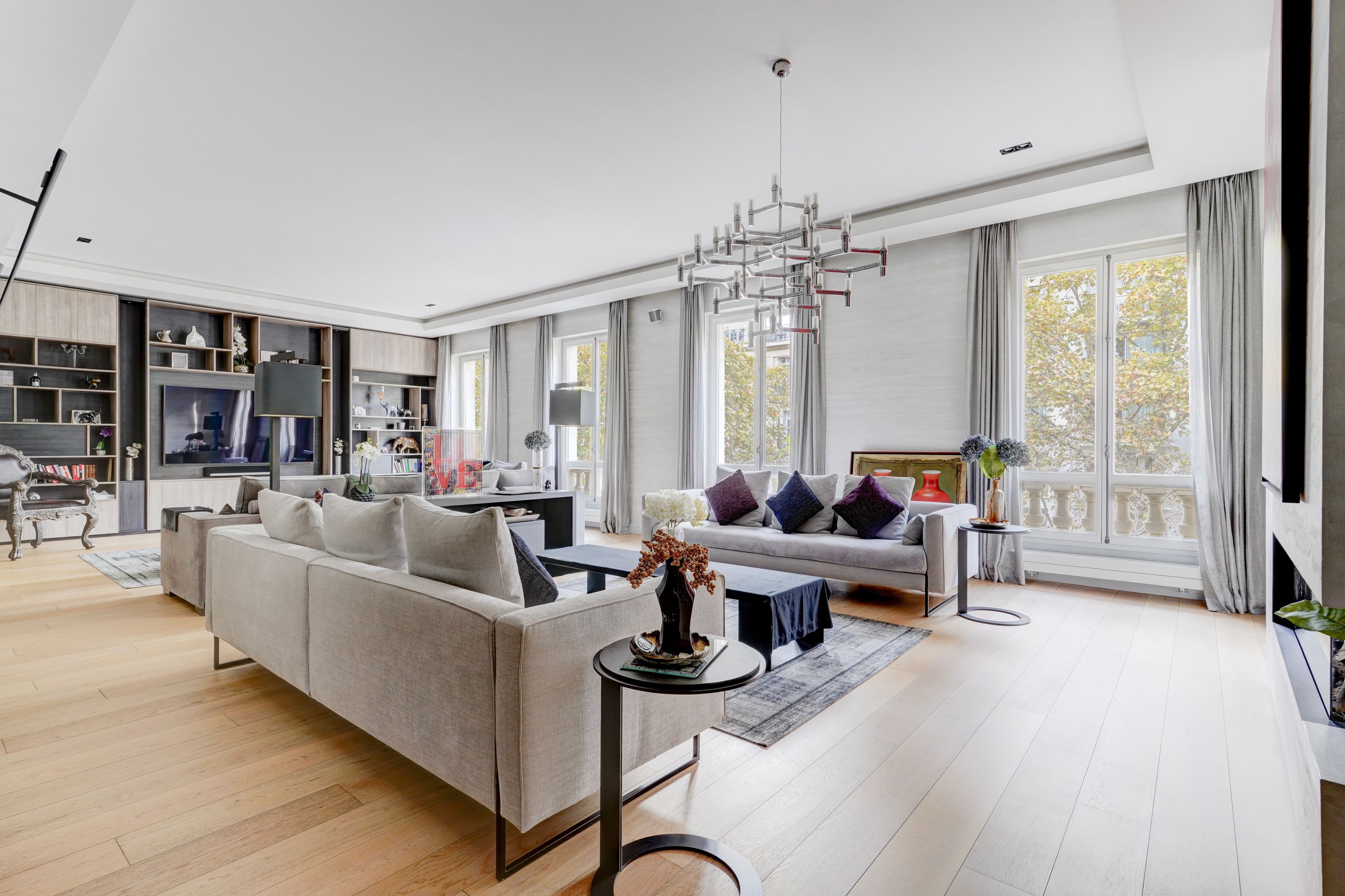 Idéalement situé avenue Niel. Au 2ème étage surélevé d'un ancien hôtel particulier de très grand standing, appartement de réception entièrement climatisé et domotisé de 240 m² offrant des volumes et un espace de vie exceptionnel de 120 m² avec une hauteur sous plafond de 3,30 m. Une rénovation de grande qualité a été réalisée. Entrée, triple réception jouissant d'une cuisine dinatoire attenante totalement équipée, suite parentale sur cour avec dressing, salle de bains et toilettes, deux suites avec chacune leur pièce d'eau et toilettes, buanderie, toilettes invités. Cave. Possibilité d’acquérir en supplément une chambre de service de 12 m² au quatrième étage accessible par ascenseur et disposant d'une salle de douches et d'une kitchenette. Emplacement de parking possible en location.