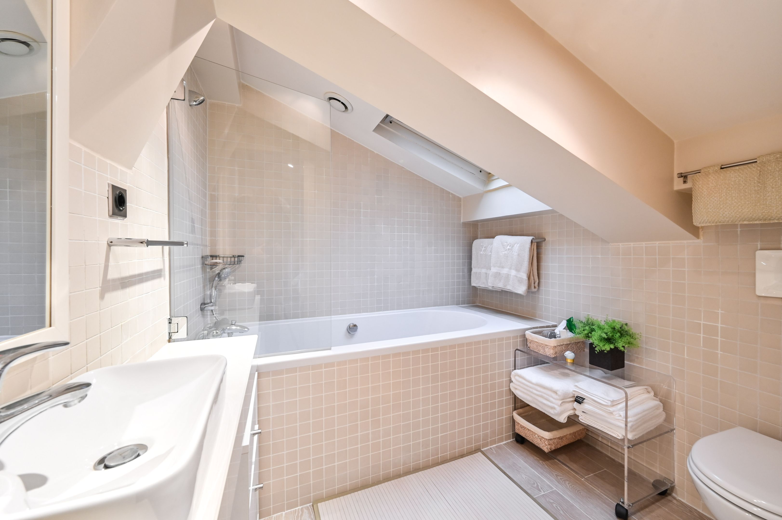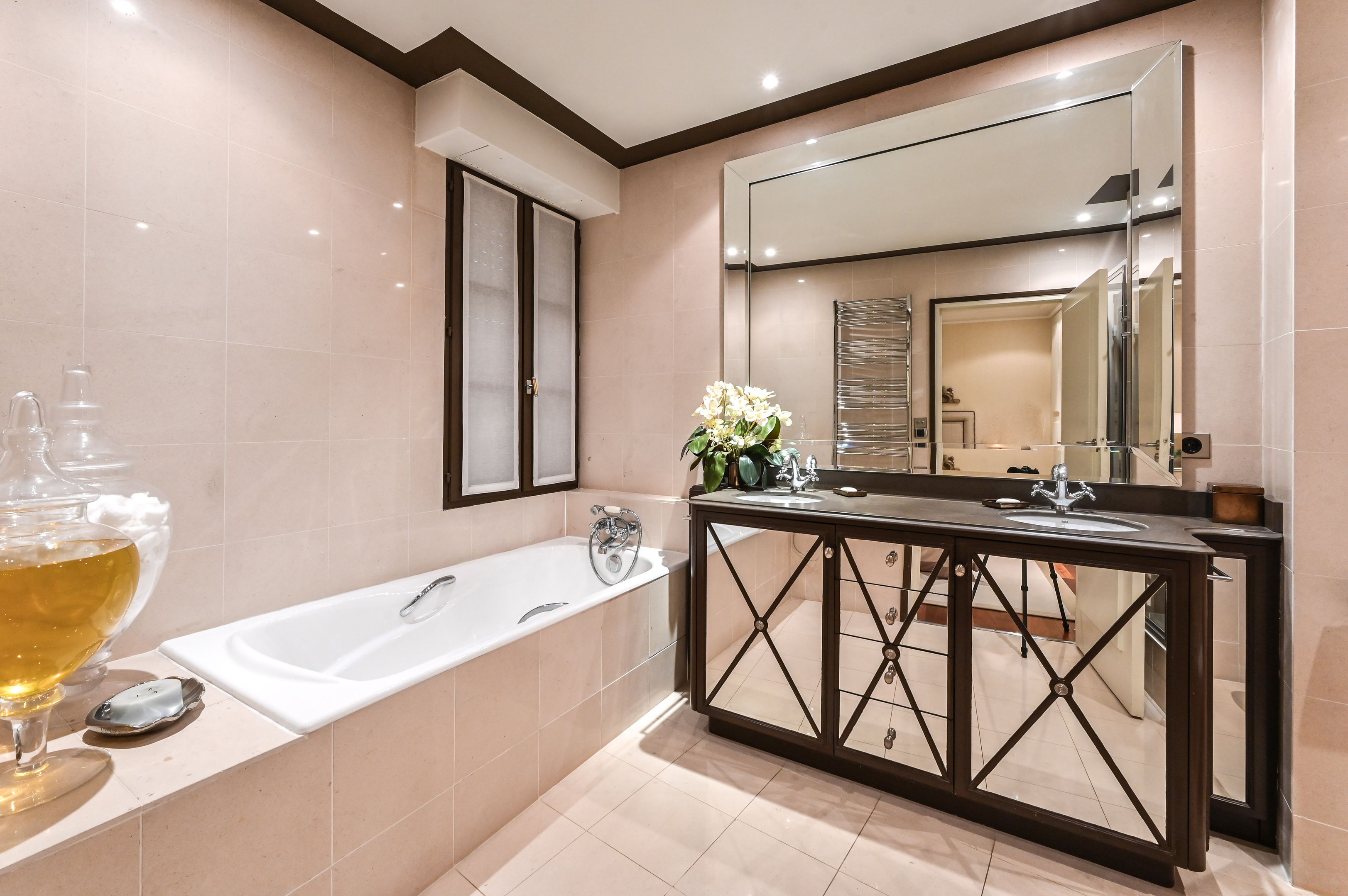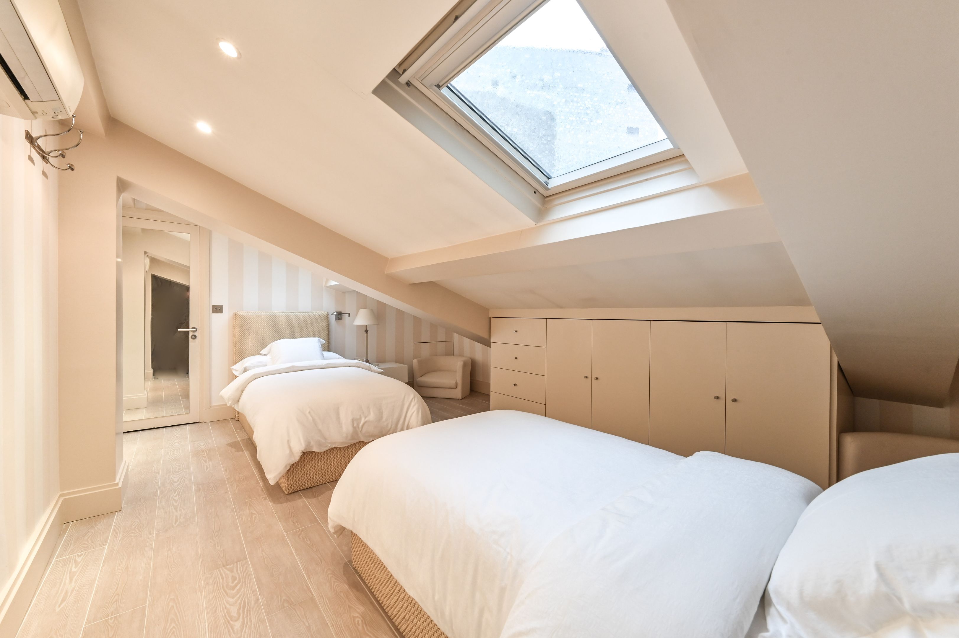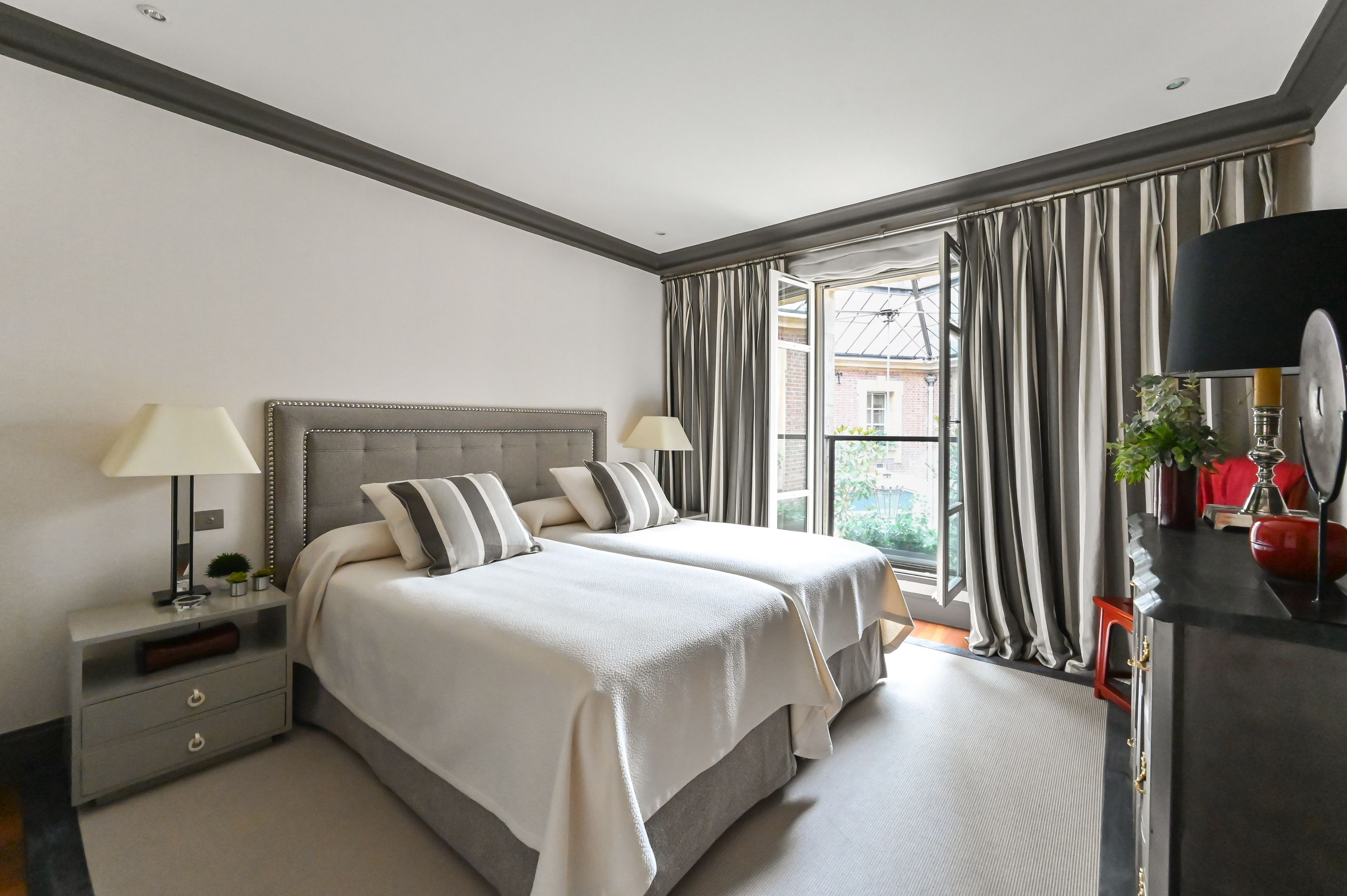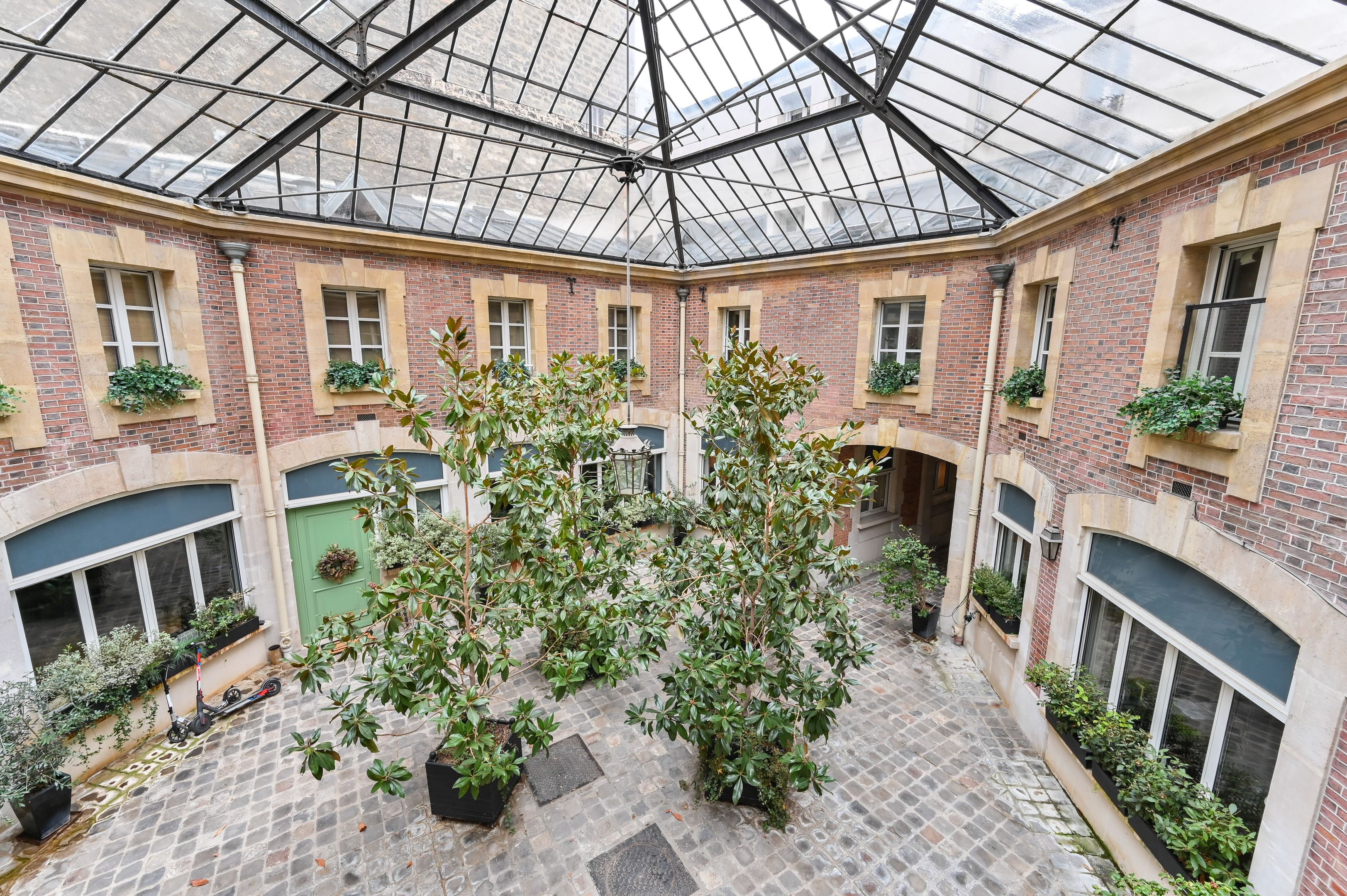 Situation exceptionnelle pour ce triplex de charme, meublé et bénéficiant de prestations haut de gamme, donnant sur une cour arborée claire et calme. Au premier niveau : entrée, salon, salle à manger, cuisine aménagée et équipée, toilettes séparés. Premier étage : deux suites, chacune dotée d’une salle de bains ou d'une salle d'eau avec toilettes et d’un dressing. Au deuxième étage : chambre enfants (2 lits) avec salle de bains avec toilettes. Climatisation réversible. Mobilier raffiné et décoration soignée.
